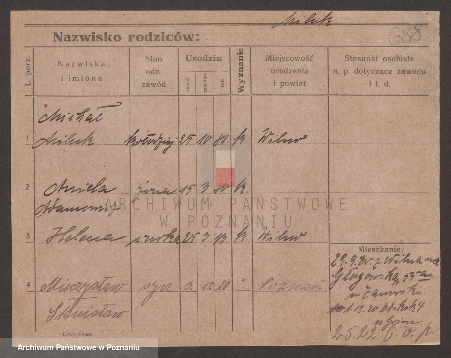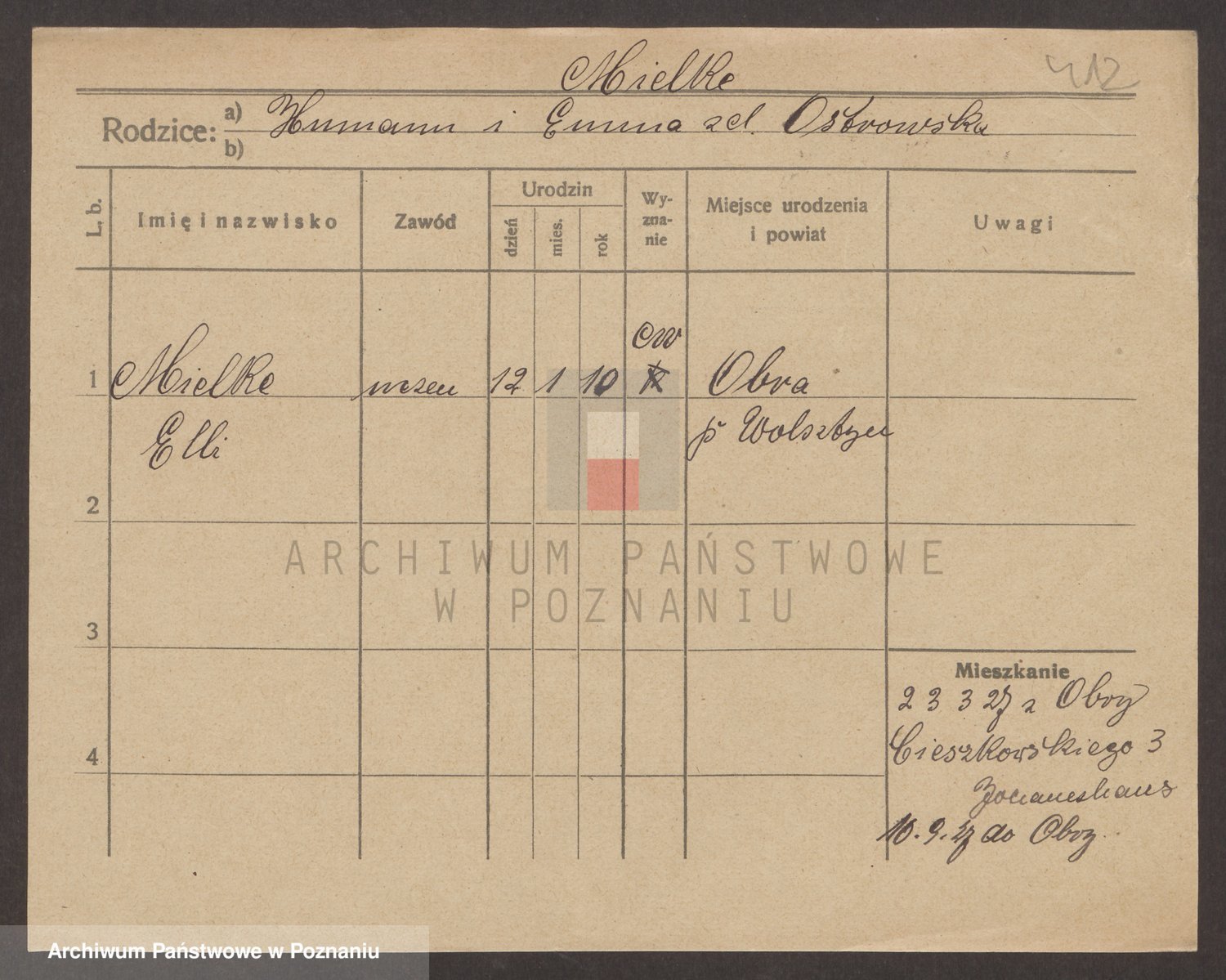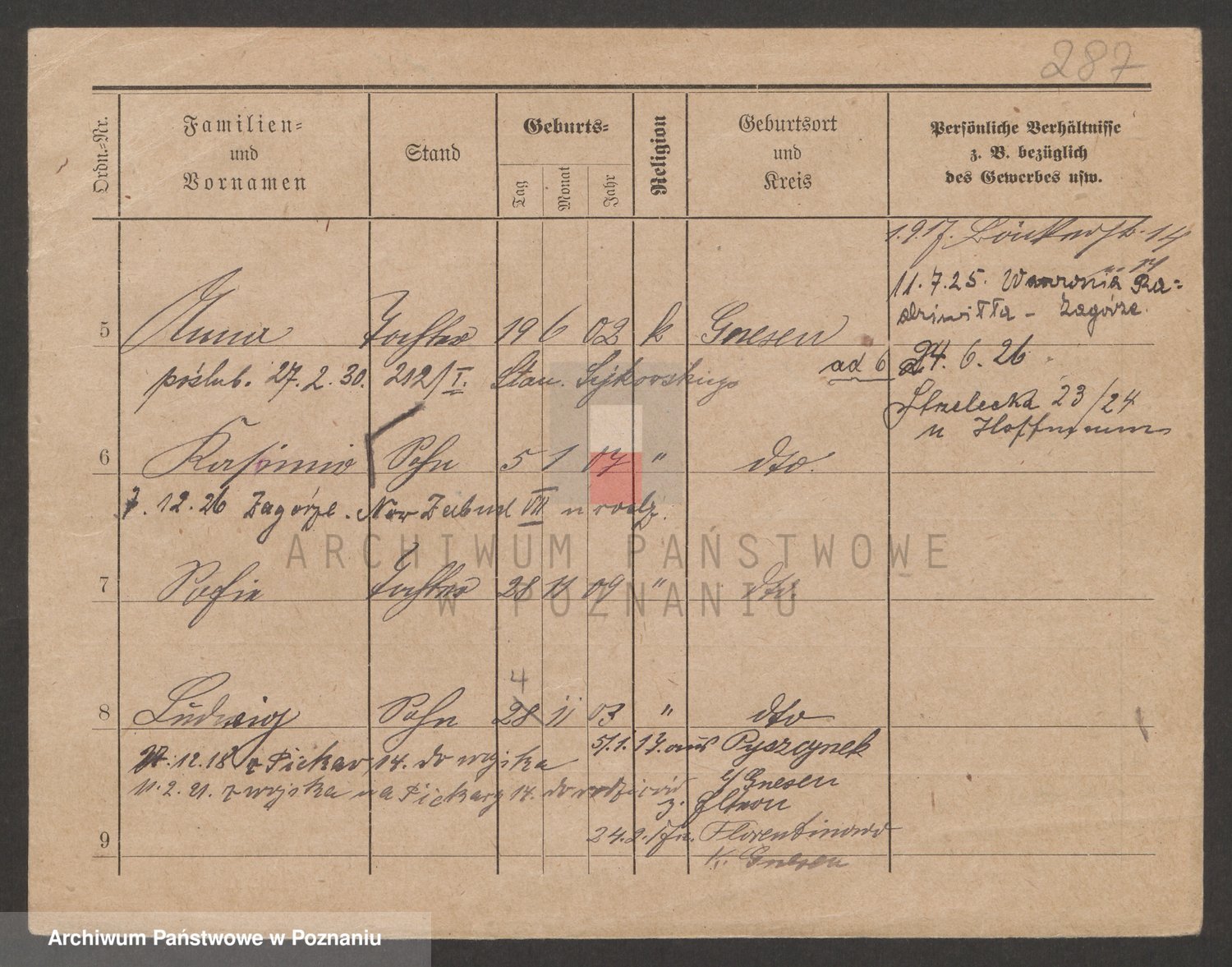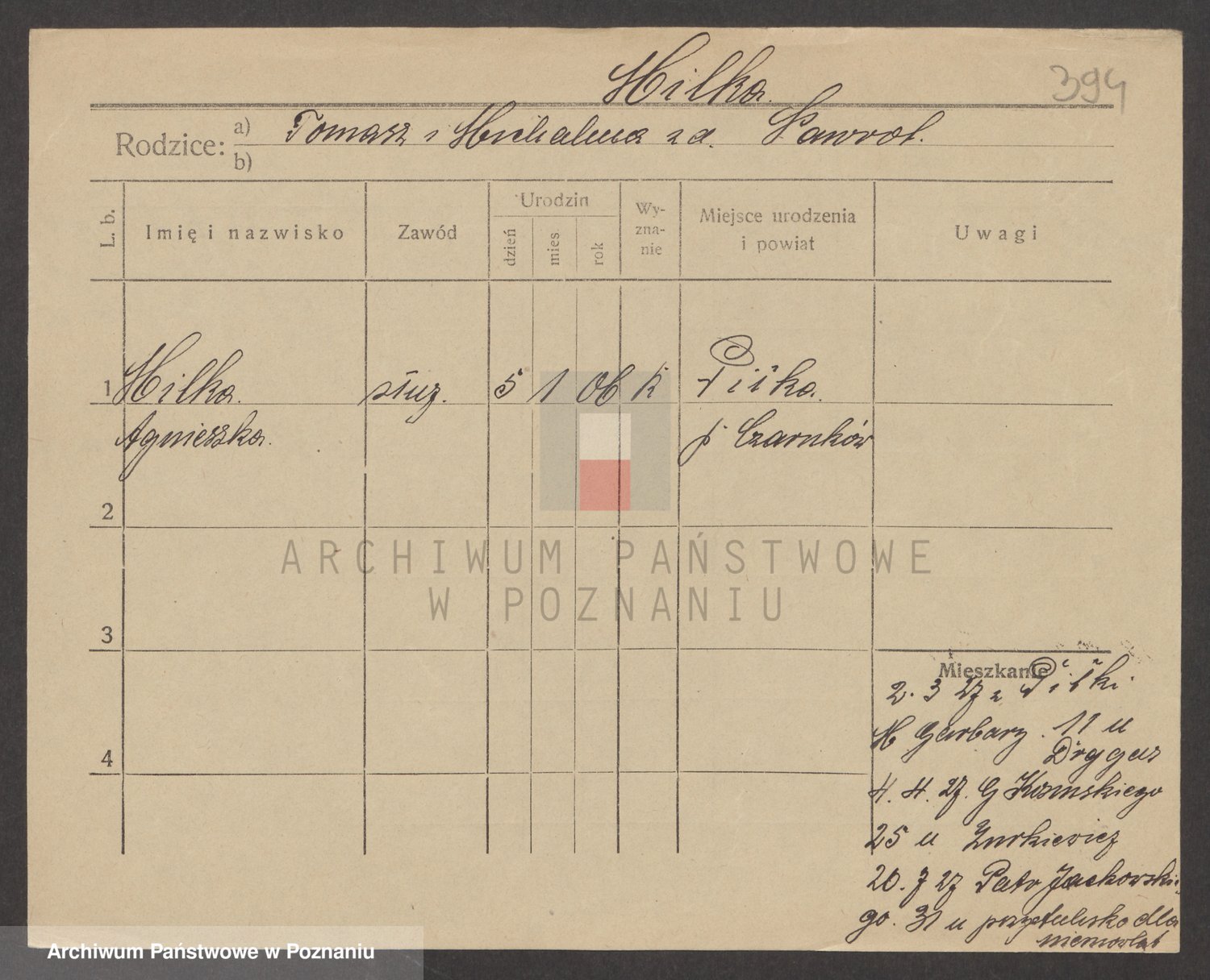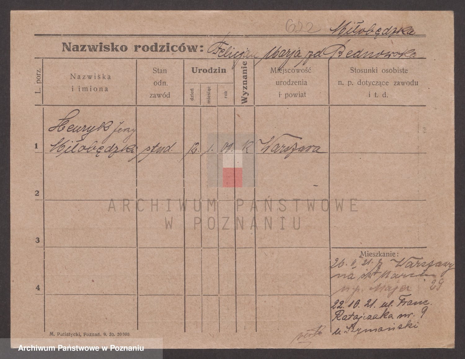 Podgląd karty osobowej dostępny jest po kliknięciu na nazwisko lub ikonkę karty. Można dokonywać powiększenia (ikony na górze) lub przechodzić między kolejnymi skanami (strzałki po bokach).