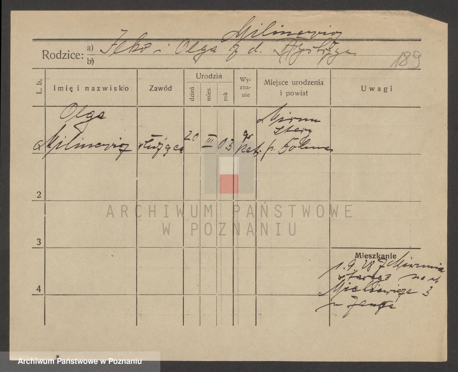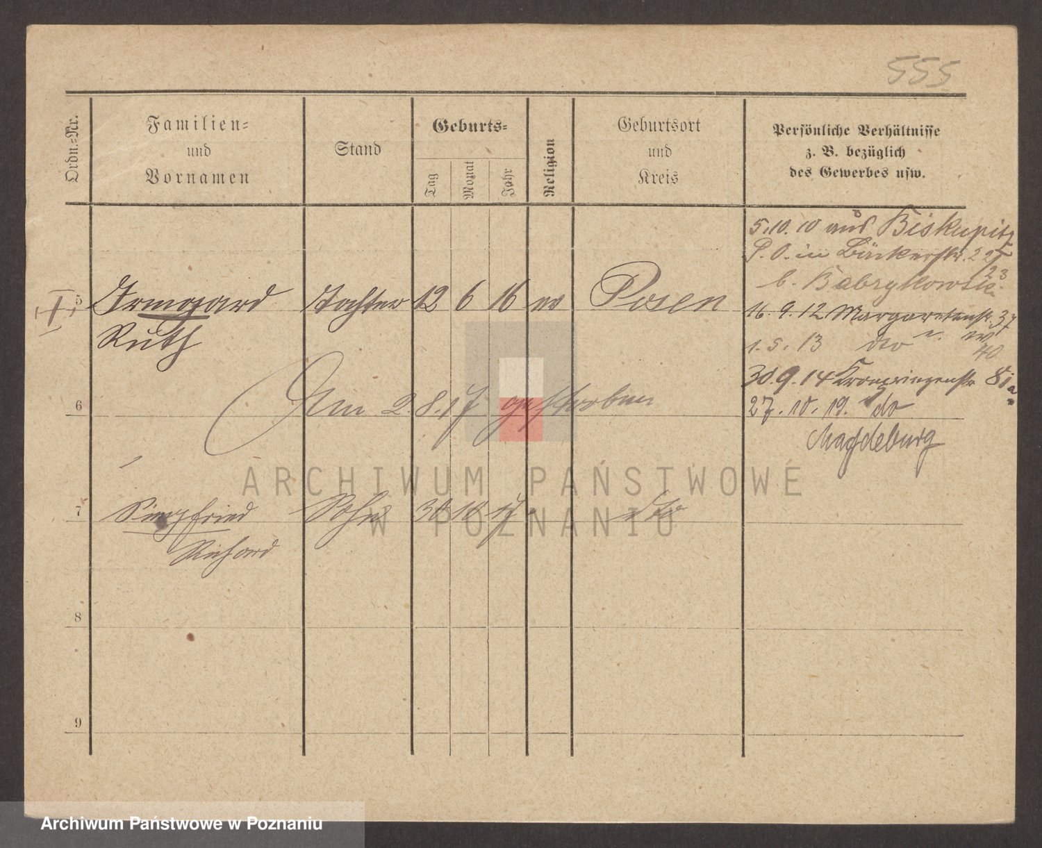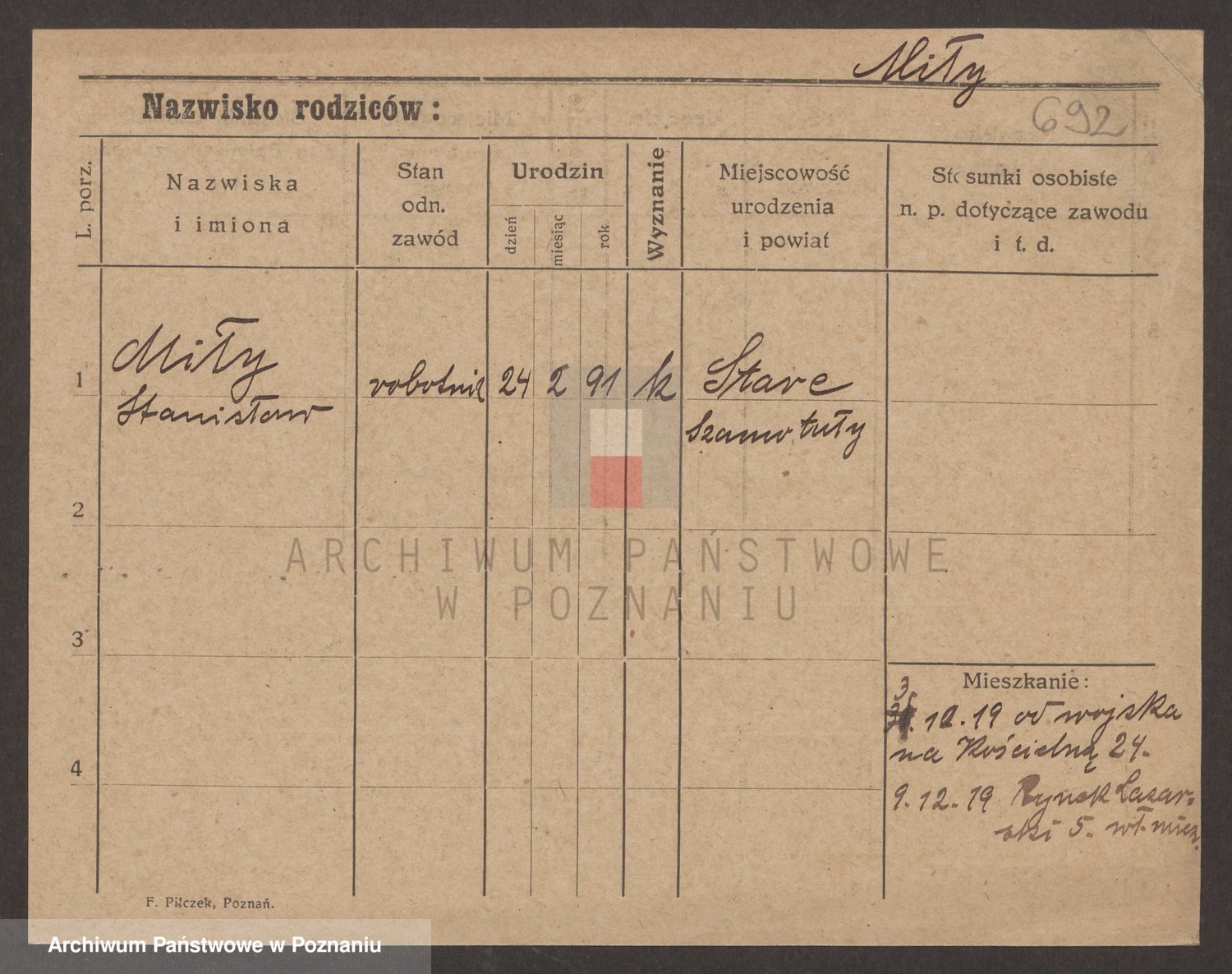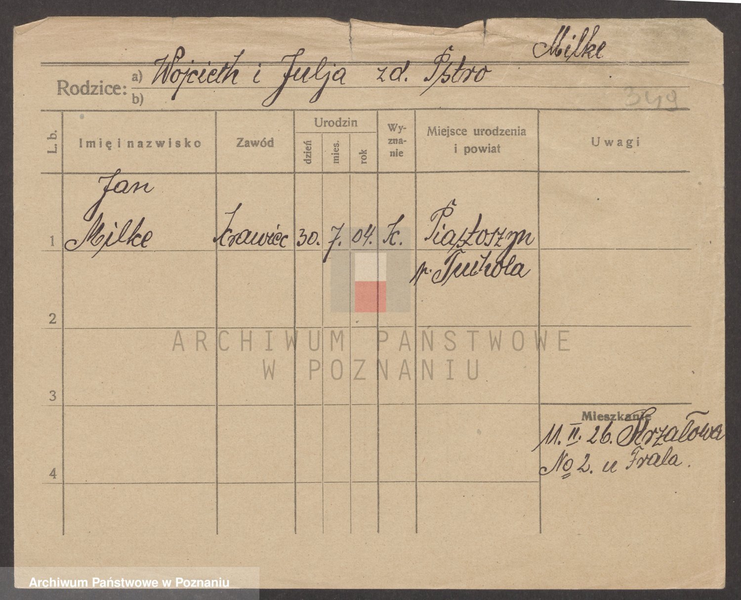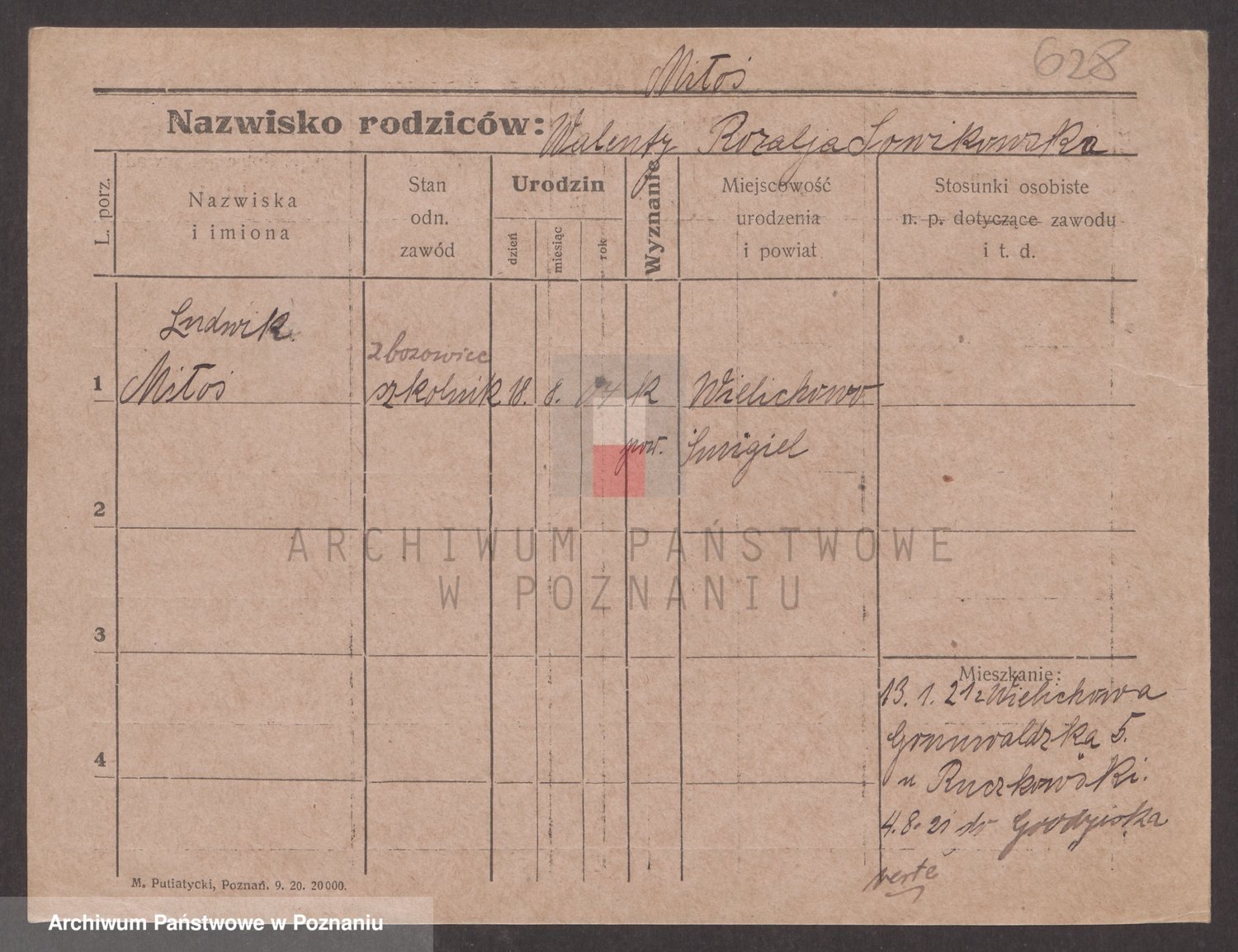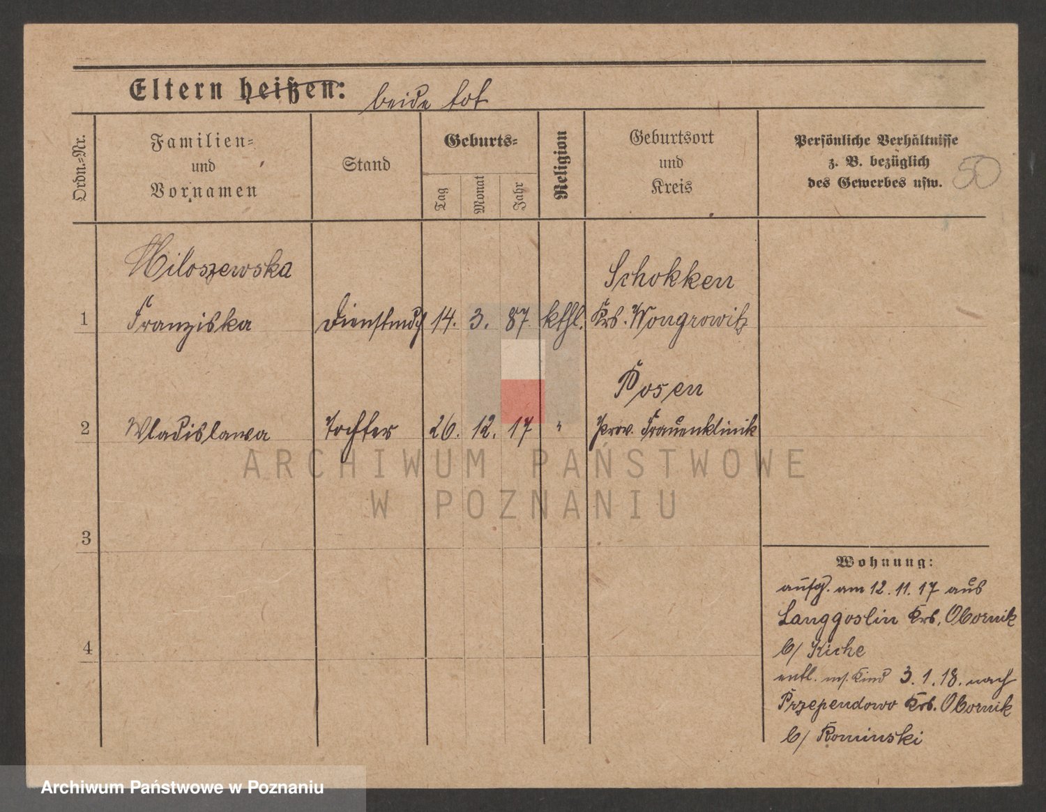 Podgląd karty osobowej dostępny jest po kliknięciu na nazwisko lub ikonkę karty. Można dokonywać powiększenia (ikony na górze) lub przechodzić między kolejnymi skanami (strzałki po bokach).