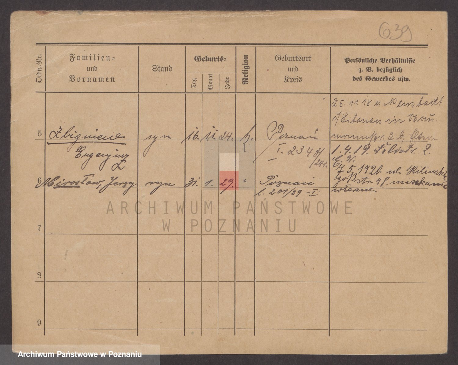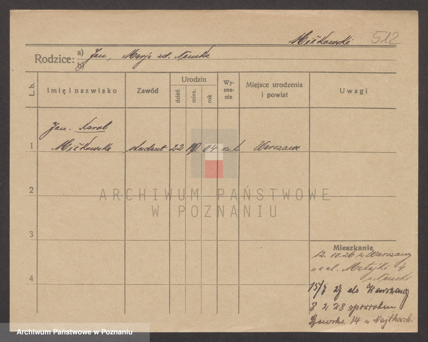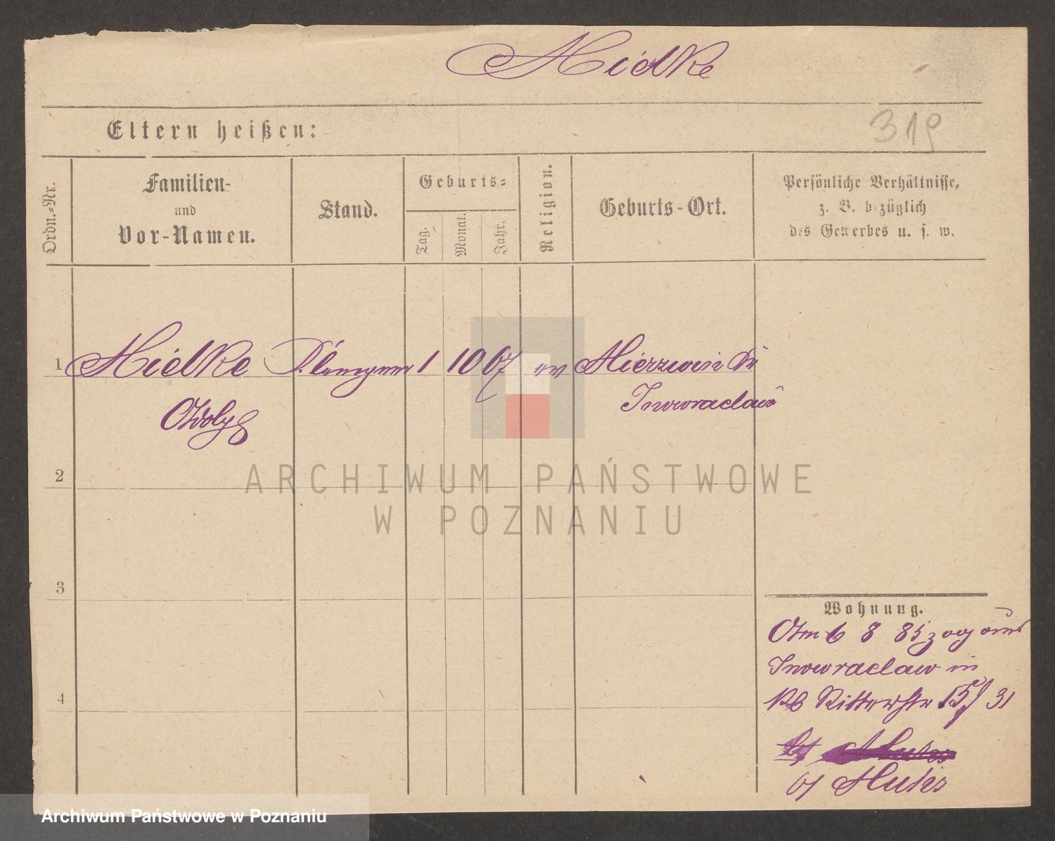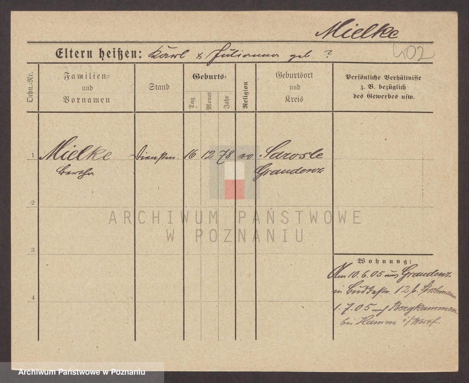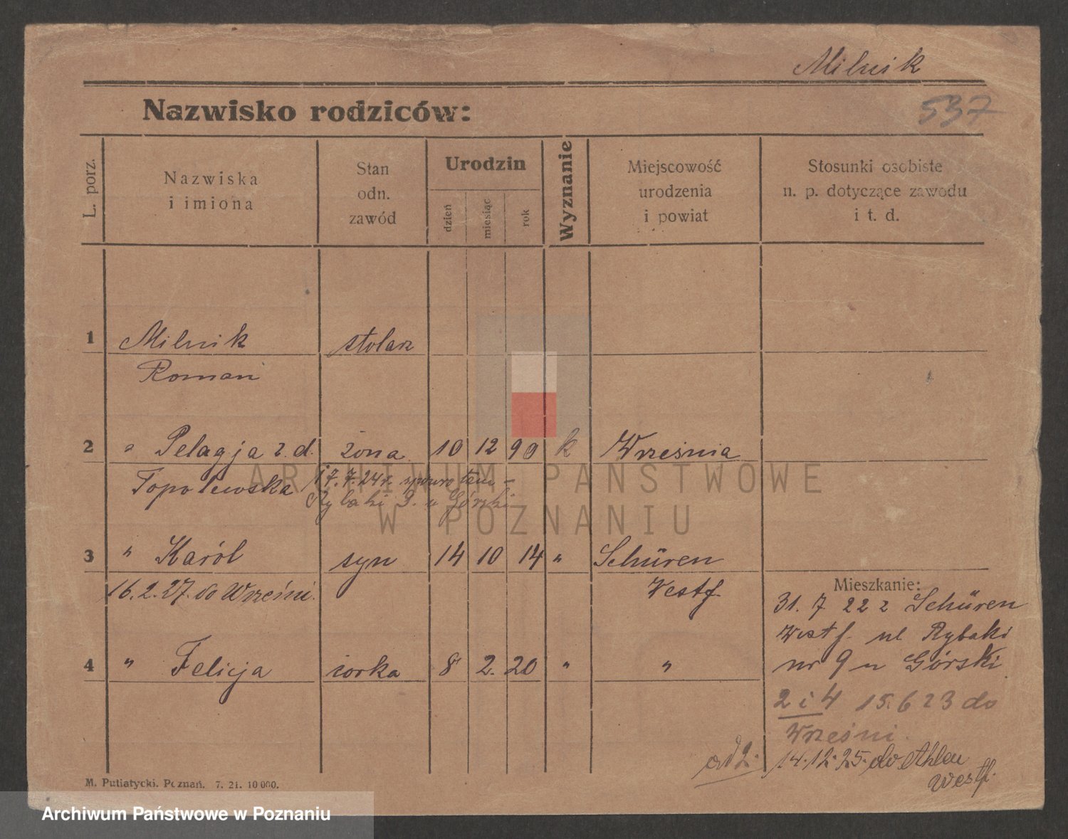 Podgląd karty osobowej dostępny jest po kliknięciu na nazwisko lub ikonkę karty. Można dokonywać powiększenia (ikony na górze) lub przechodzić między kolejnymi skanami (strzałki po bokach).