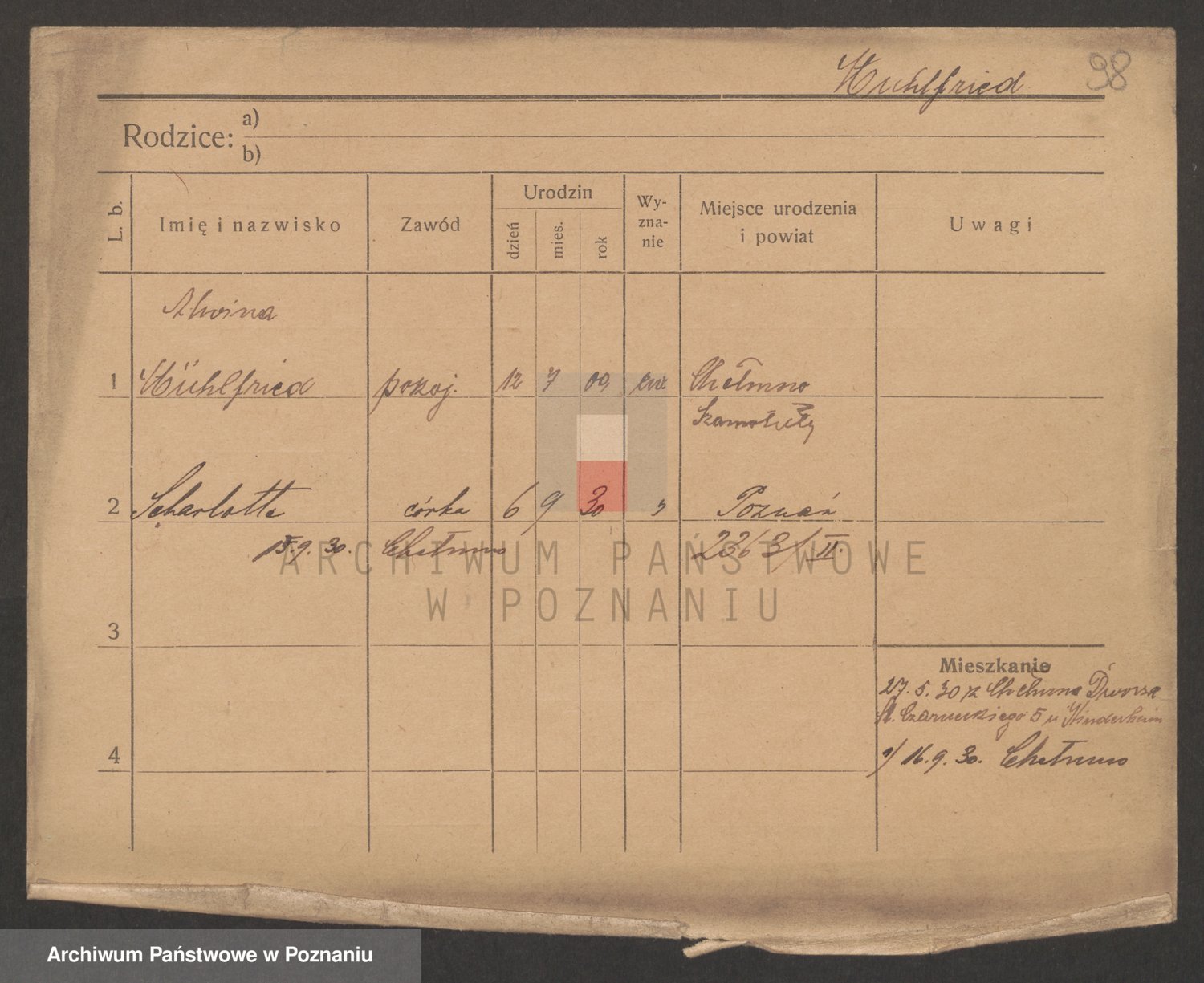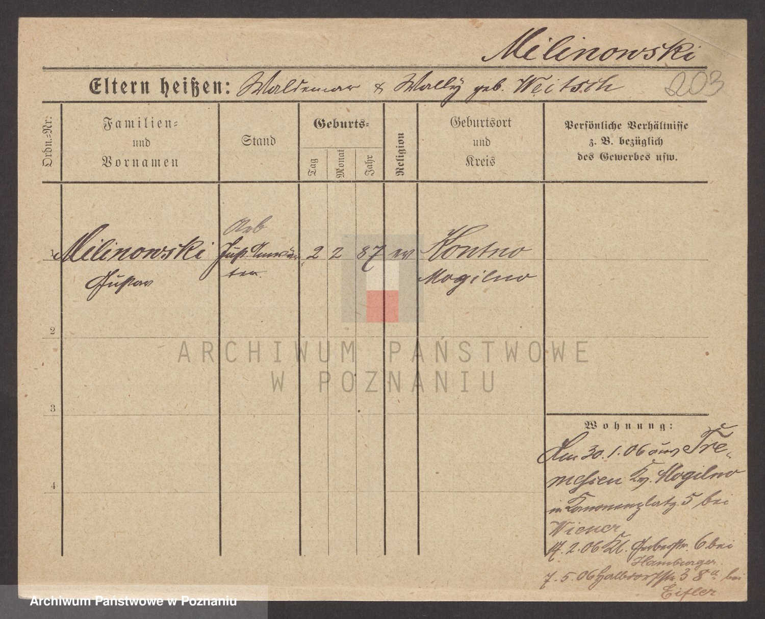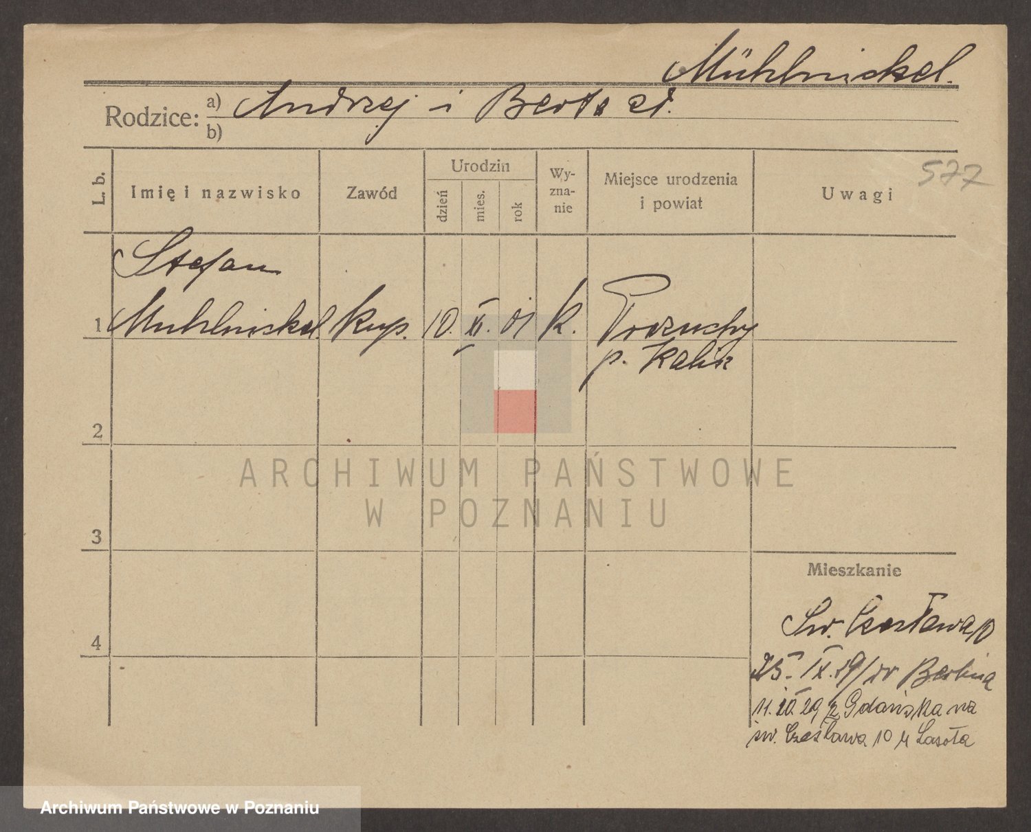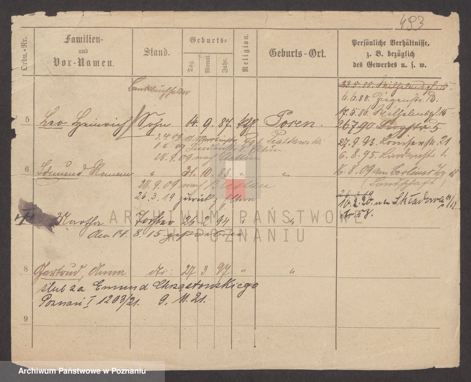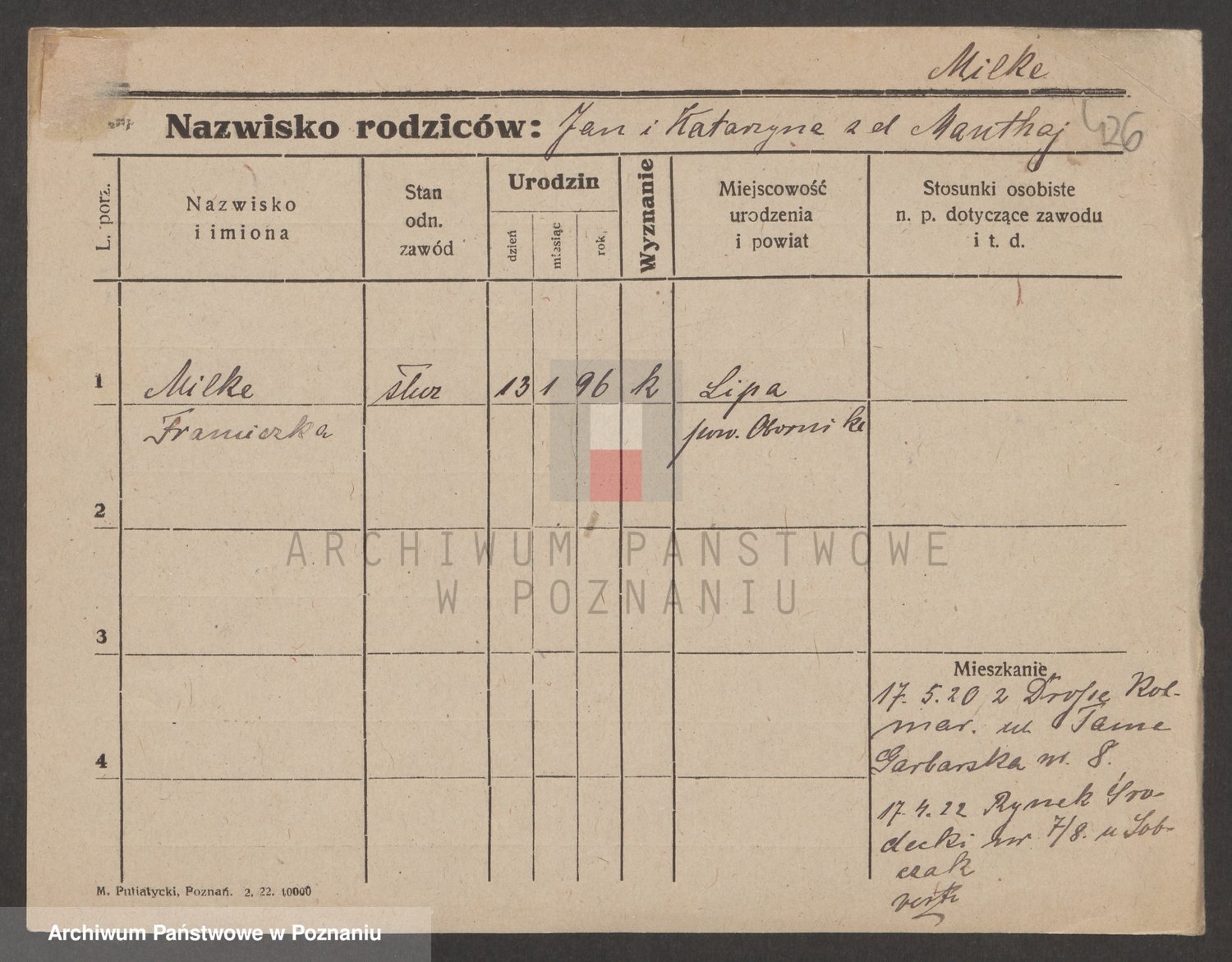 Podgląd karty osobowej dostępny jest po kliknięciu na nazwisko lub ikonkę karty. Można dokonywać powiększenia (ikony na górze) lub przechodzić między kolejnymi skanami (strzałki po bokach).