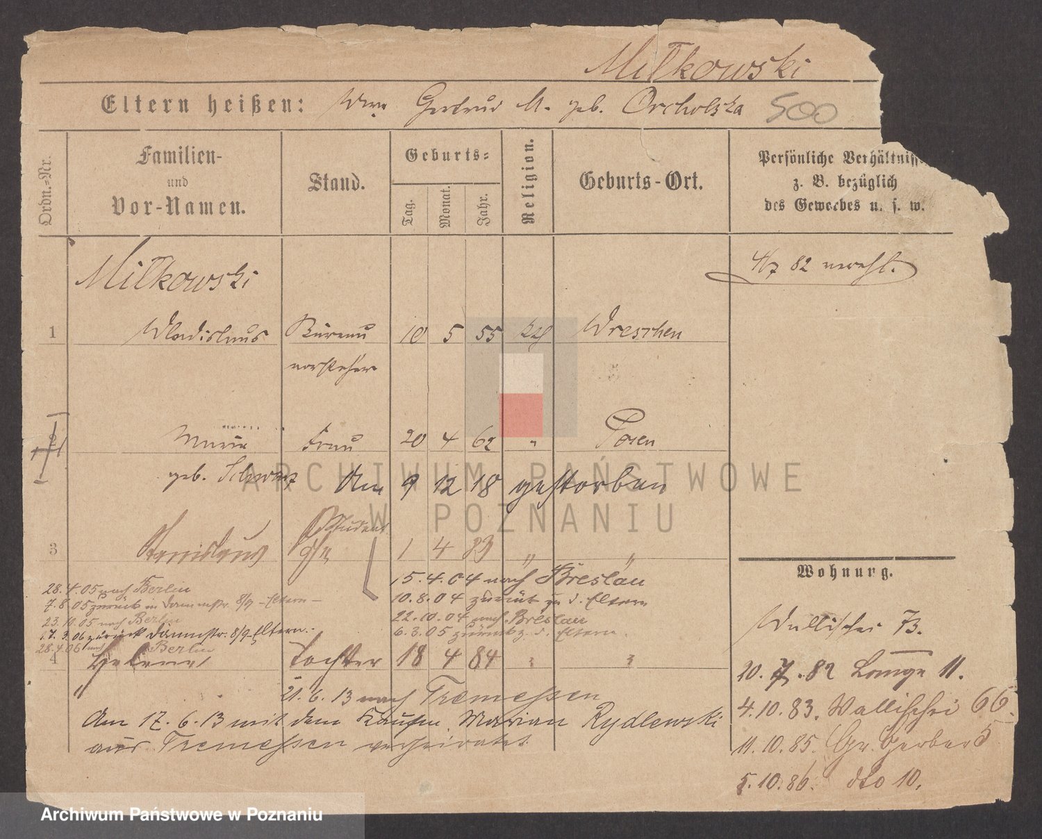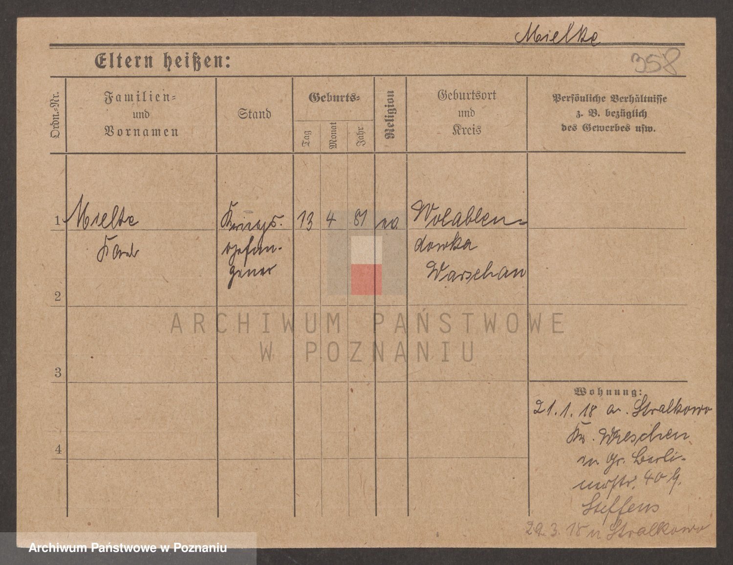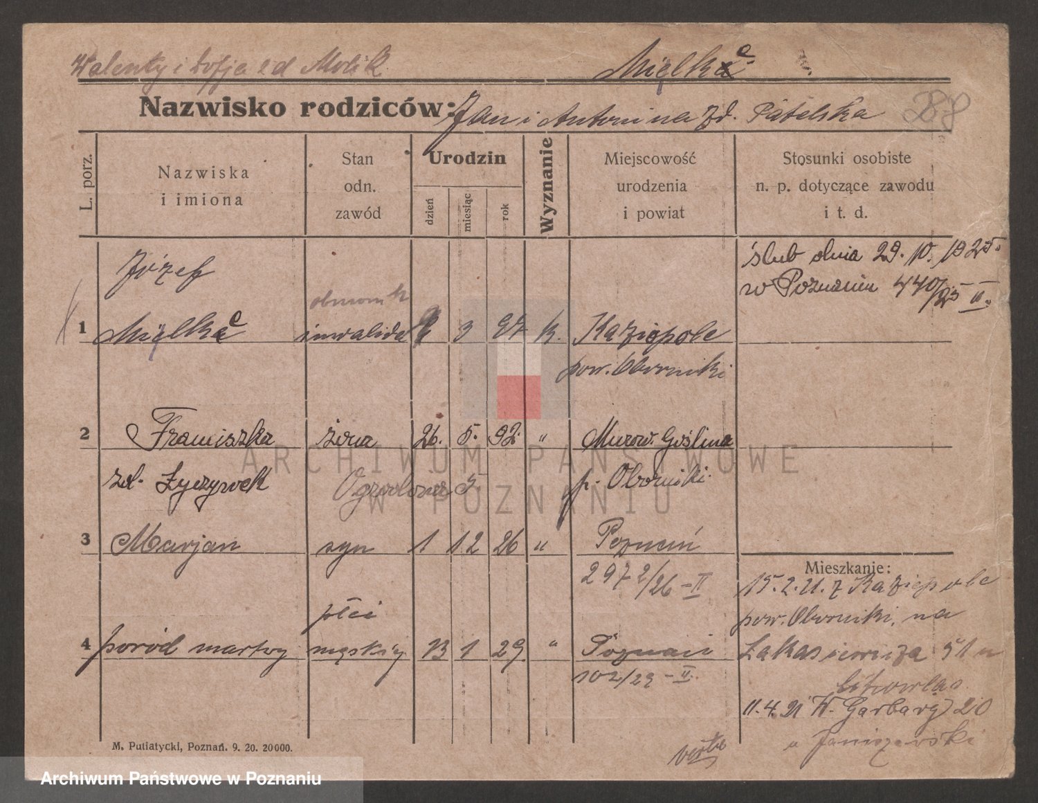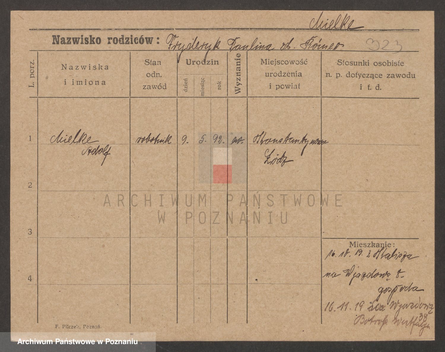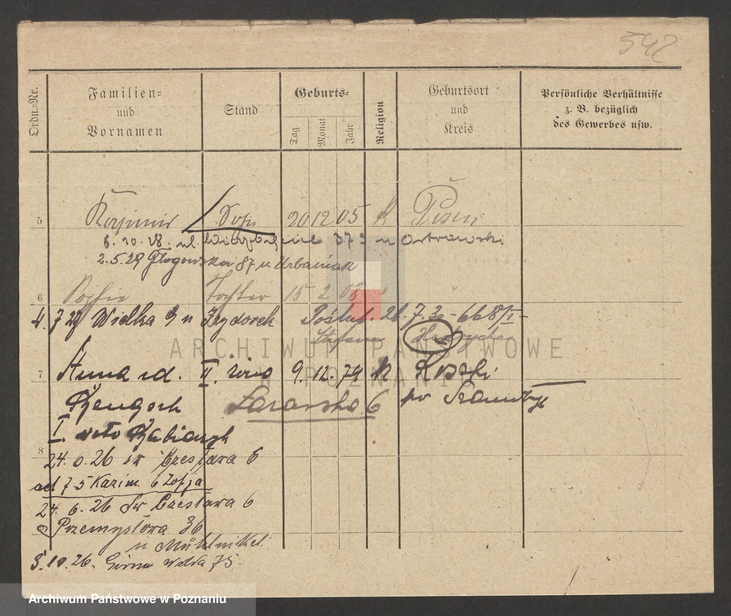 Podgląd karty osobowej dostępny jest po kliknięciu na nazwisko lub ikonkę karty. Można dokonywać powiększenia (ikony na górze) lub przechodzić między kolejnymi skanami (strzałki po bokach).