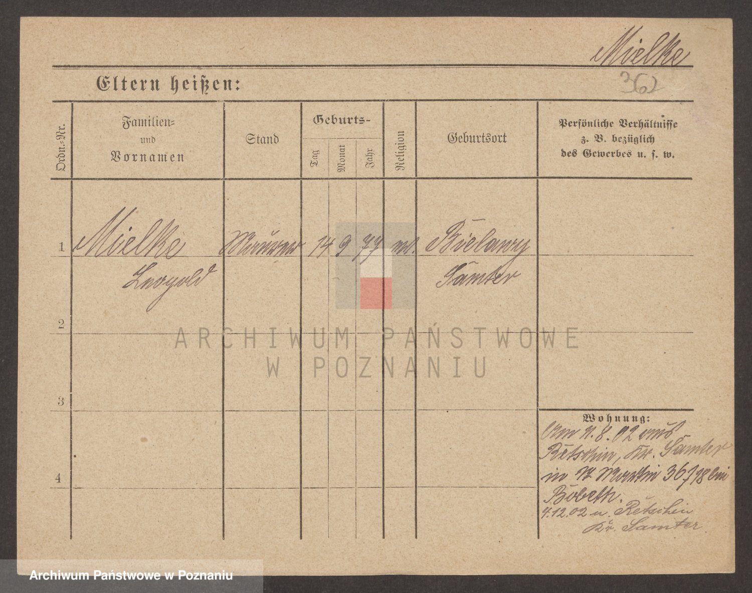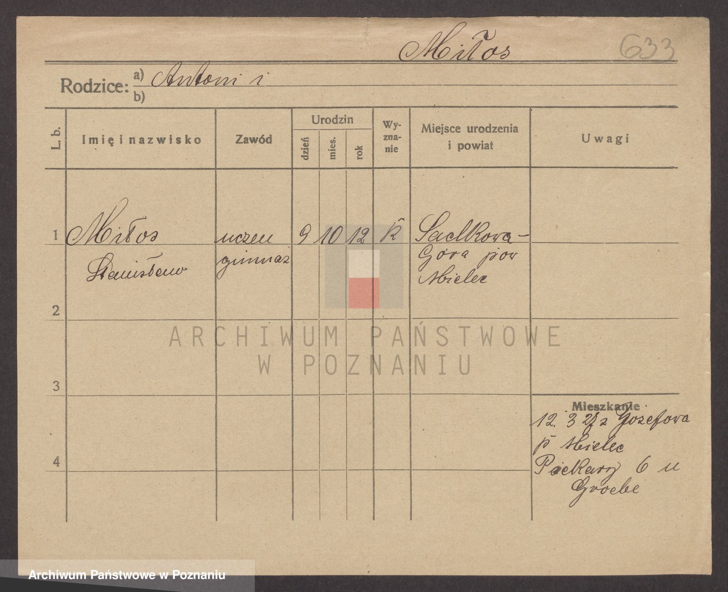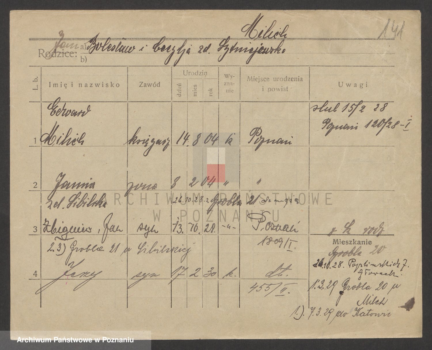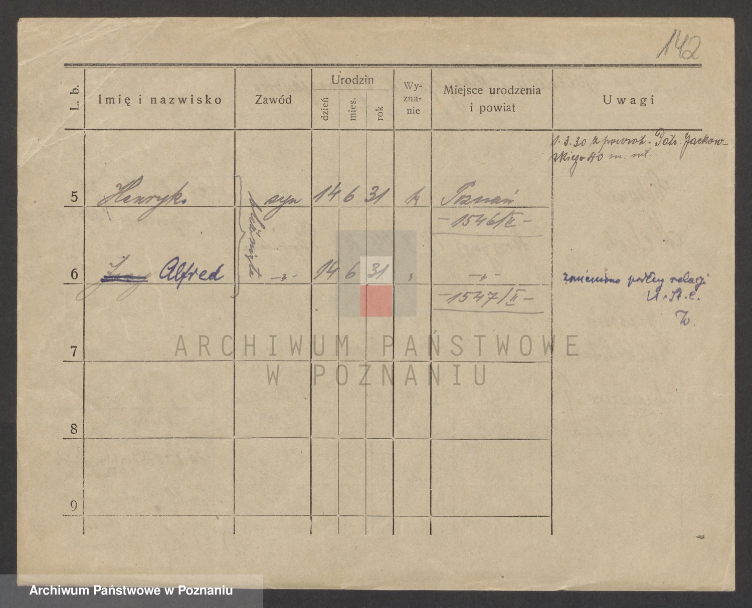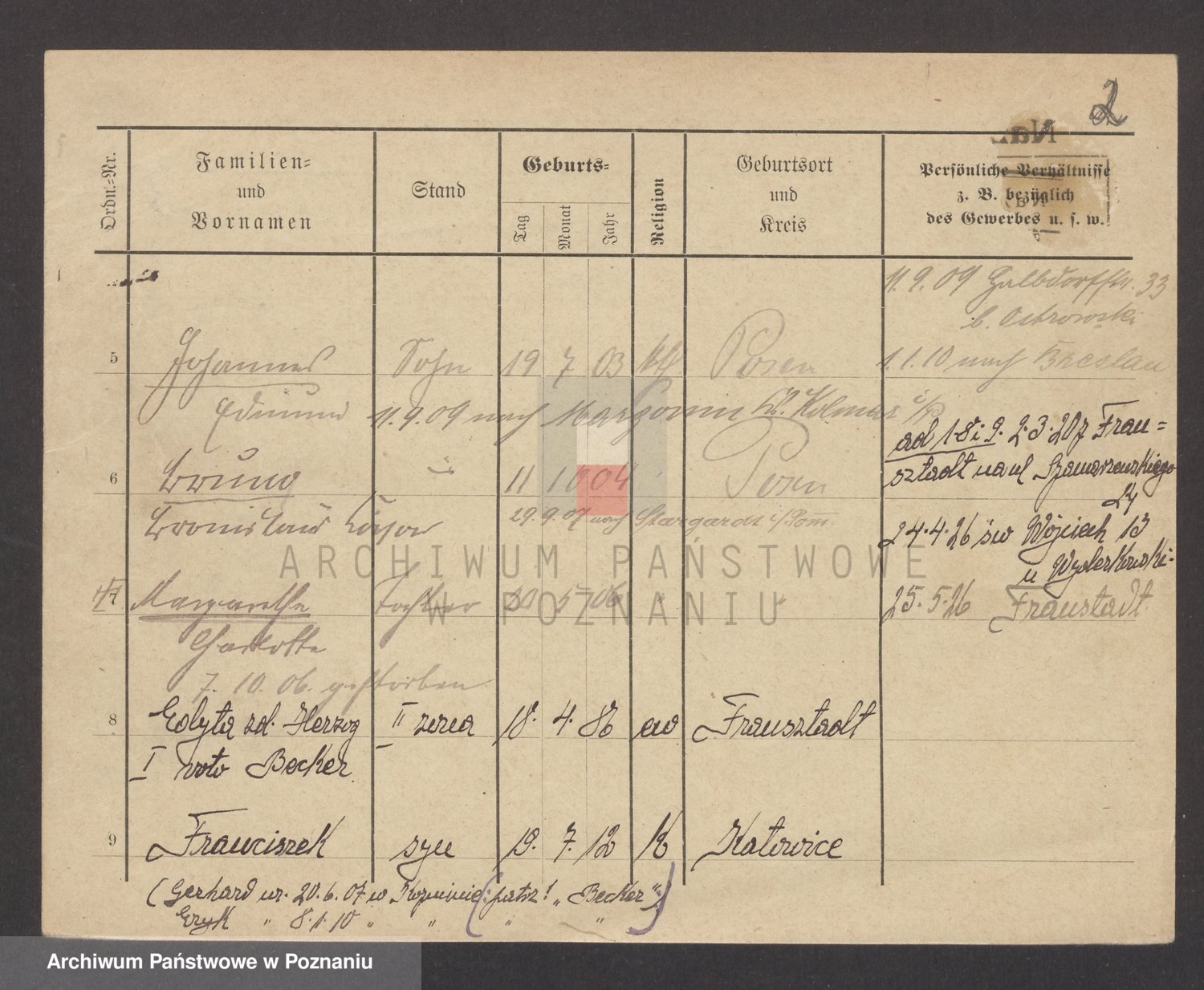 Podgląd karty osobowej dostępny jest po kliknięciu na nazwisko lub ikonkę karty. Można dokonywać powiększenia (ikony na górze) lub przechodzić między kolejnymi skanami (strzałki po bokach).