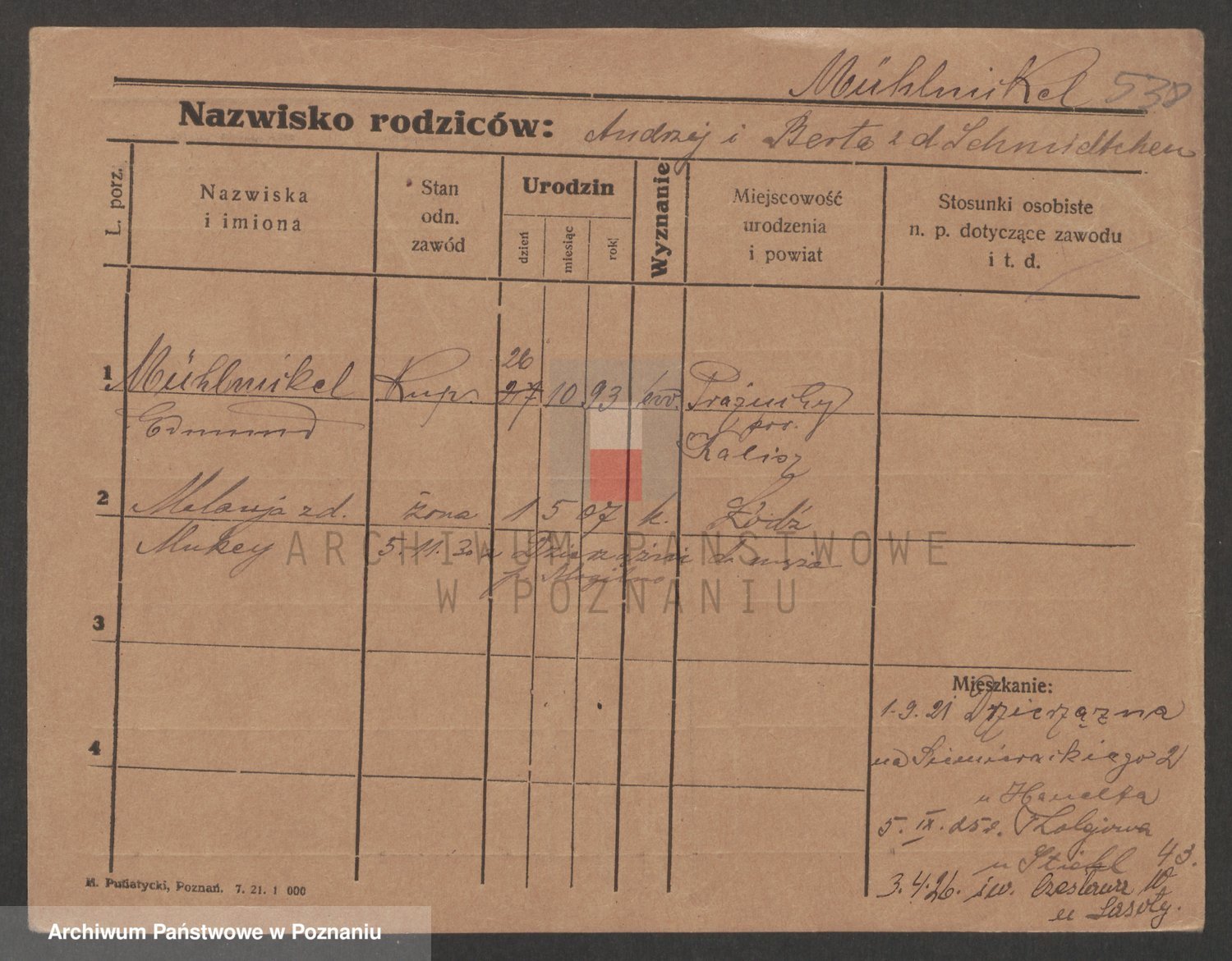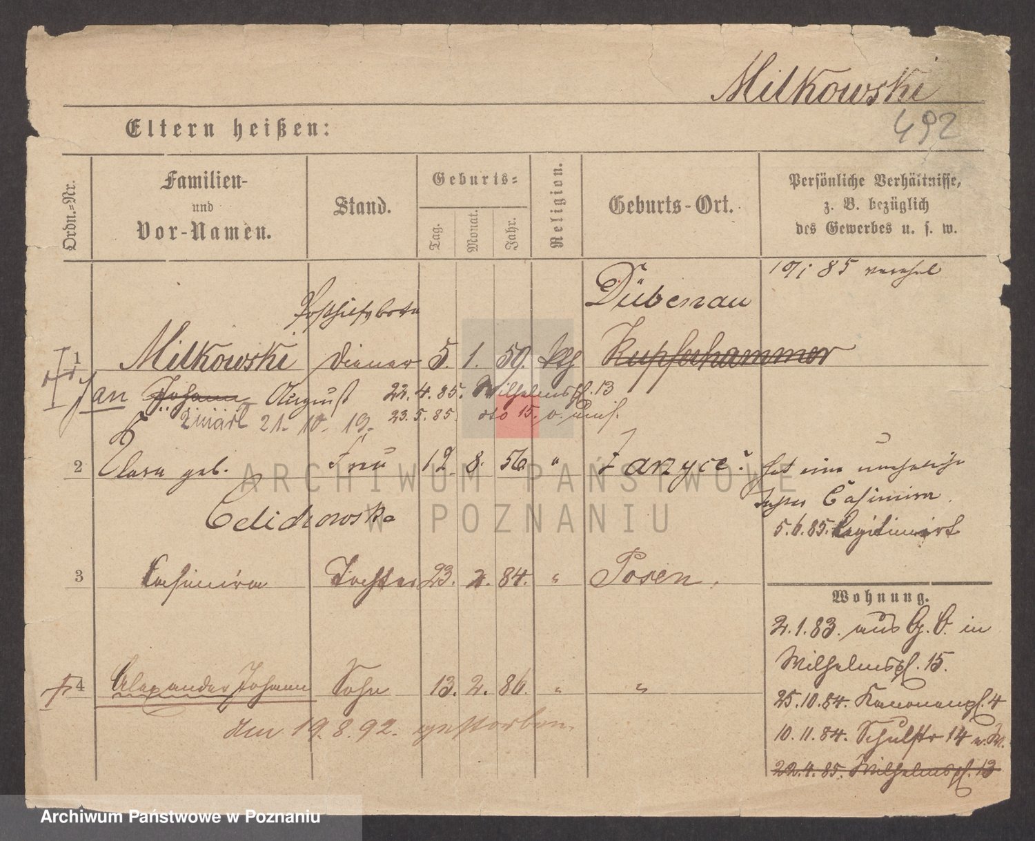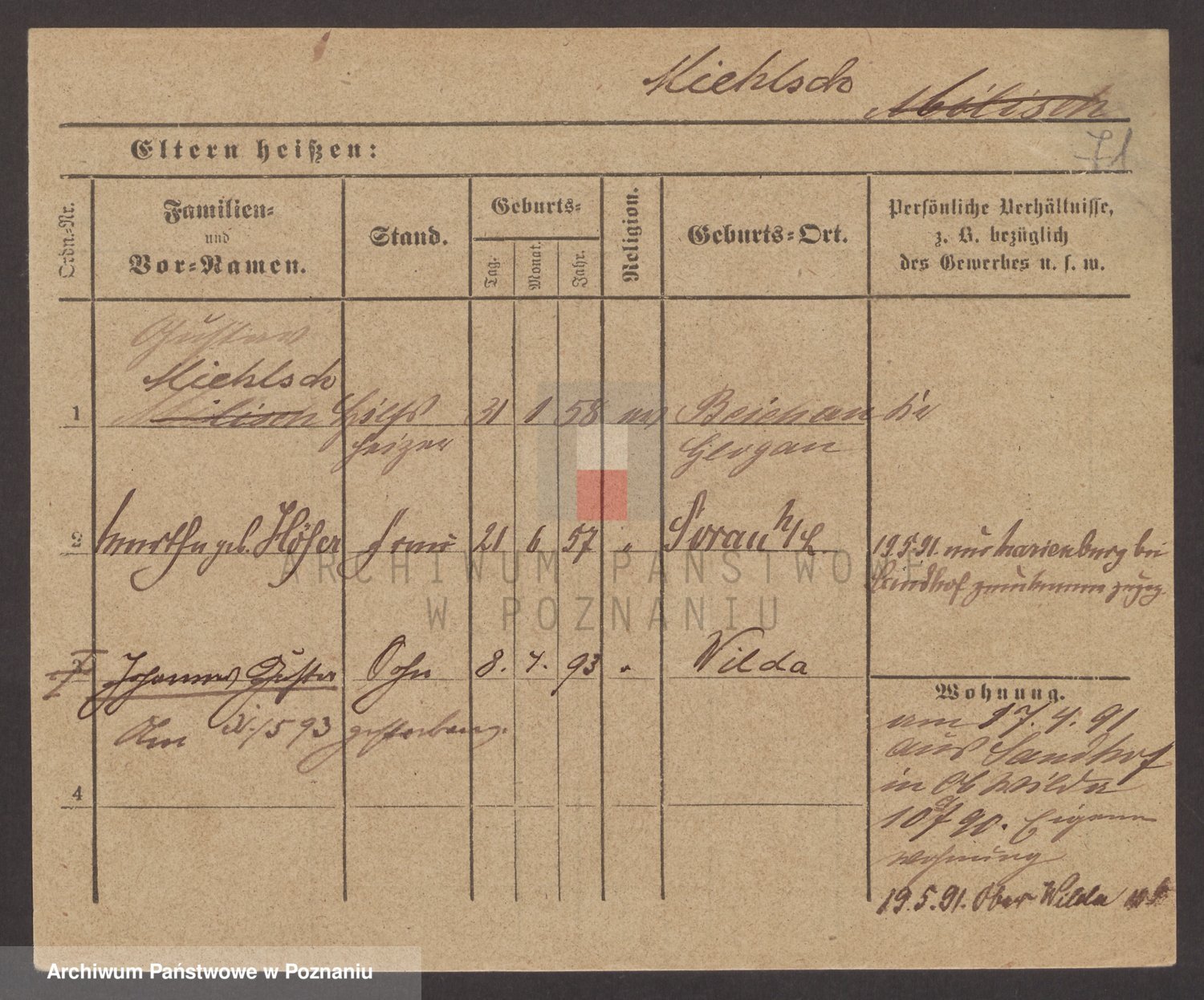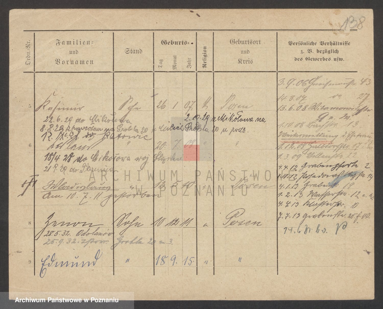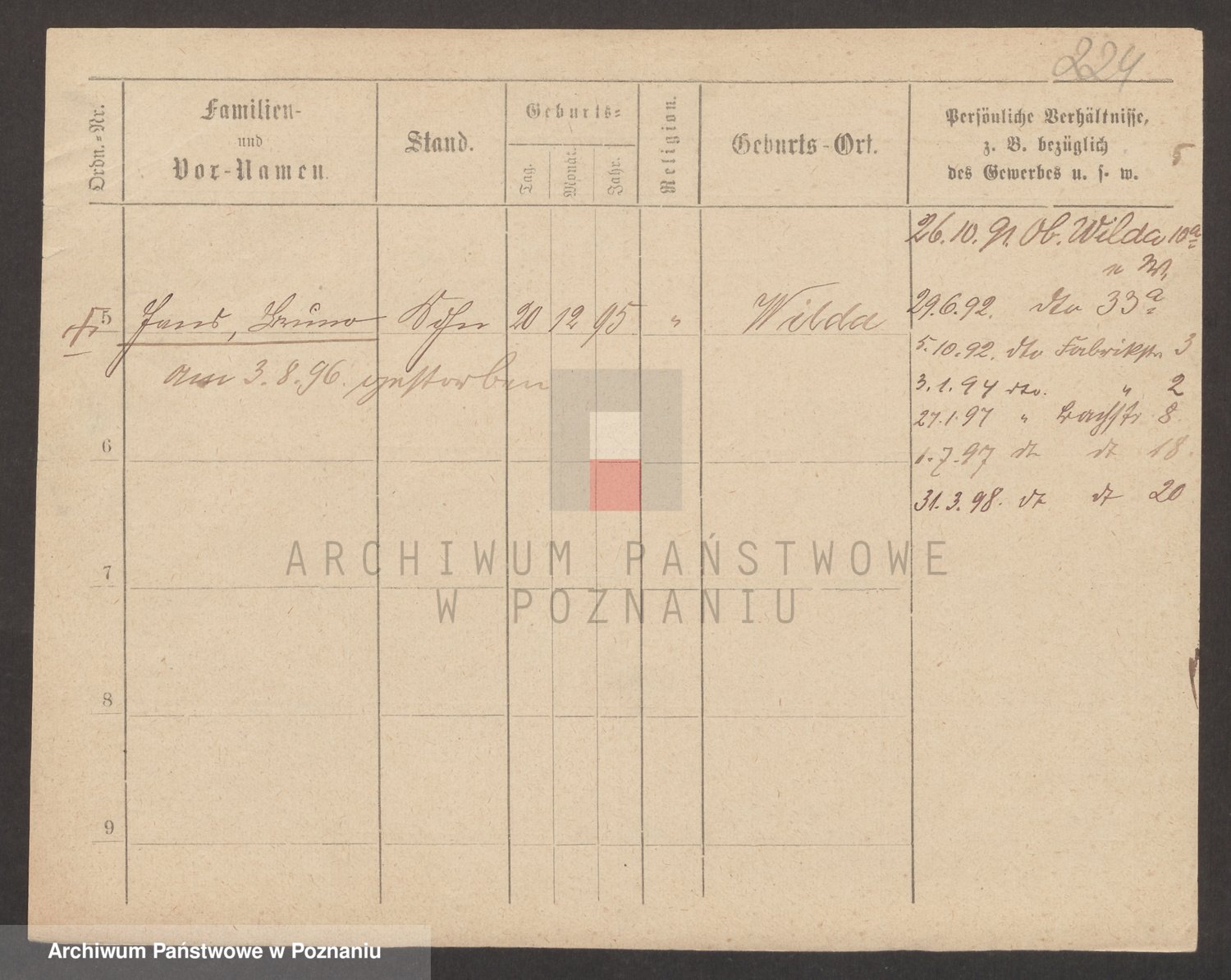 Podgląd karty osobowej dostępny jest po kliknięciu na nazwisko lub ikonkę karty. Można dokonywać powiększenia (ikony na górze) lub przechodzić między kolejnymi skanami (strzałki po bokach).