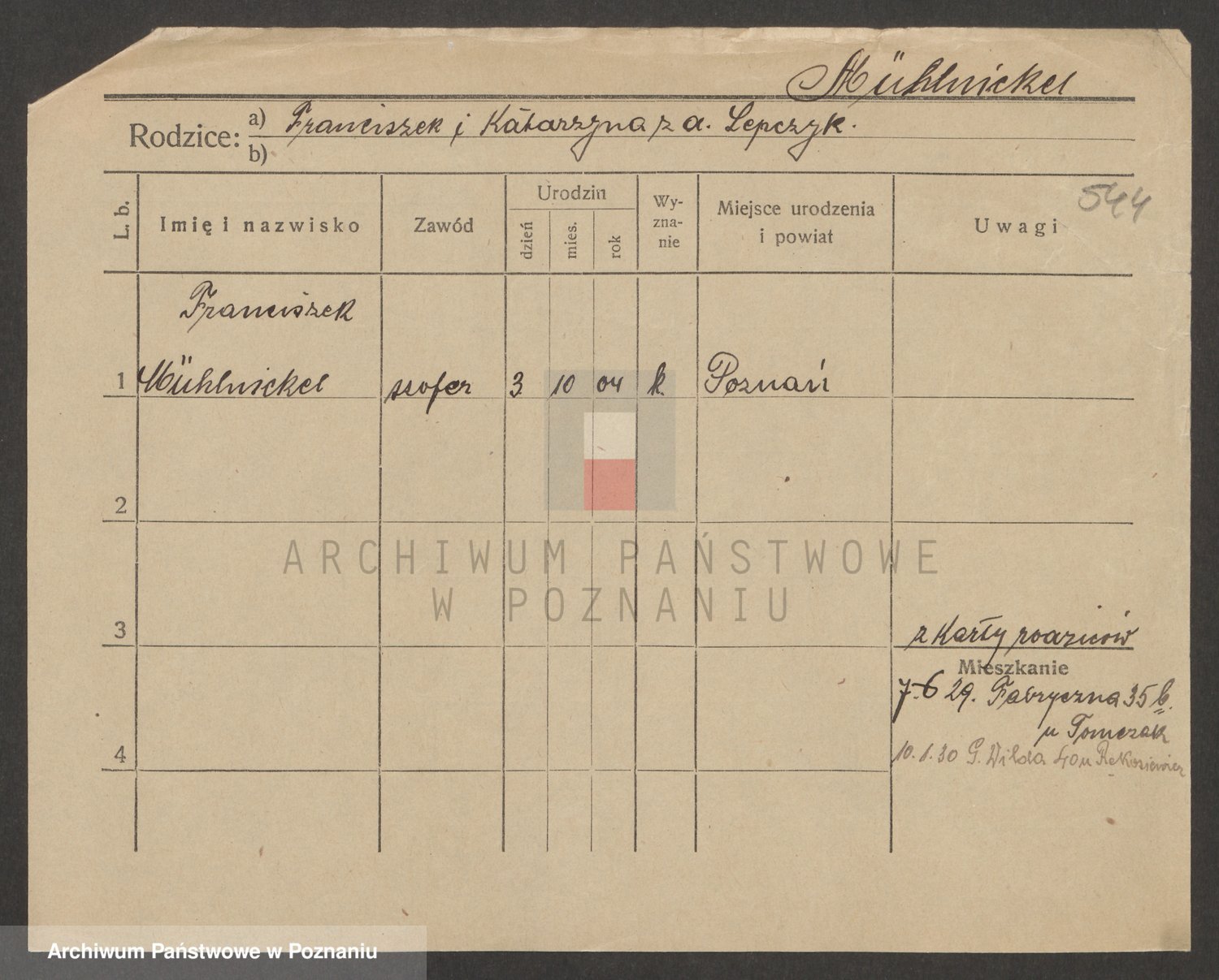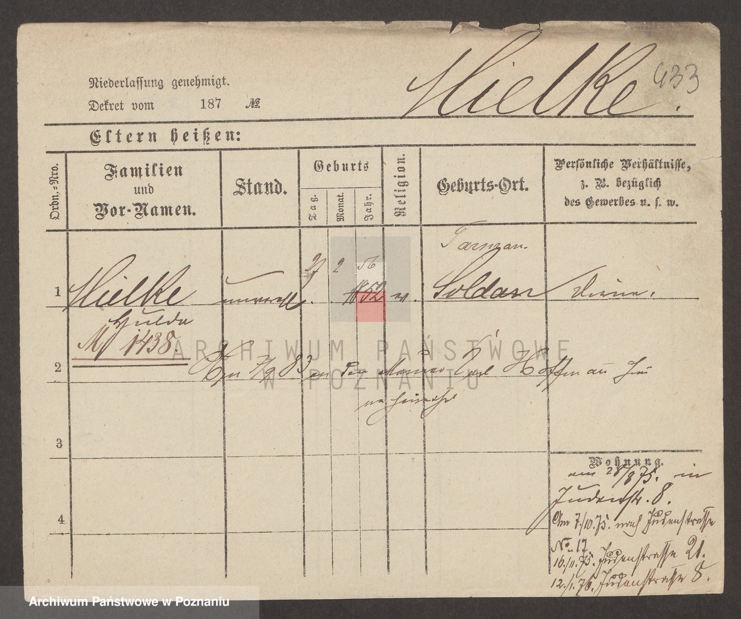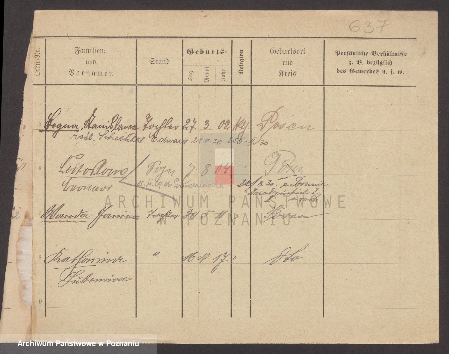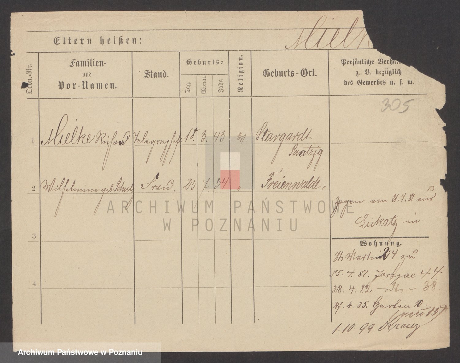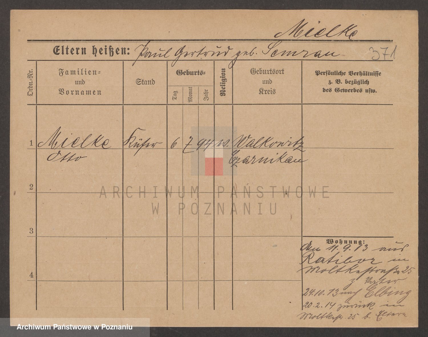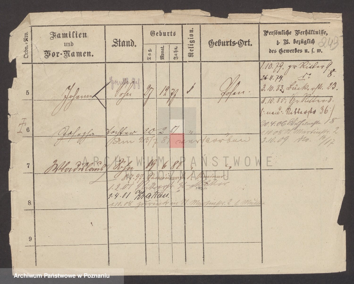 Podgląd karty osobowej dostępny jest po kliknięciu na nazwisko lub ikonkę karty. Można dokonywać powiększenia (ikony na górze) lub przechodzić między kolejnymi skanami (strzałki po bokach).