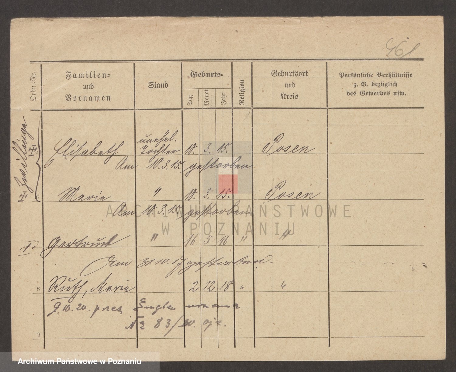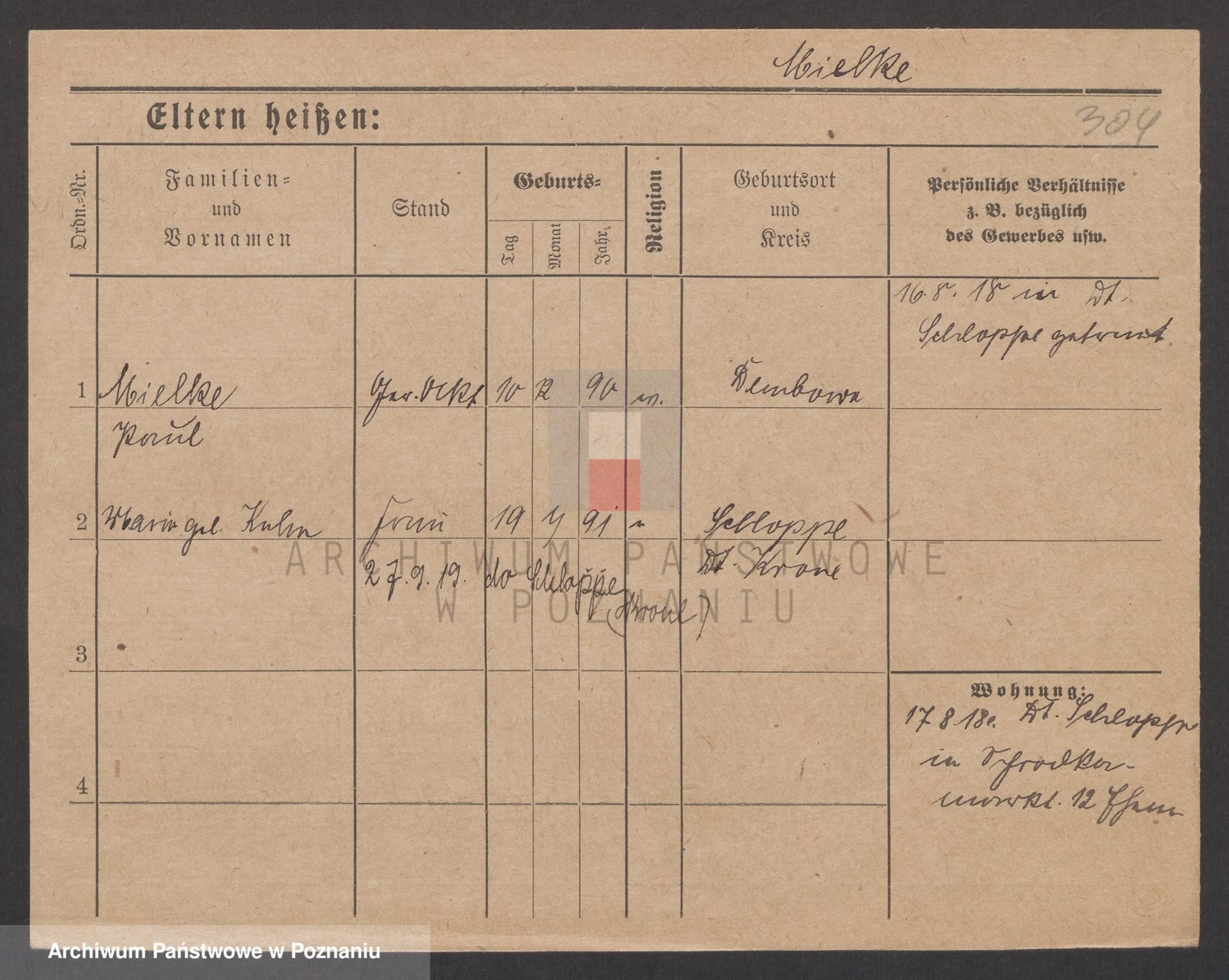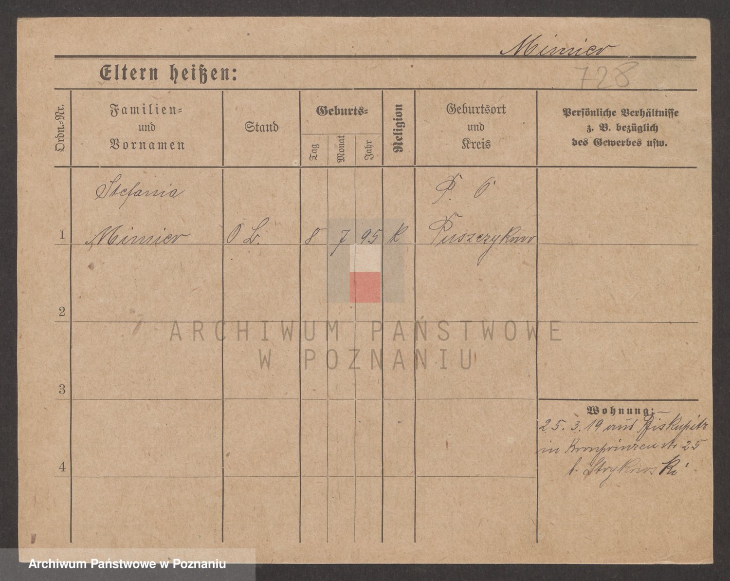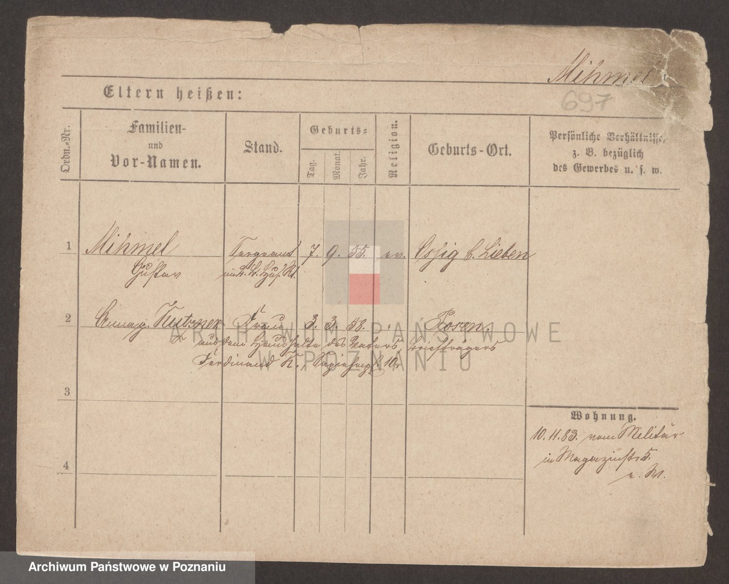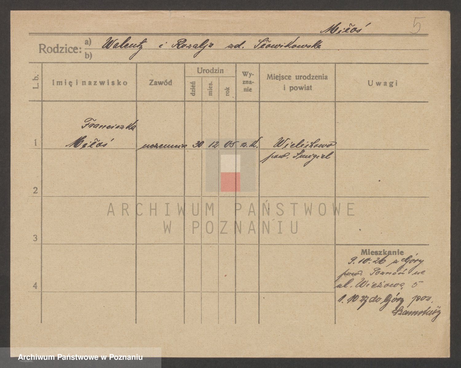 Podgląd karty osobowej dostępny jest po kliknięciu na nazwisko lub ikonkę karty. Można dokonywać powiększenia (ikony na górze) lub przechodzić między kolejnymi skanami (strzałki po bokach).