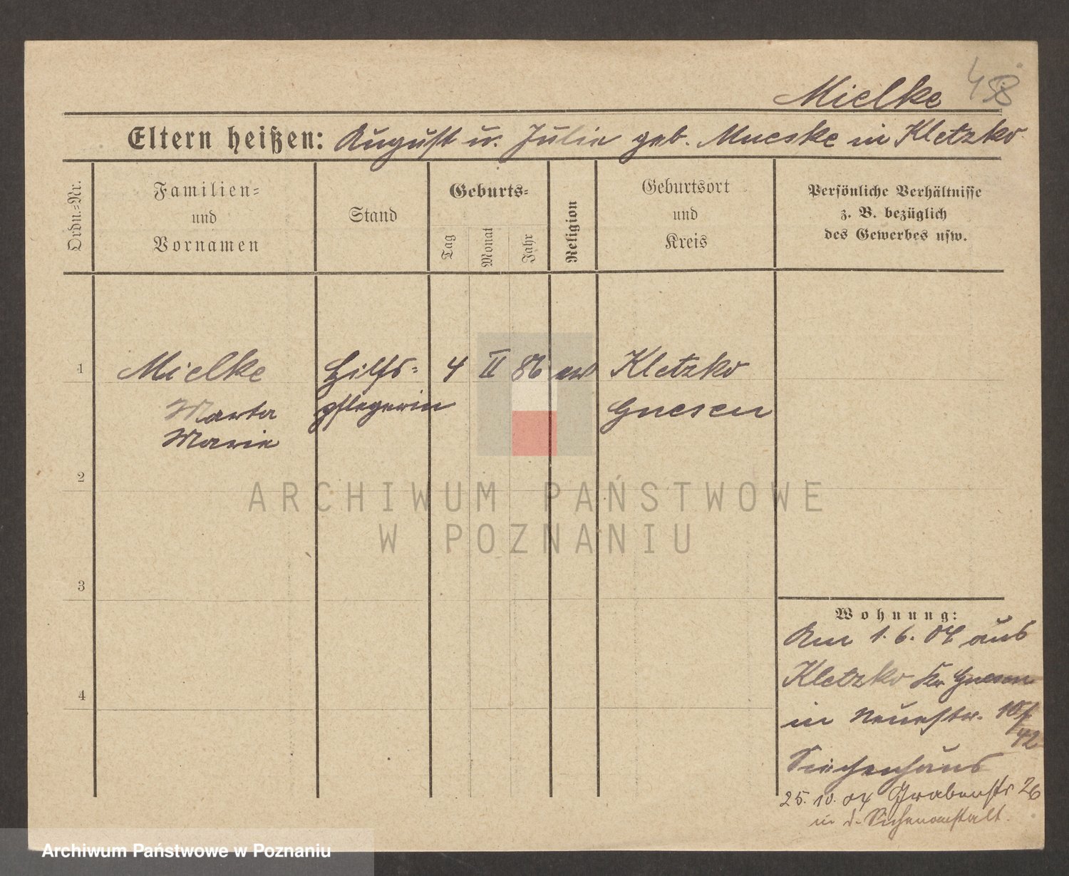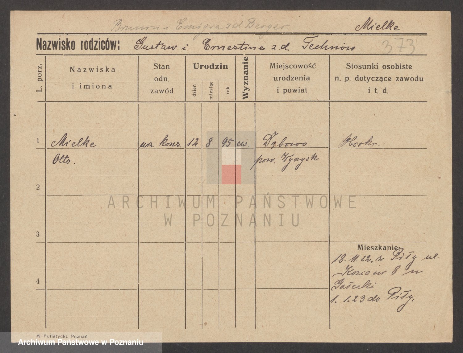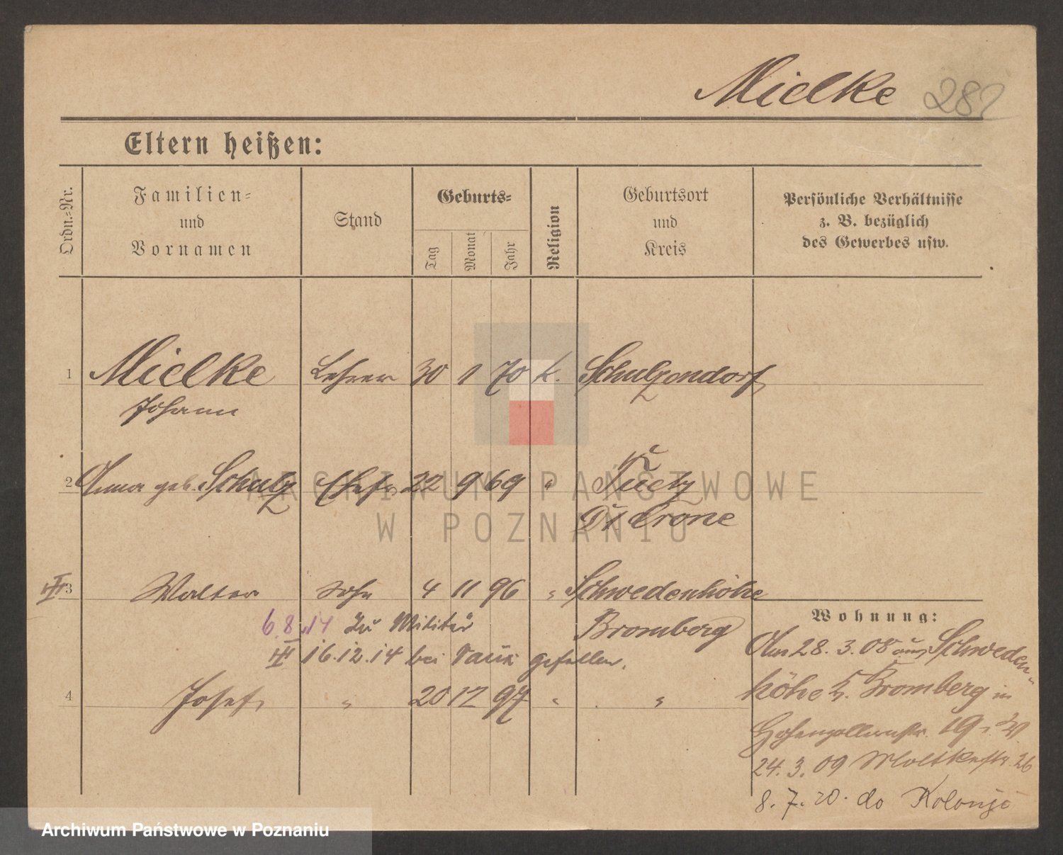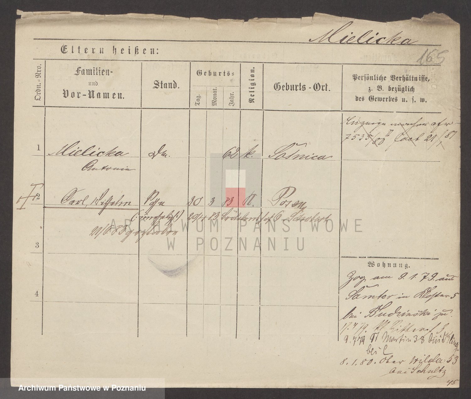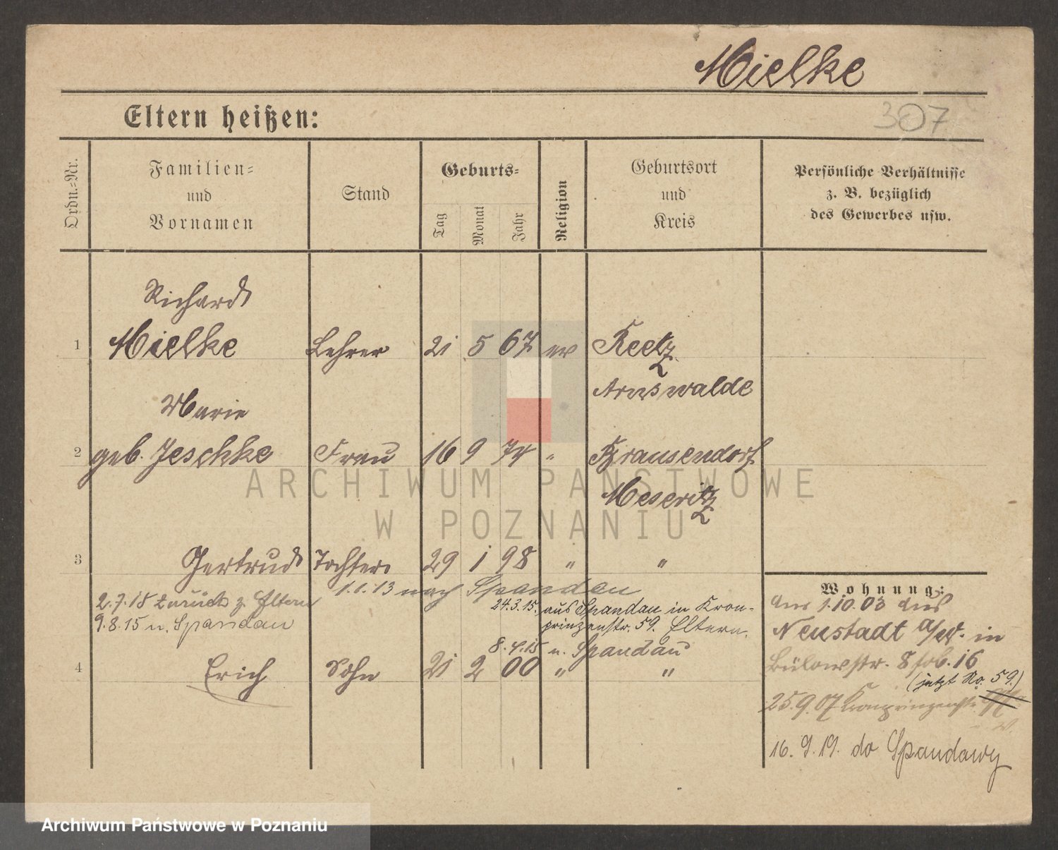 Podgląd karty osobowej dostępny jest po kliknięciu na nazwisko lub ikonkę karty. Można dokonywać powiększenia (ikony na górze) lub przechodzić między kolejnymi skanami (strzałki po bokach).