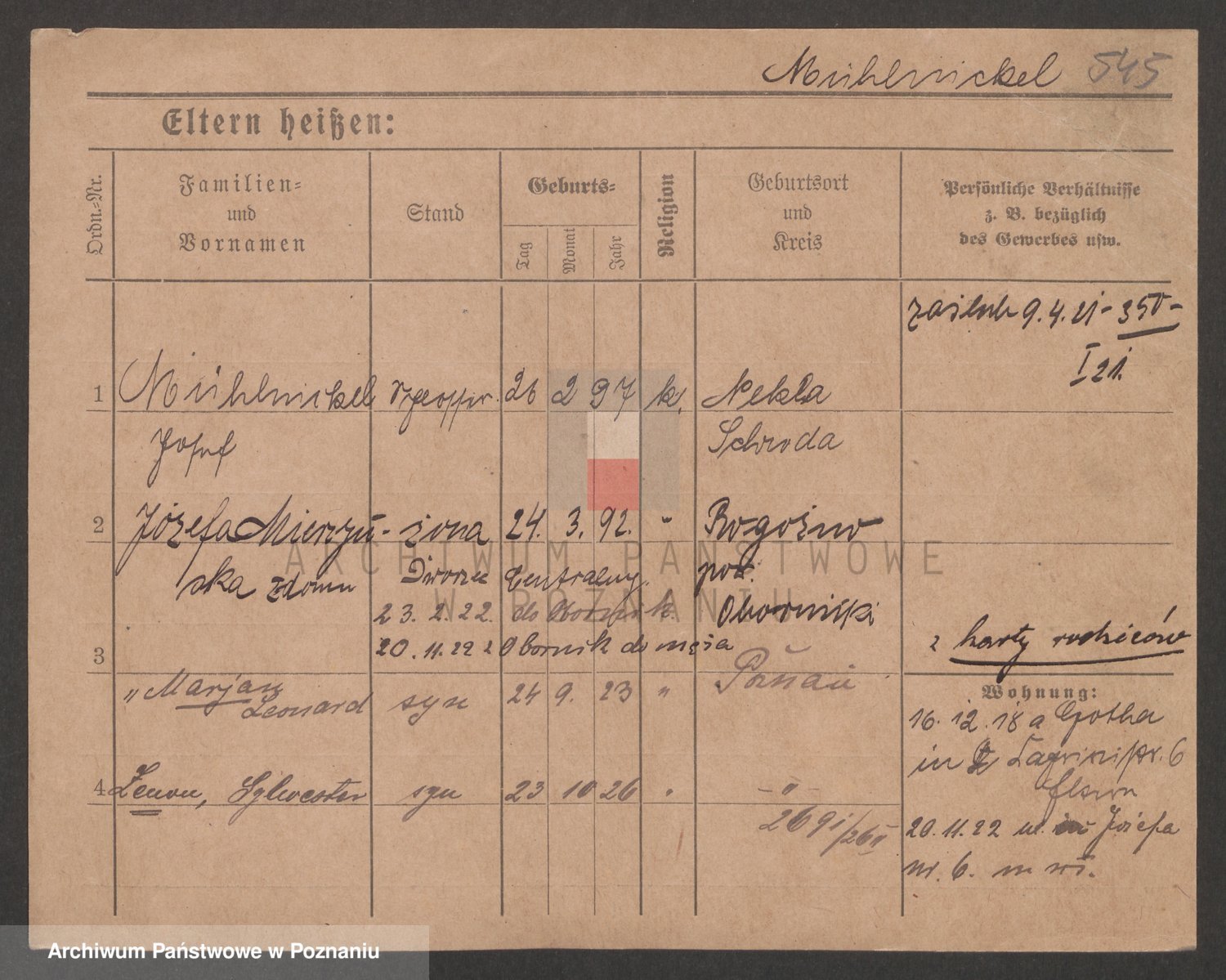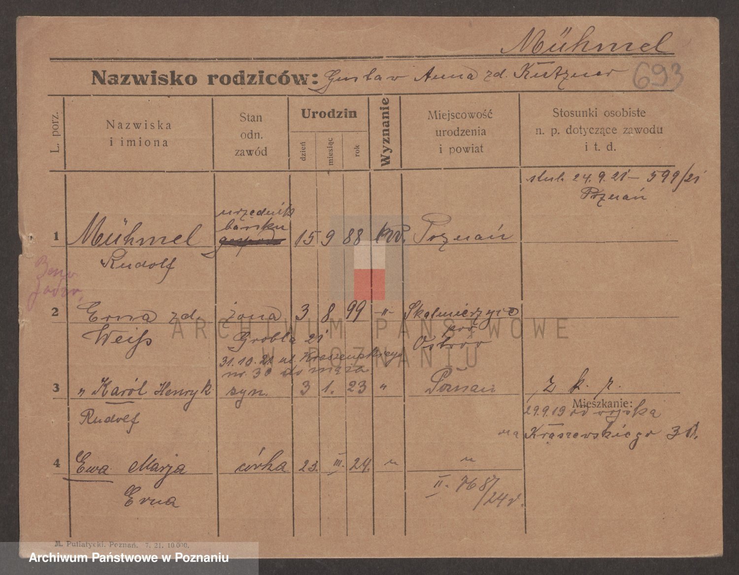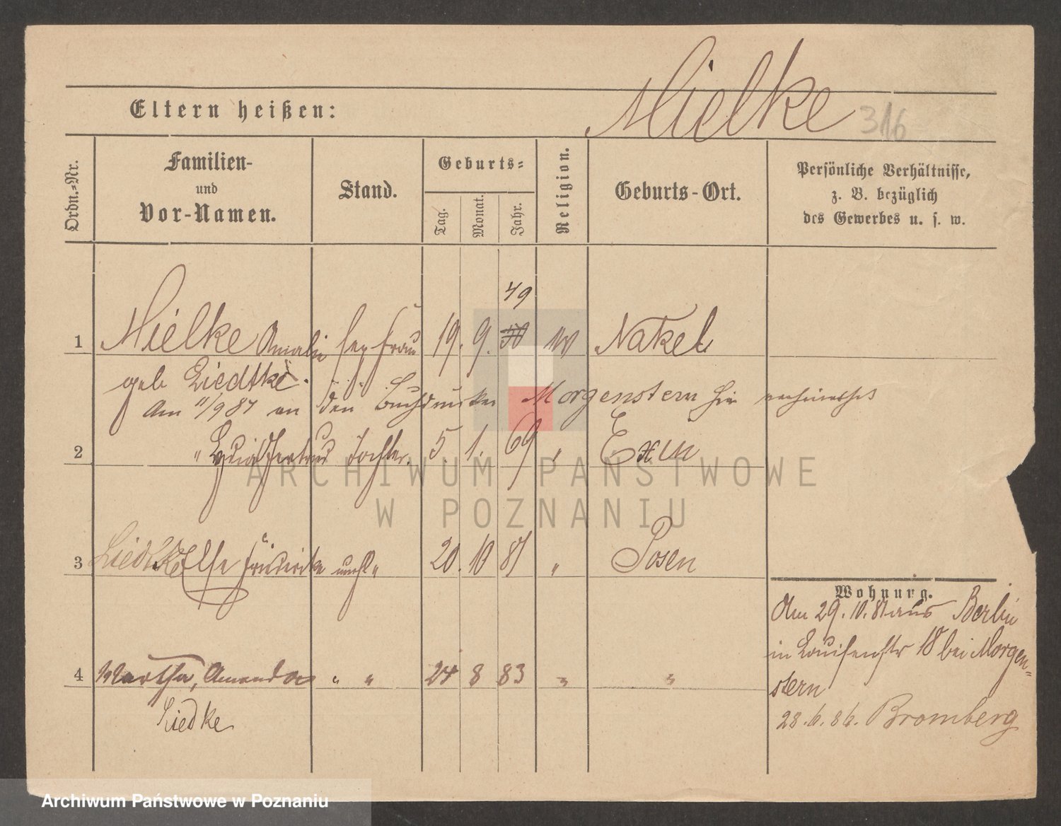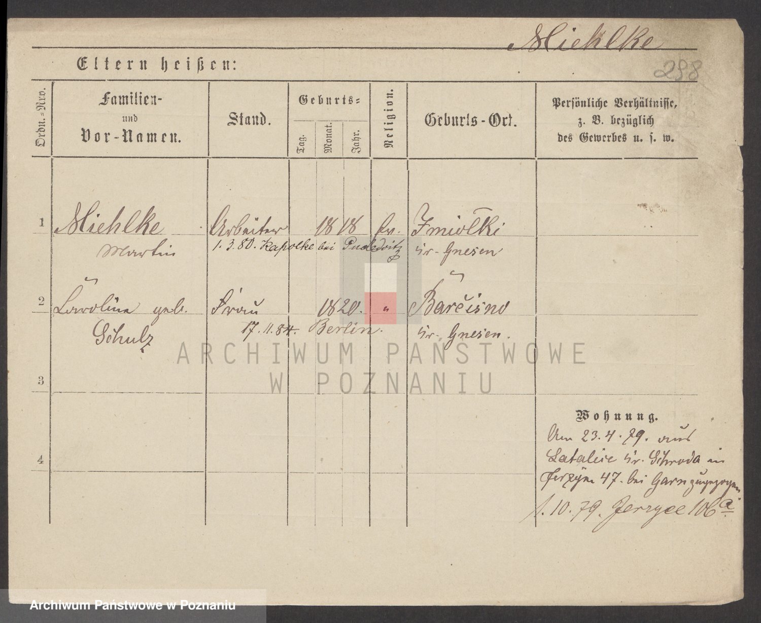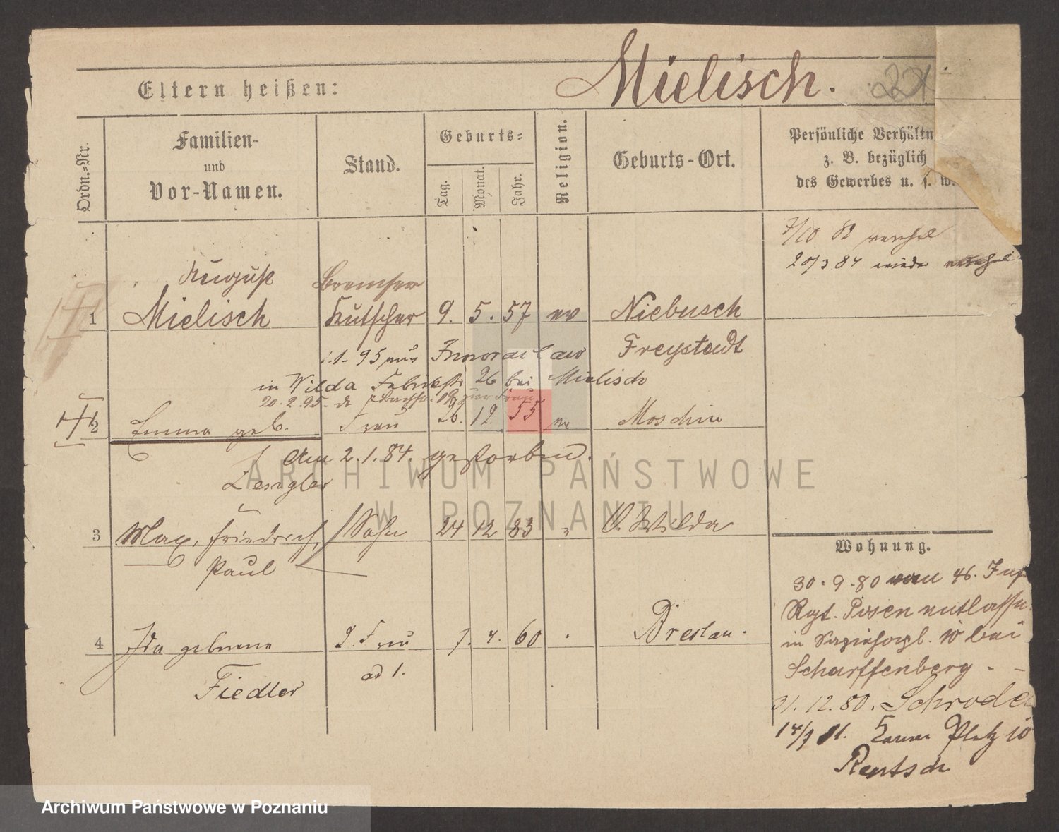 Podgląd karty osobowej dostępny jest po kliknięciu na nazwisko lub ikonkę karty. Można dokonywać powiększenia (ikony na górze) lub przechodzić między kolejnymi skanami (strzałki po bokach).