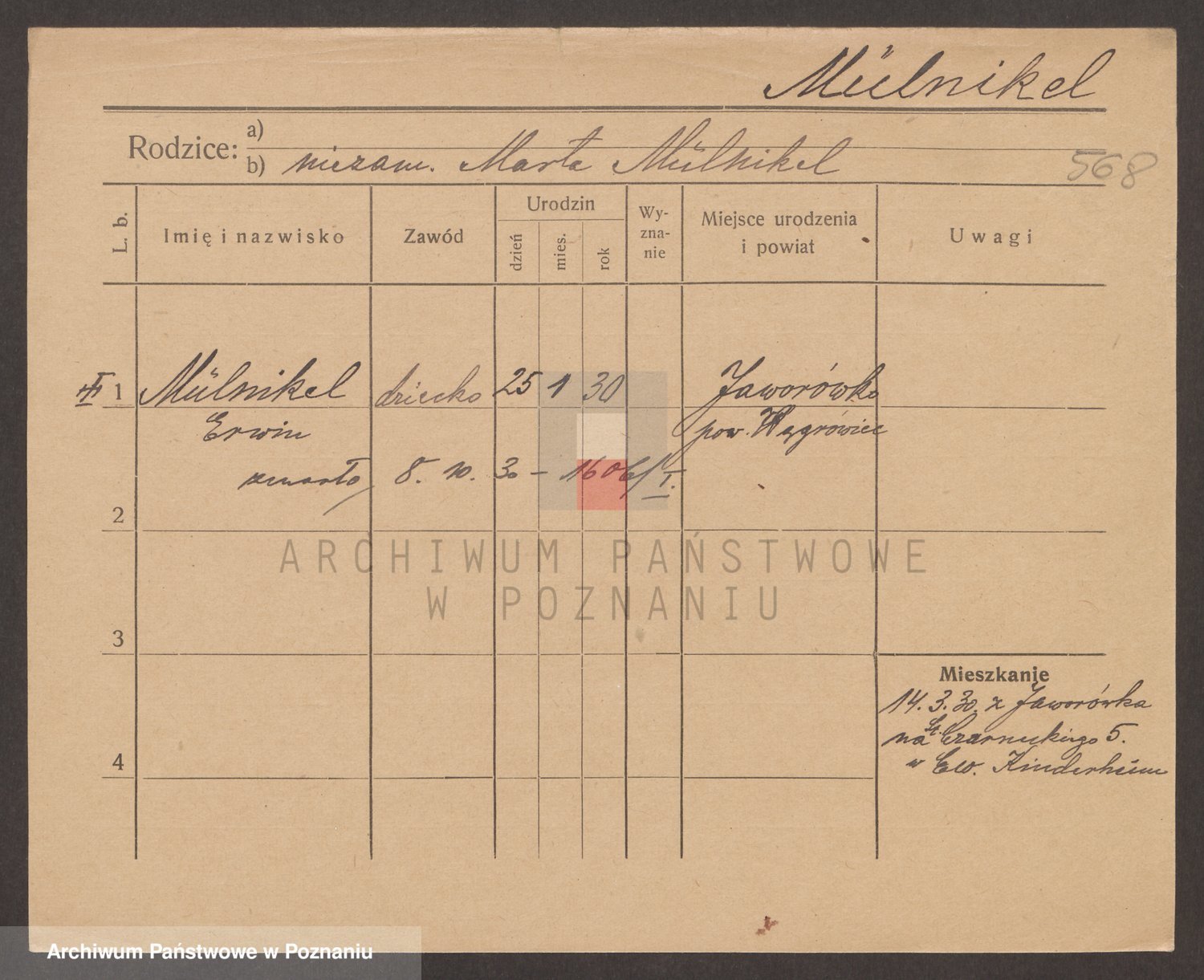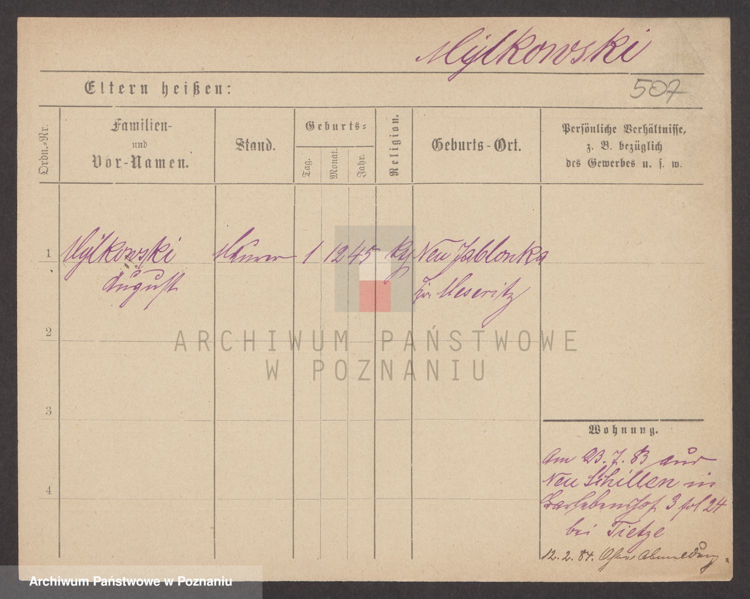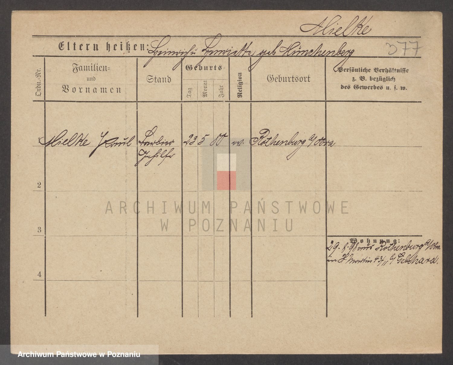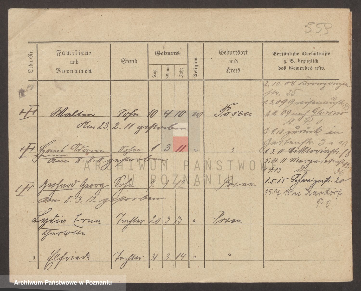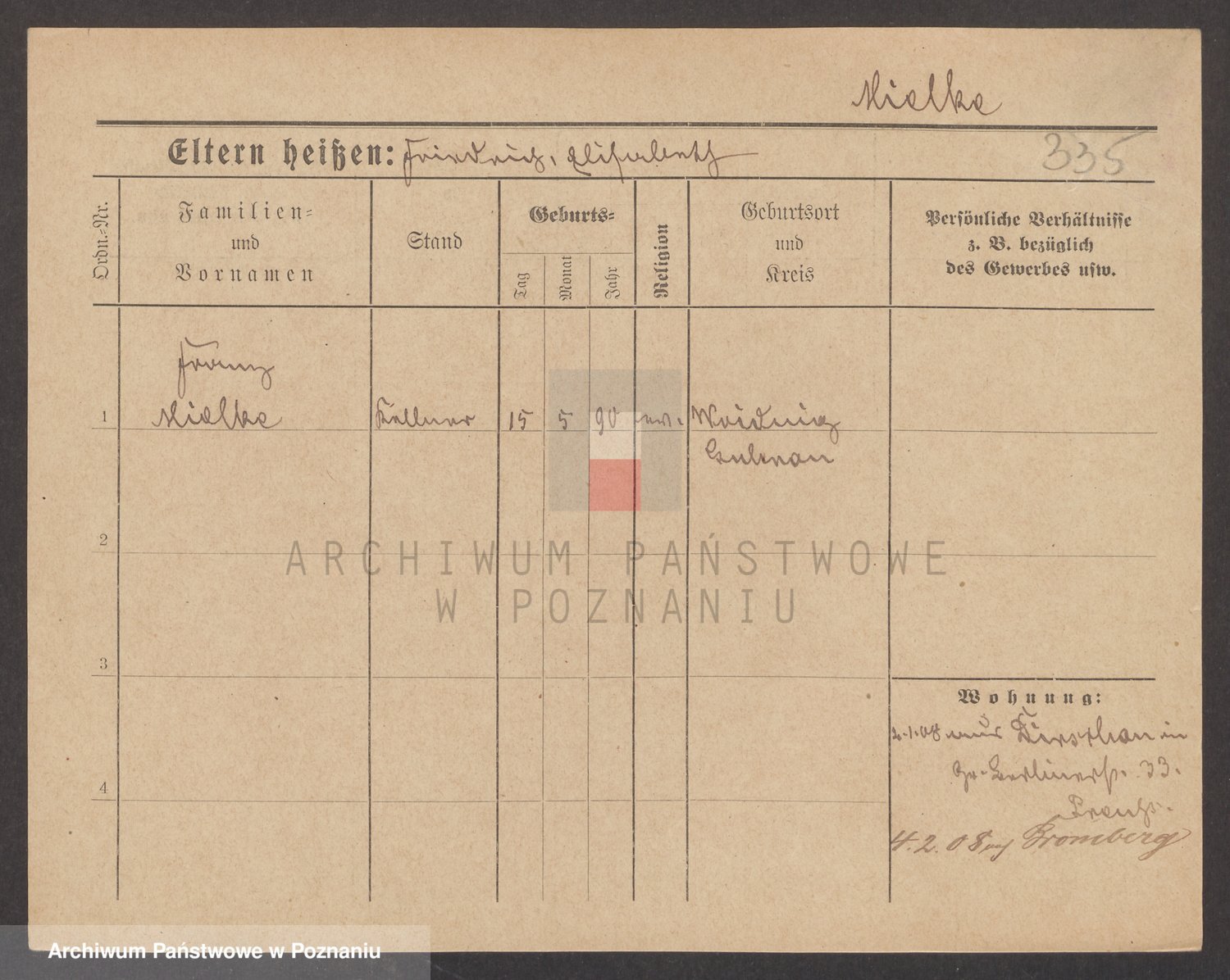 Podgląd karty osobowej dostępny jest po kliknięciu na nazwisko lub ikonkę karty. Można dokonywać powiększenia (ikony na górze) lub przechodzić między kolejnymi skanami (strzałki po bokach).