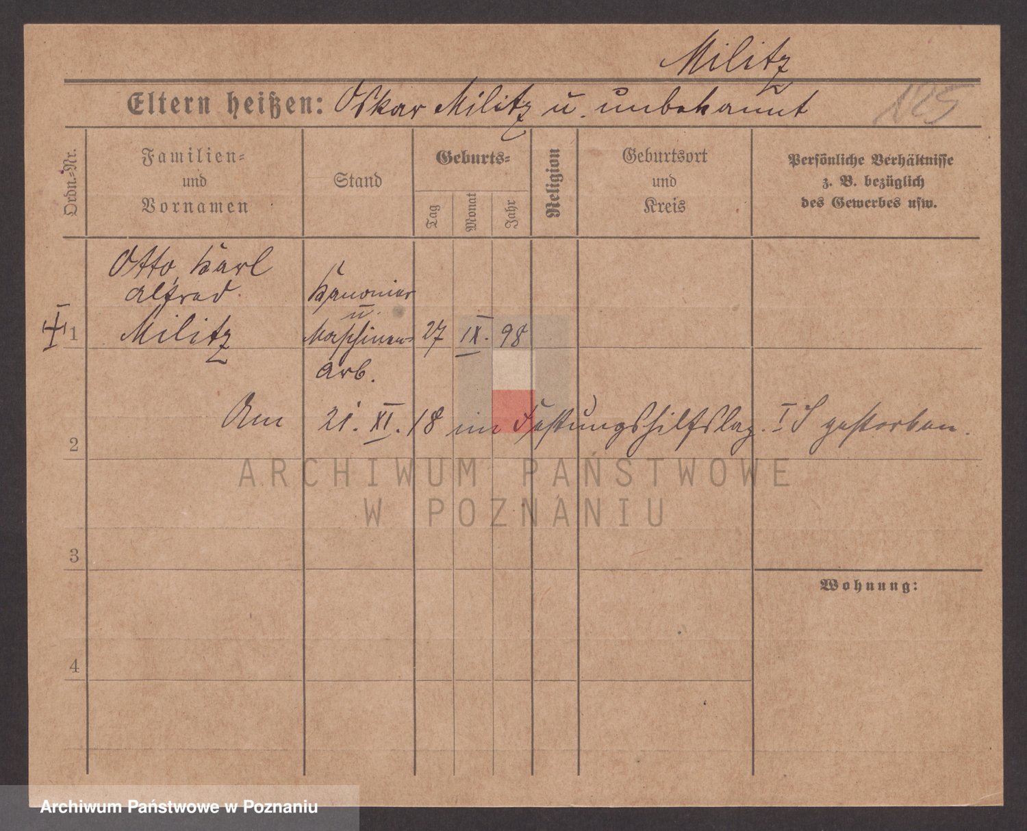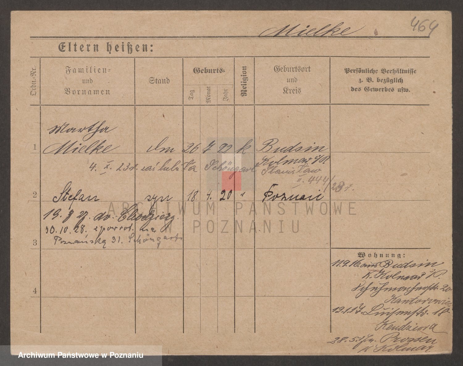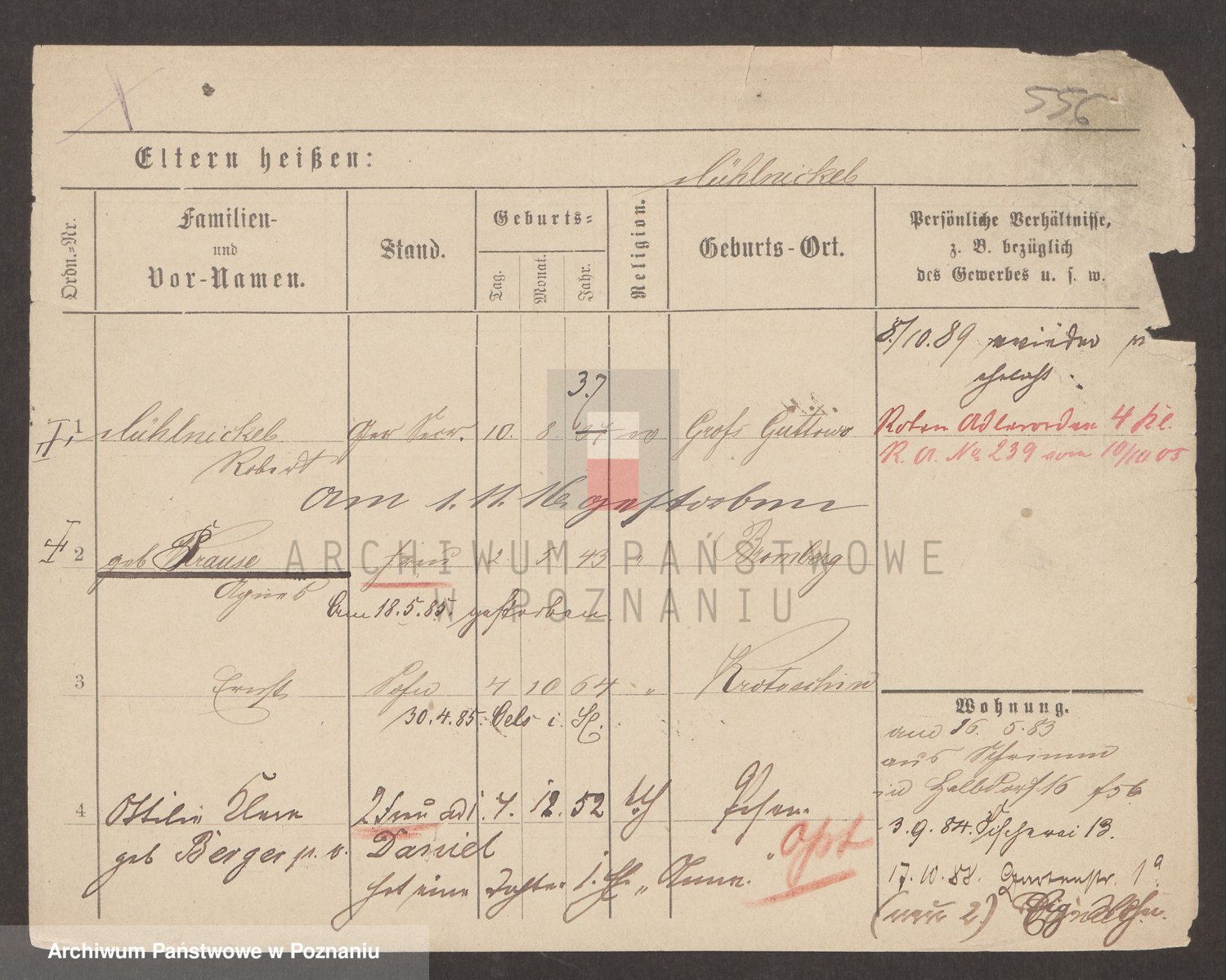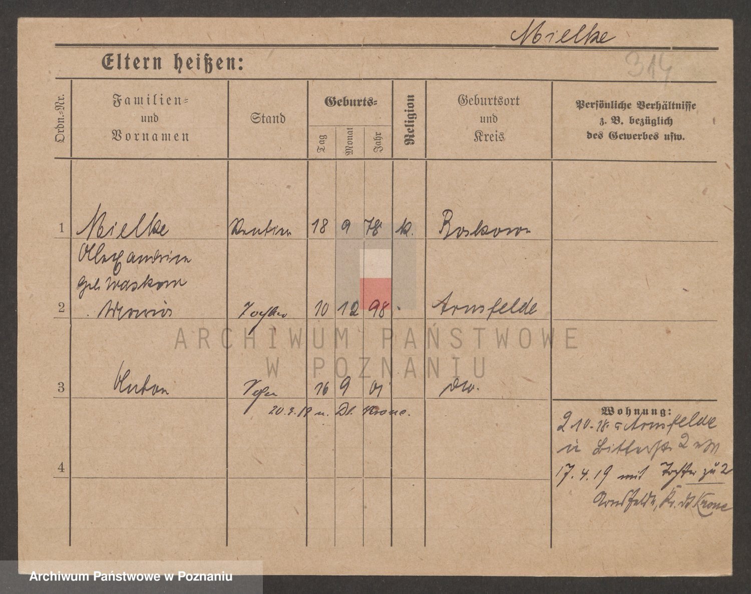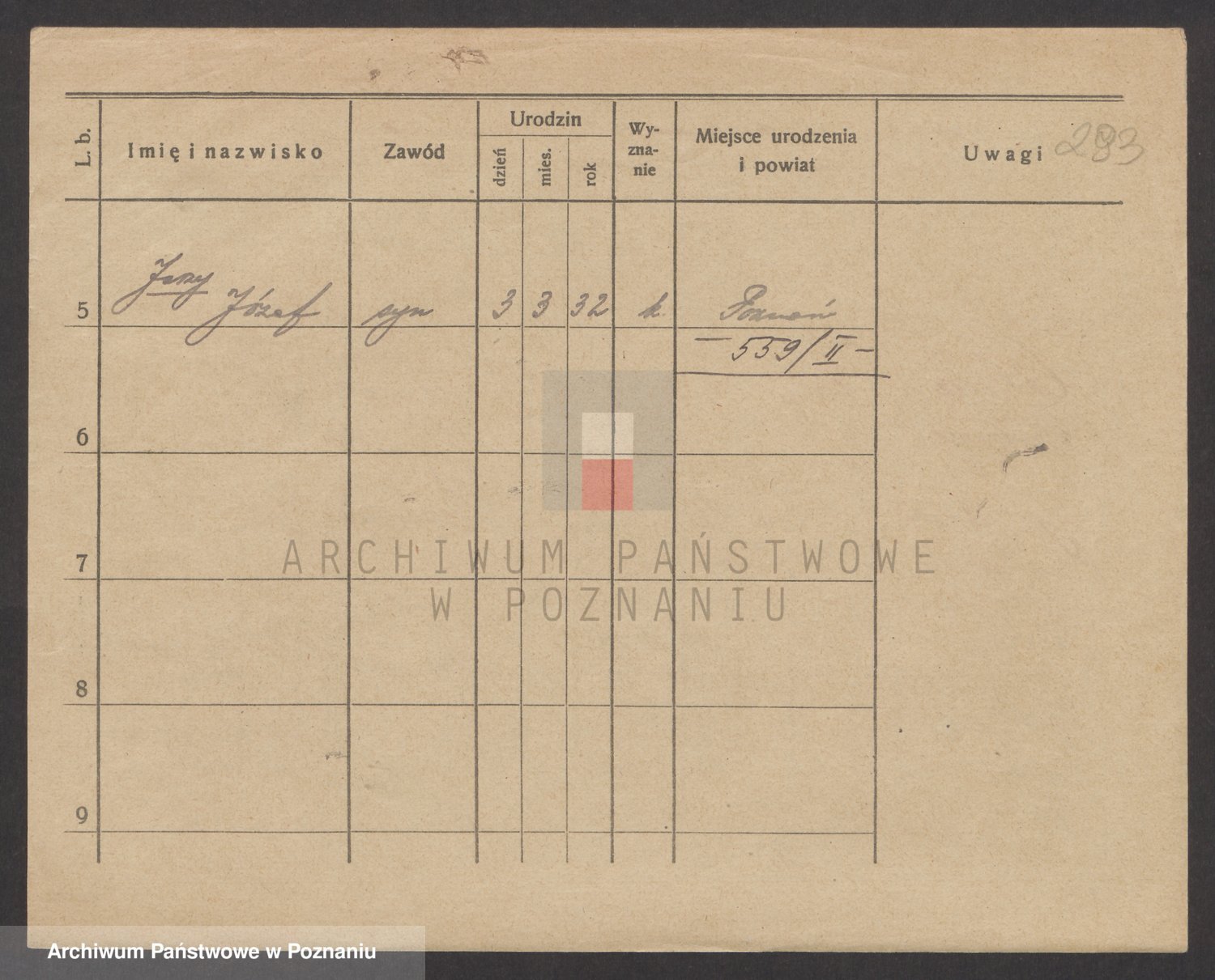 Podgląd karty osobowej dostępny jest po kliknięciu na nazwisko lub ikonkę karty. Można dokonywać powiększenia (ikony na górze) lub przechodzić między kolejnymi skanami (strzałki po bokach).