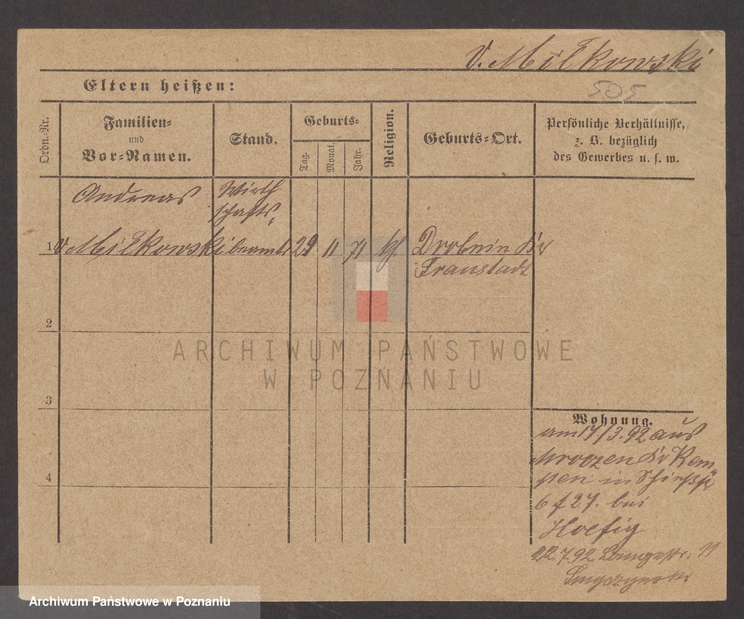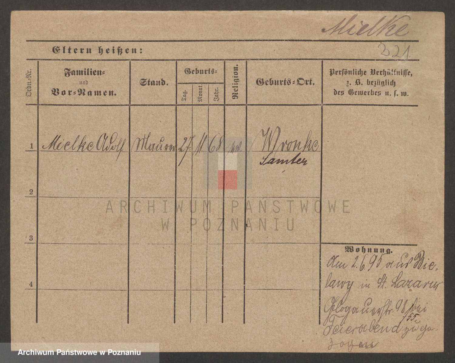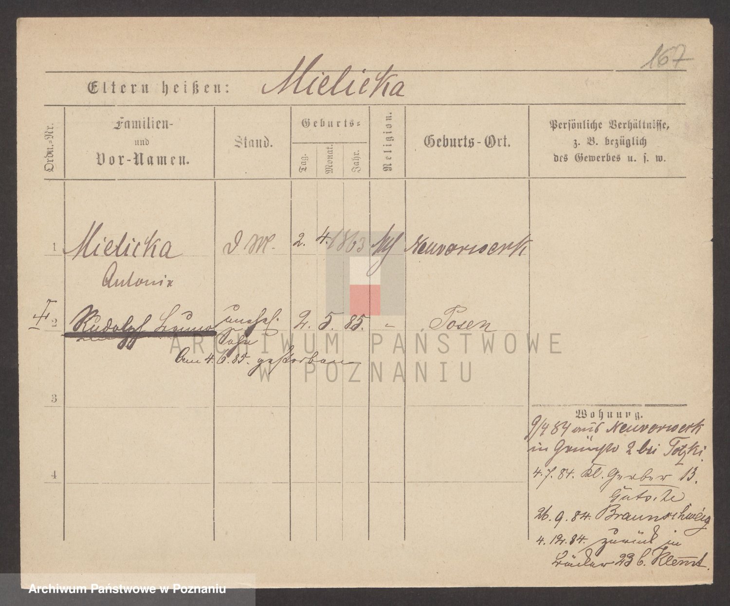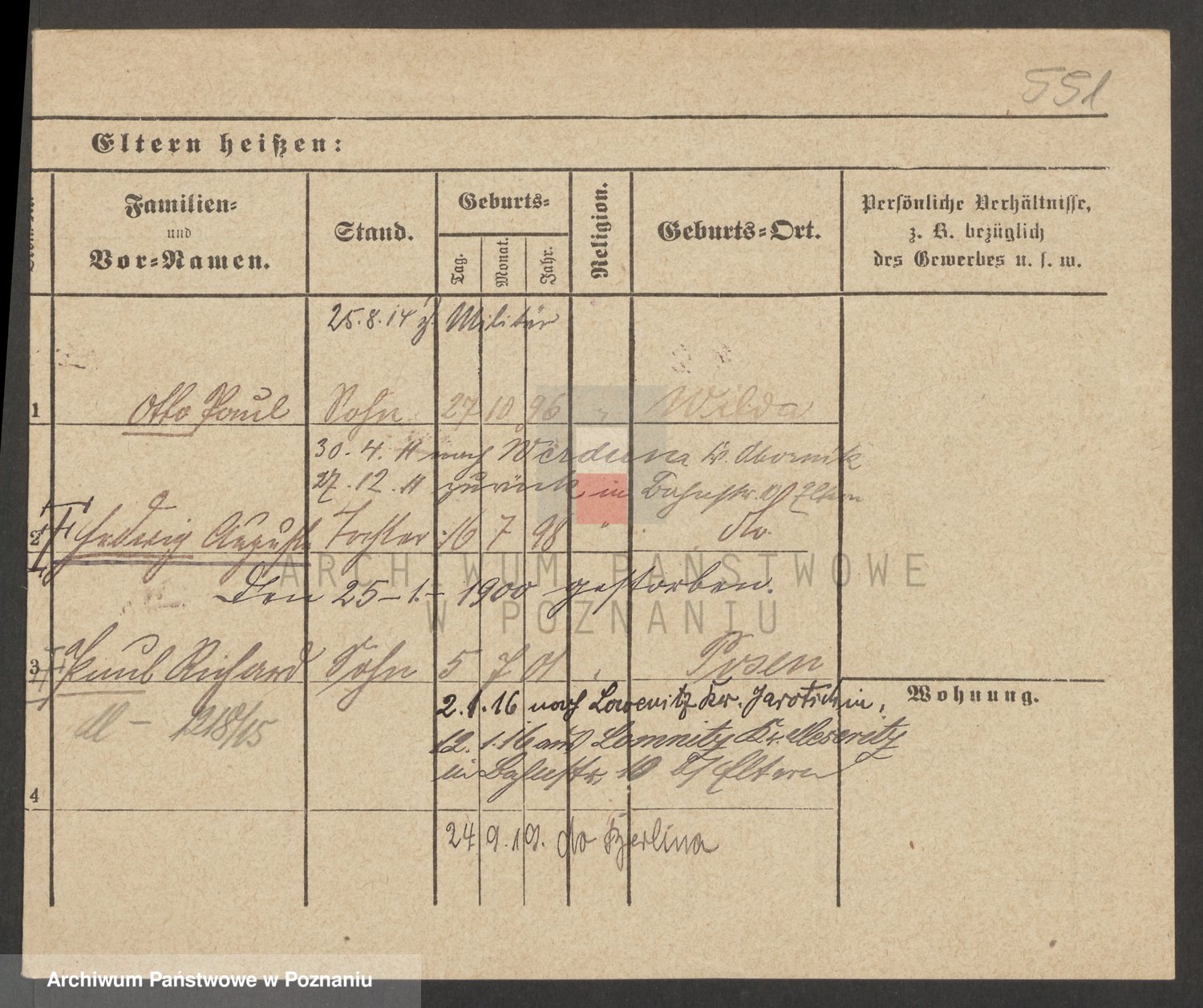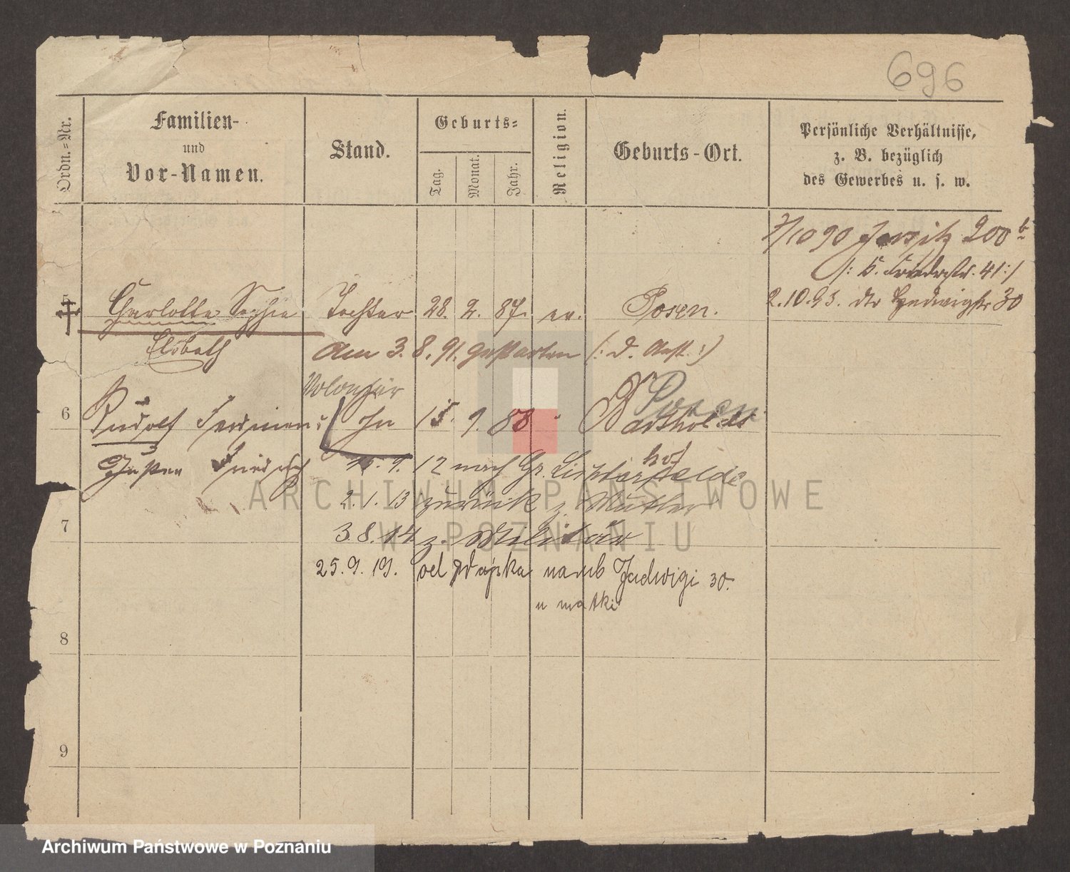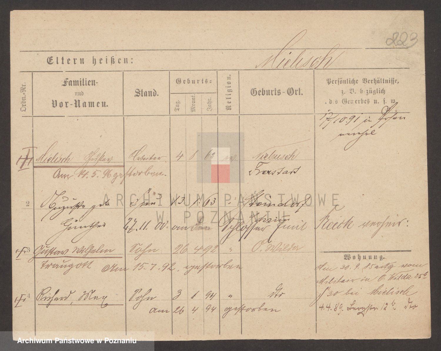 Podgląd karty osobowej dostępny jest po kliknięciu na nazwisko lub ikonkę karty. Można dokonywać powiększenia (ikony na górze) lub przechodzić między kolejnymi skanami (strzałki po bokach).