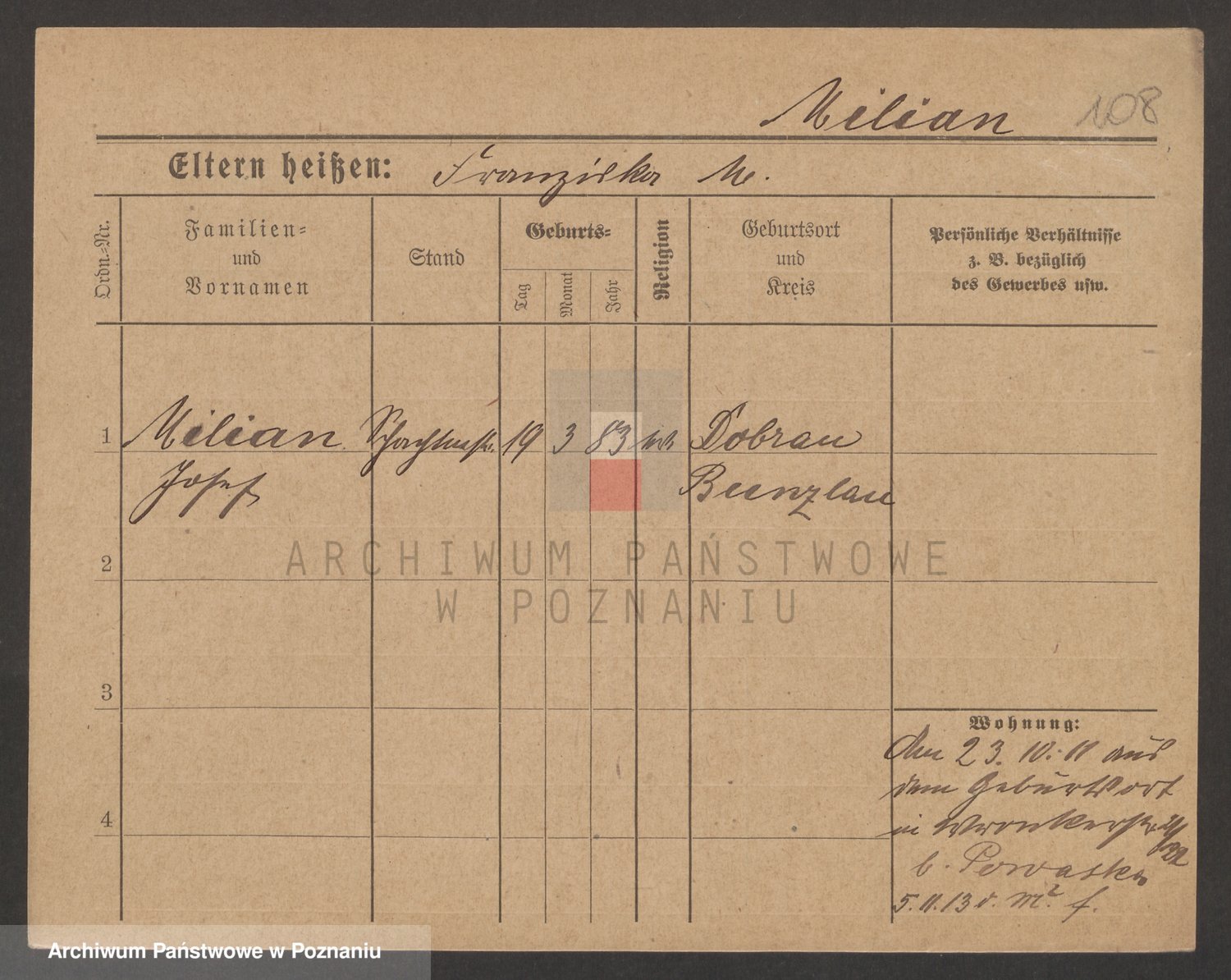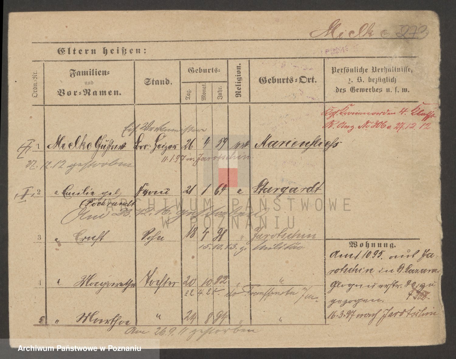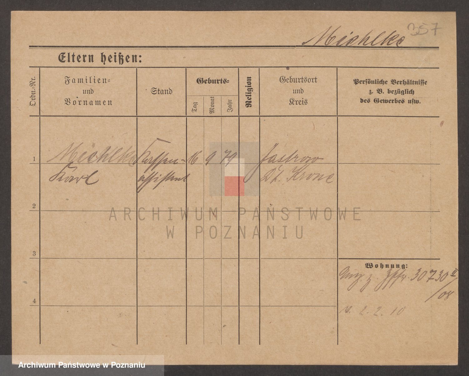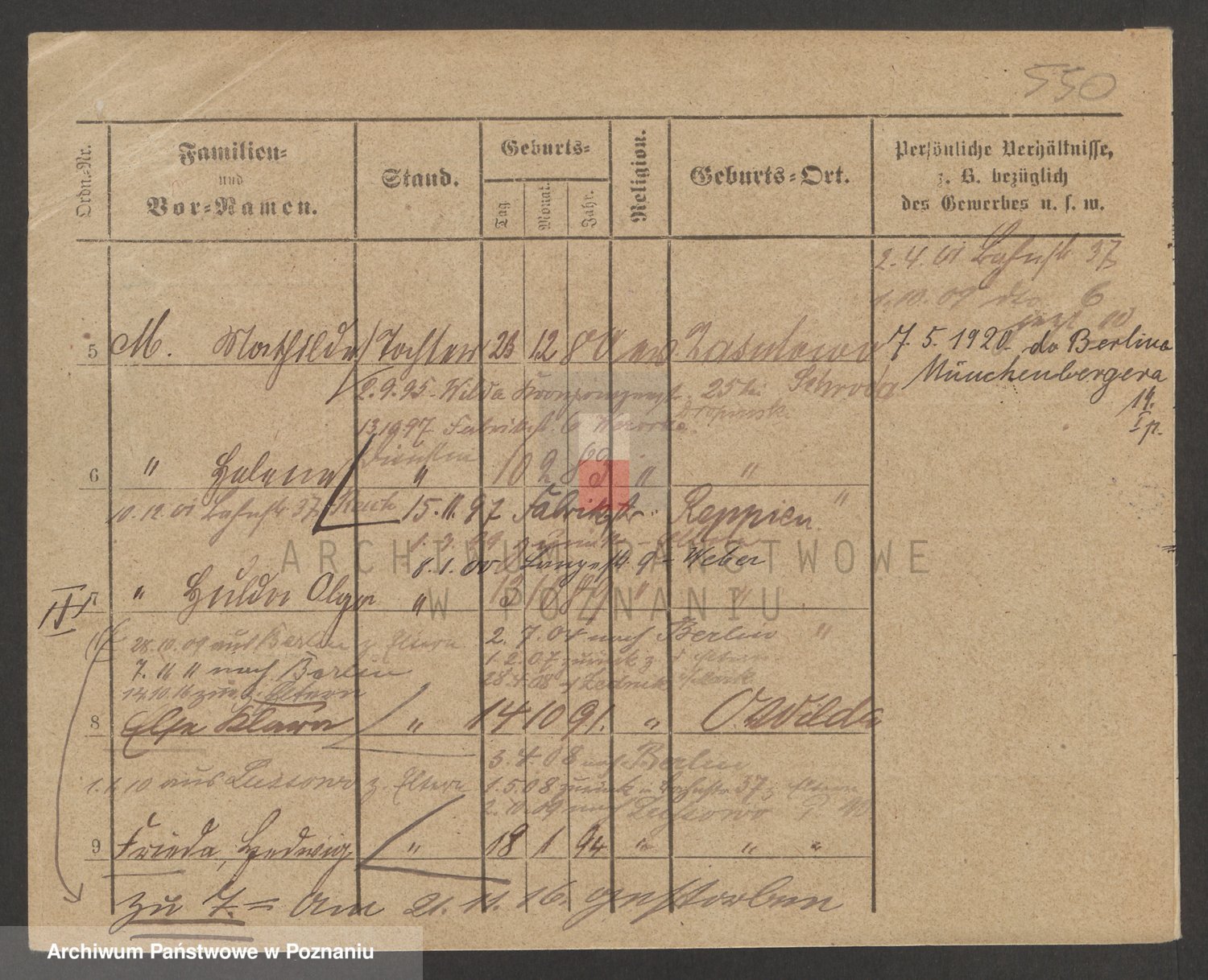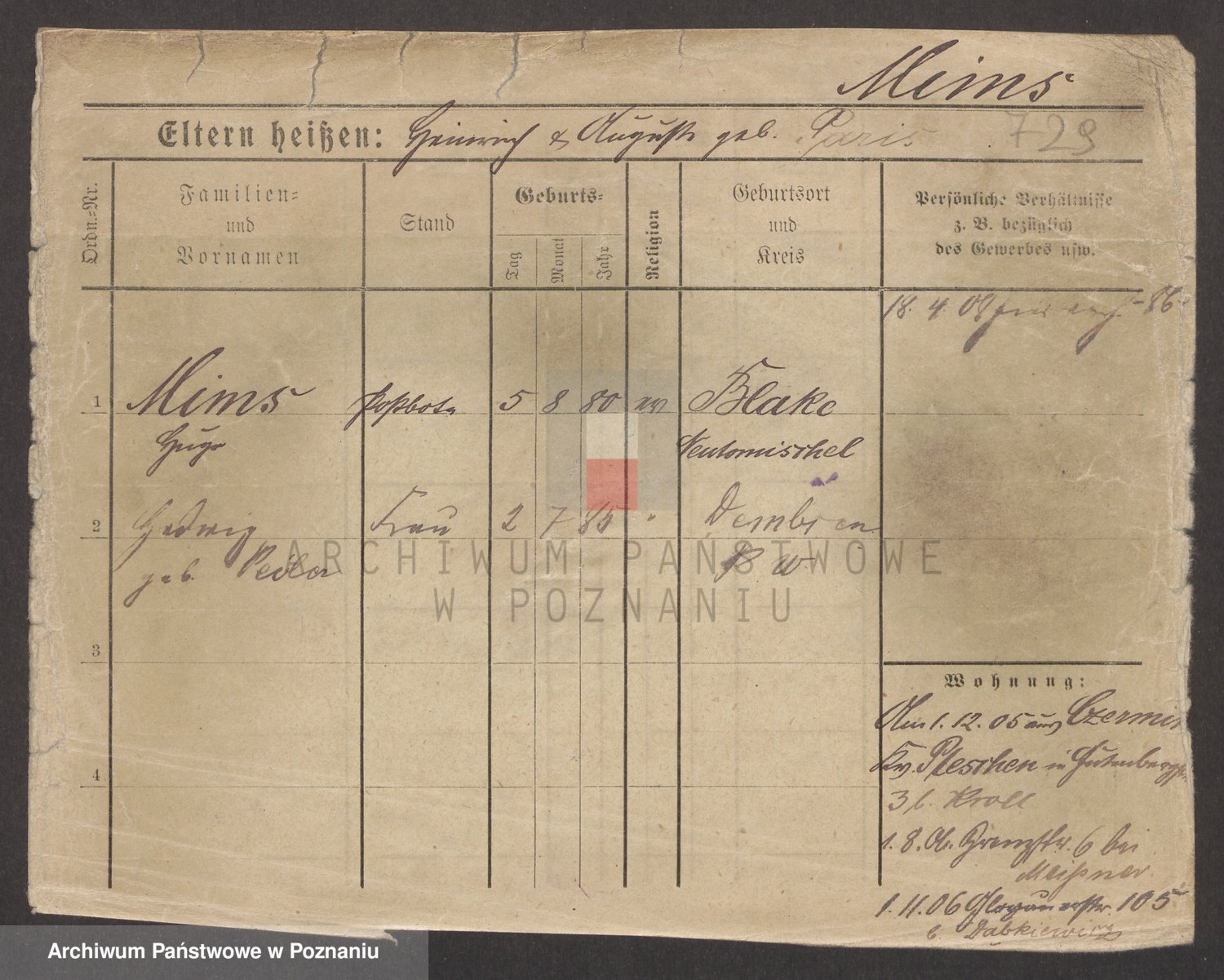 Podgląd karty osobowej dostępny jest po kliknięciu na nazwisko lub ikonkę karty. Można dokonywać powiększenia (ikony na górze) lub przechodzić między kolejnymi skanami (strzałki po bokach).