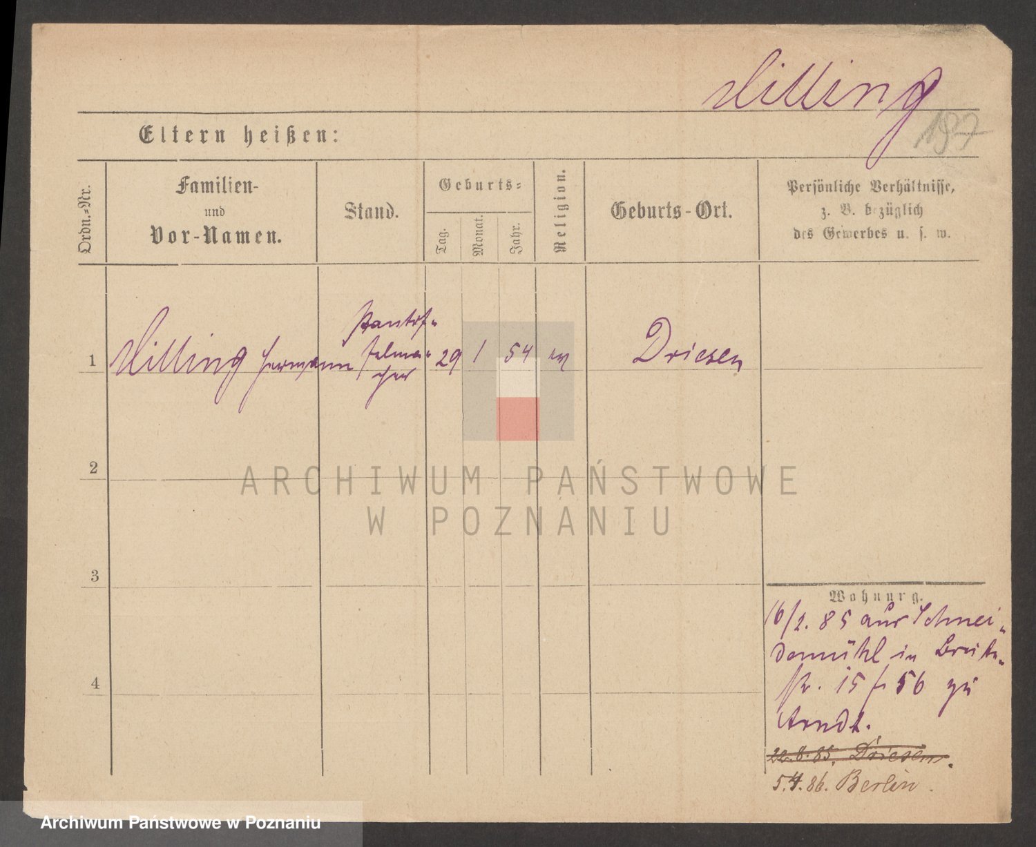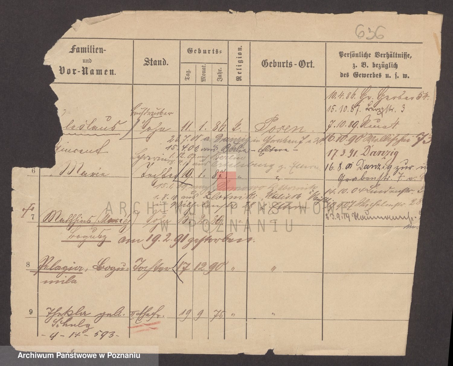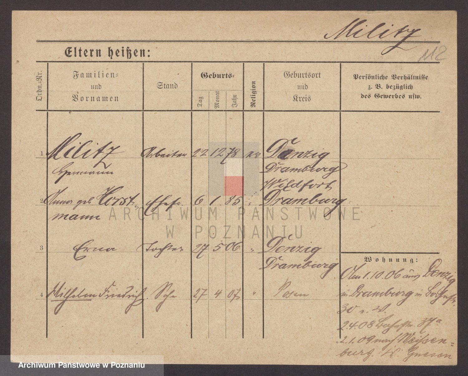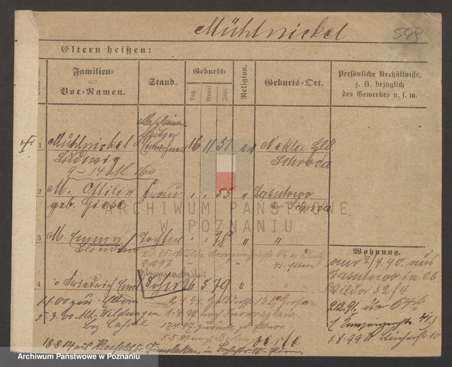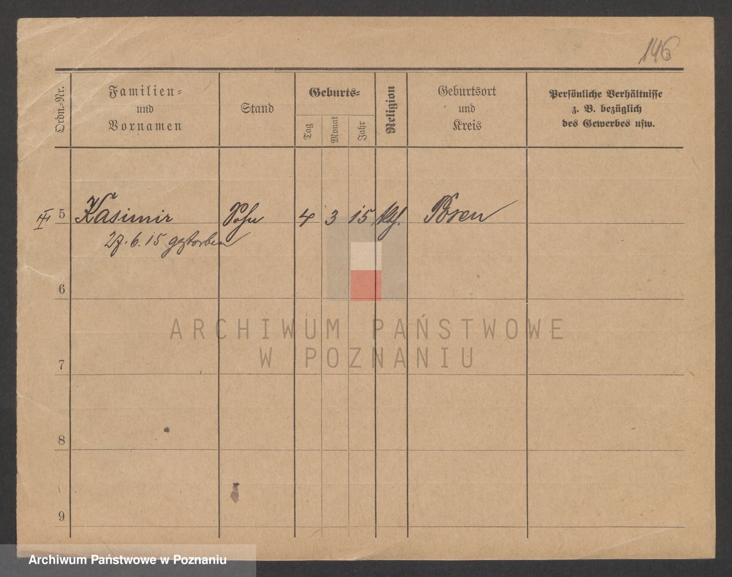 Podgląd karty osobowej dostępny jest po kliknięciu na nazwisko lub ikonkę karty. Można dokonywać powiększenia (ikony na górze) lub przechodzić między kolejnymi skanami (strzałki po bokach).