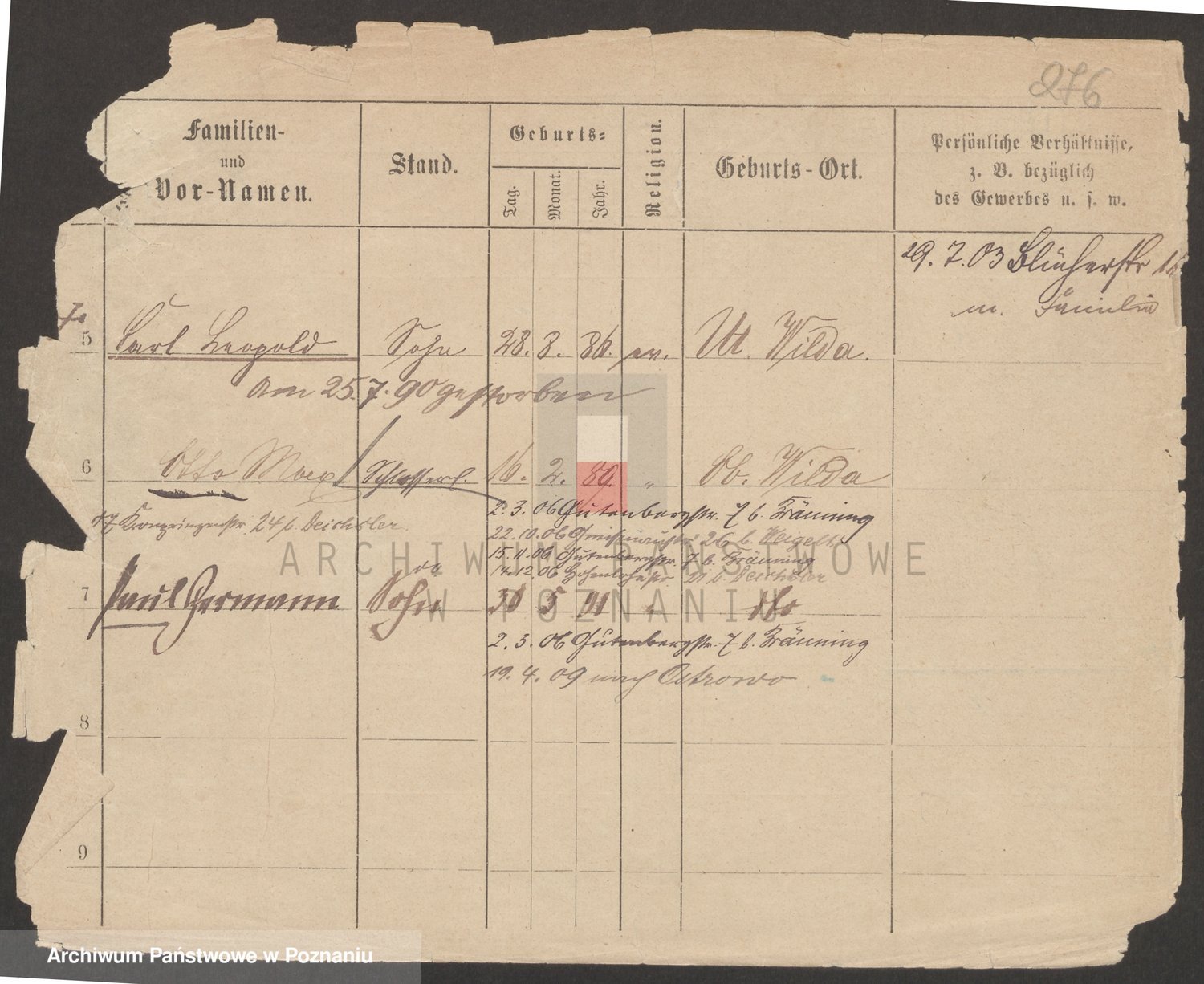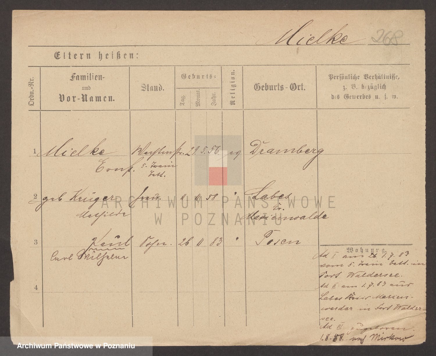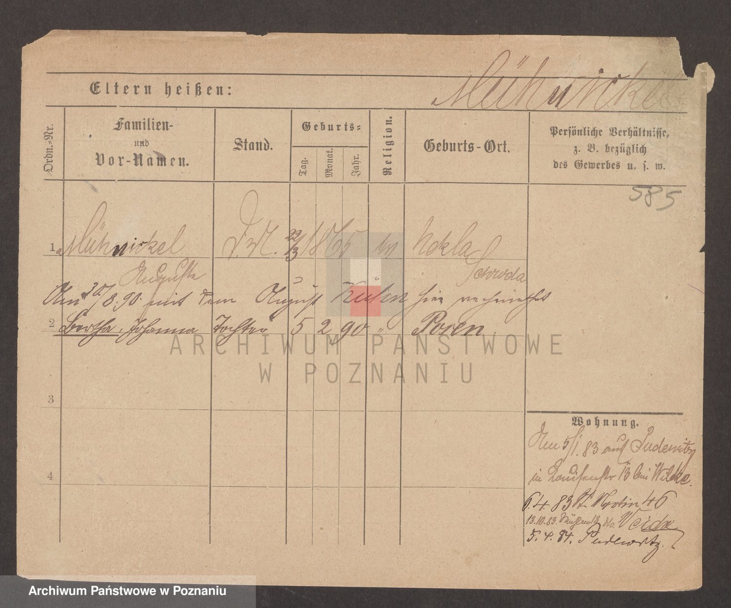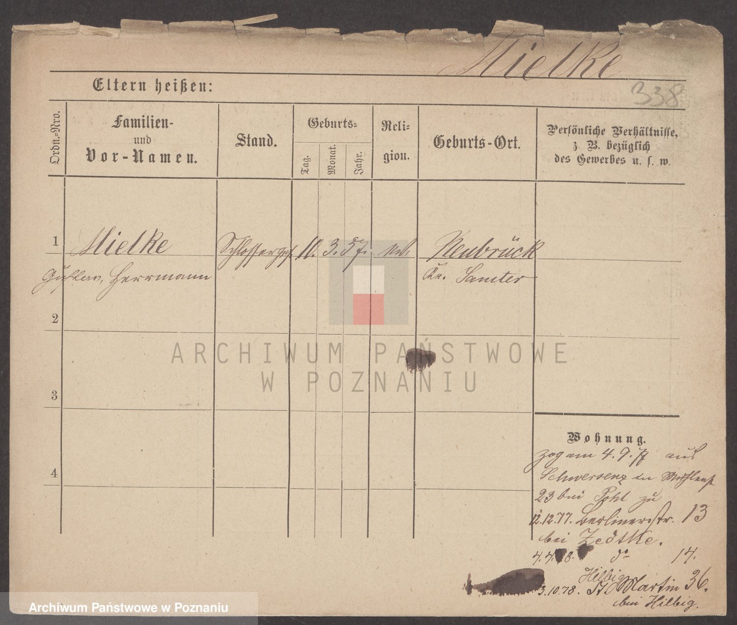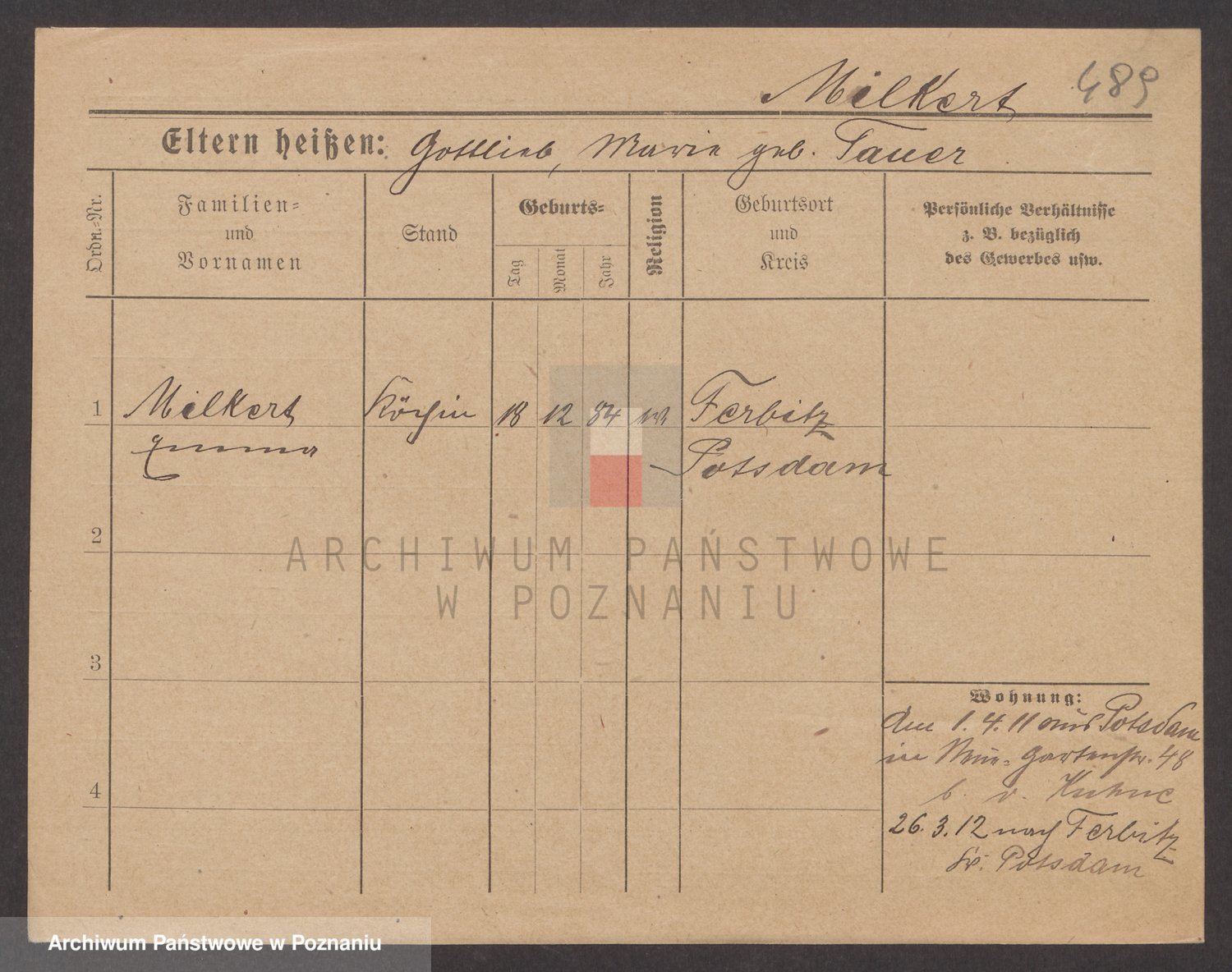 Podgląd karty osobowej dostępny jest po kliknięciu na nazwisko lub ikonkę karty. Można dokonywać powiększenia (ikony na górze) lub przechodzić między kolejnymi skanami (strzałki po bokach).