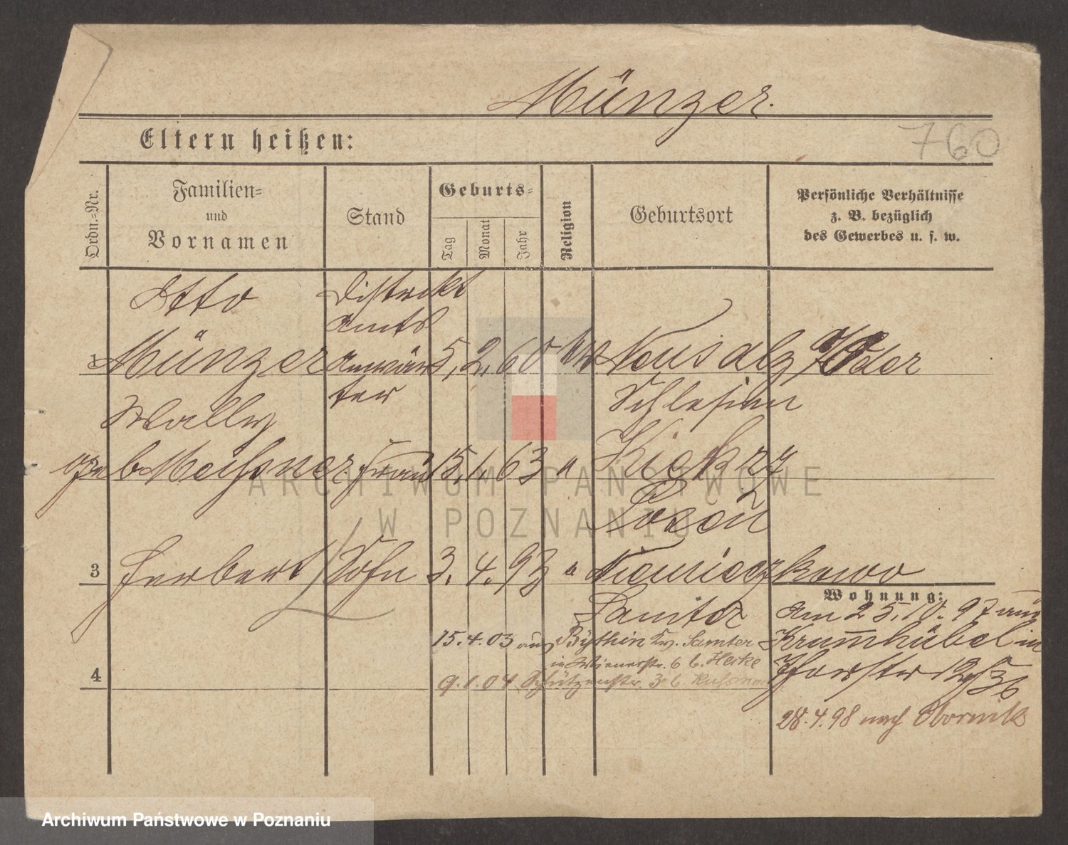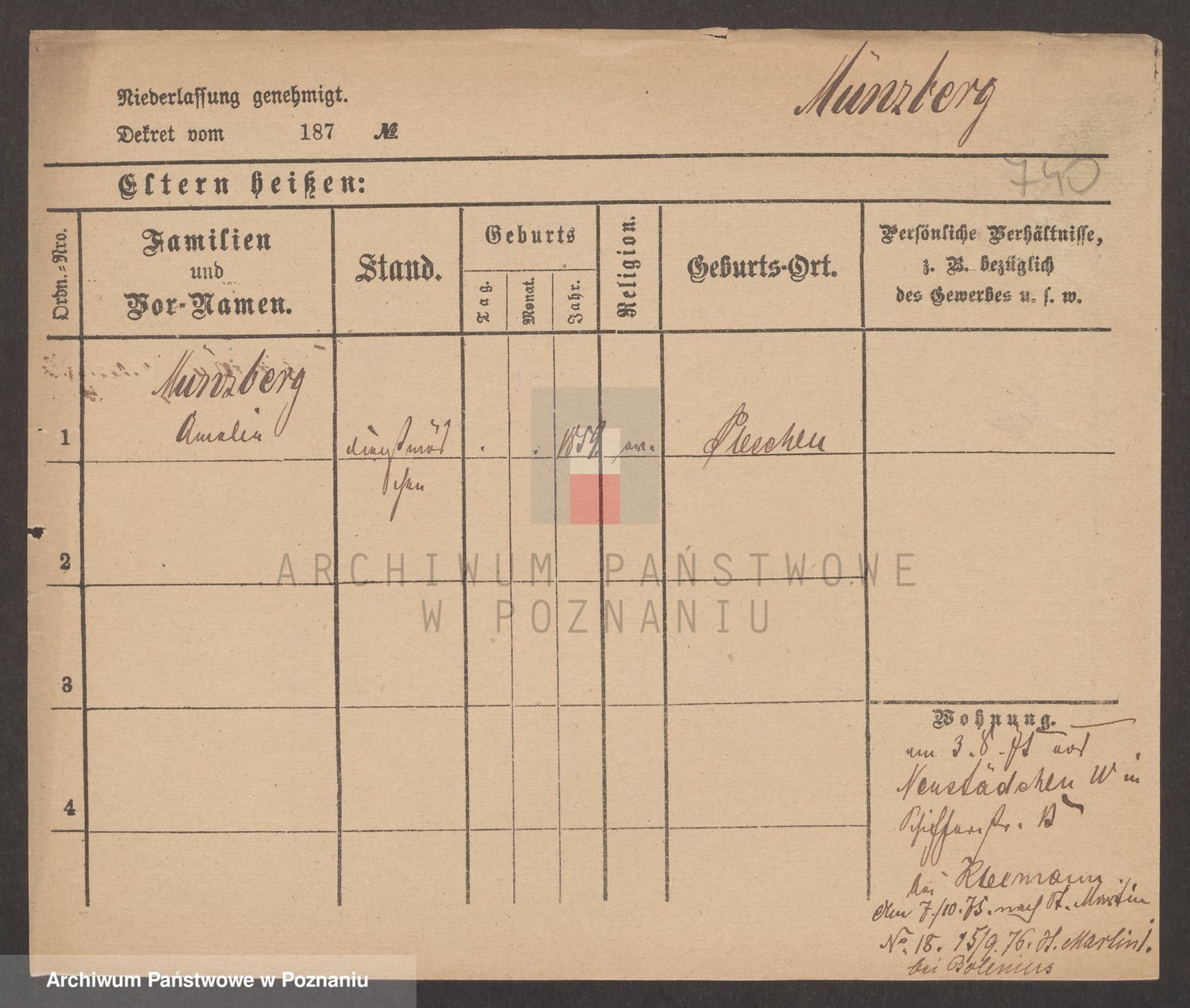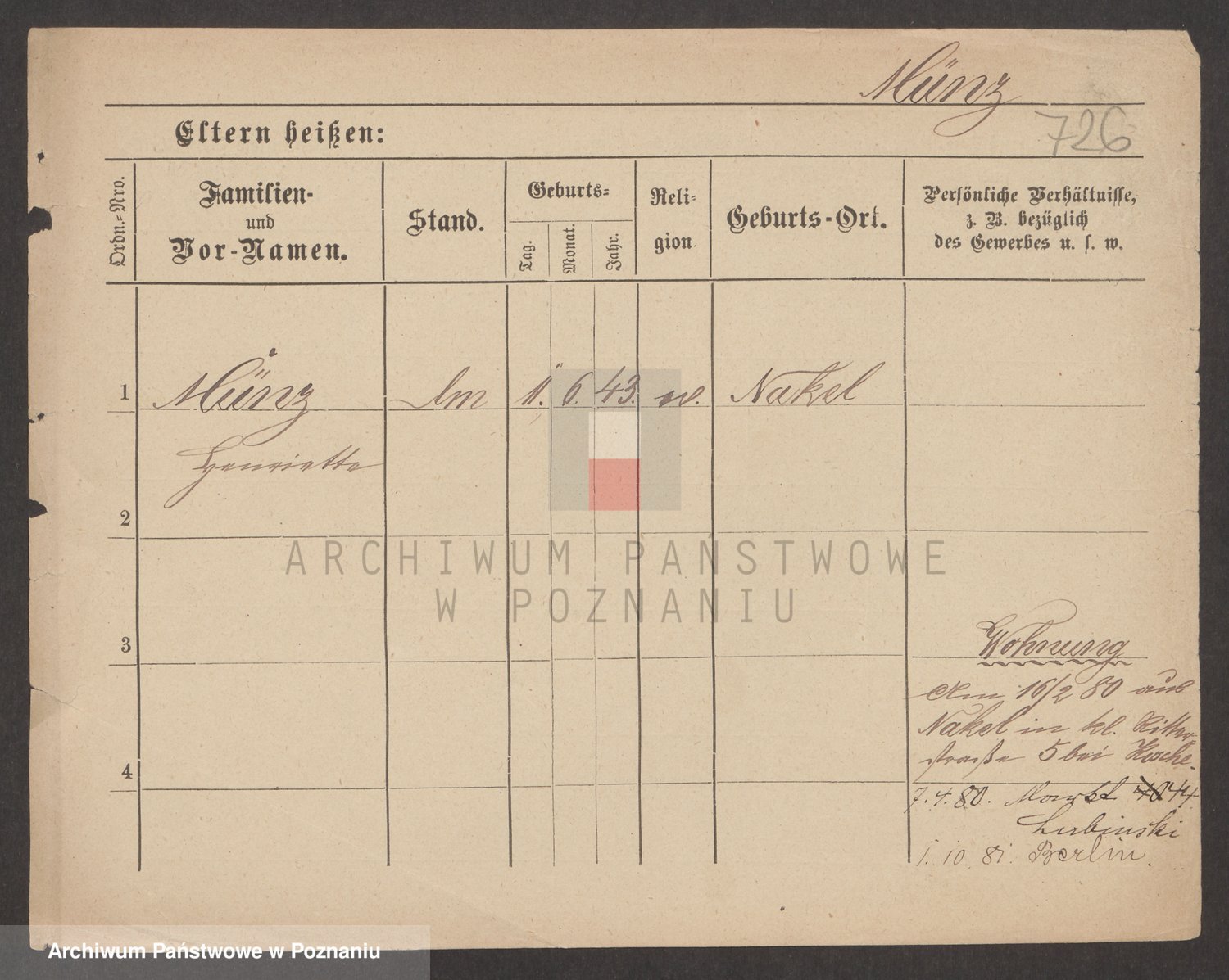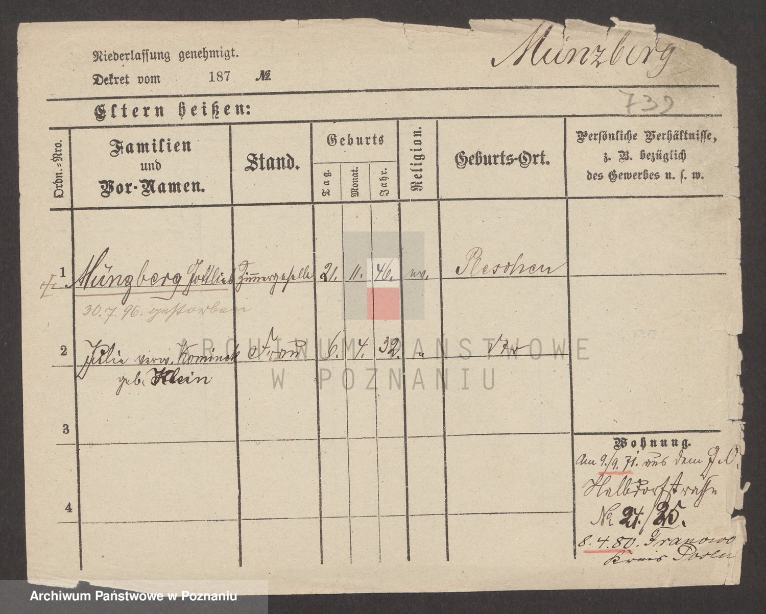 Münzberg zd. Klein p. v. Kominek, Julie