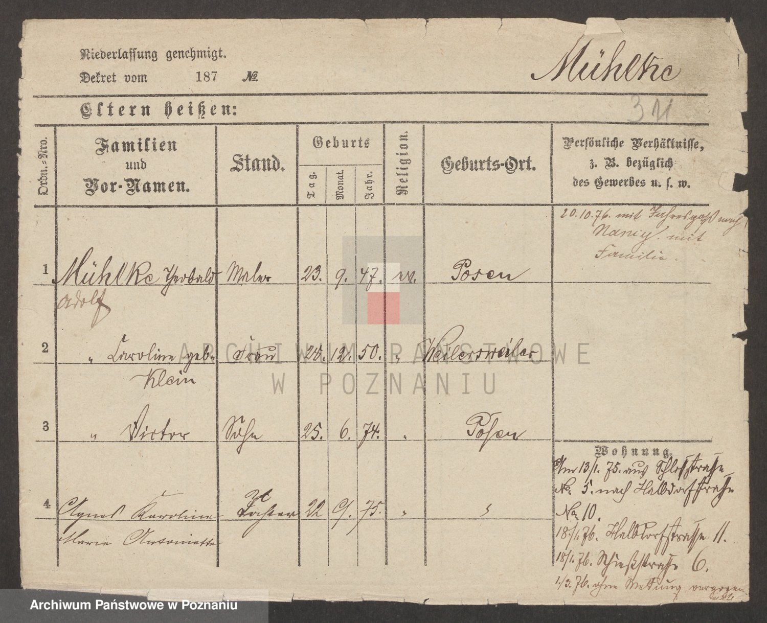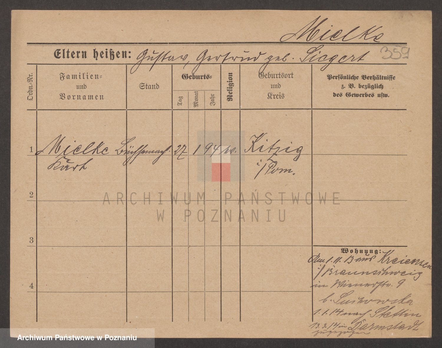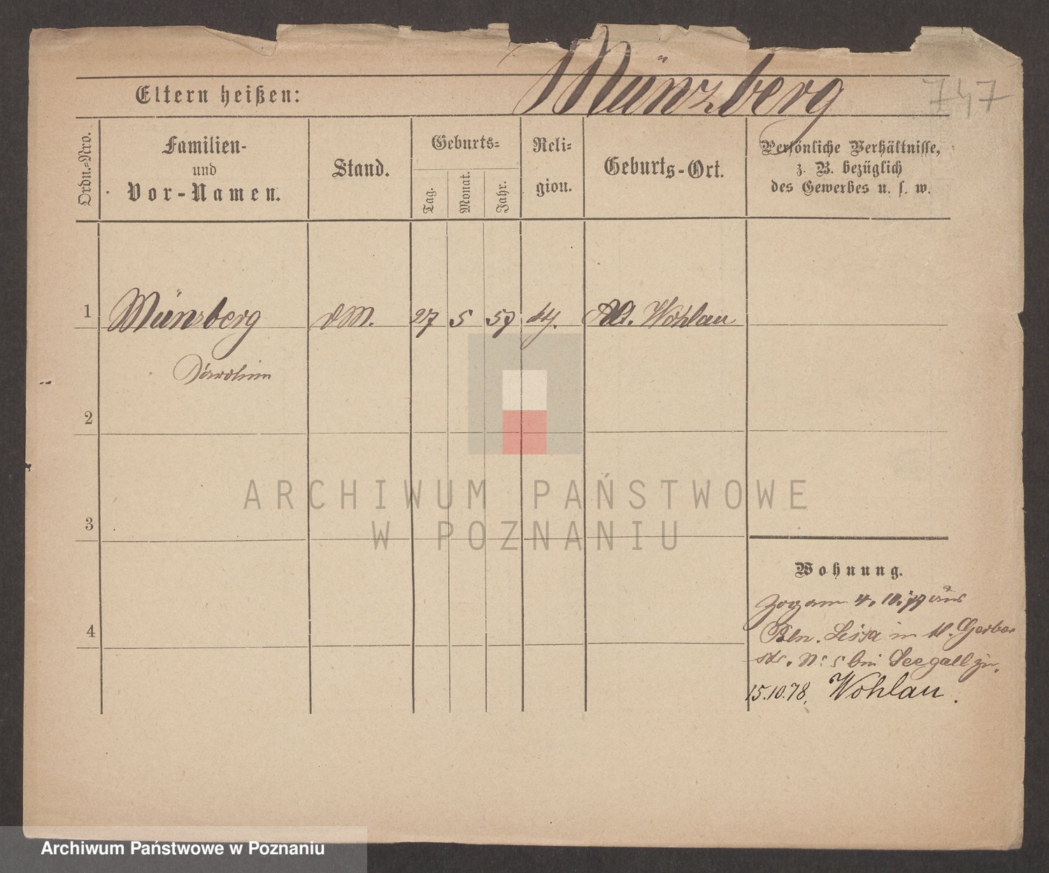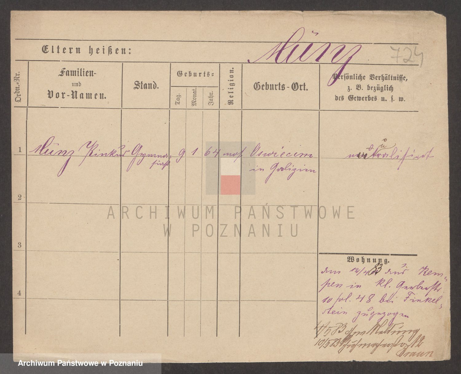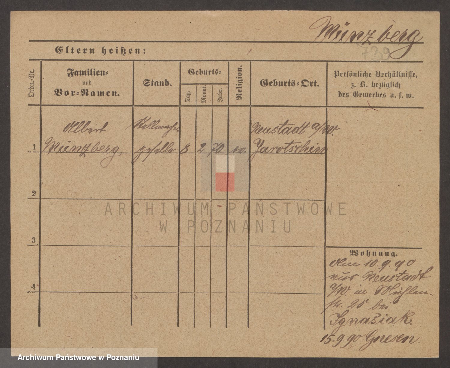 Münzberg zd. Klein p. v. Kominek, Julie
