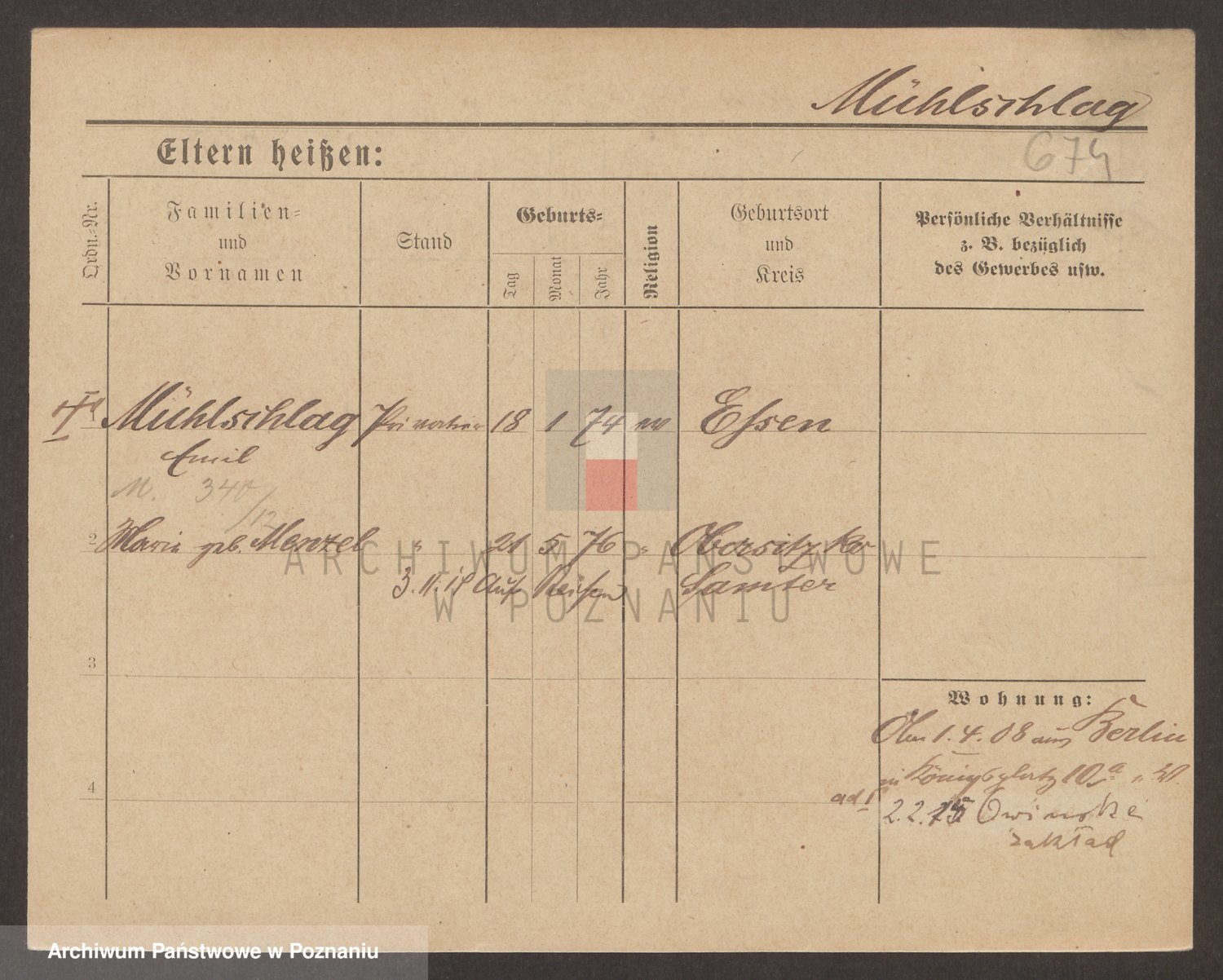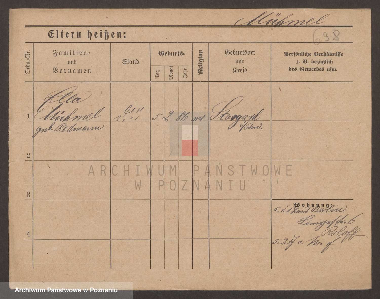 Münzberg zd. Schmolarek, Marie