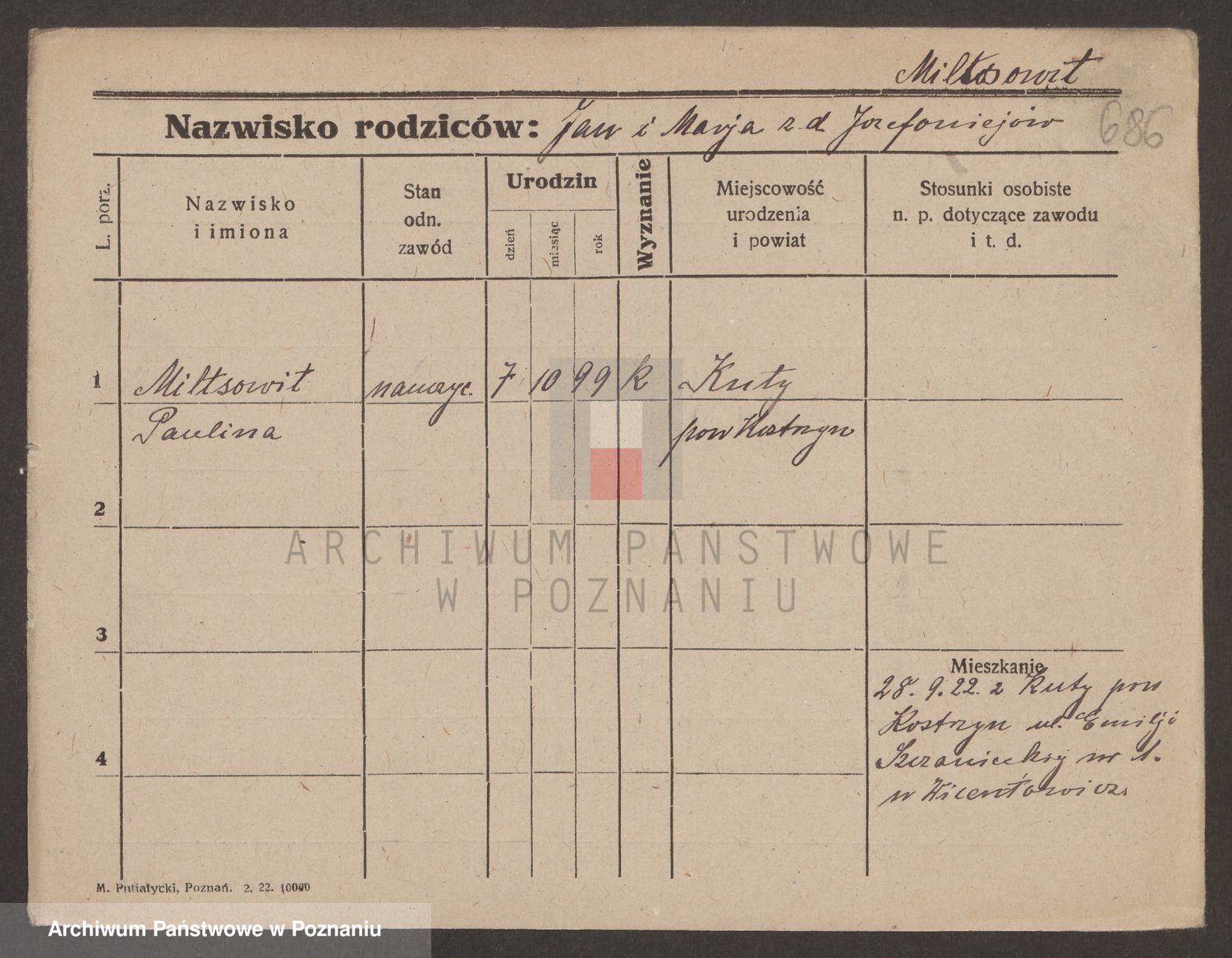 Miloslawer zd. Goldschmidt, Johanna
