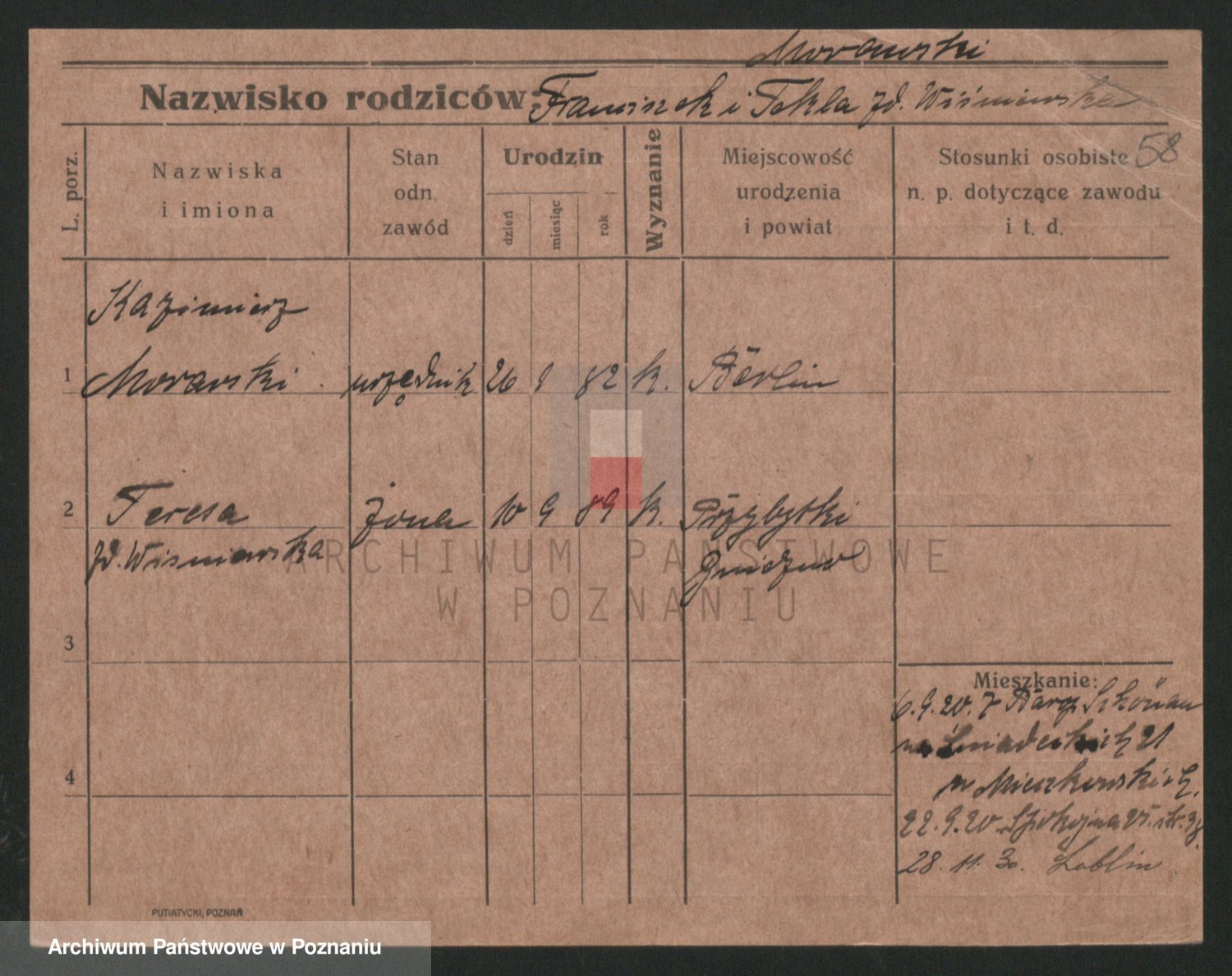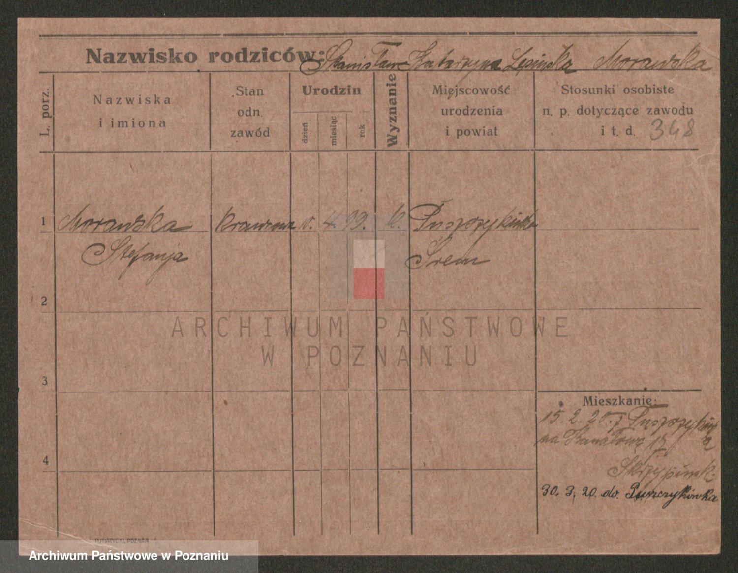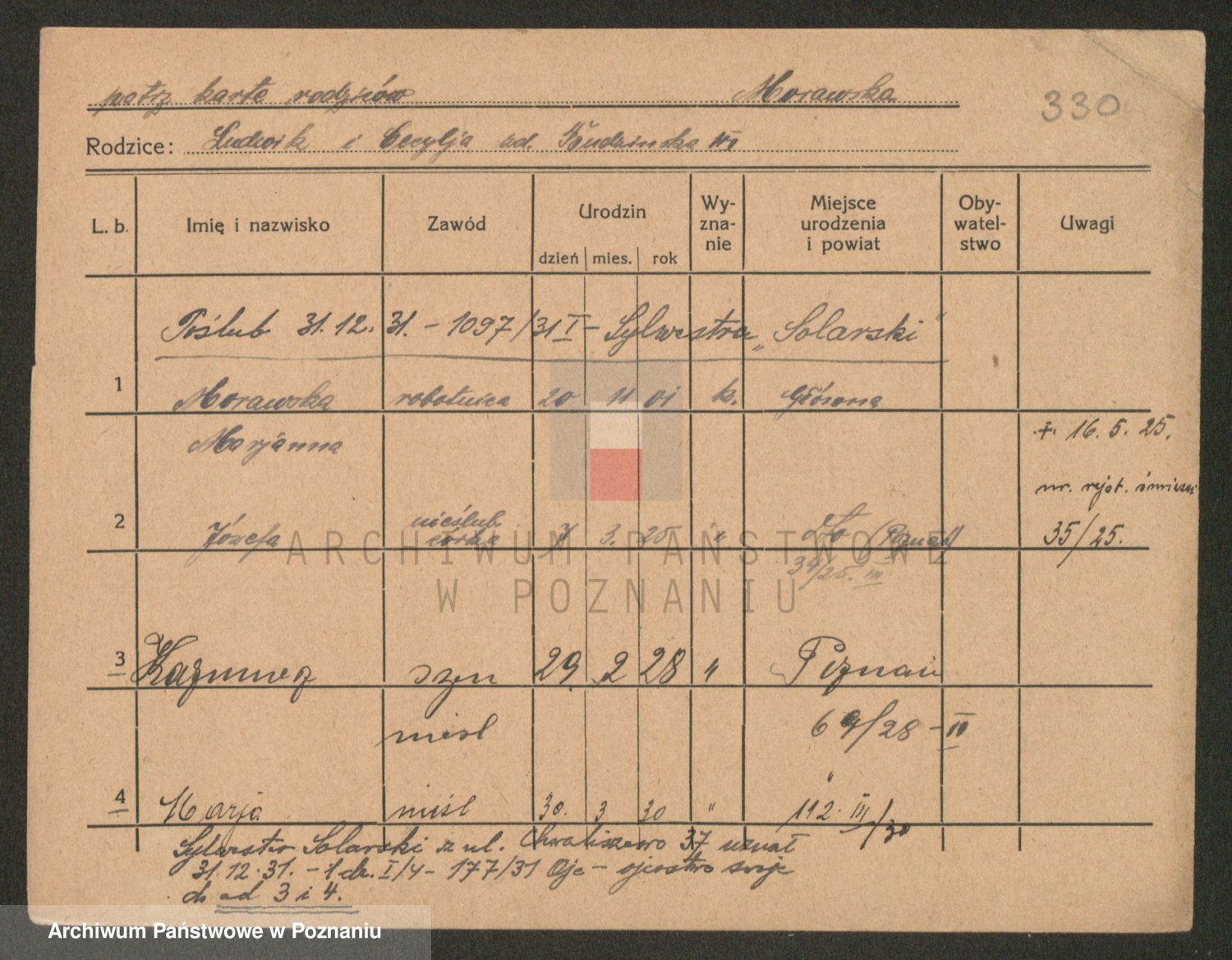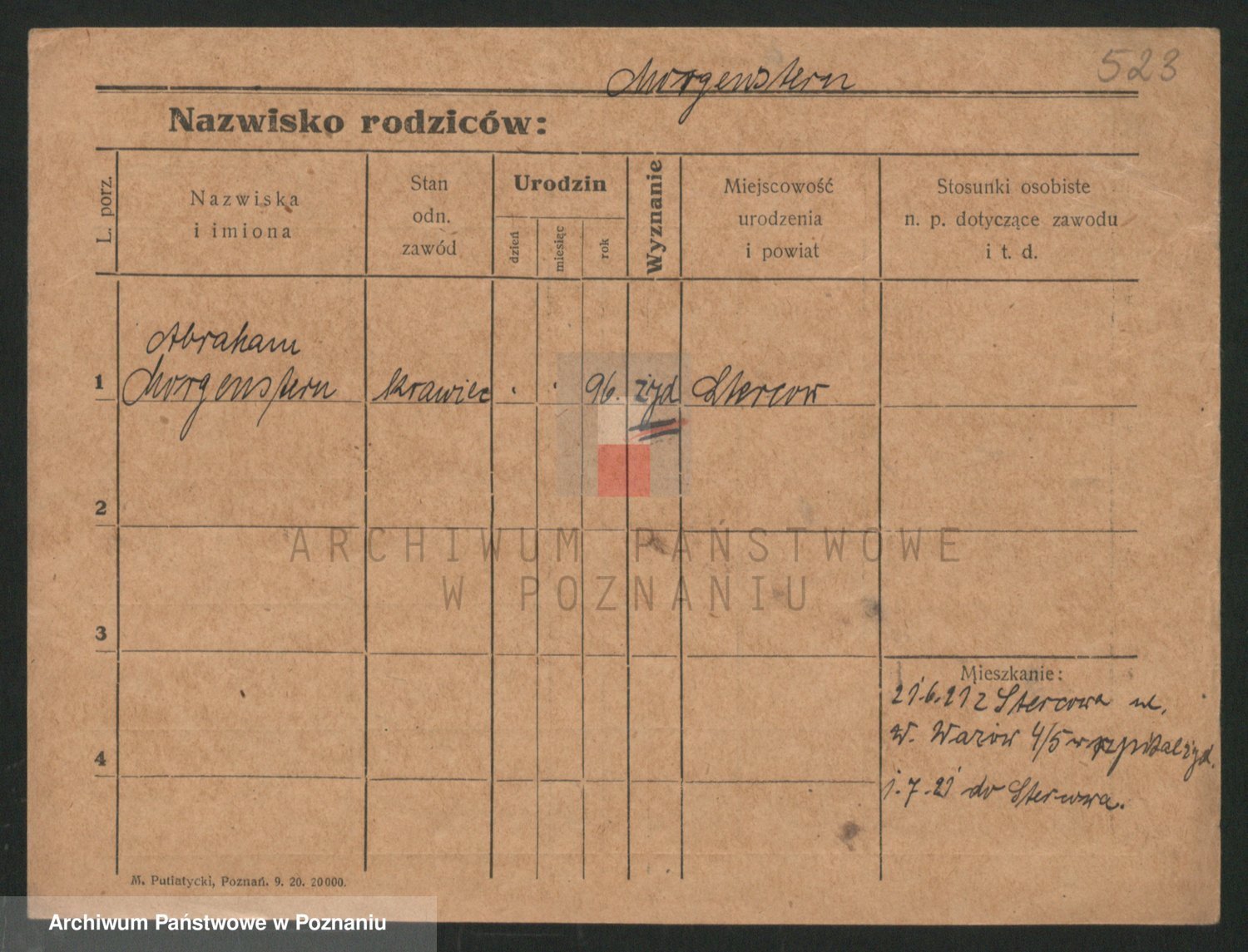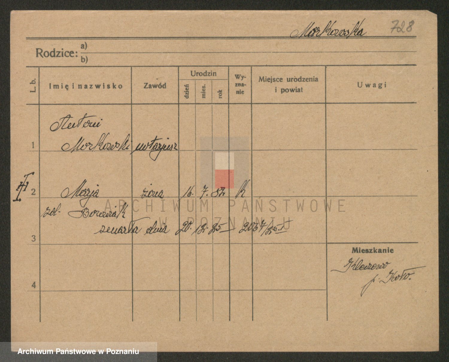 Podgląd karty osobowej dostępny jest po kliknięciu na nazwisko lub ikonkę karty. Można dokonywać powiększenia (ikony na górze) lub przechodzić między kolejnymi skanami (strzałki po bokach).