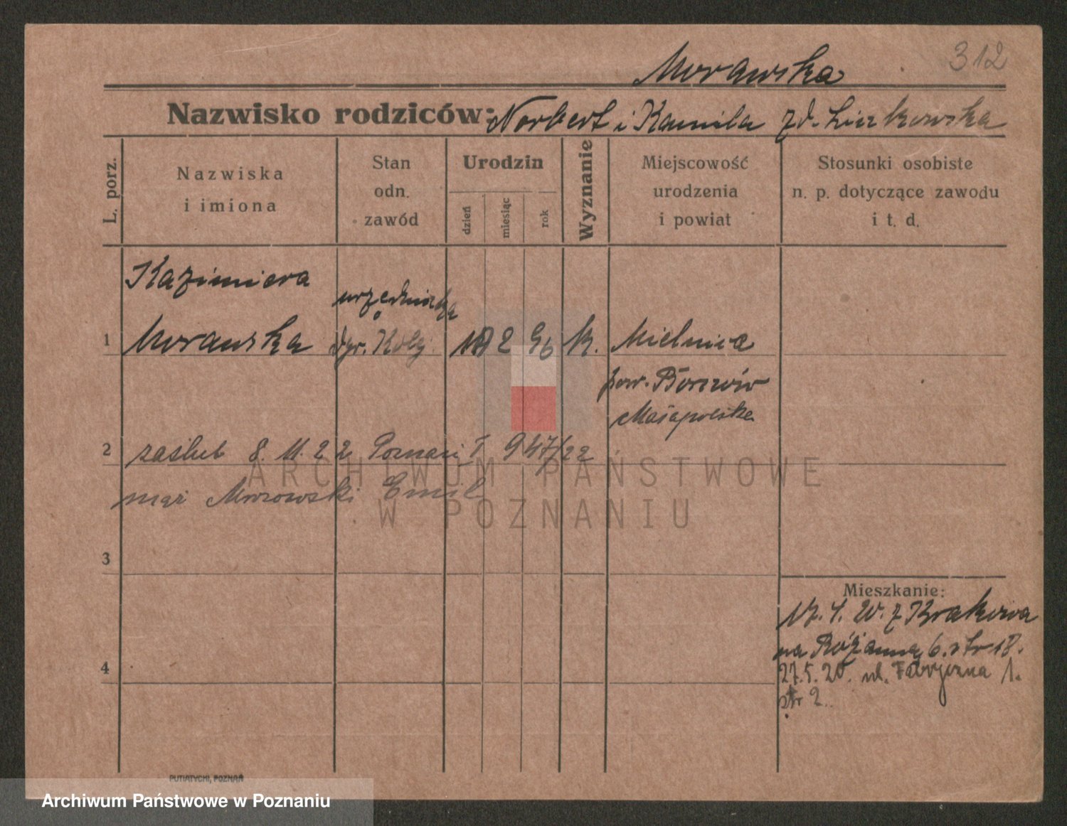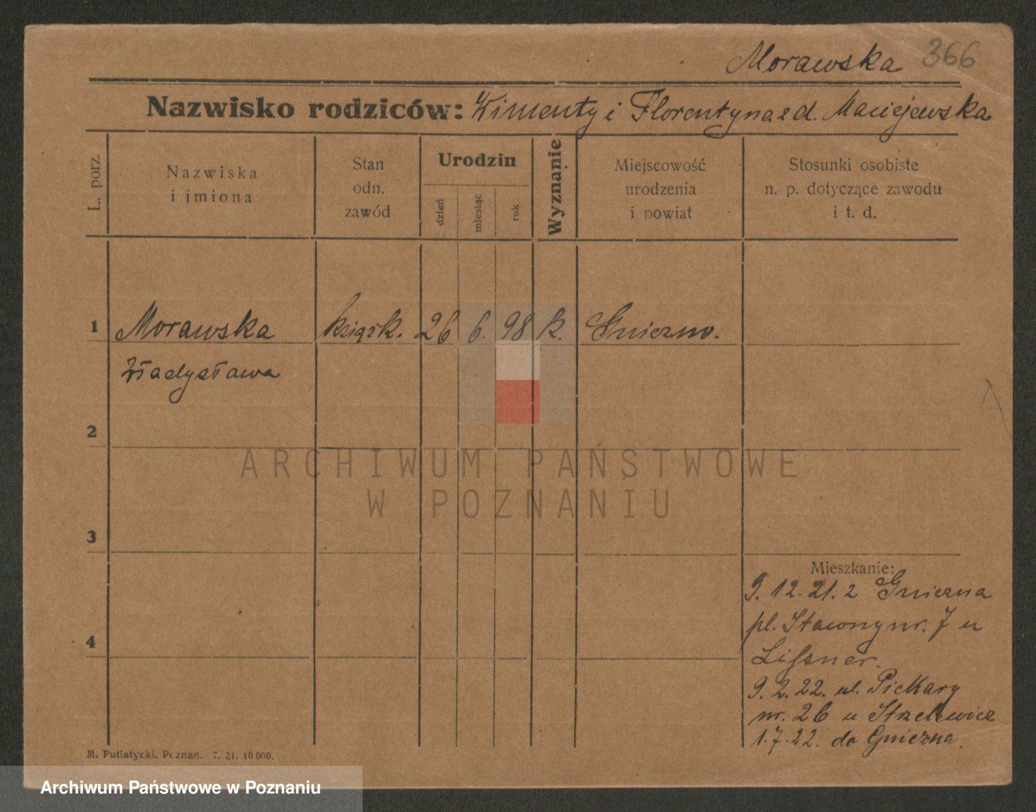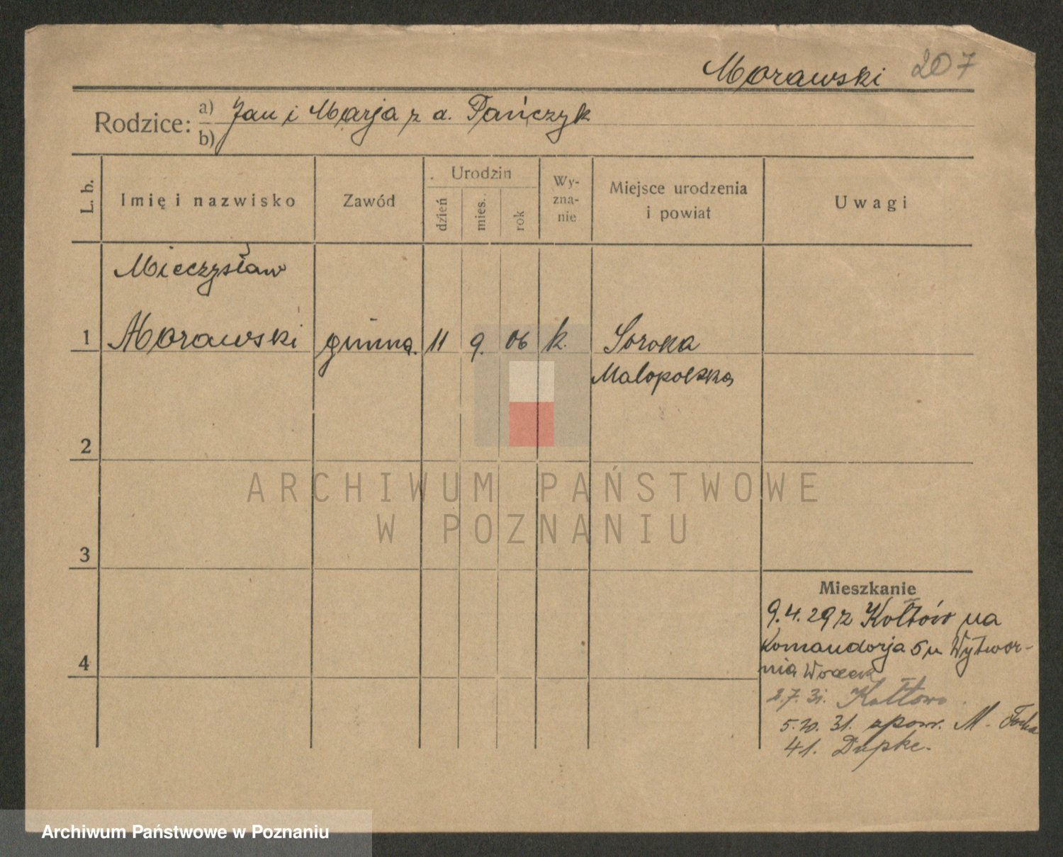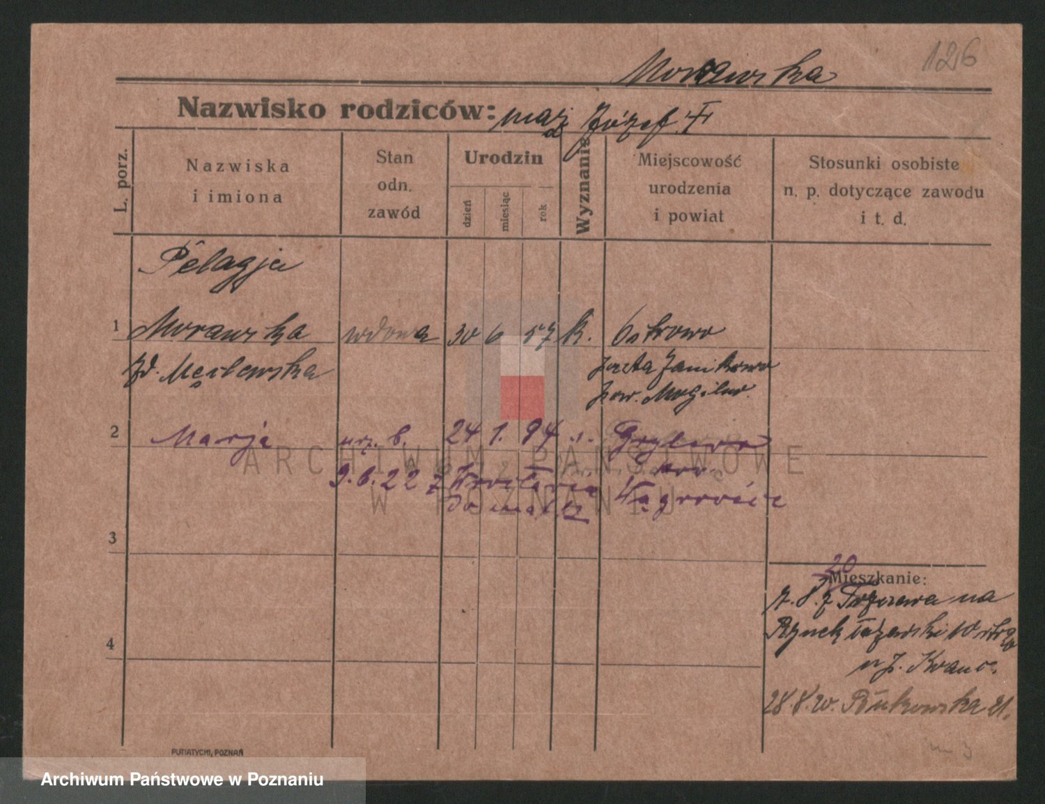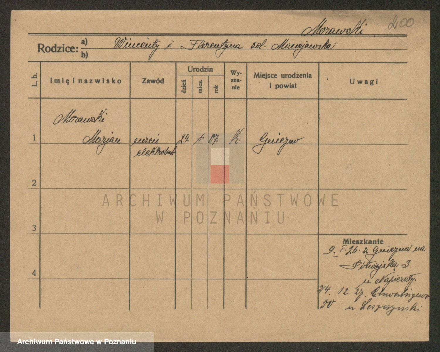 Podgląd karty osobowej dostępny jest po kliknięciu na nazwisko lub ikonkę karty. Można dokonywać powiększenia (ikony na górze) lub przechodzić między kolejnymi skanami (strzałki po bokach).