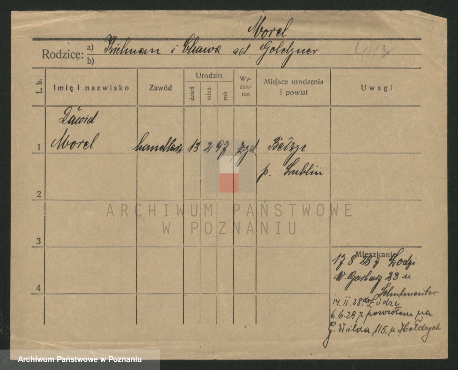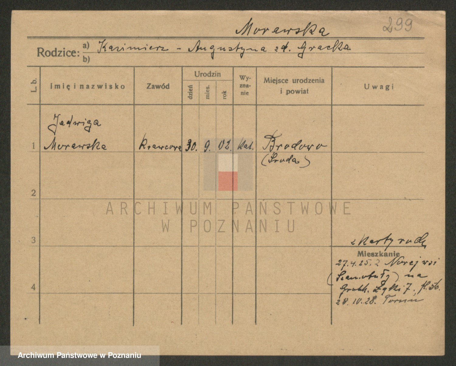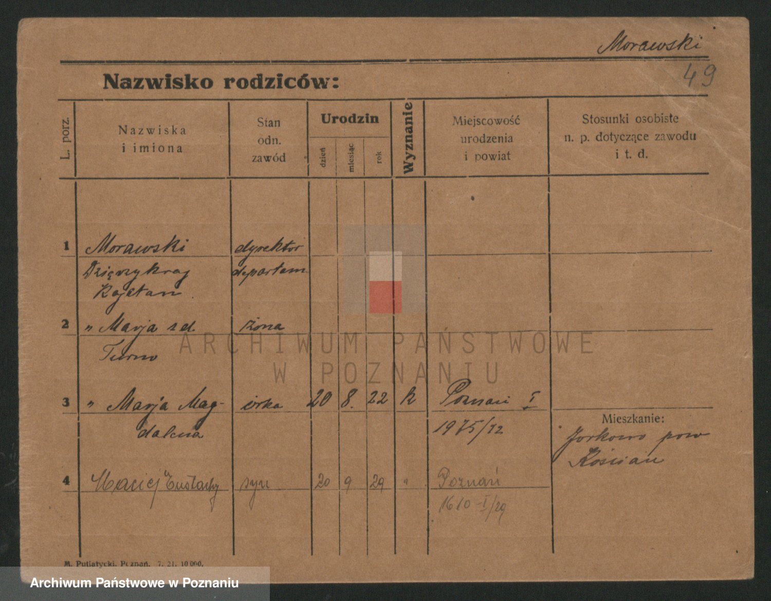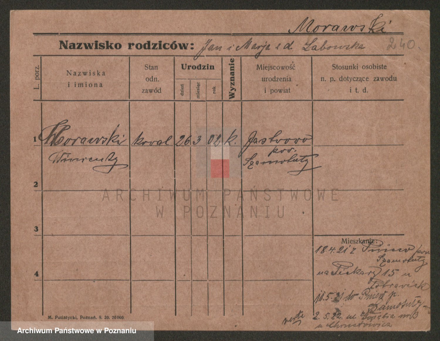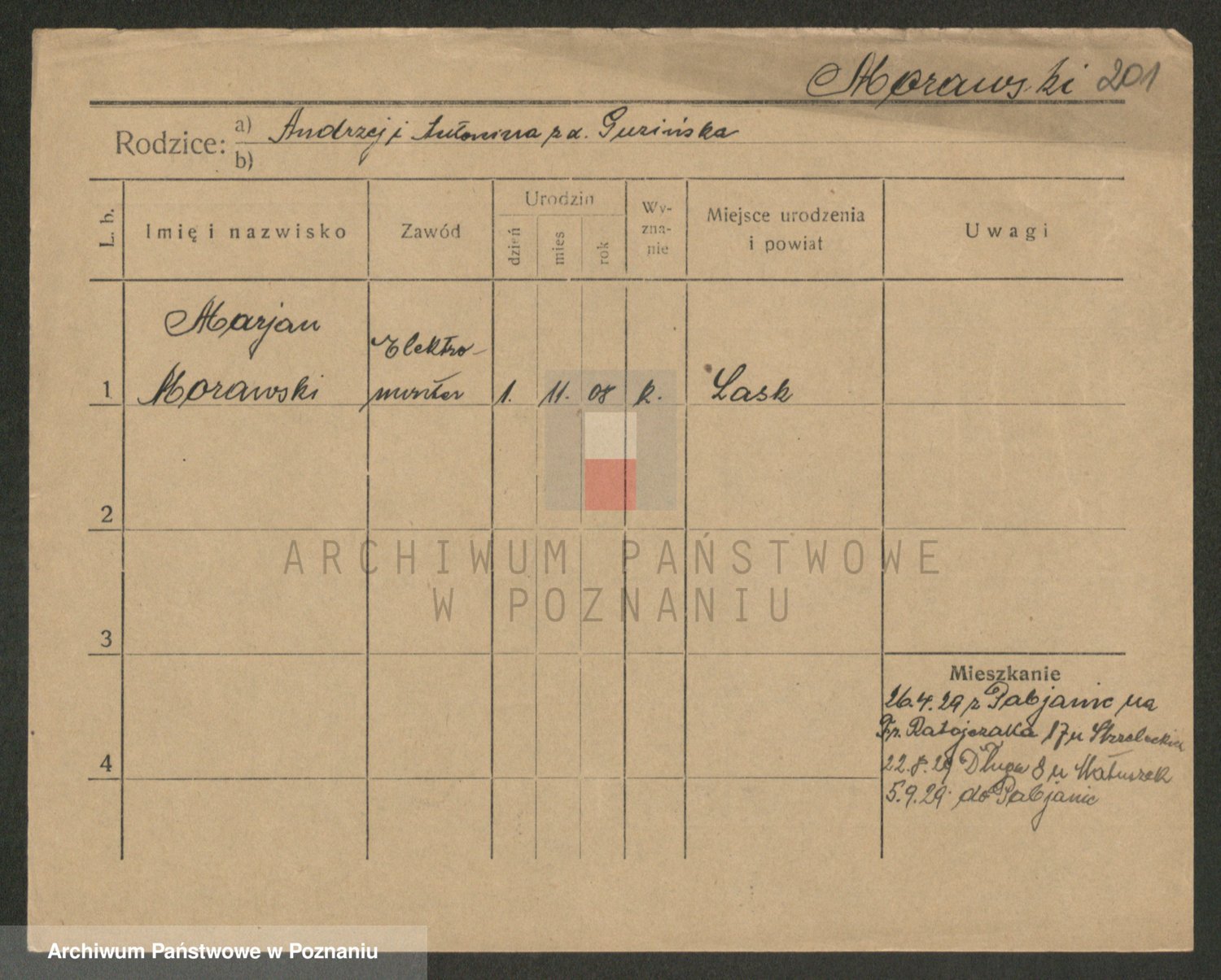 Podgląd karty osobowej dostępny jest po kliknięciu na nazwisko lub ikonkę karty. Można dokonywać powiększenia (ikony na górze) lub przechodzić między kolejnymi skanami (strzałki po bokach).