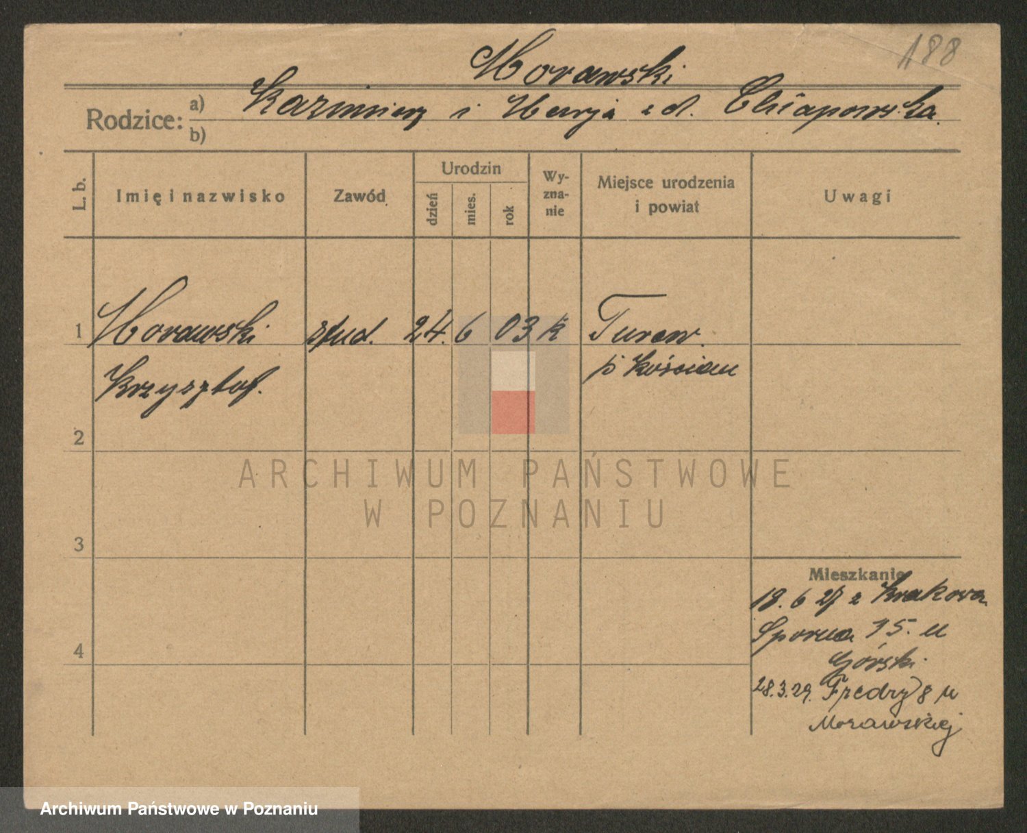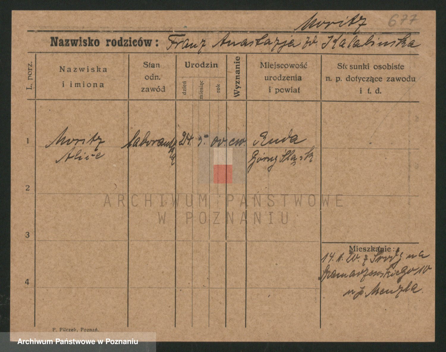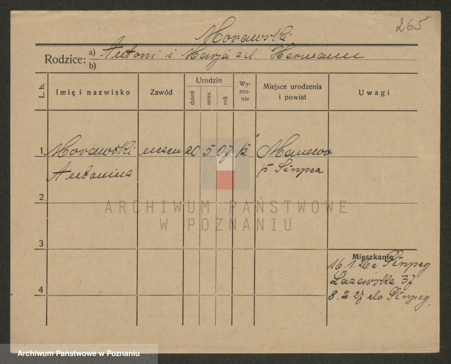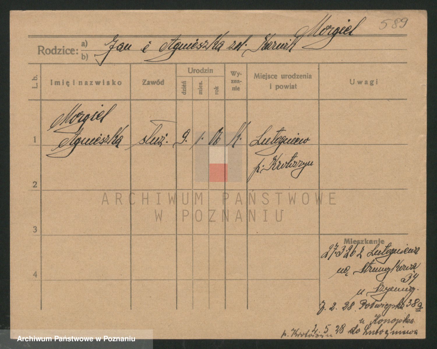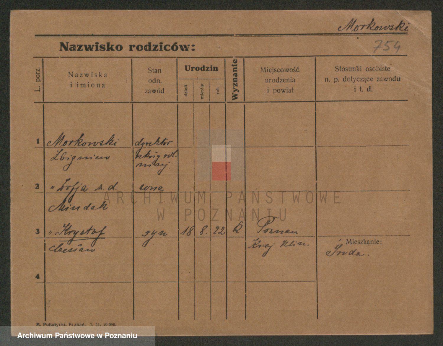 Podgląd karty osobowej dostępny jest po kliknięciu na nazwisko lub ikonkę karty. Można dokonywać powiększenia (ikony na górze) lub przechodzić między kolejnymi skanami (strzałki po bokach).