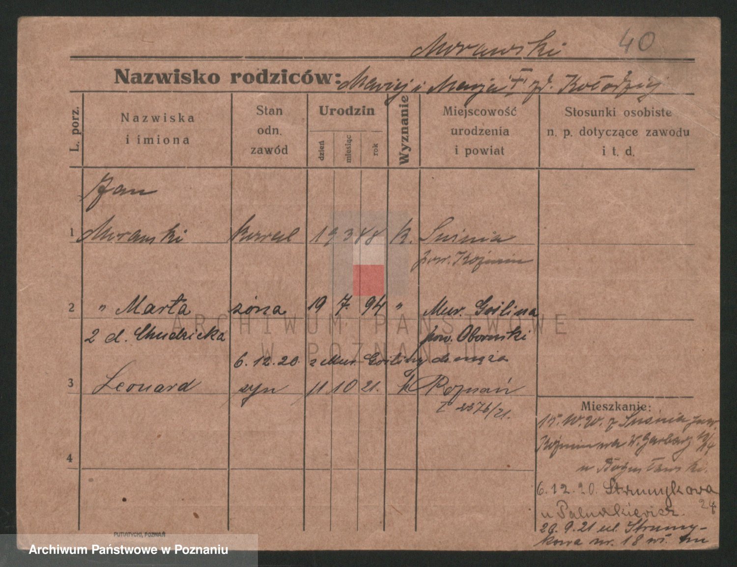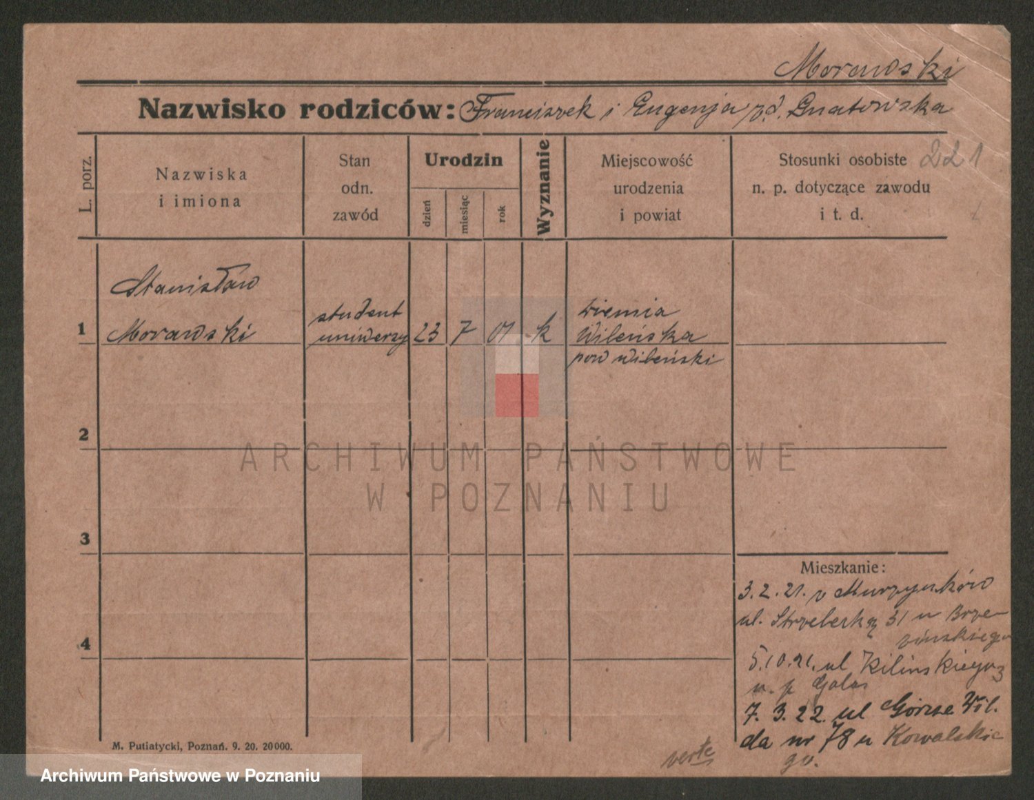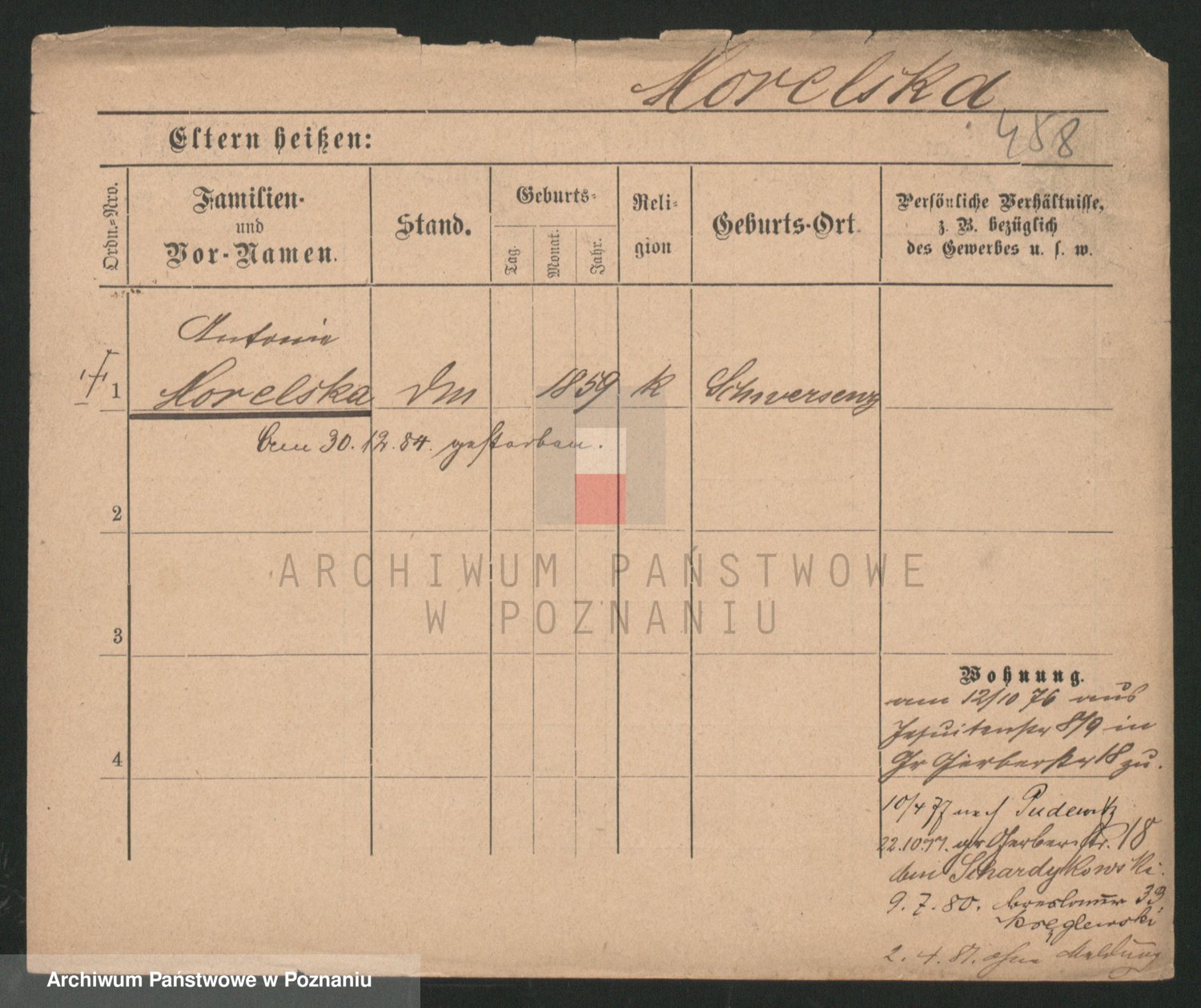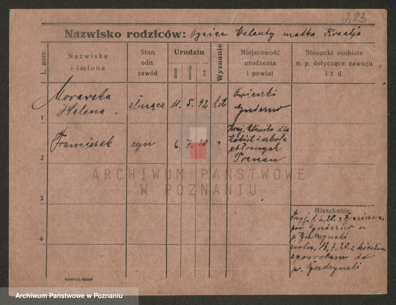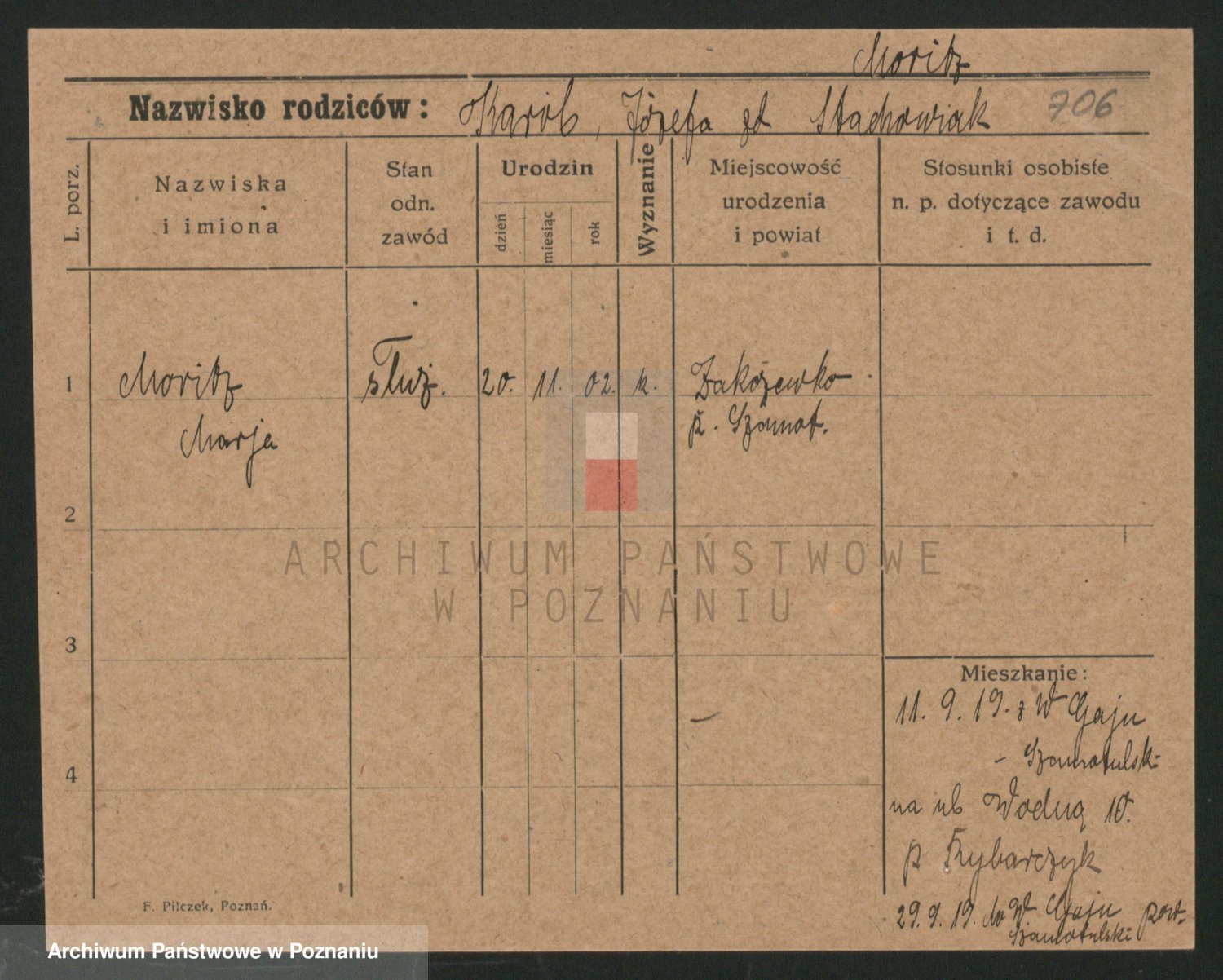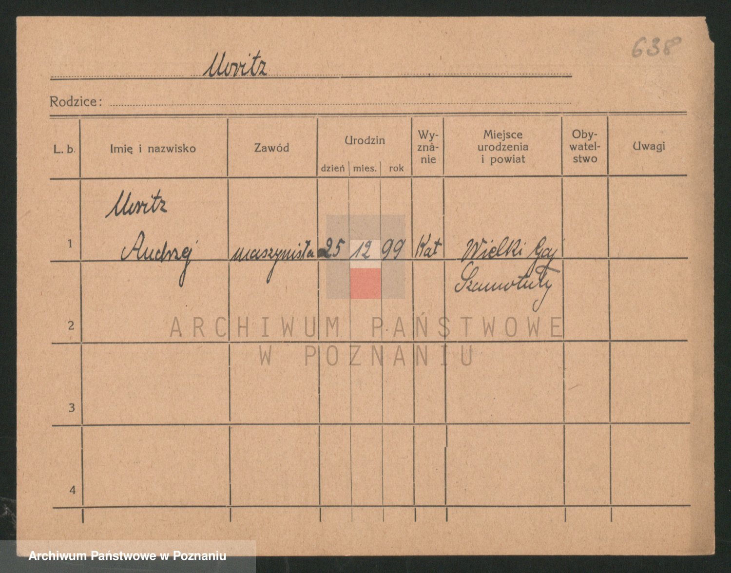 Podgląd karty osobowej dostępny jest po kliknięciu na nazwisko lub ikonkę karty. Można dokonywać powiększenia (ikony na górze) lub przechodzić między kolejnymi skanami (strzałki po bokach).