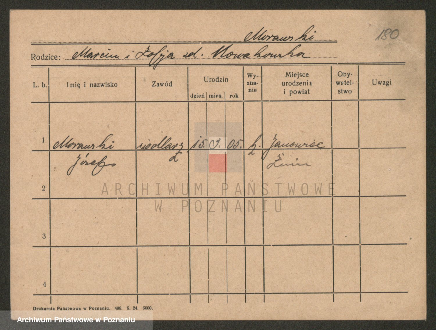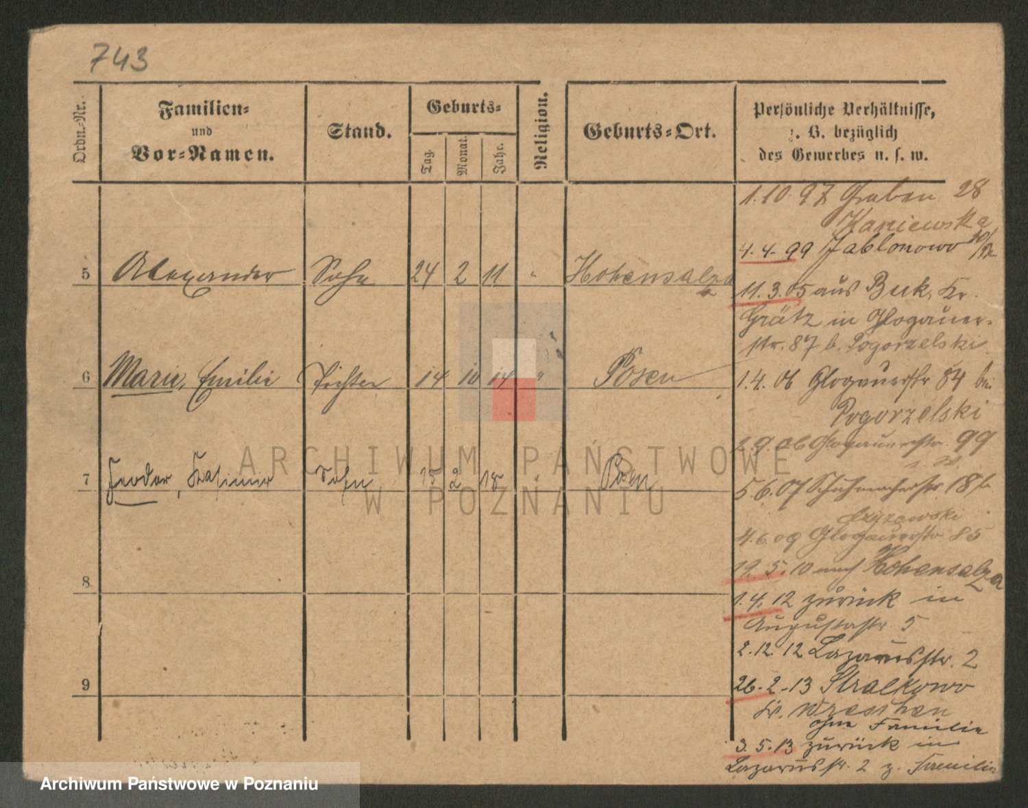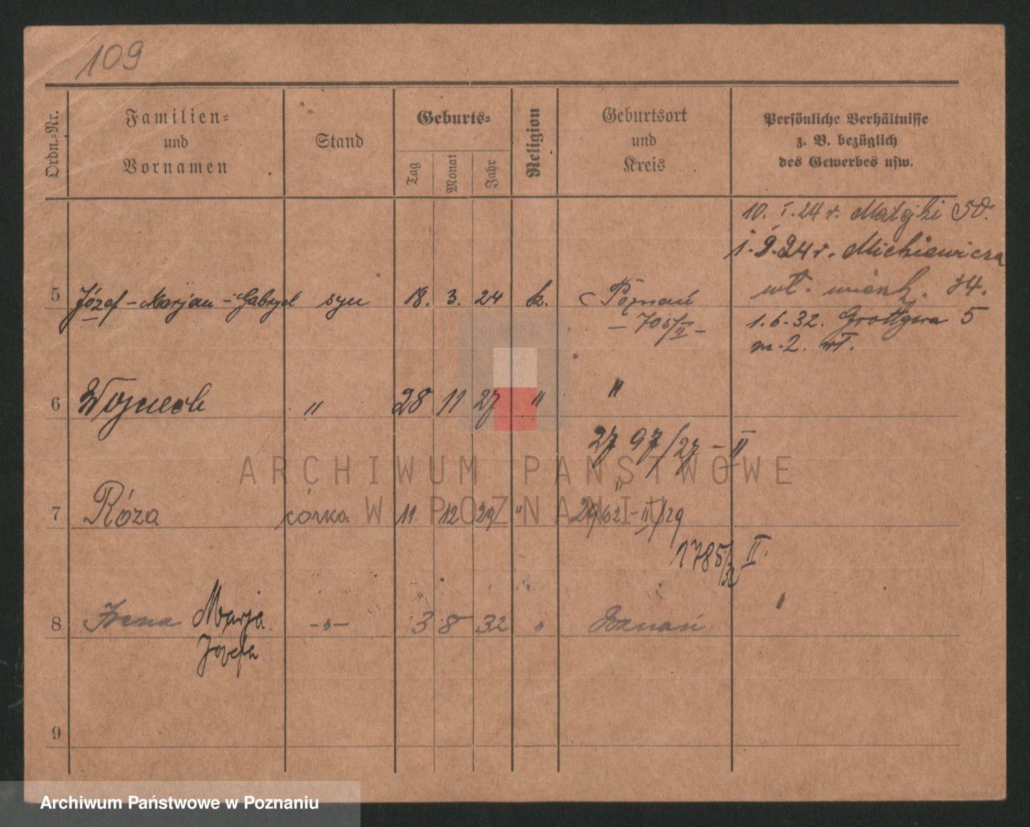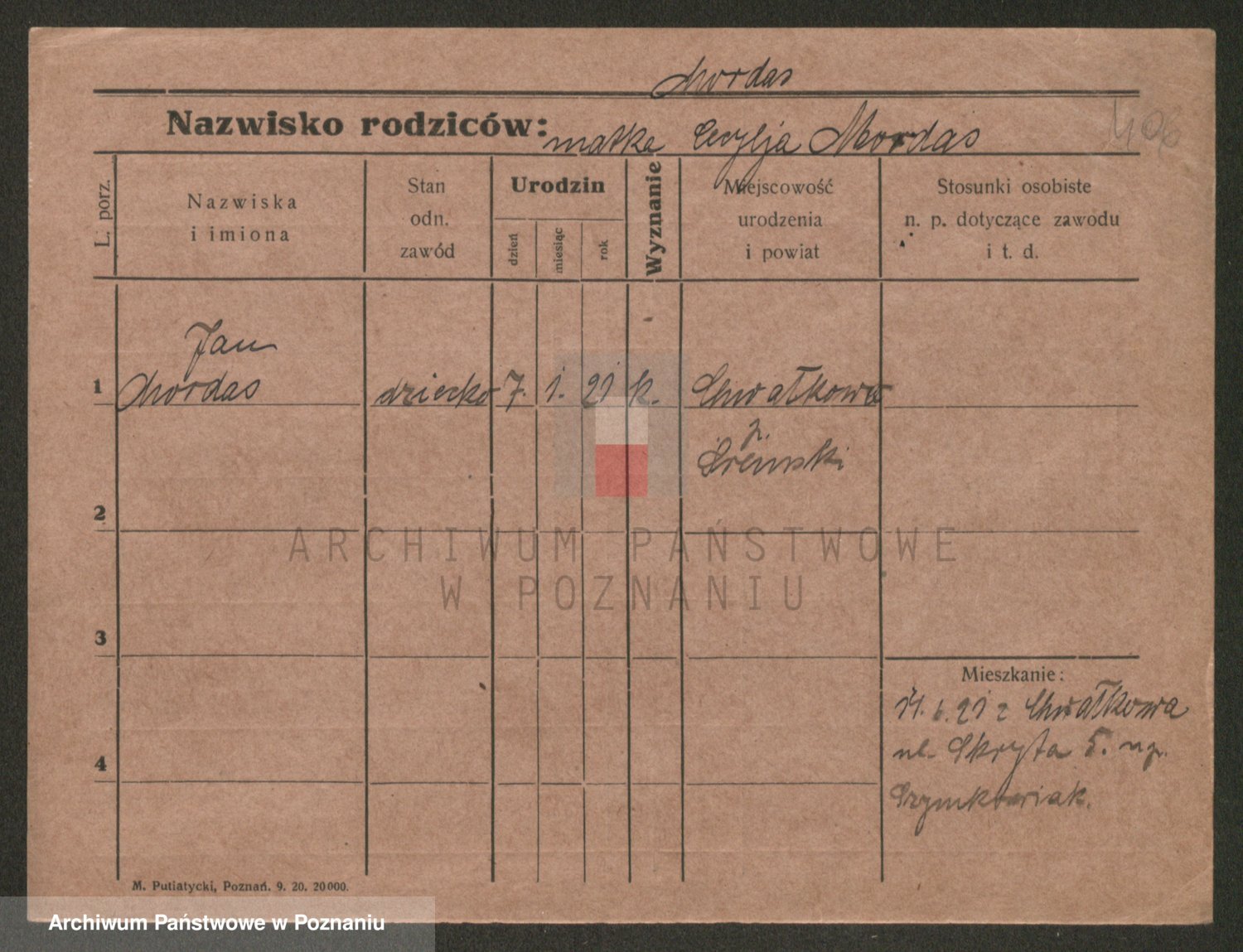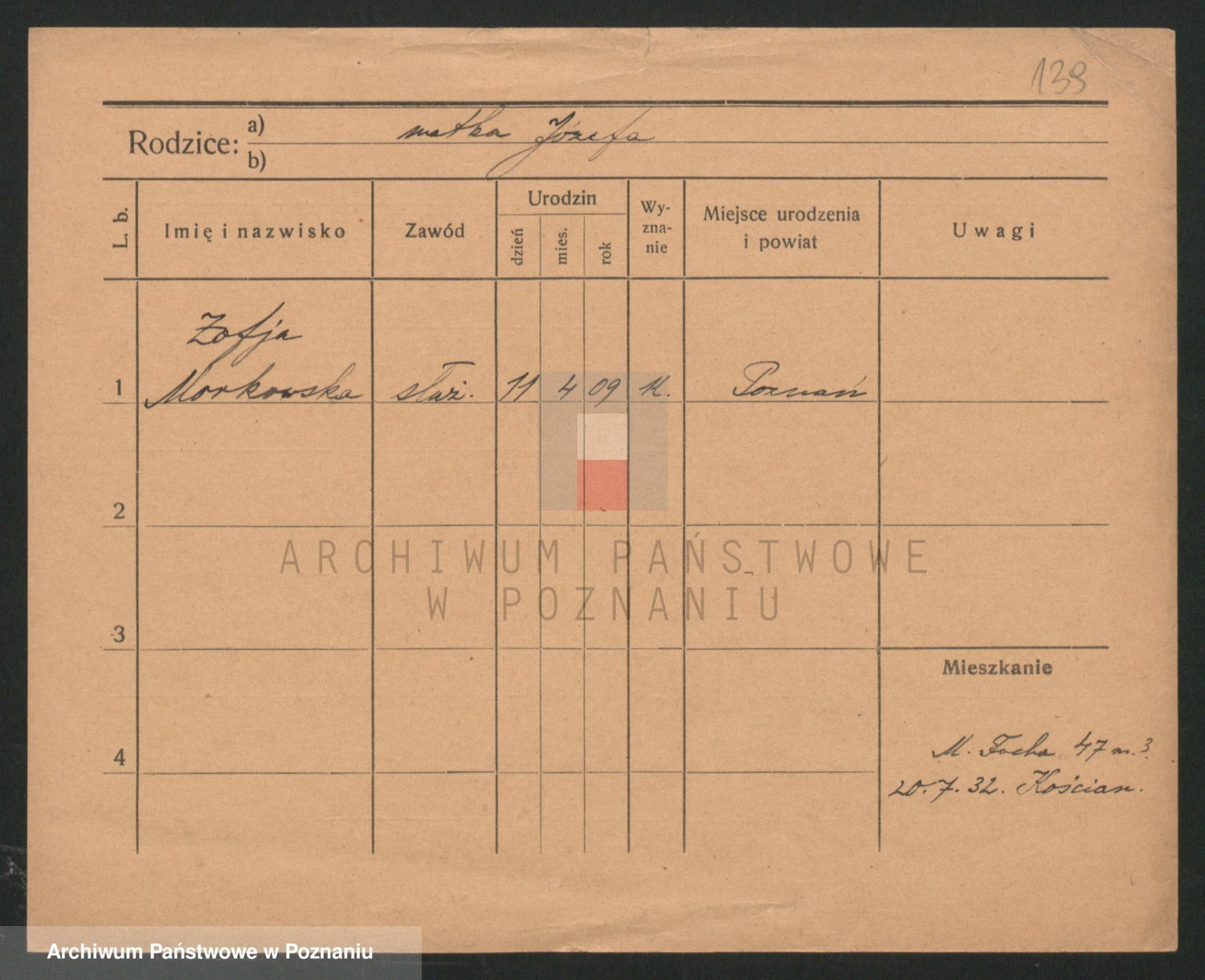 Podgląd karty osobowej dostępny jest po kliknięciu na nazwisko lub ikonkę karty. Można dokonywać powiększenia (ikony na górze) lub przechodzić między kolejnymi skanami (strzałki po bokach).