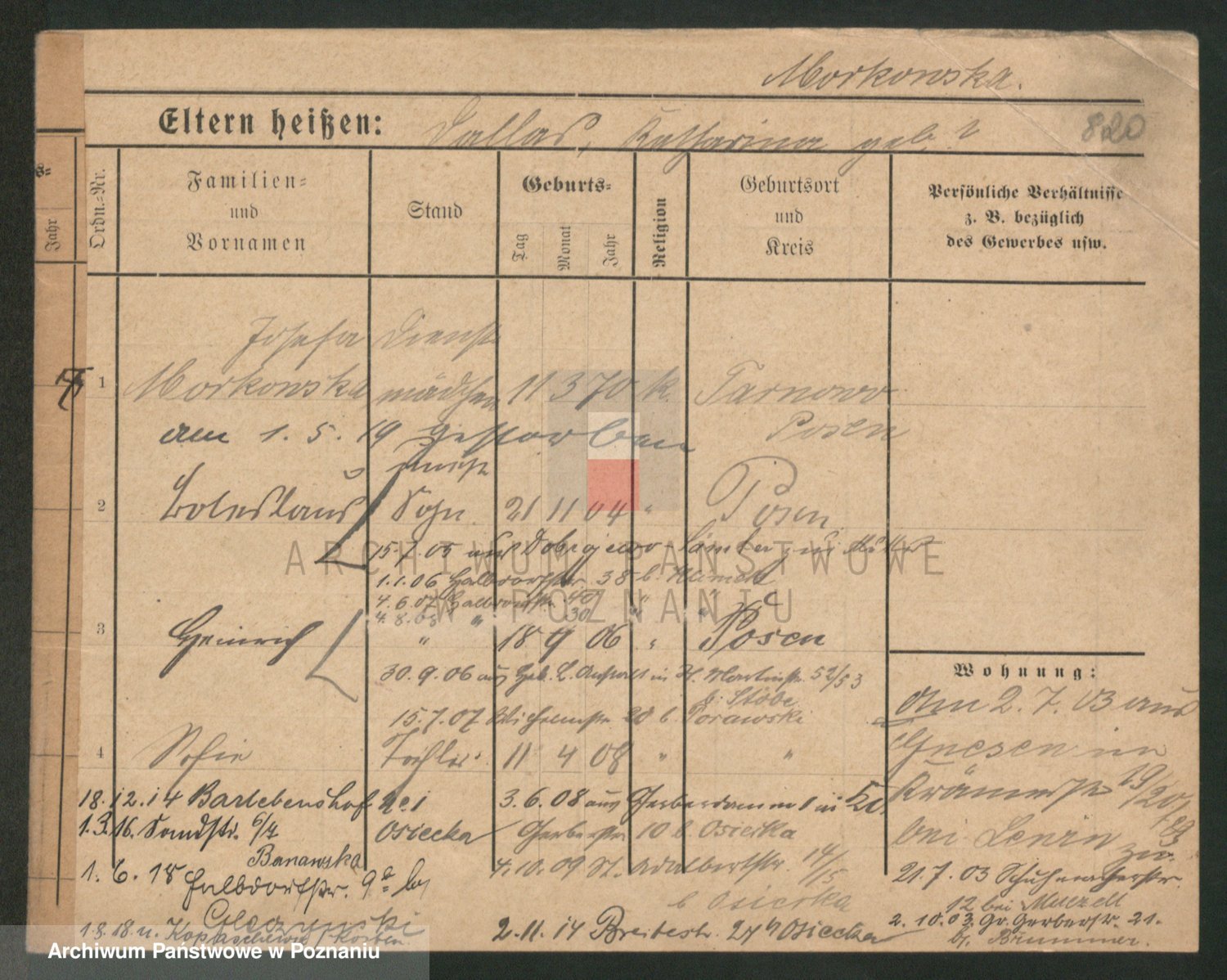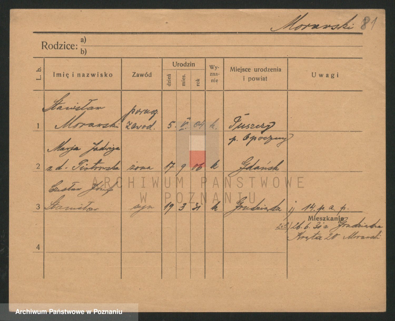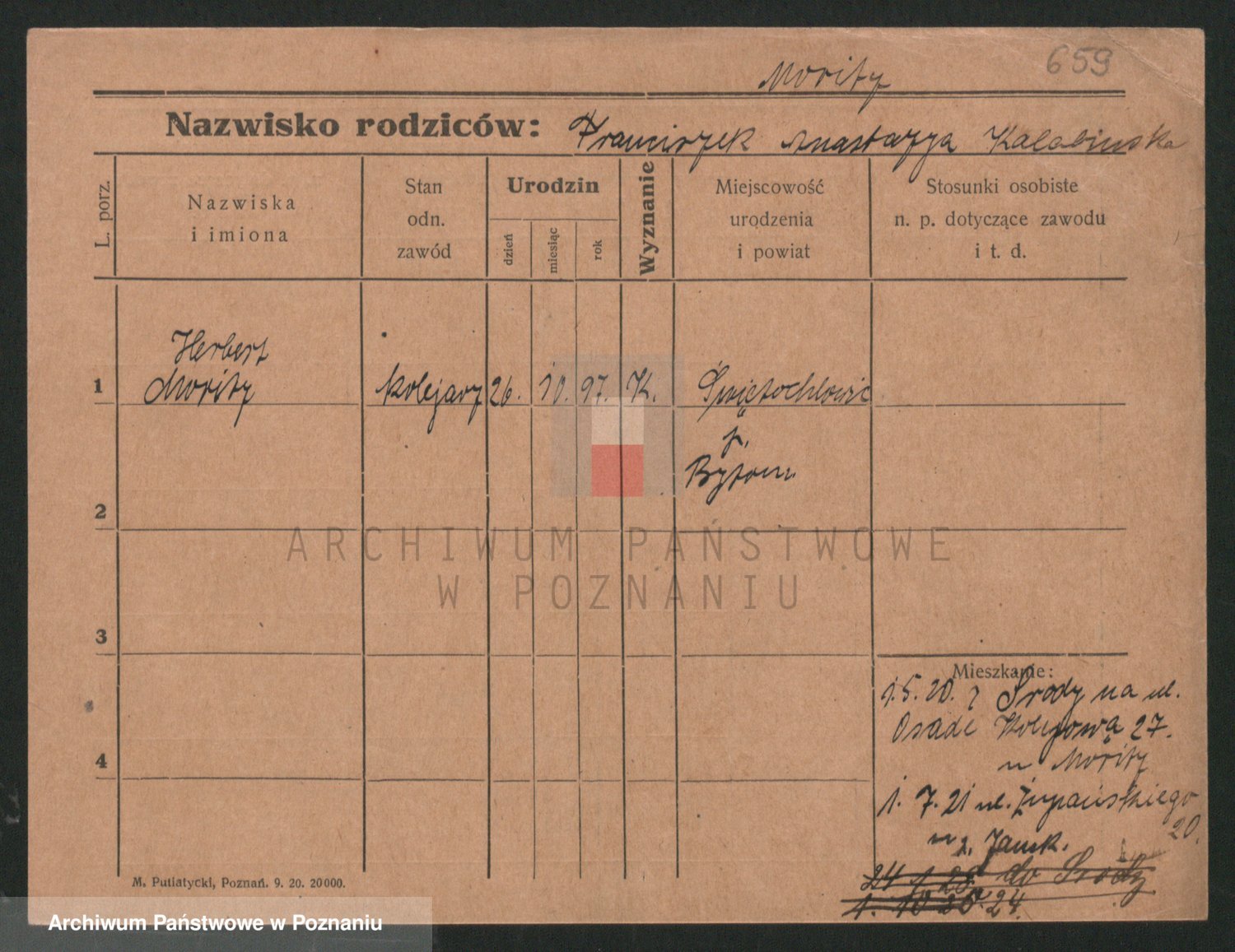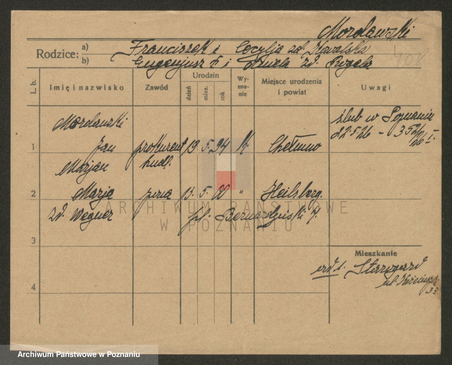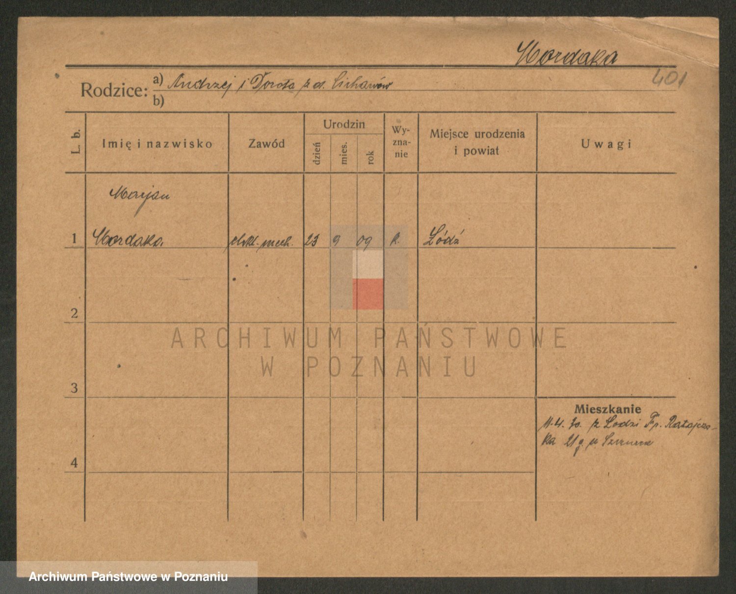 Podgląd karty osobowej dostępny jest po kliknięciu na nazwisko lub ikonkę karty. Można dokonywać powiększenia (ikony na górze) lub przechodzić między kolejnymi skanami (strzałki po bokach).