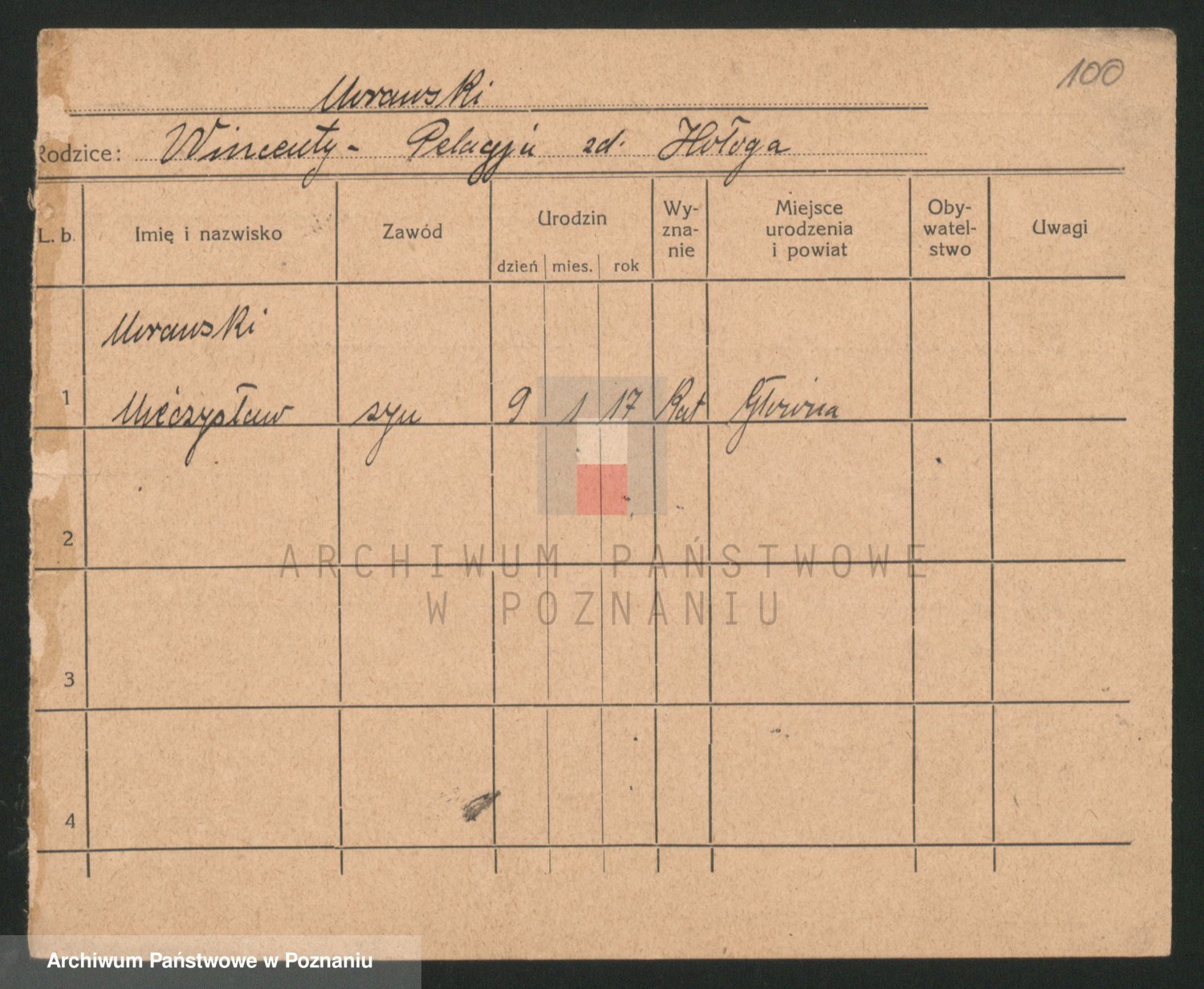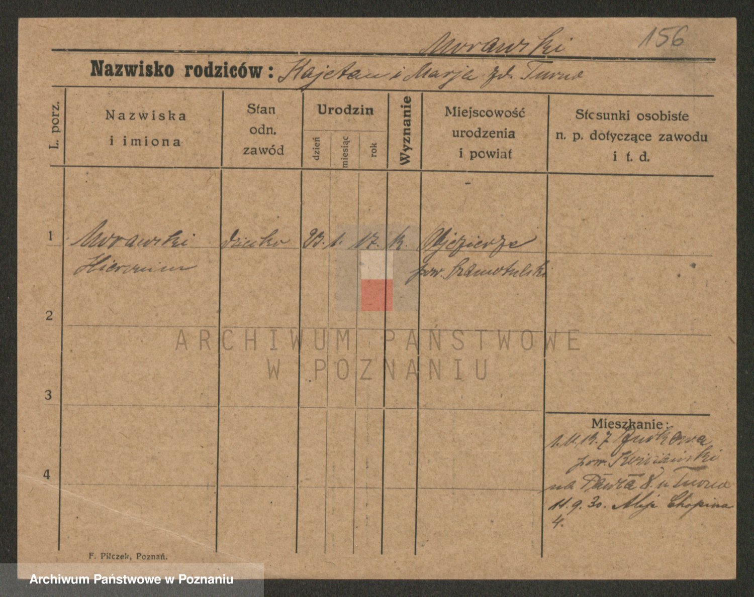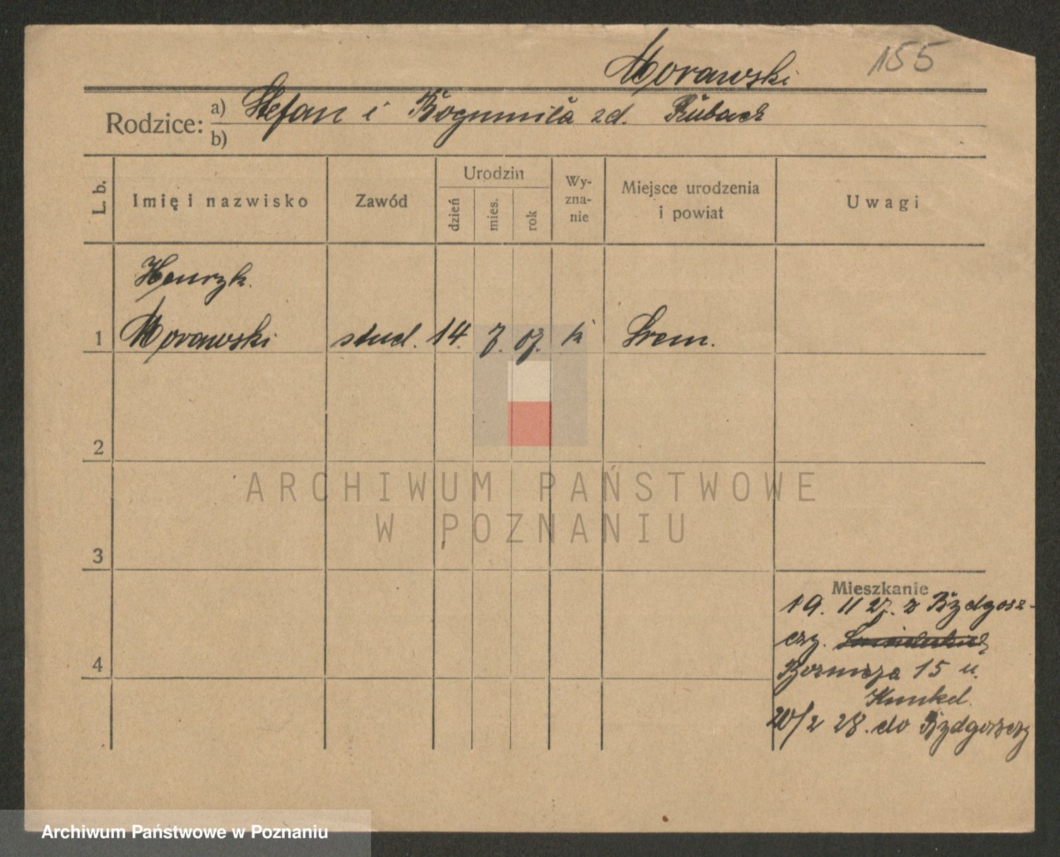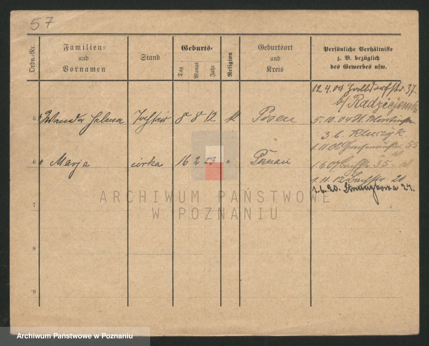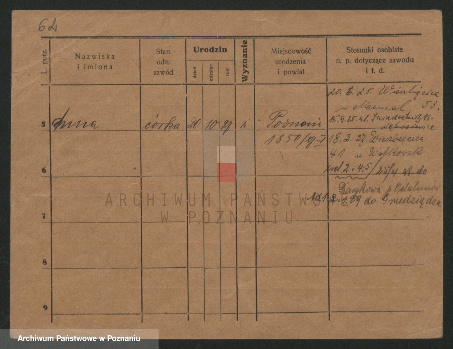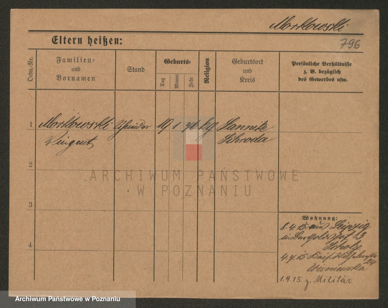 Podgląd karty osobowej dostępny jest po kliknięciu na nazwisko lub ikonkę karty. Można dokonywać powiększenia (ikony na górze) lub przechodzić między kolejnymi skanami (strzałki po bokach).