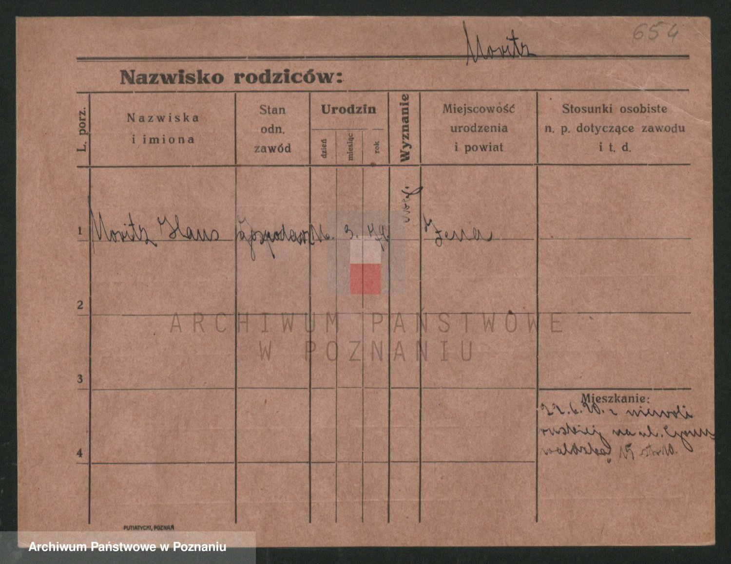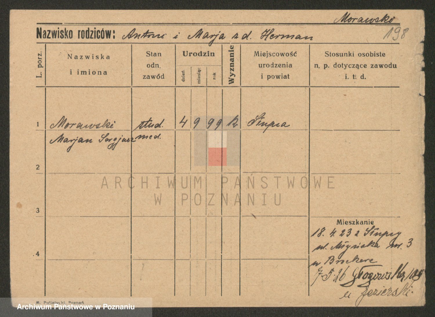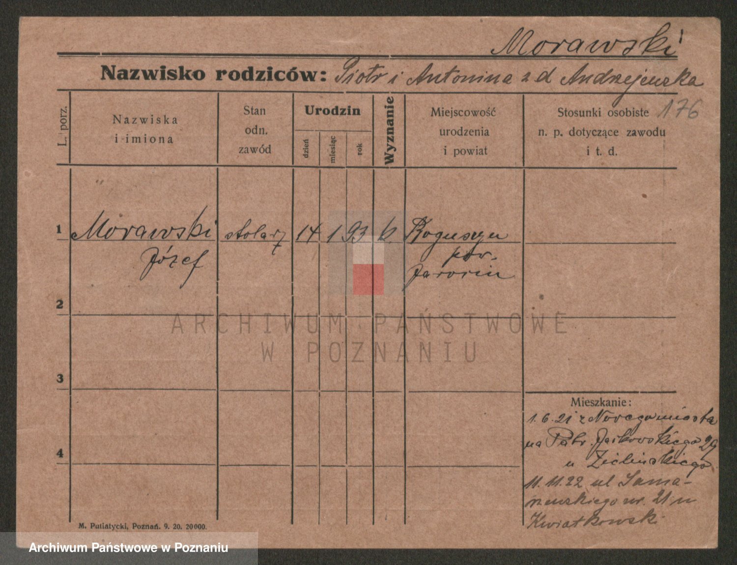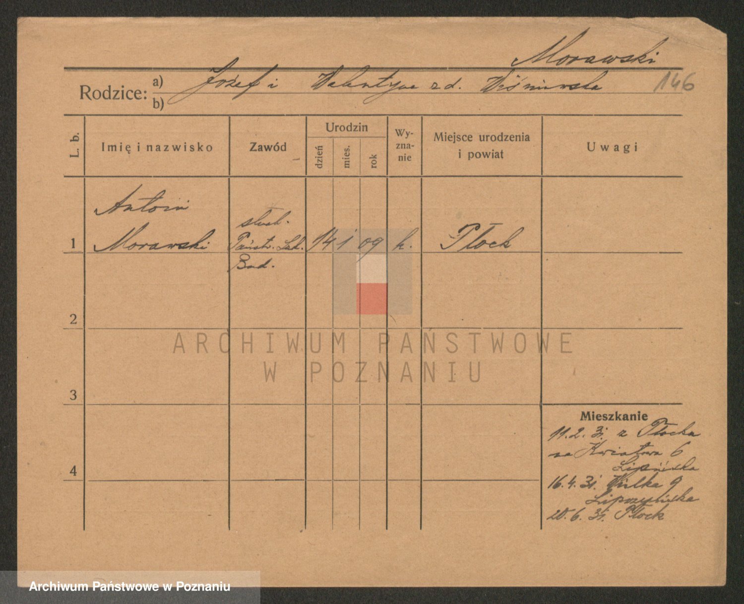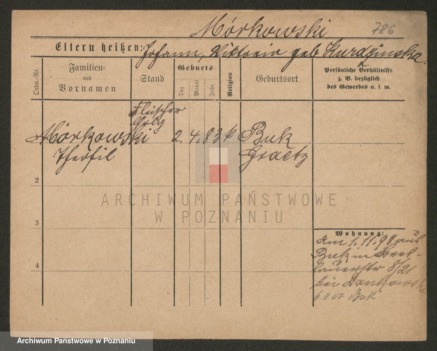 Podgląd karty osobowej dostępny jest po kliknięciu na nazwisko lub ikonkę karty. Można dokonywać powiększenia (ikony na górze) lub przechodzić między kolejnymi skanami (strzałki po bokach).