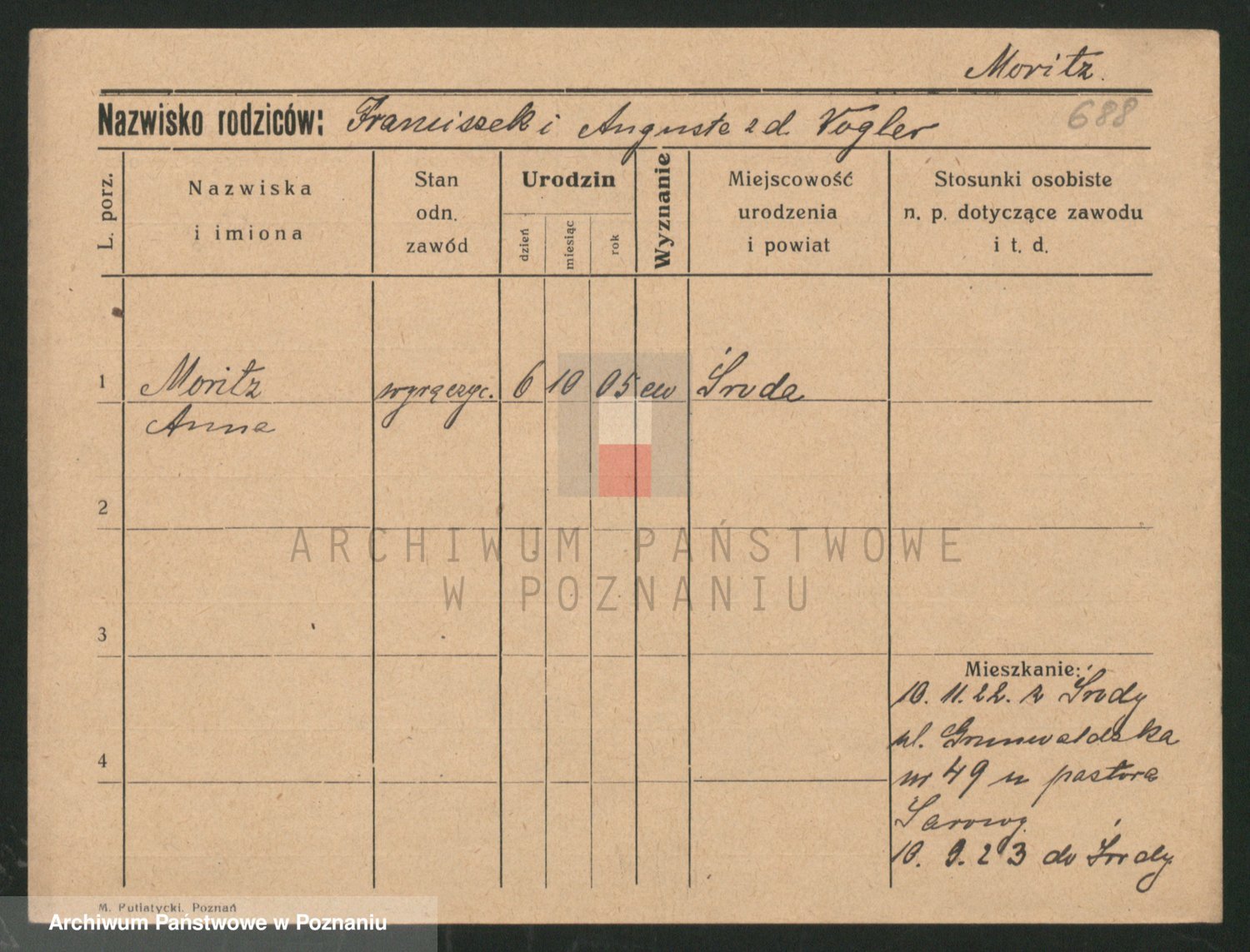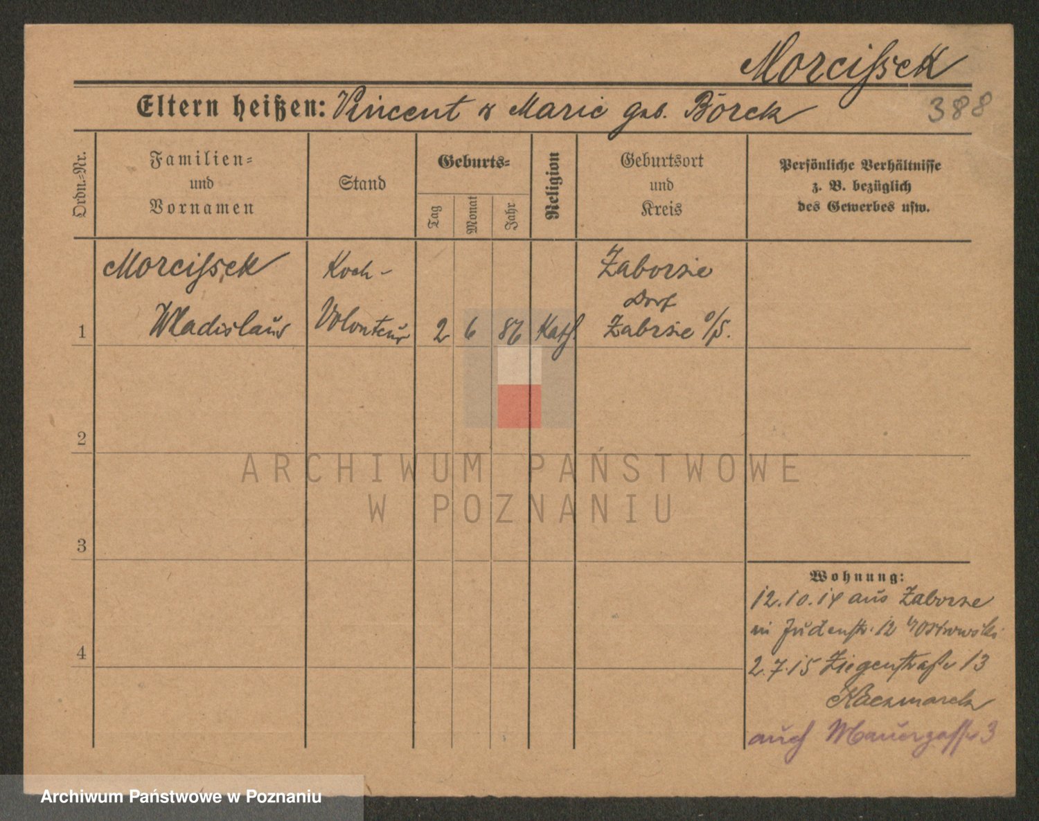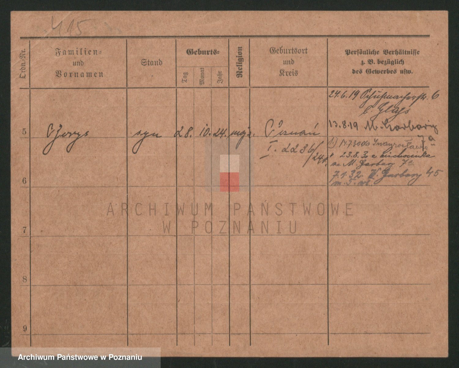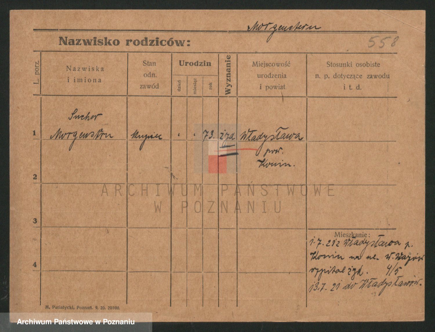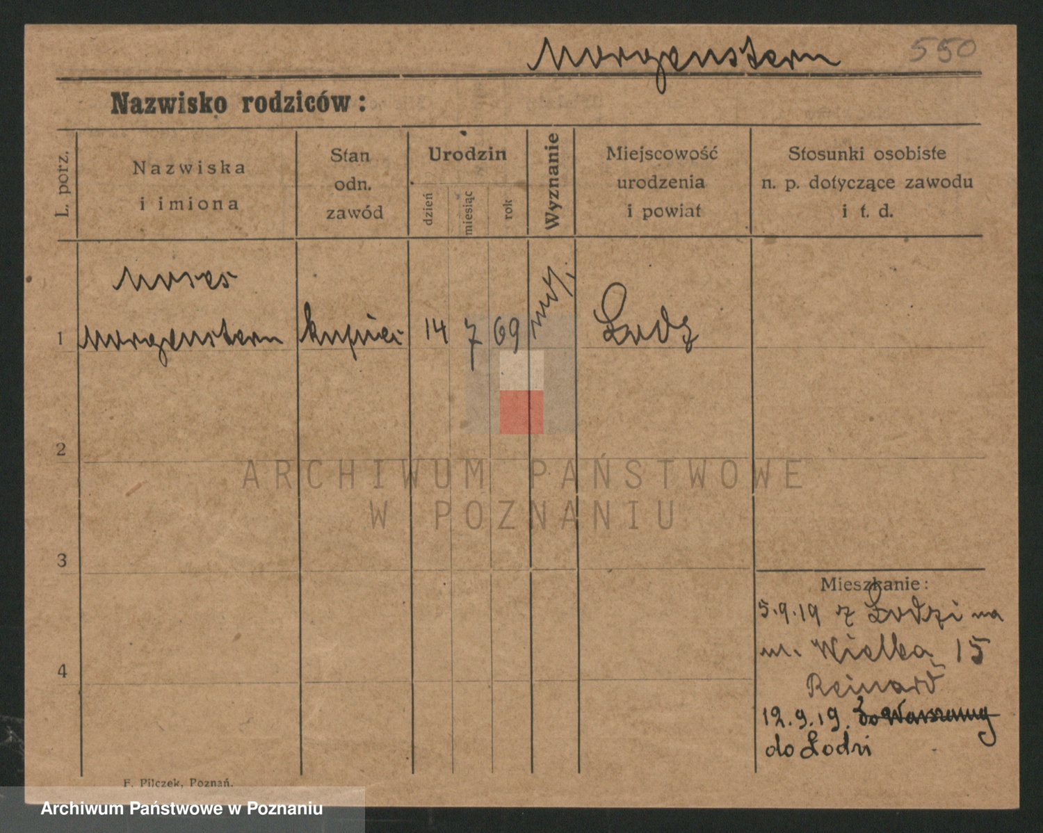 Podgląd karty osobowej dostępny jest po kliknięciu na nazwisko lub ikonkę karty. Można dokonywać powiększenia (ikony na górze) lub przechodzić między kolejnymi skanami (strzałki po bokach).