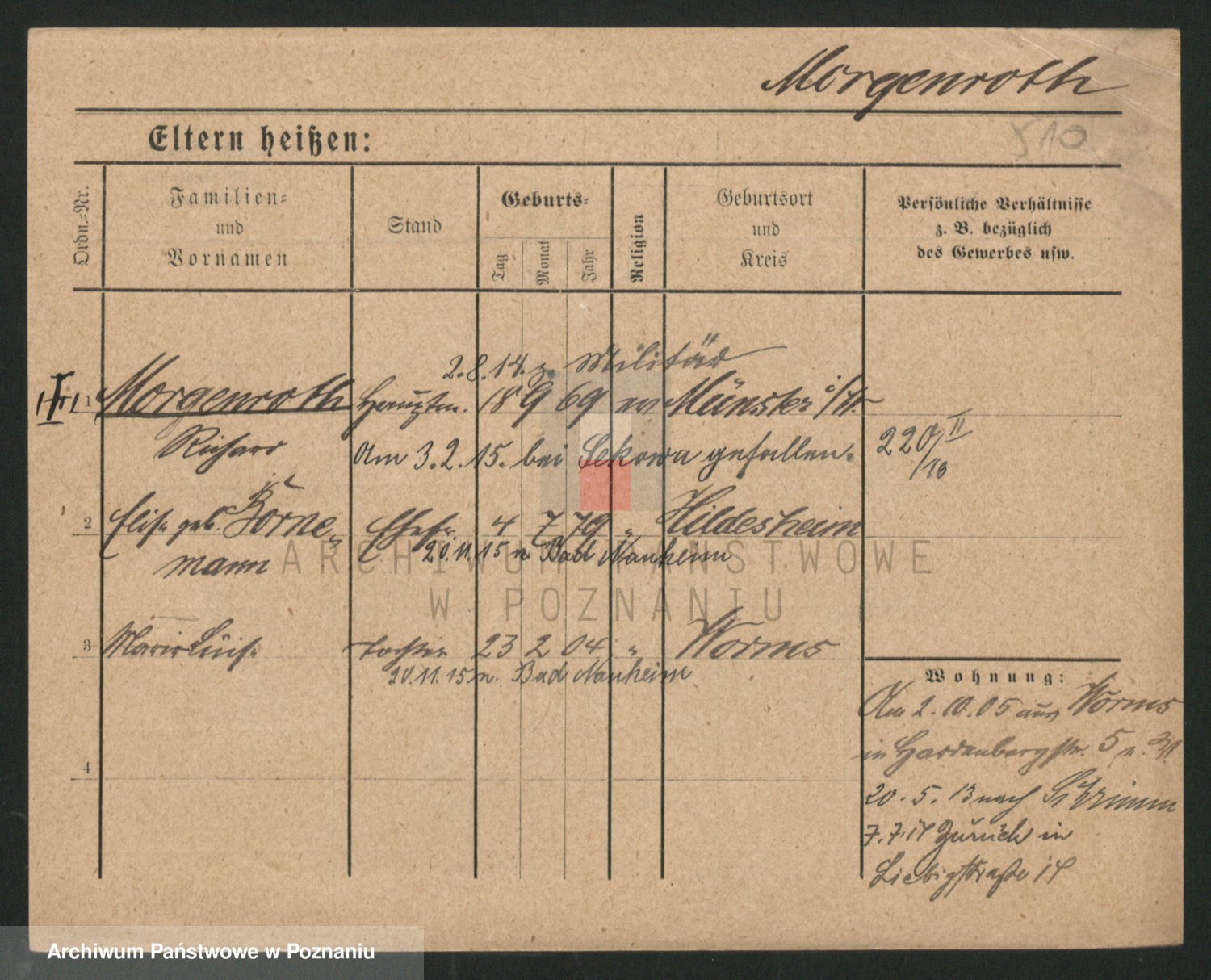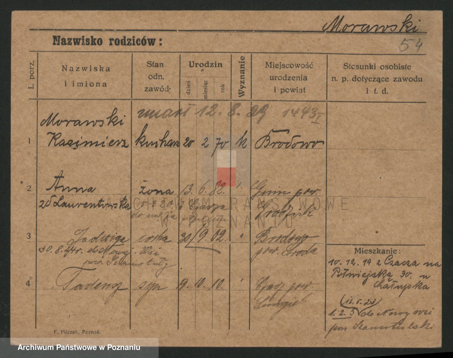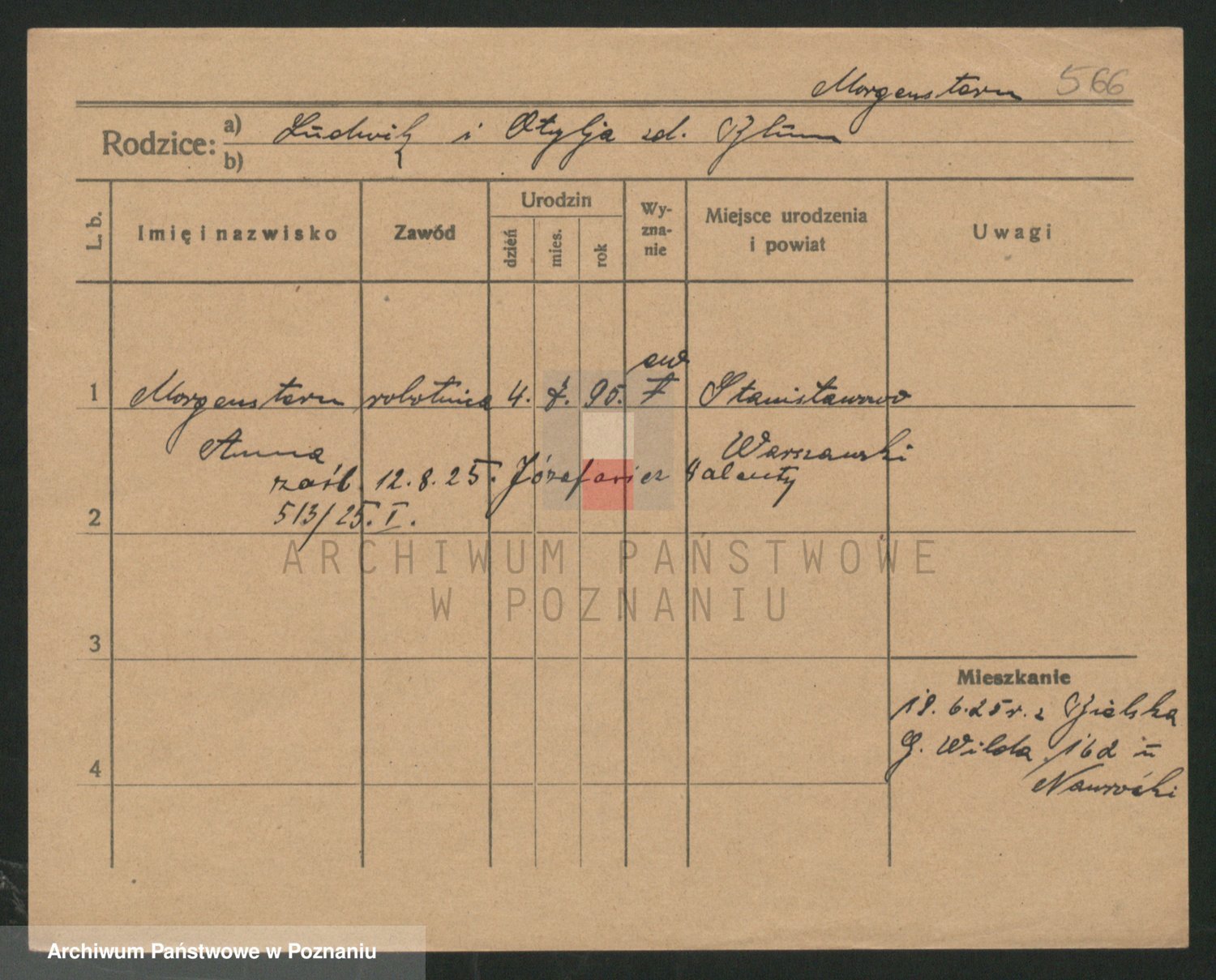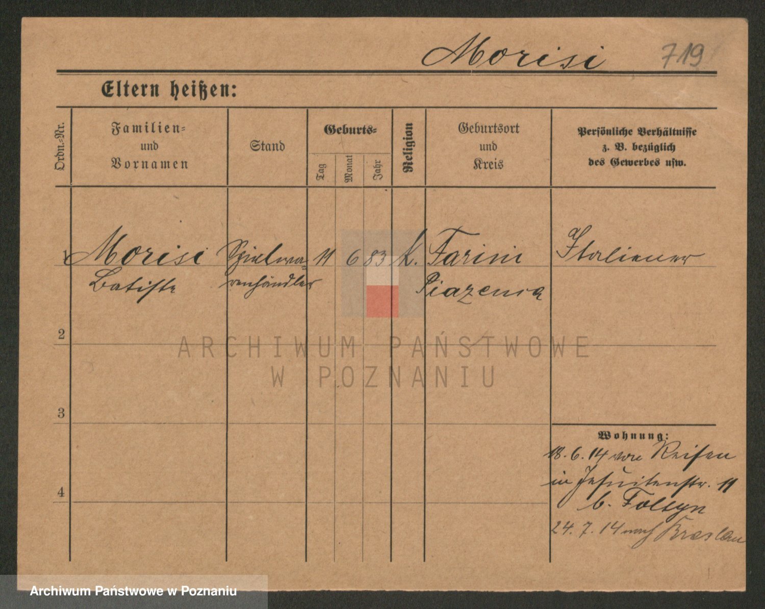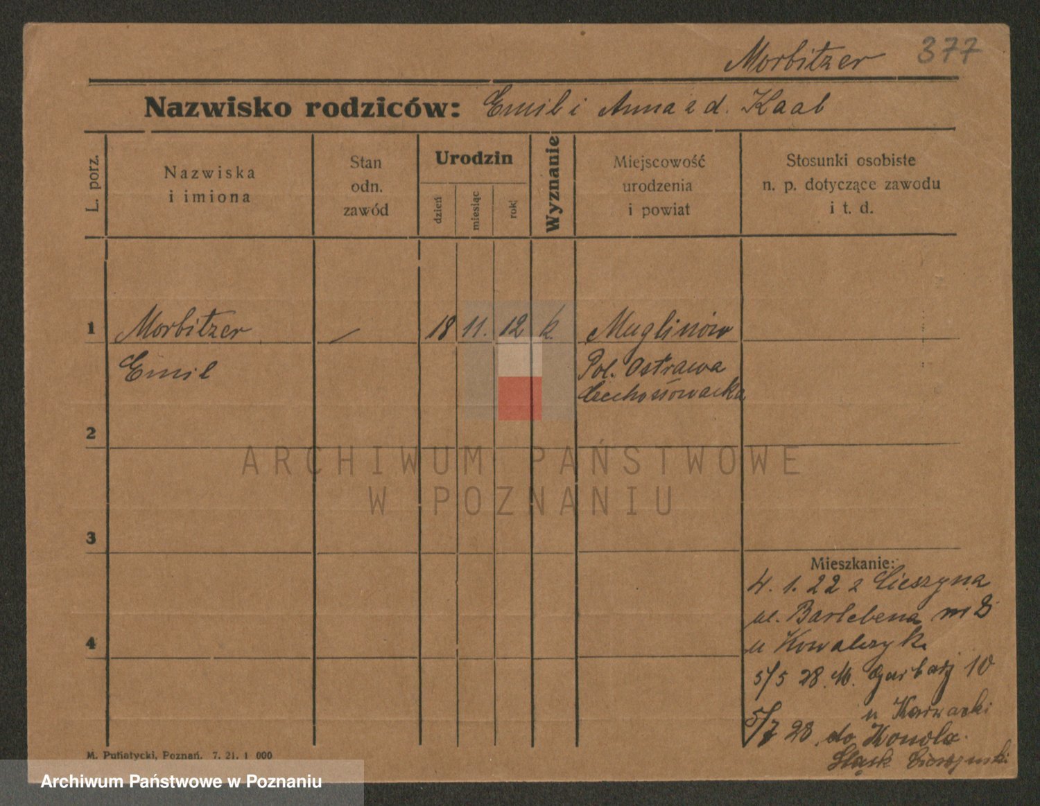 Podgląd karty osobowej dostępny jest po kliknięciu na nazwisko lub ikonkę karty. Można dokonywać powiększenia (ikony na górze) lub przechodzić między kolejnymi skanami (strzałki po bokach).