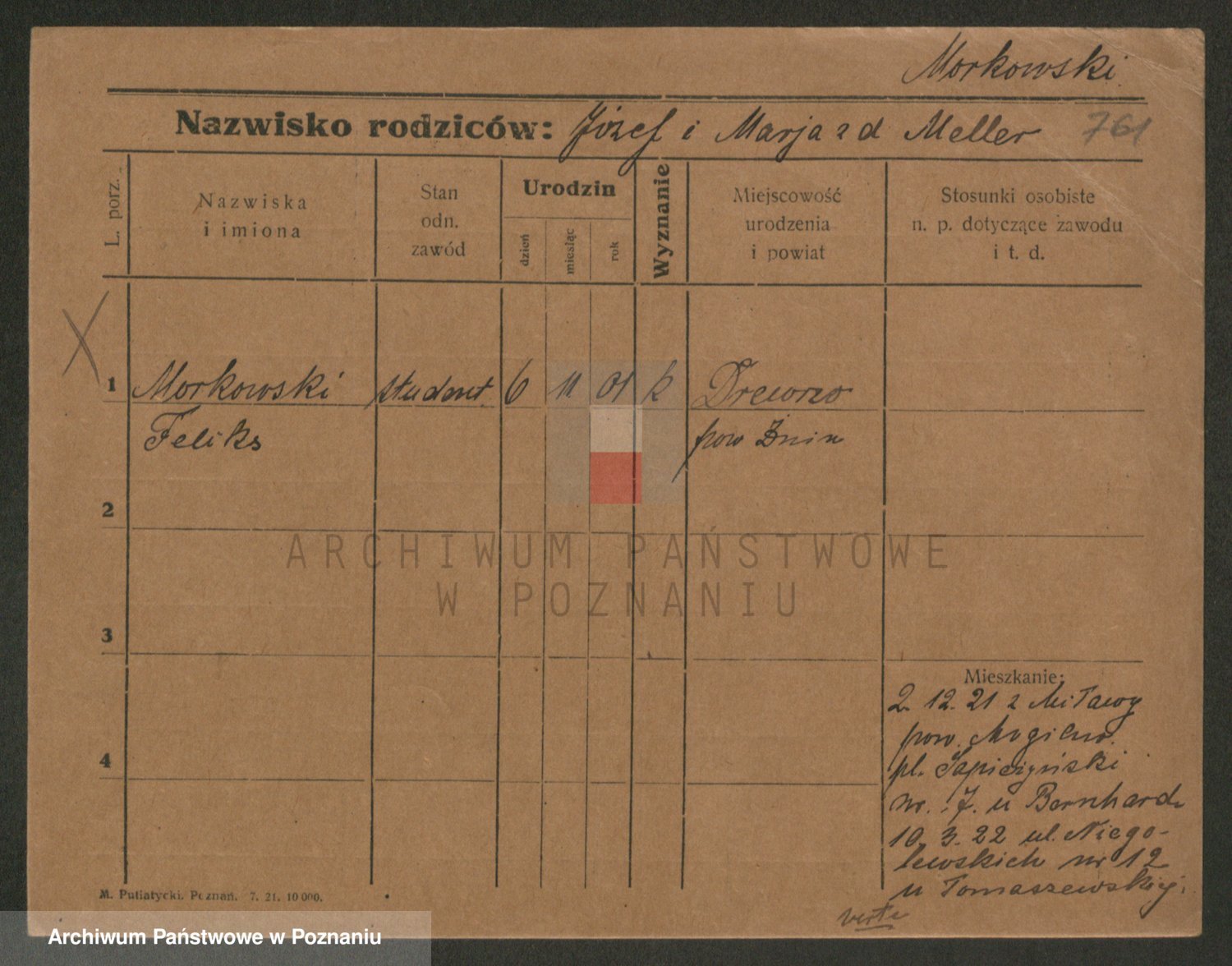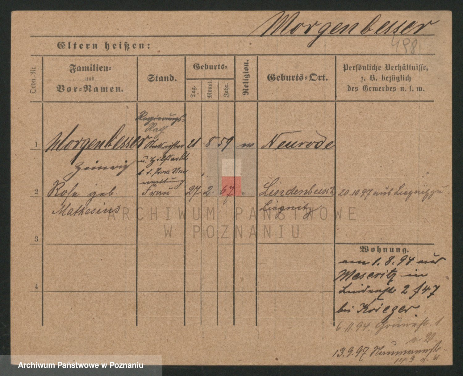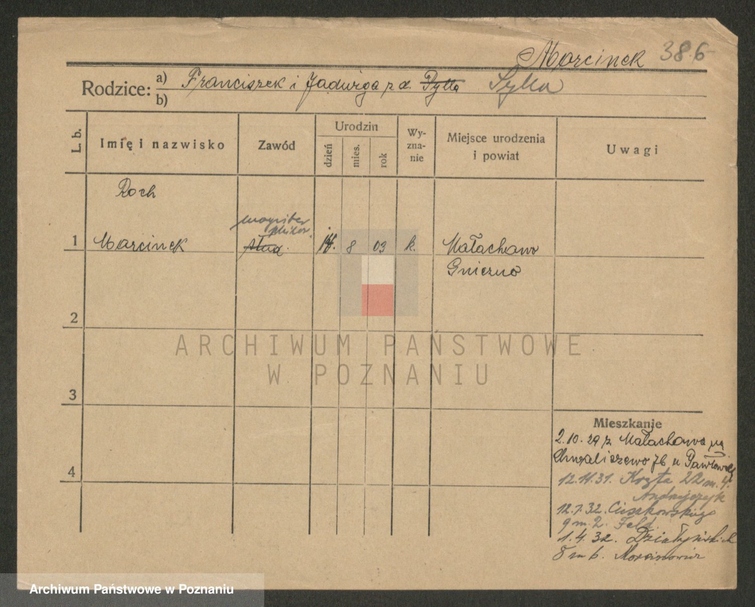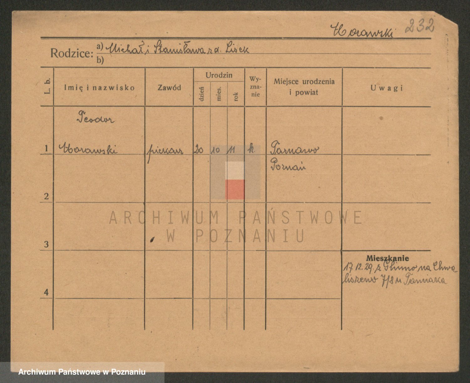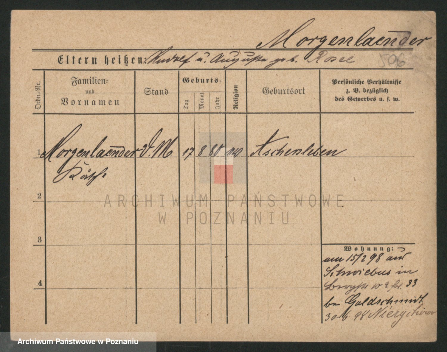 Podgląd karty osobowej dostępny jest po kliknięciu na nazwisko lub ikonkę karty. Można dokonywać powiększenia (ikony na górze) lub przechodzić między kolejnymi skanami (strzałki po bokach).