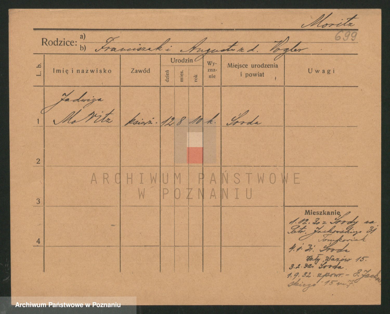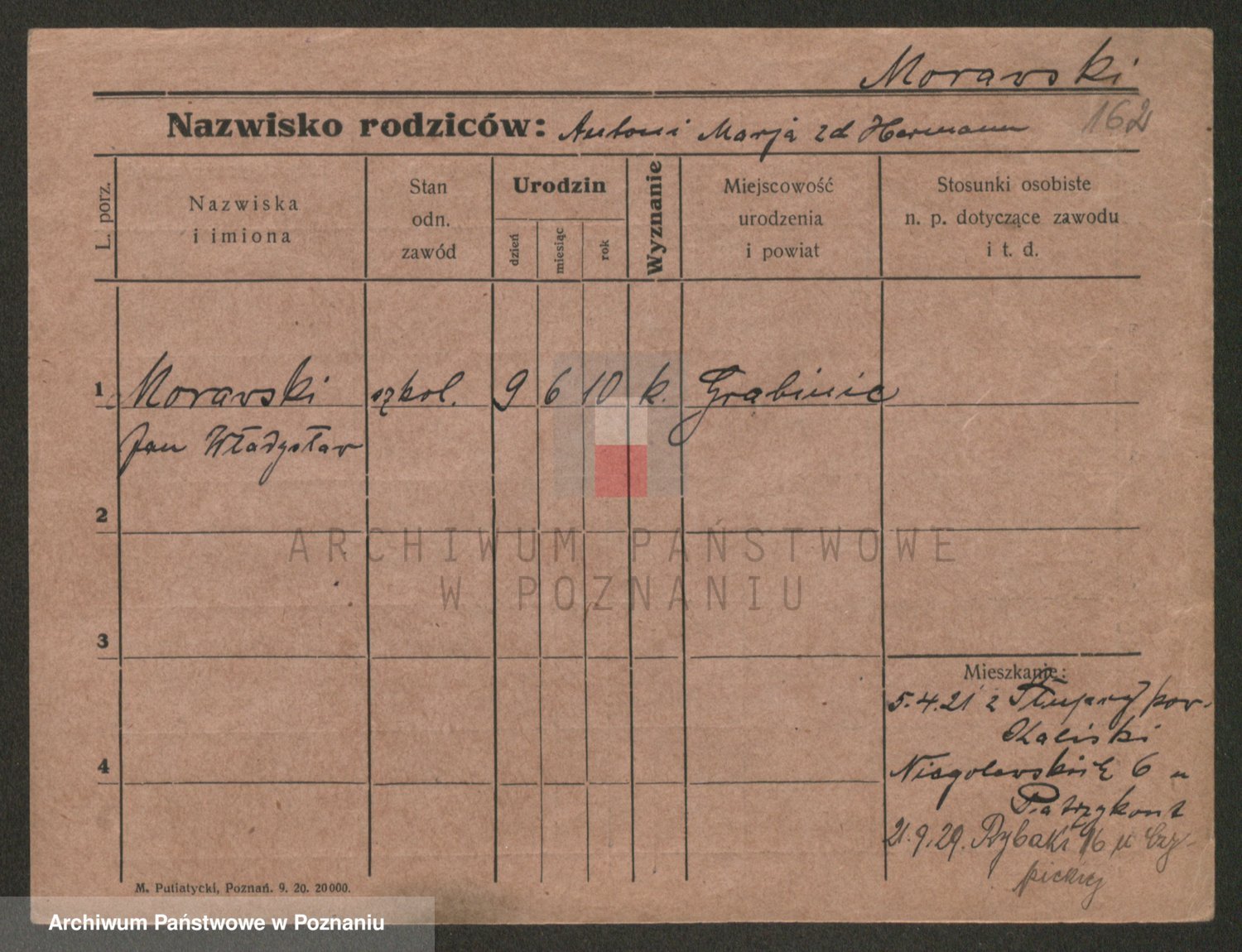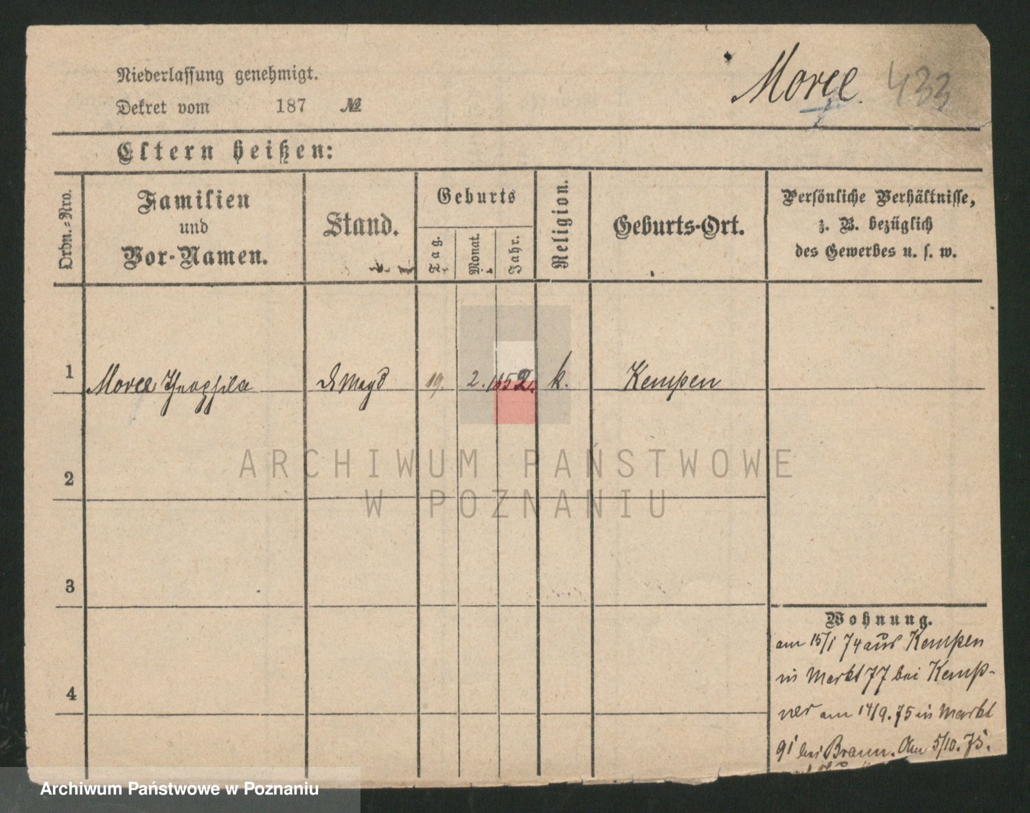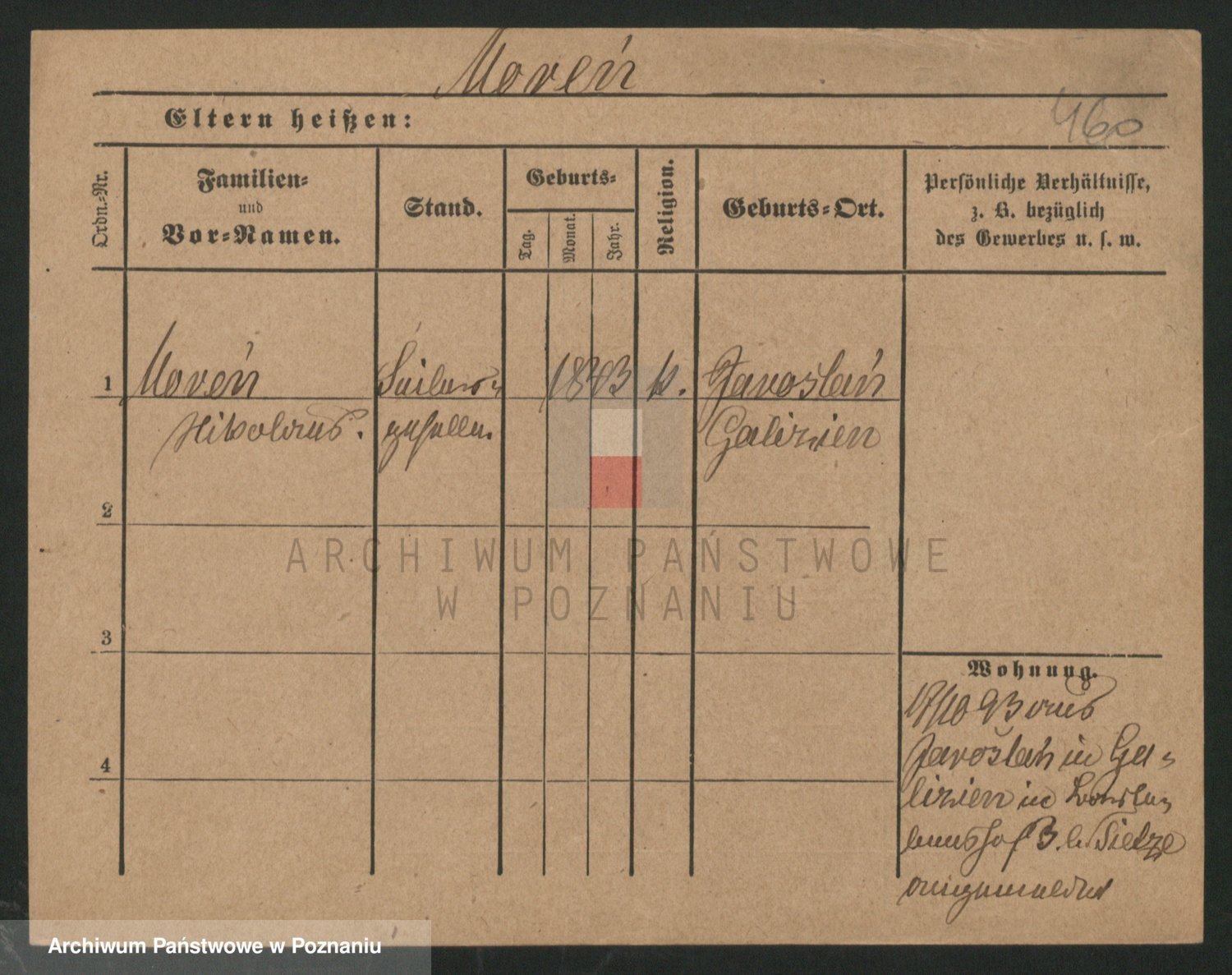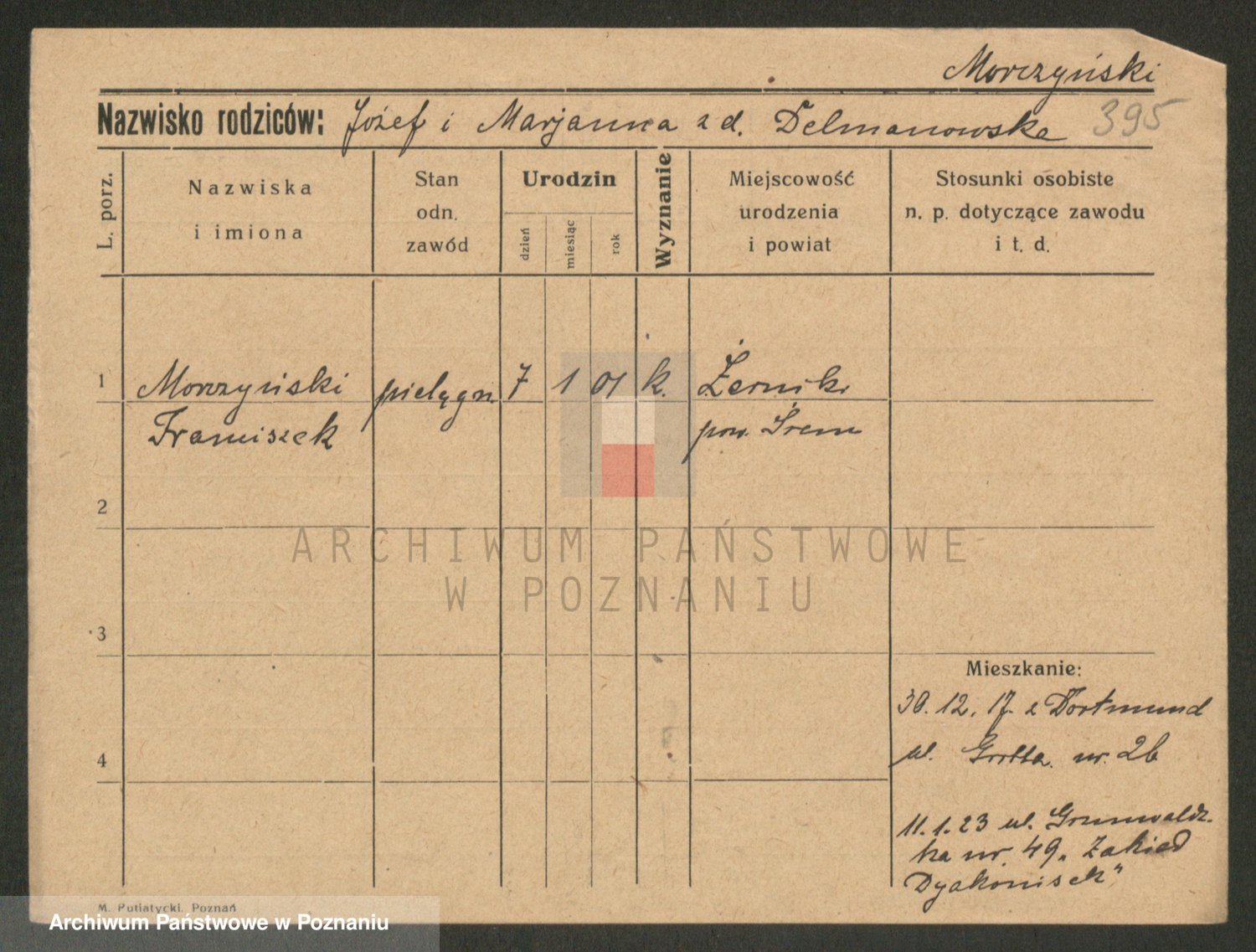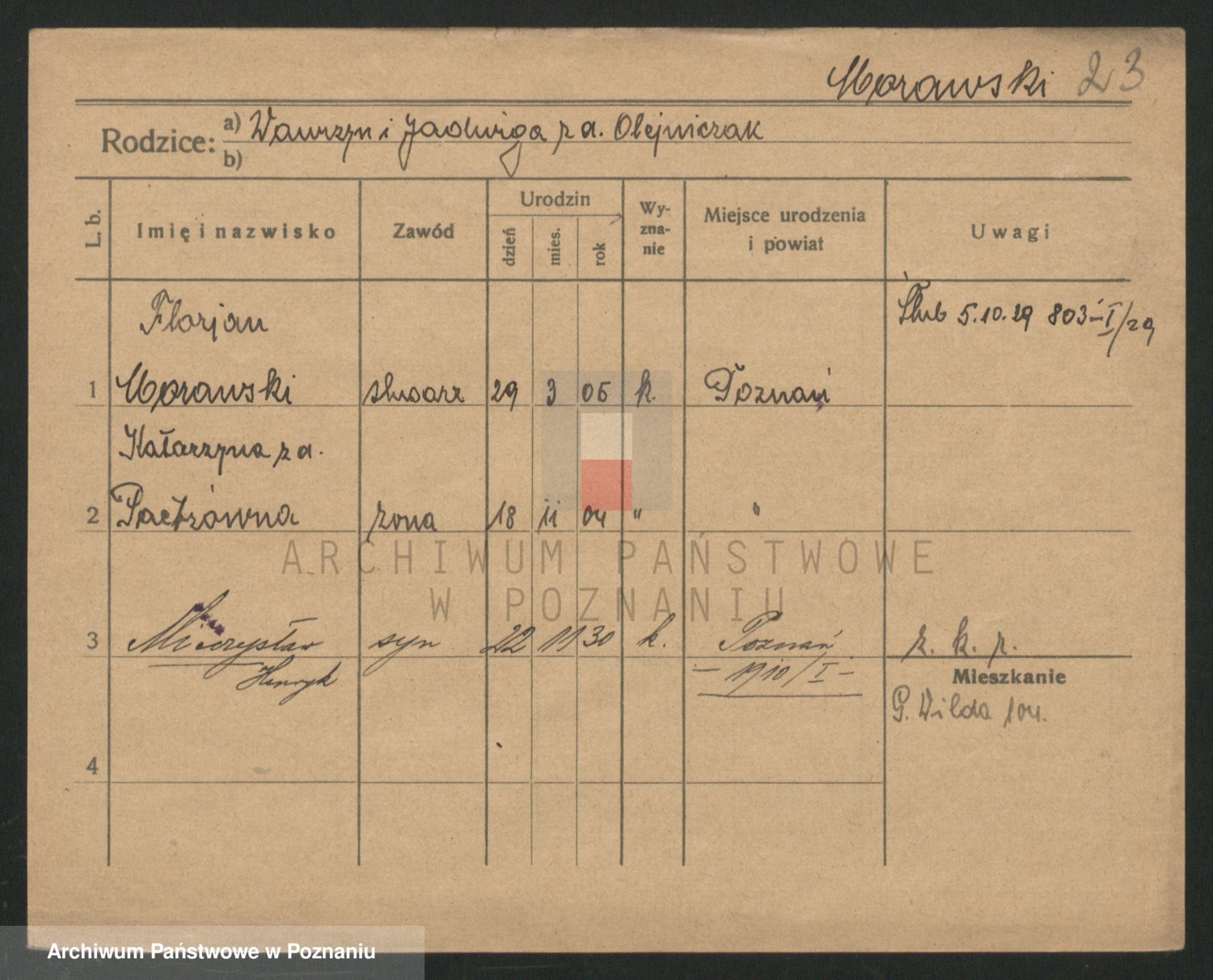 Podgląd karty osobowej dostępny jest po kliknięciu na nazwisko lub ikonkę karty. Można dokonywać powiększenia (ikony na górze) lub przechodzić między kolejnymi skanami (strzałki po bokach).