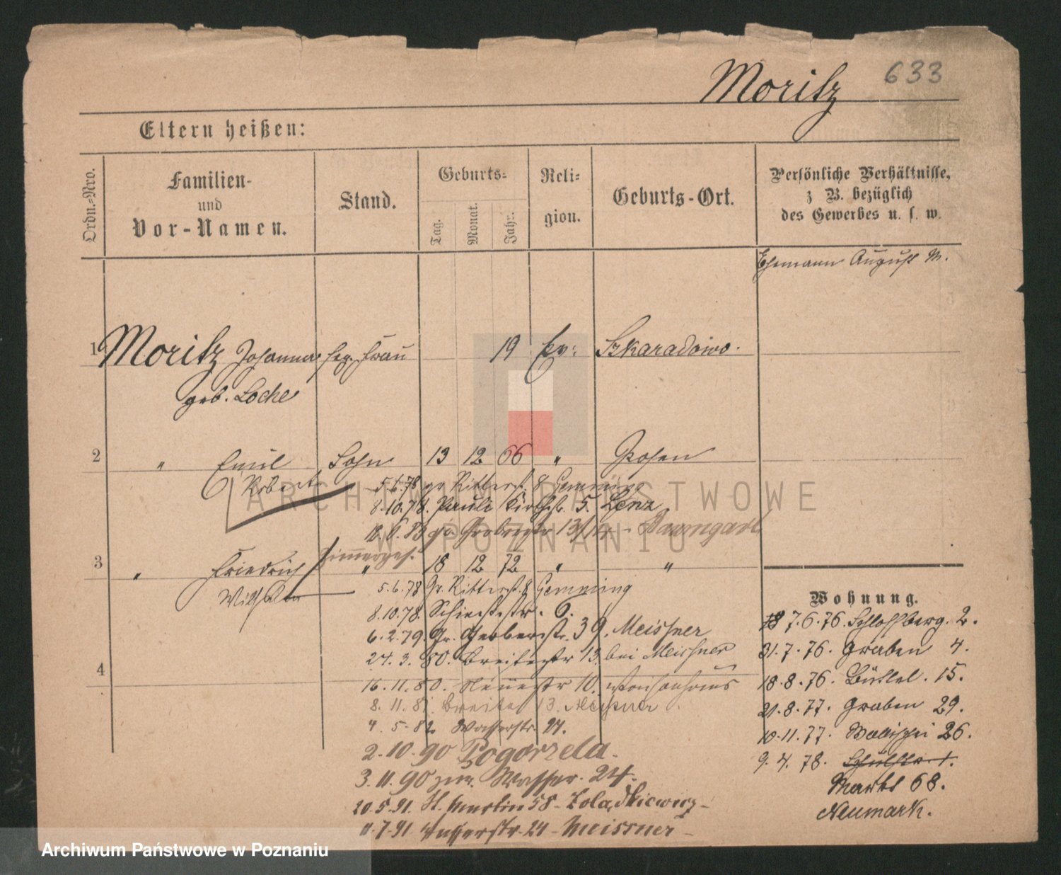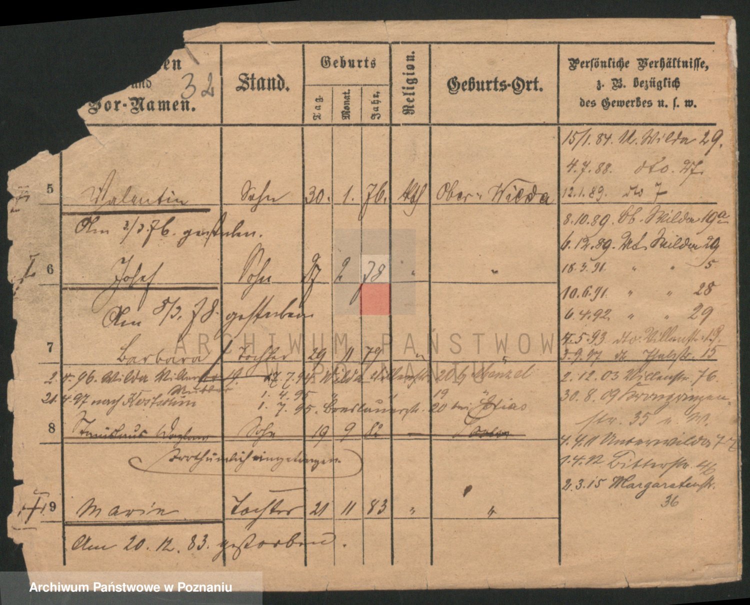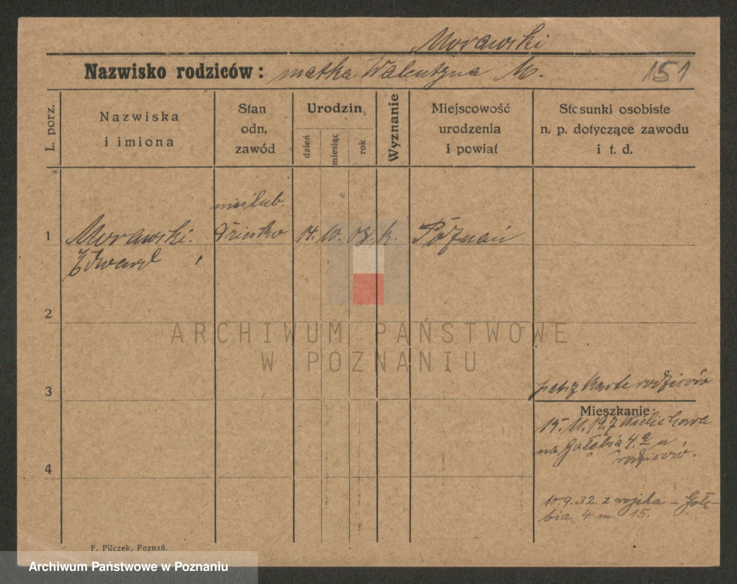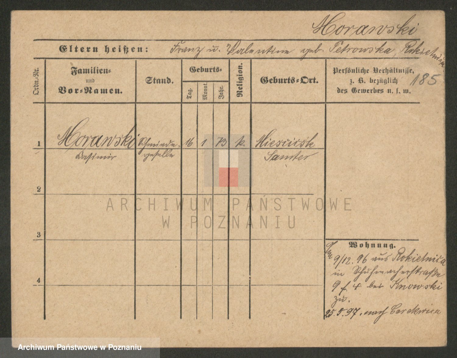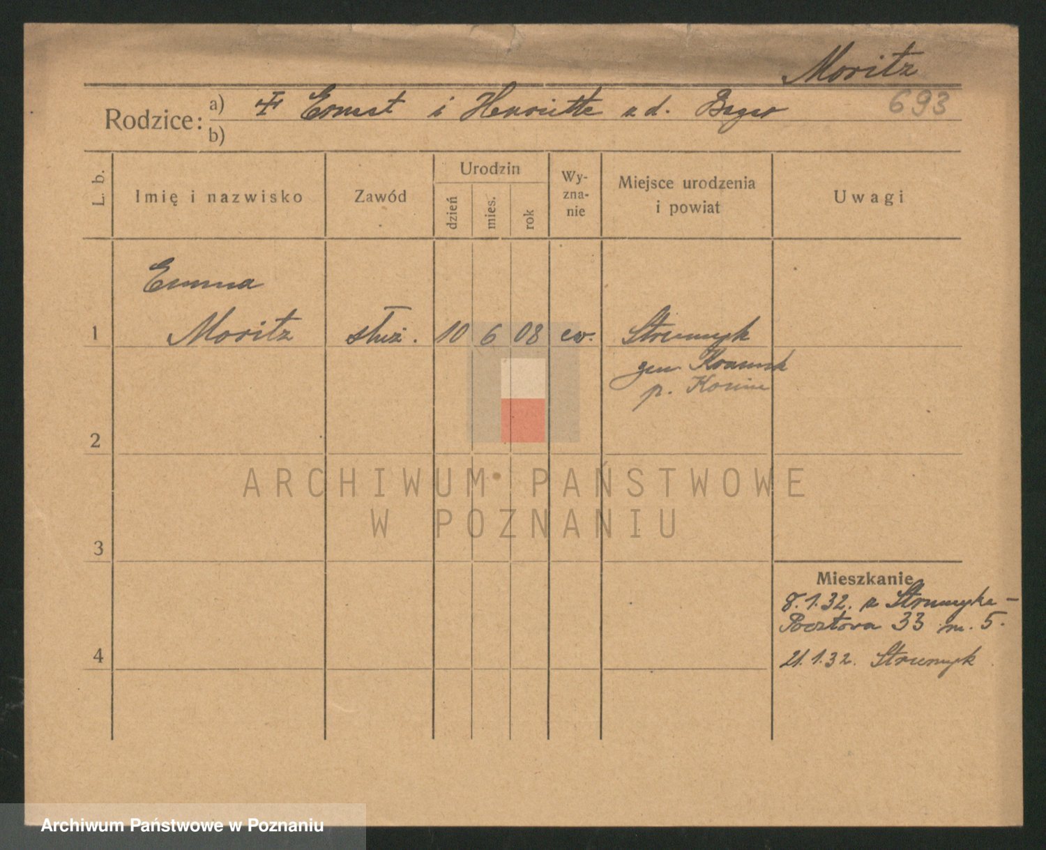 Podgląd karty osobowej dostępny jest po kliknięciu na nazwisko lub ikonkę karty. Można dokonywać powiększenia (ikony na górze) lub przechodzić między kolejnymi skanami (strzałki po bokach).