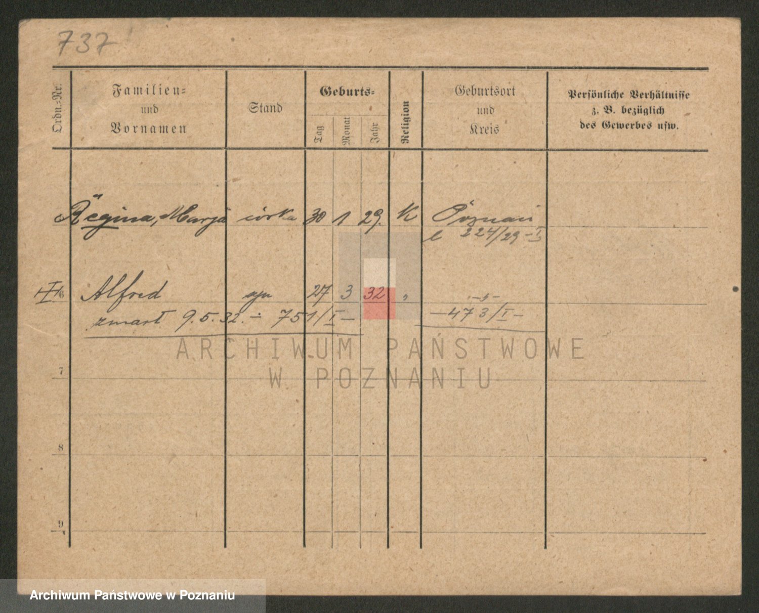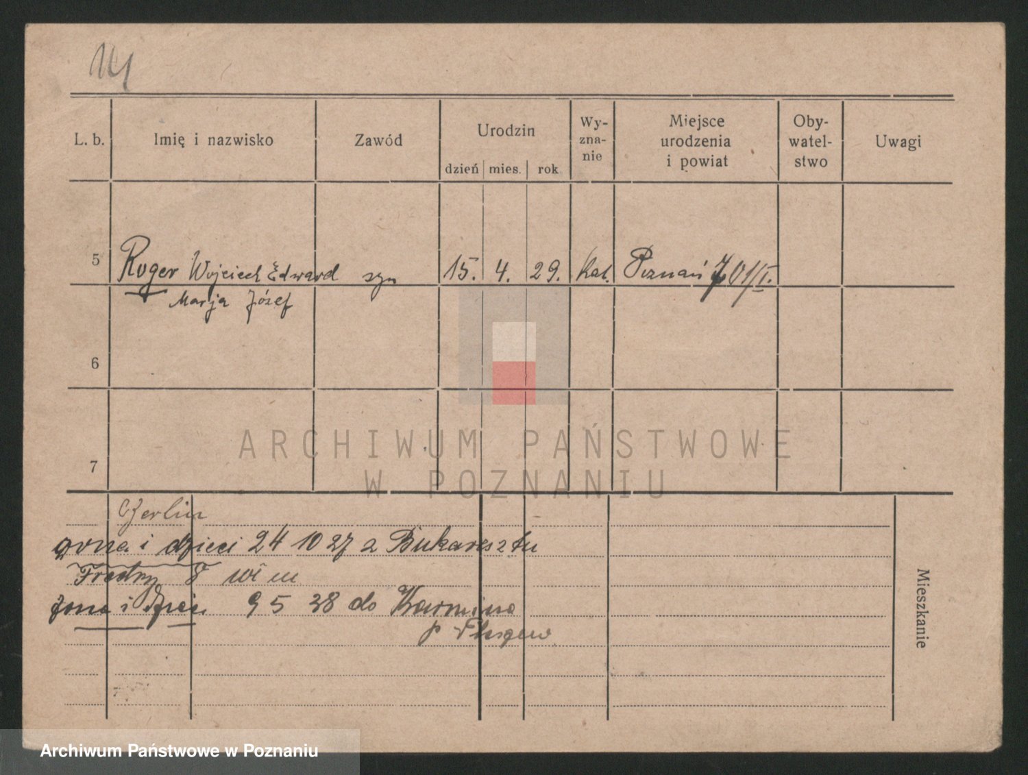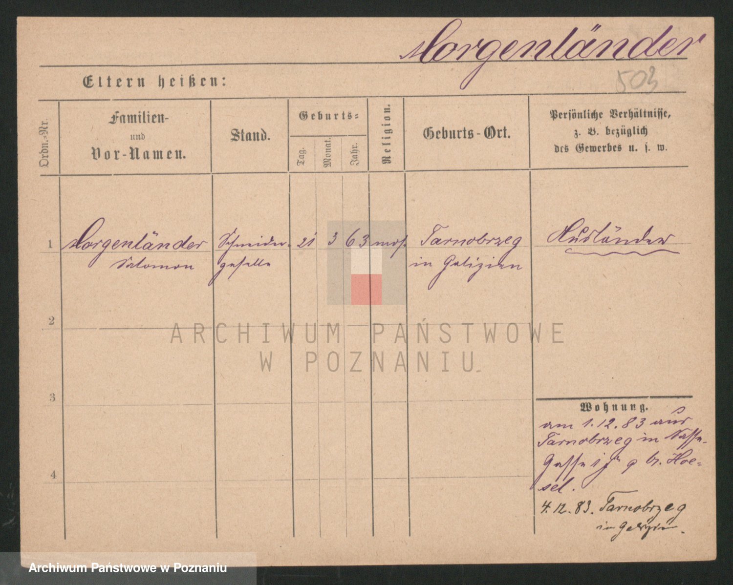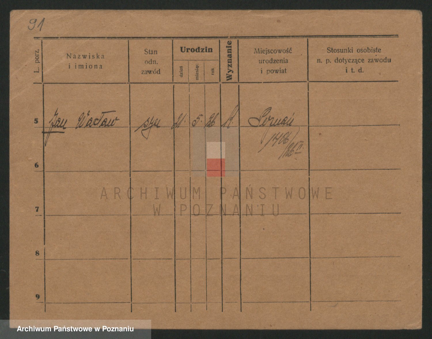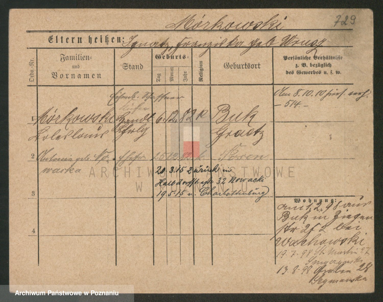 Podgląd karty osobowej dostępny jest po kliknięciu na nazwisko lub ikonkę karty. Można dokonywać powiększenia (ikony na górze) lub przechodzić między kolejnymi skanami (strzałki po bokach).