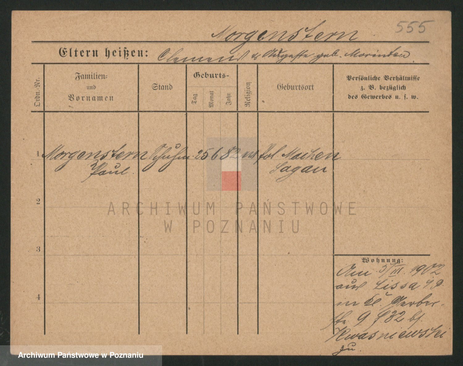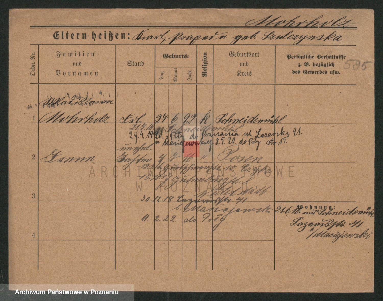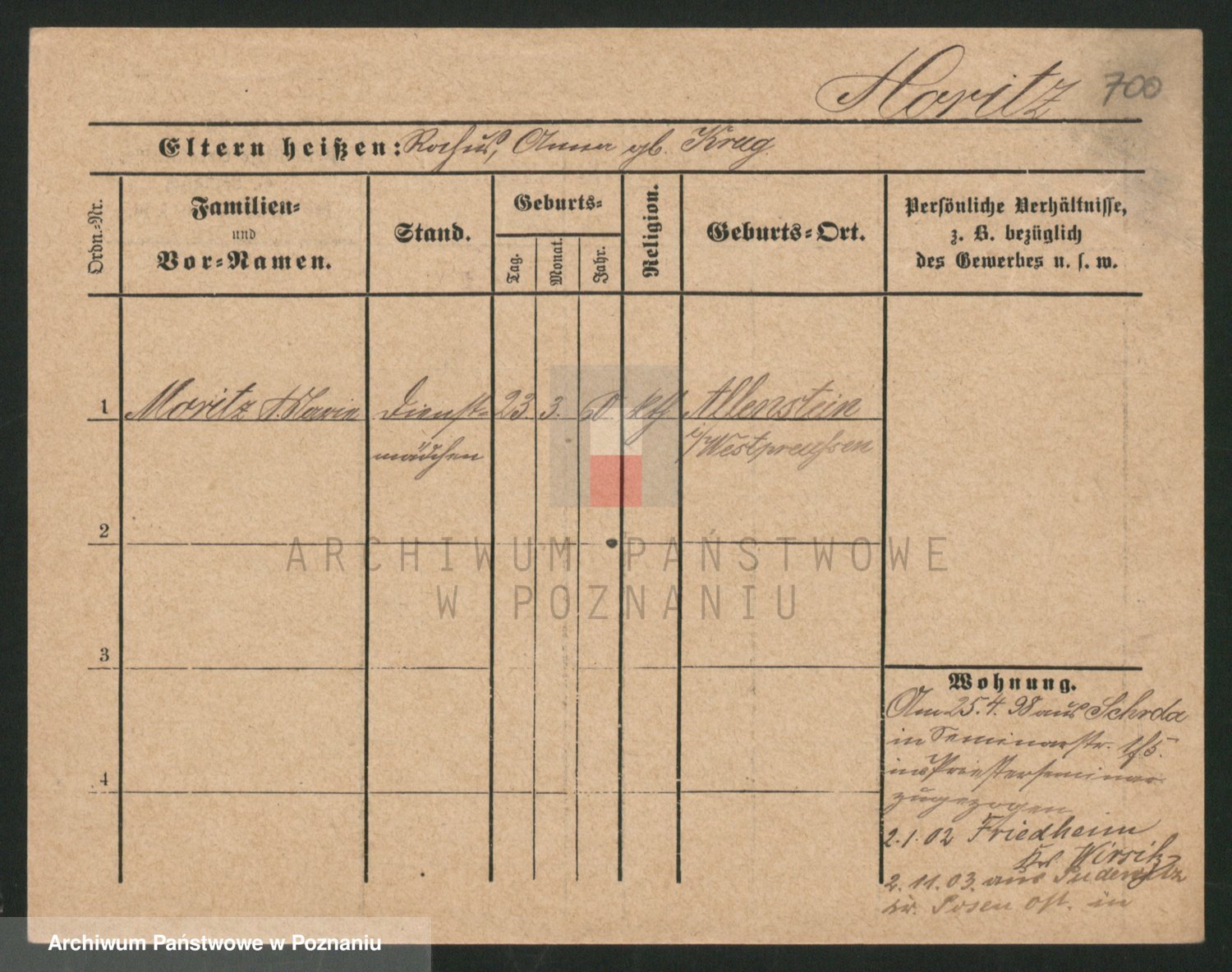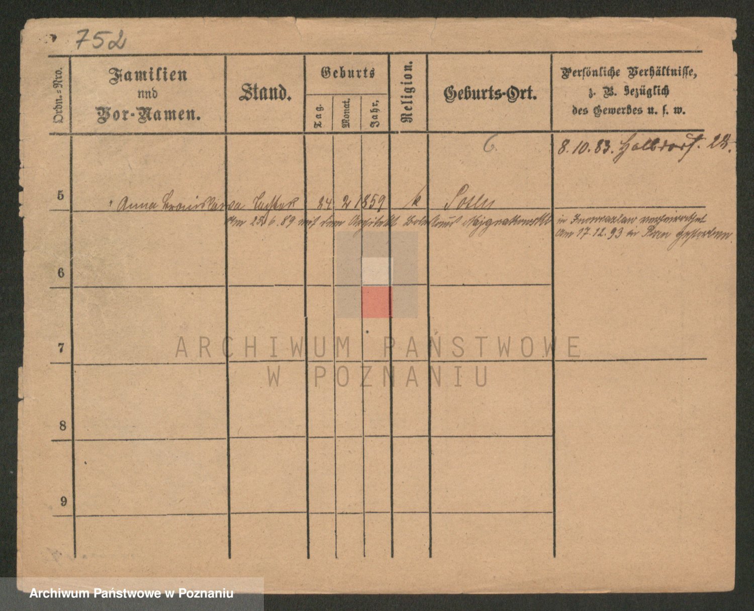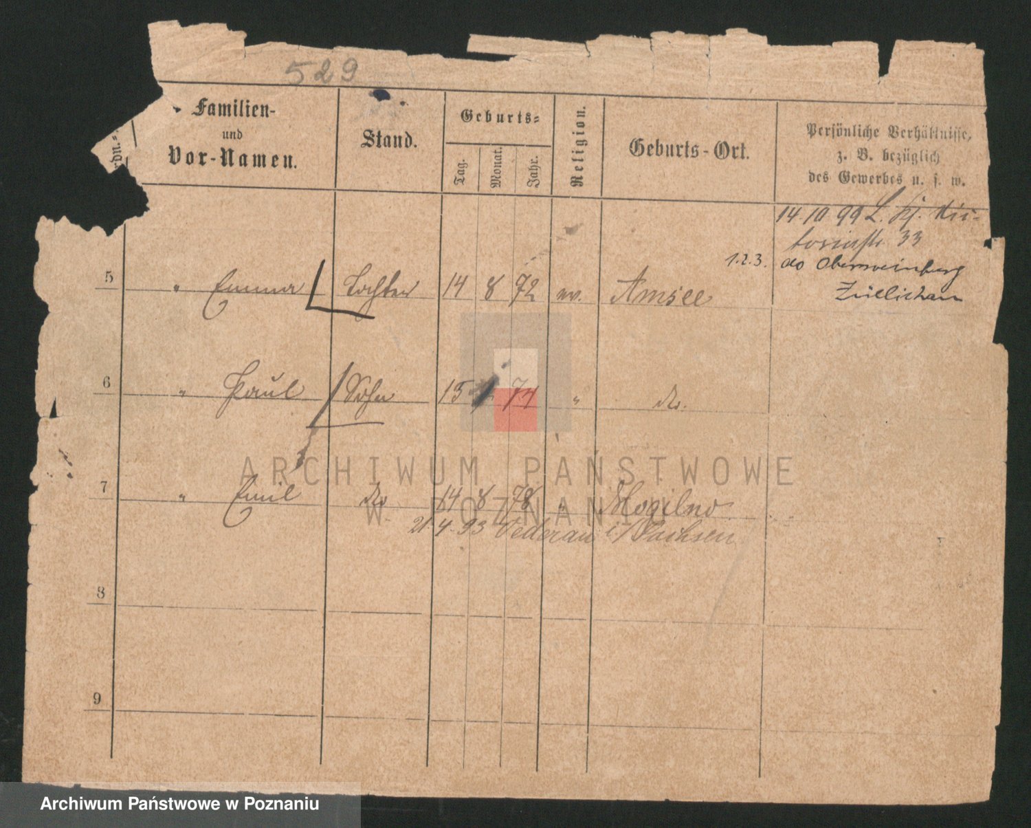Podgląd karty osobowej dostępny jest po kliknięciu na nazwisko lub ikonkę karty. Można dokonywać powiększenia (ikony na górze) lub przechodzić między kolejnymi skanami (strzałki po bokach).