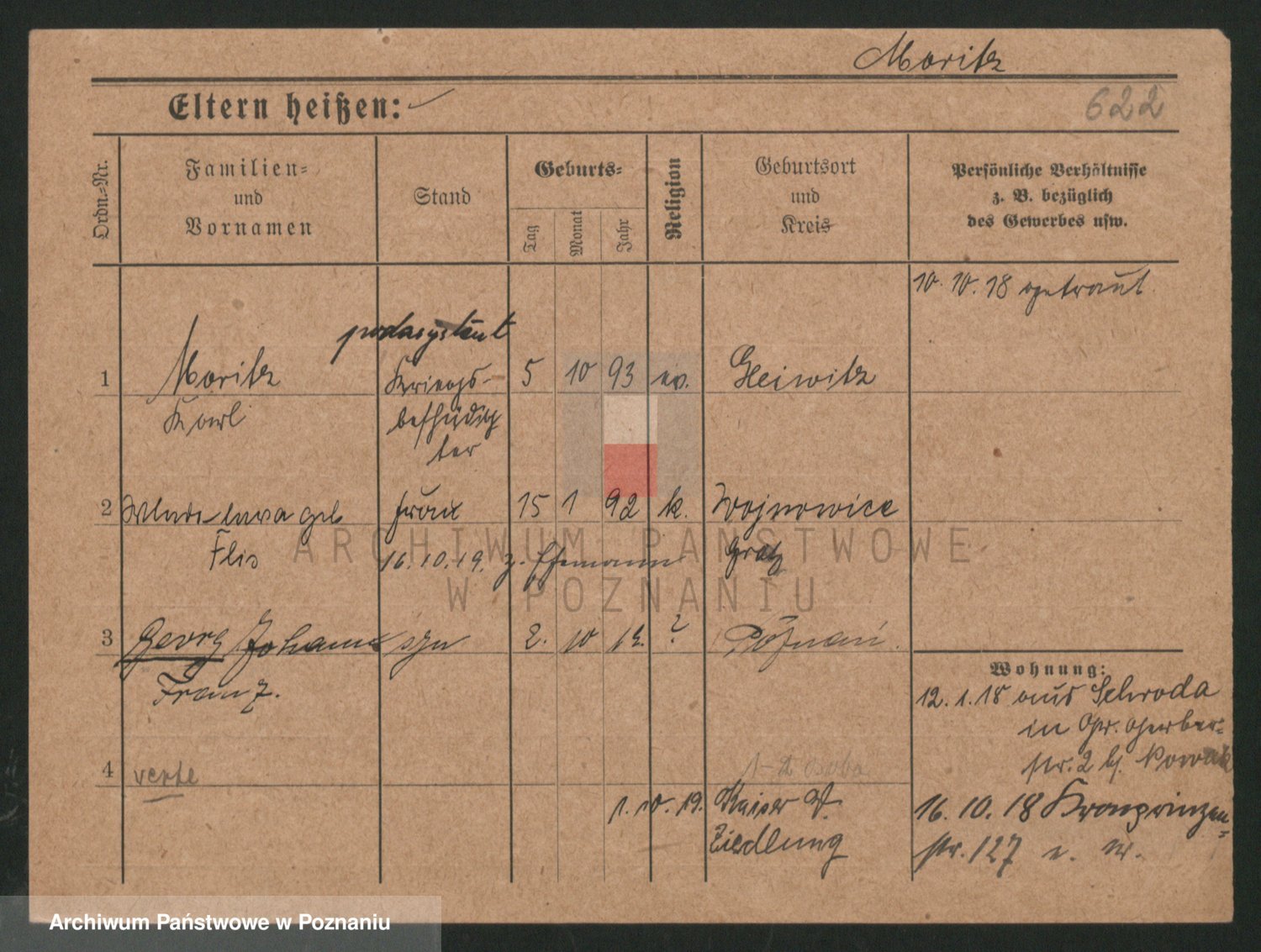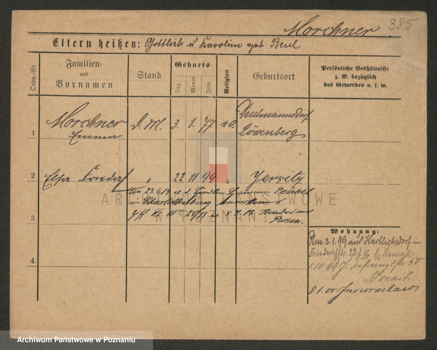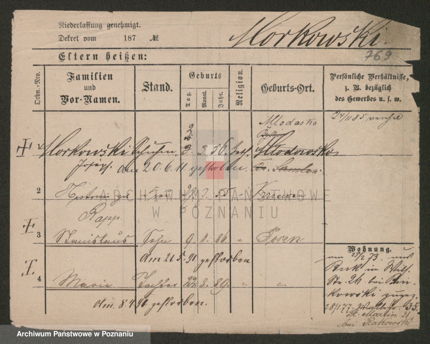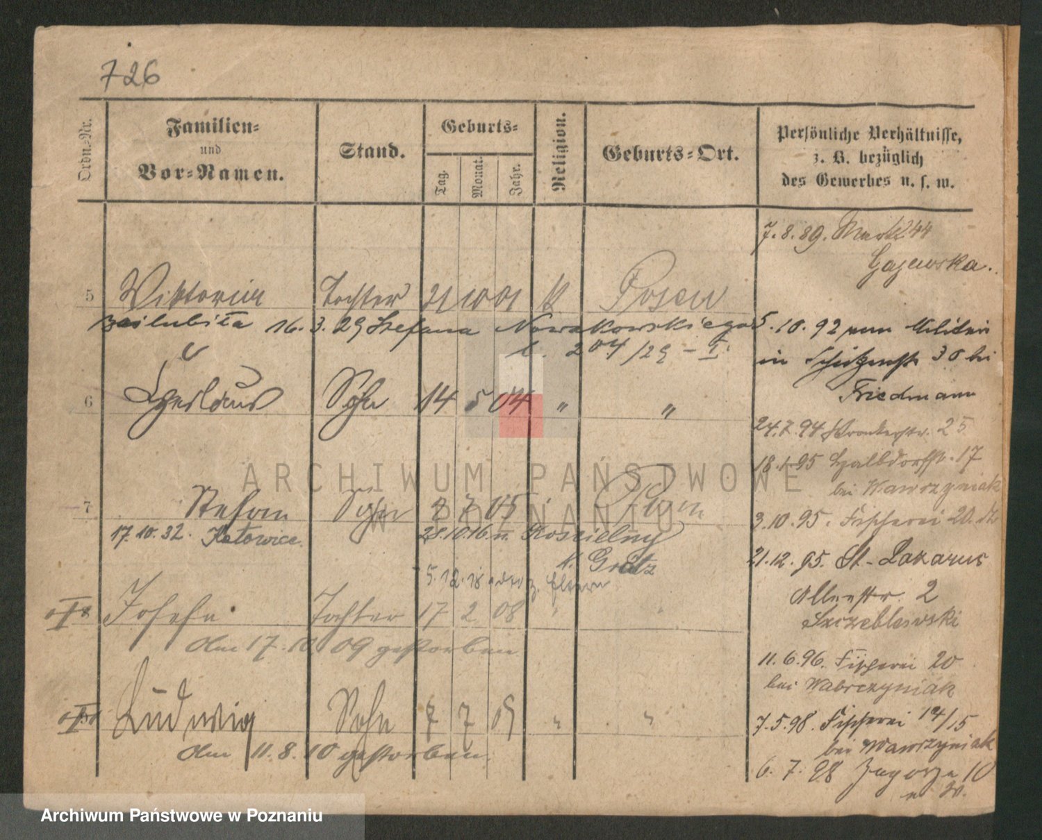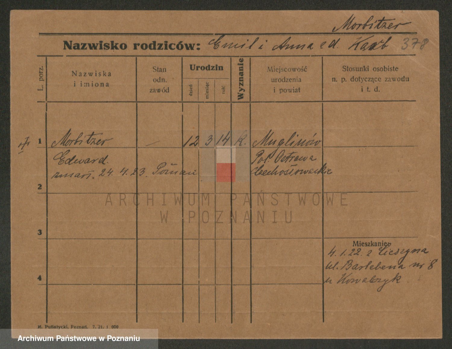 Podgląd karty osobowej dostępny jest po kliknięciu na nazwisko lub ikonkę karty. Można dokonywać powiększenia (ikony na górze) lub przechodzić między kolejnymi skanami (strzałki po bokach).