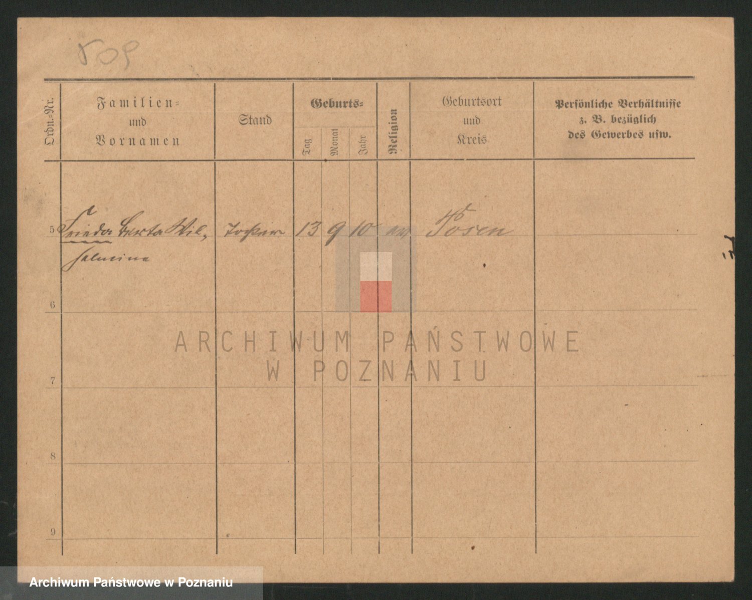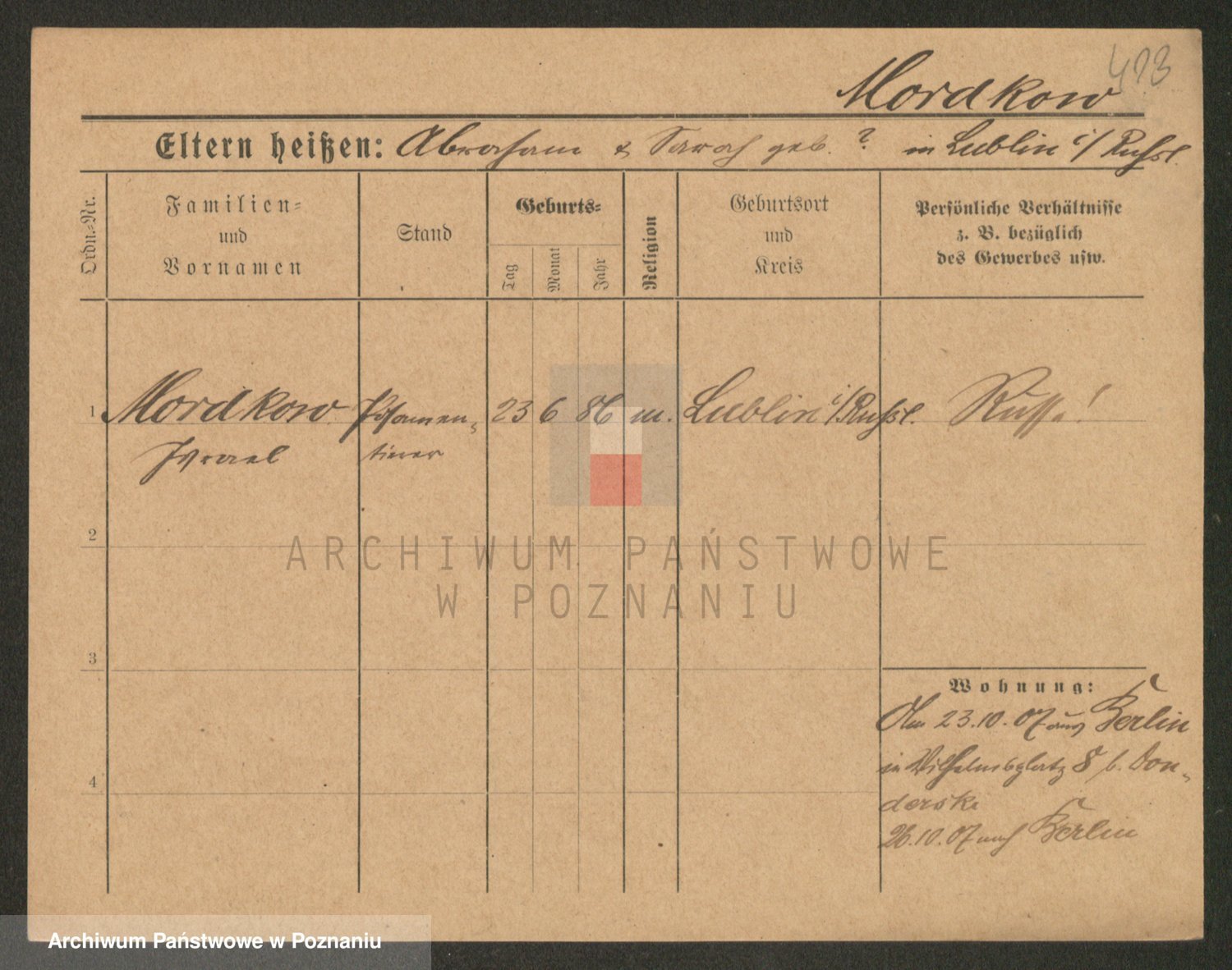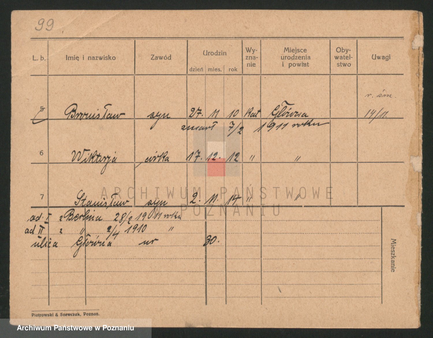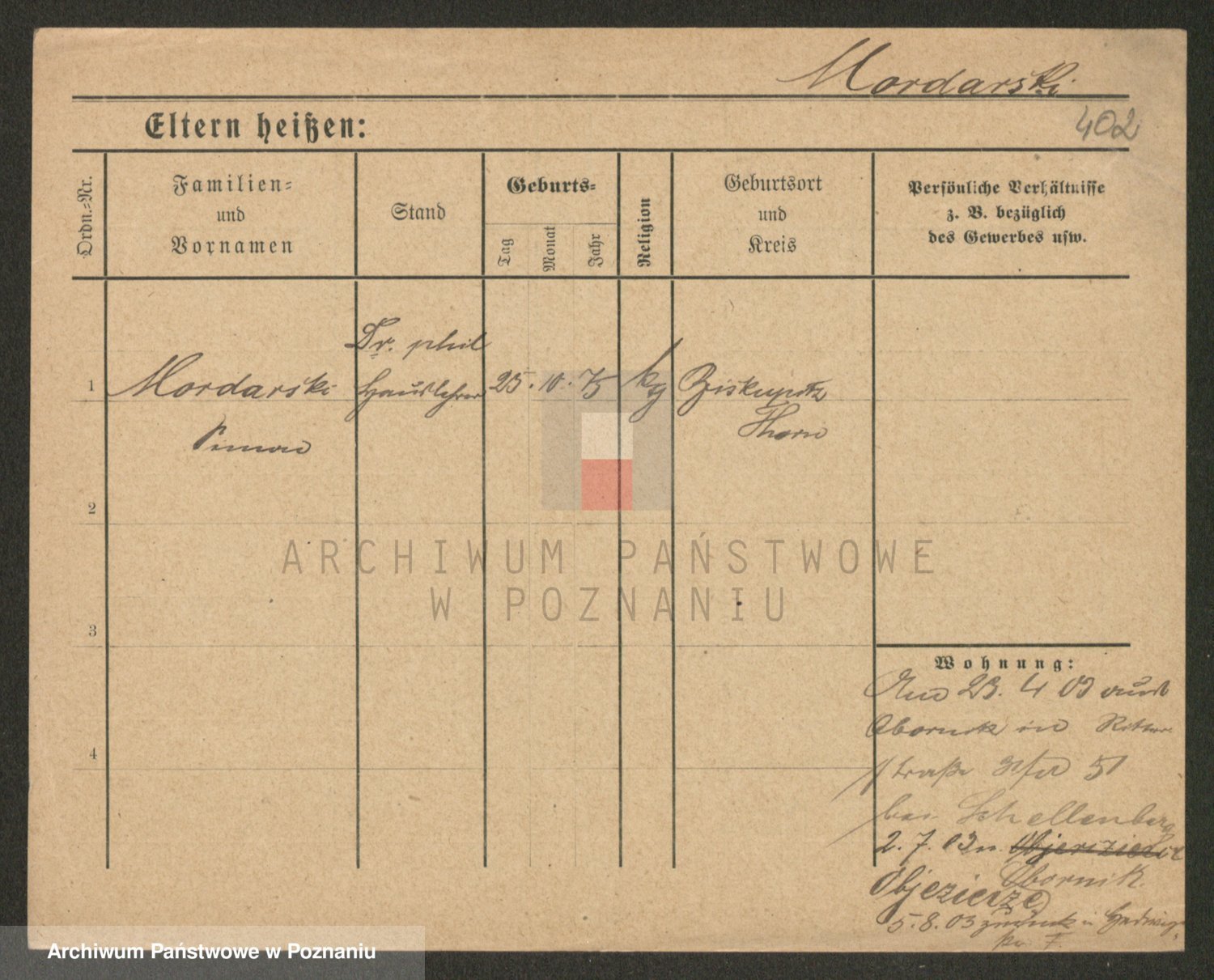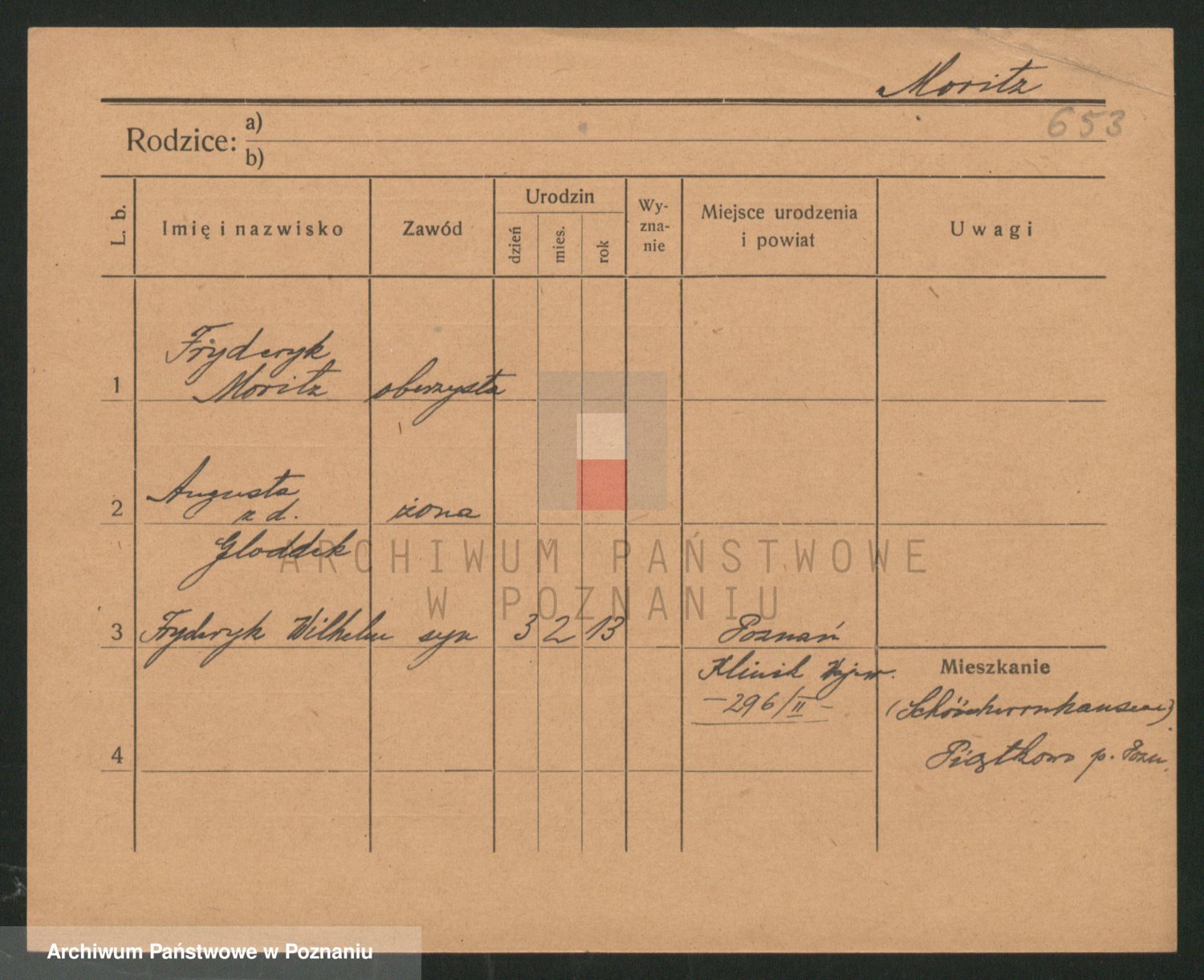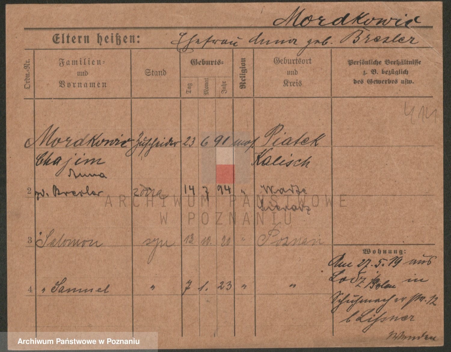 Podgląd karty osobowej dostępny jest po kliknięciu na nazwisko lub ikonkę karty. Można dokonywać powiększenia (ikony na górze) lub przechodzić między kolejnymi skanami (strzałki po bokach).