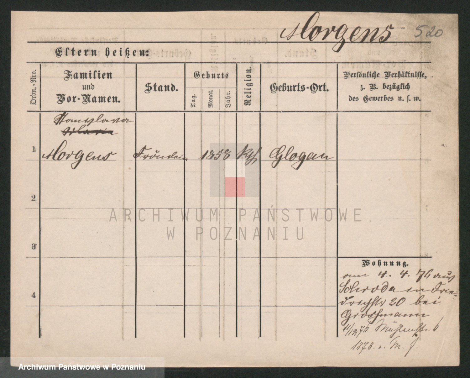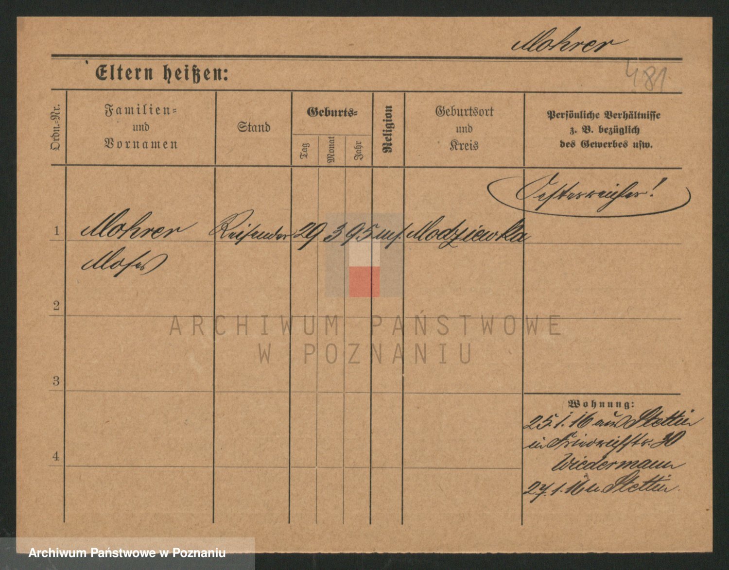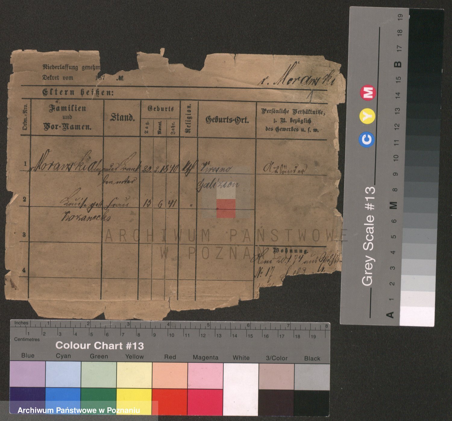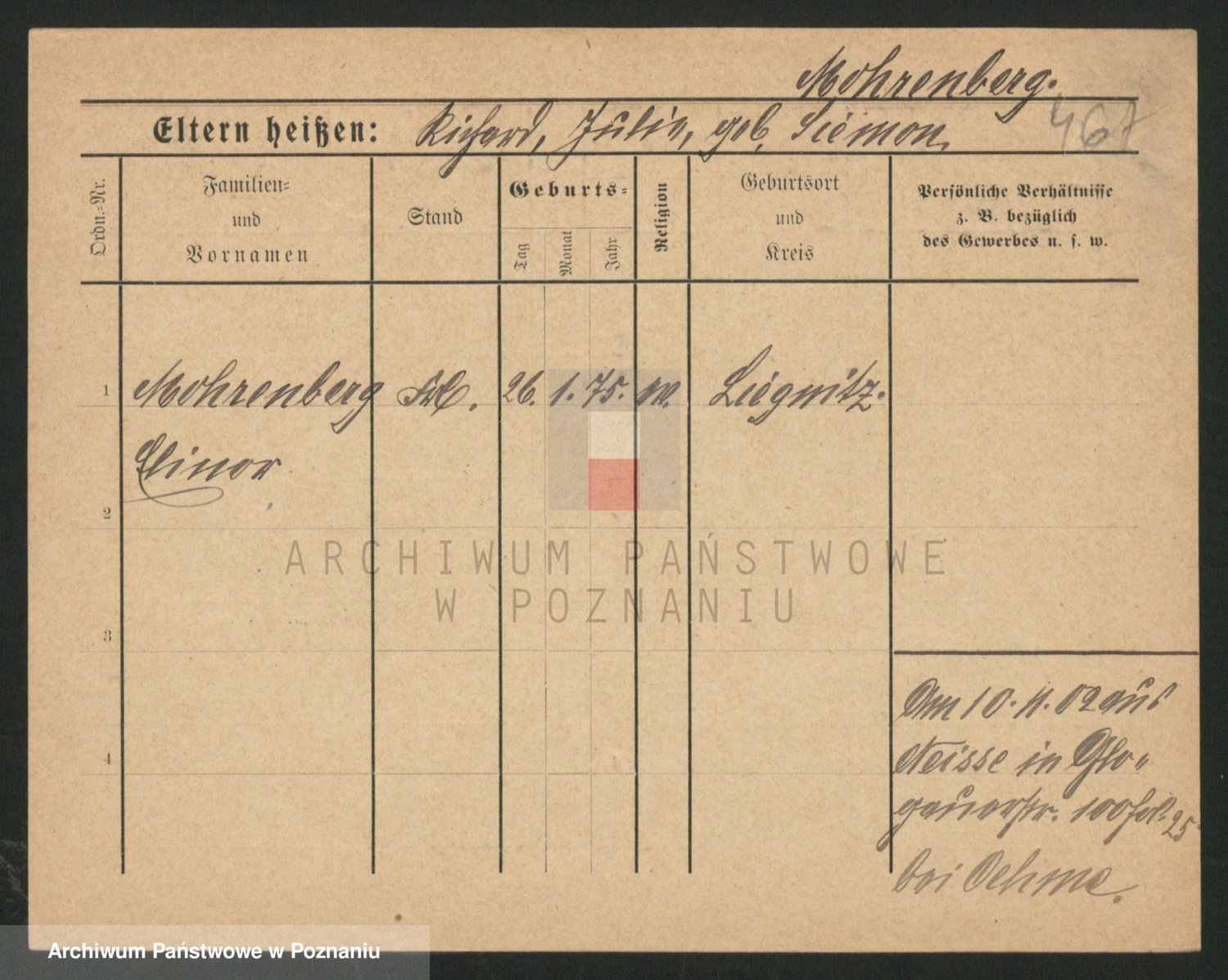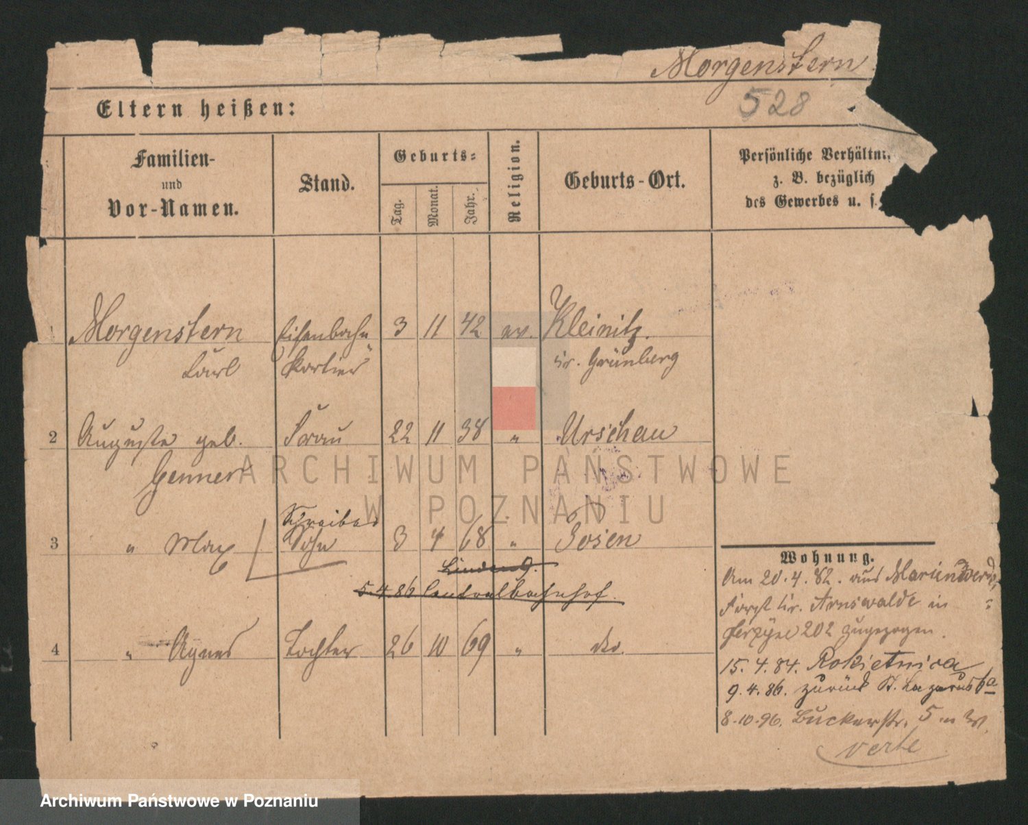 Podgląd karty osobowej dostępny jest po kliknięciu na nazwisko lub ikonkę karty. Można dokonywać powiększenia (ikony na górze) lub przechodzić między kolejnymi skanami (strzałki po bokach).