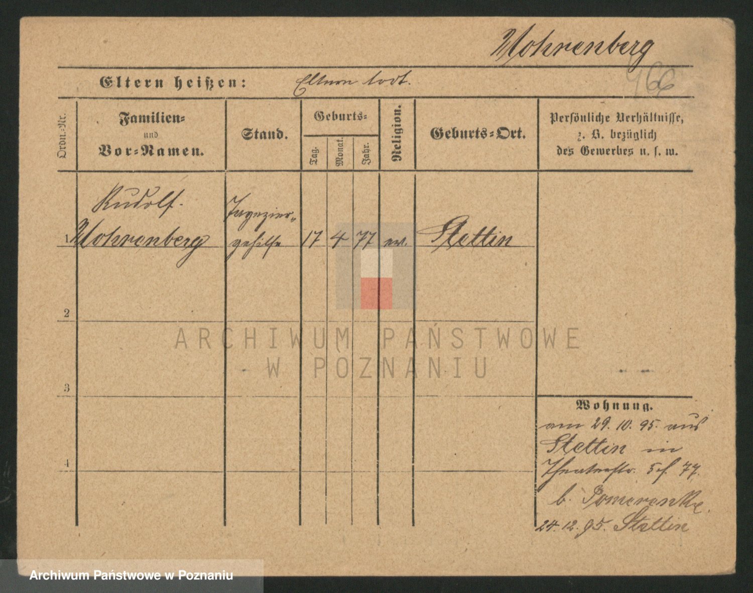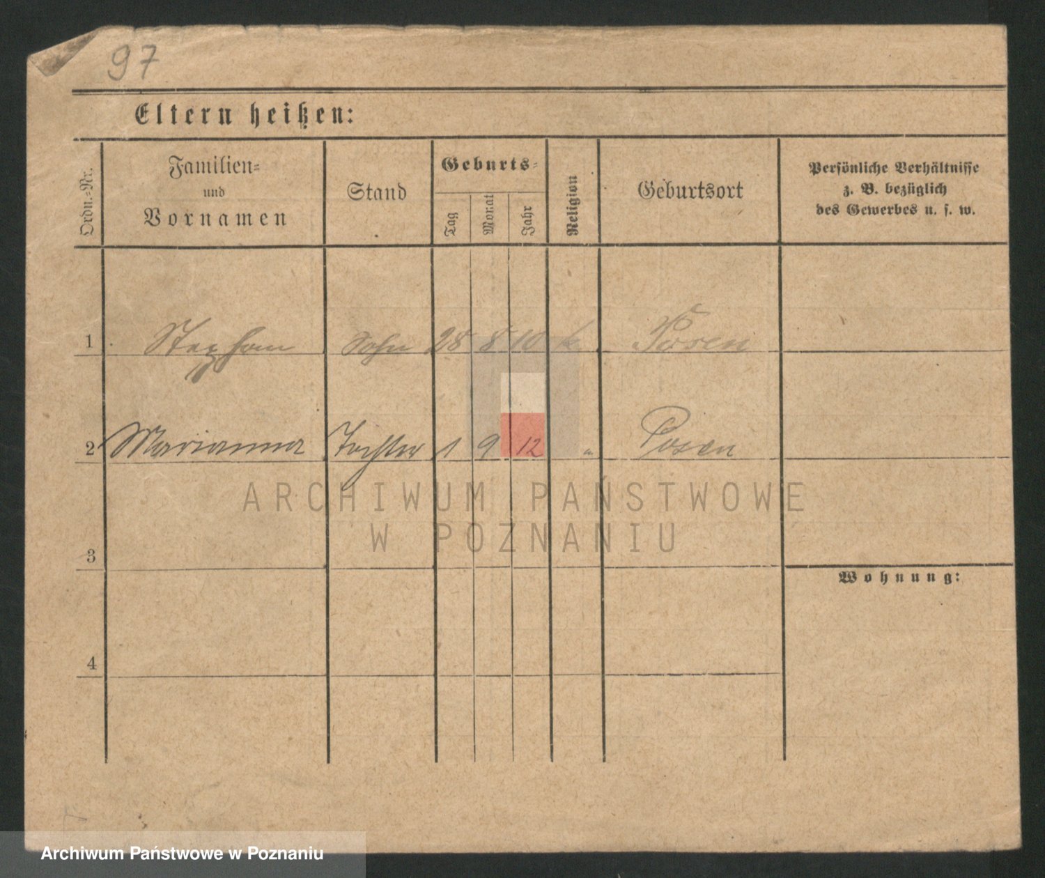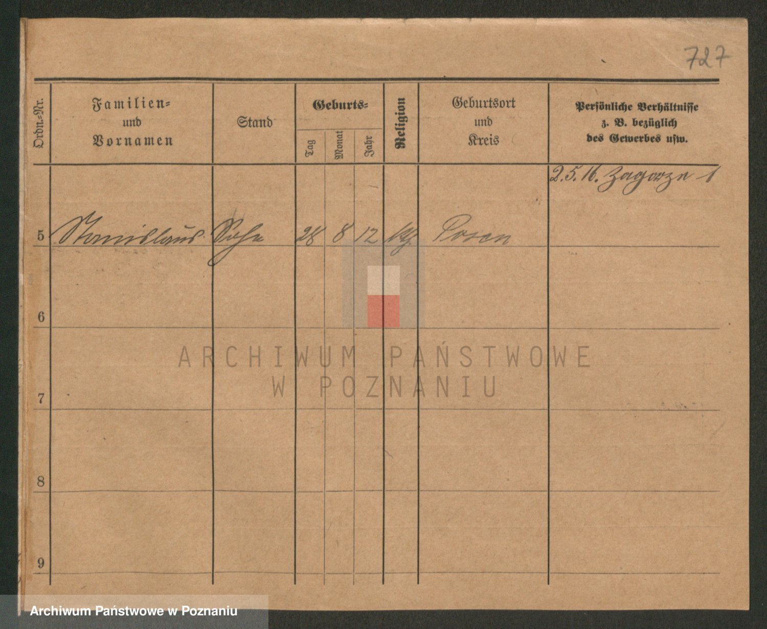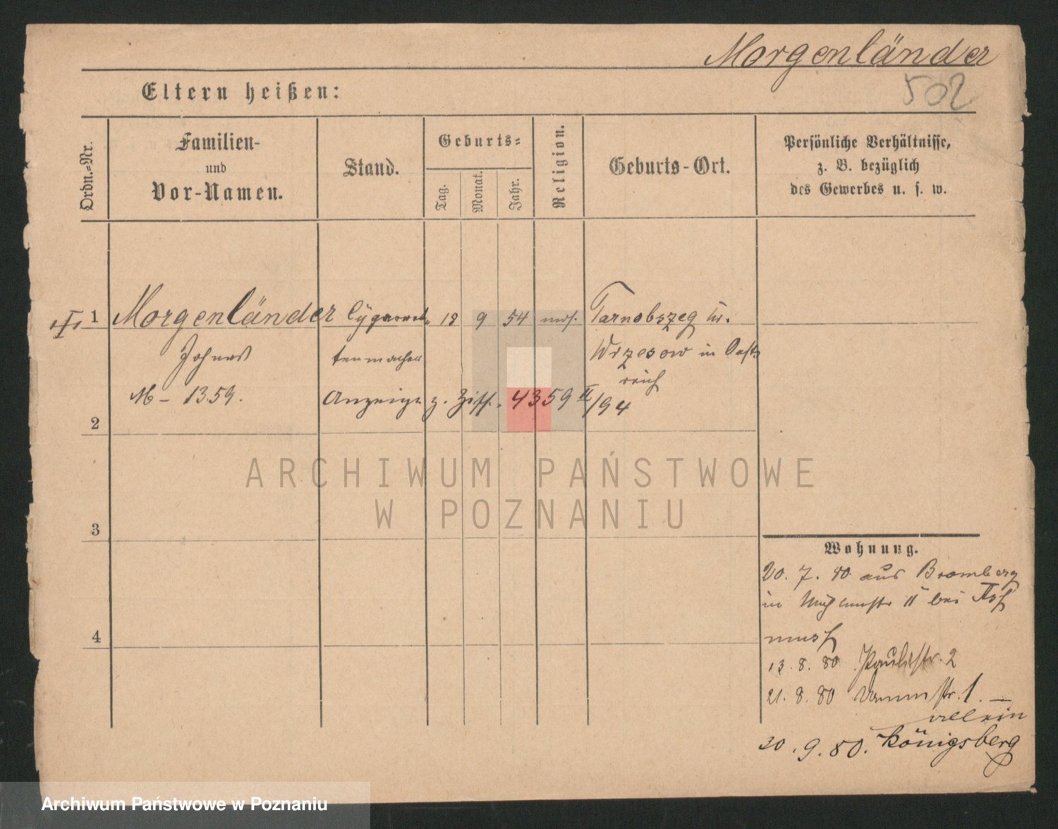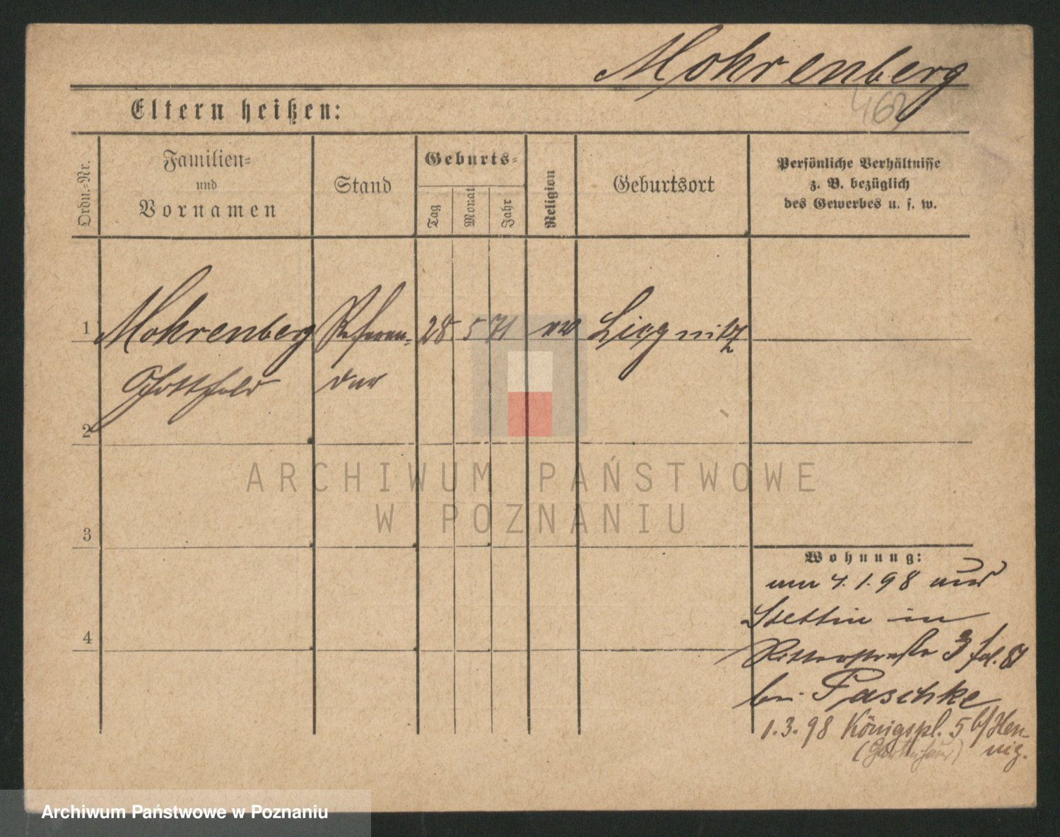 Podgląd karty osobowej dostępny jest po kliknięciu na nazwisko lub ikonkę karty. Można dokonywać powiększenia (ikony na górze) lub przechodzić między kolejnymi skanami (strzałki po bokach).