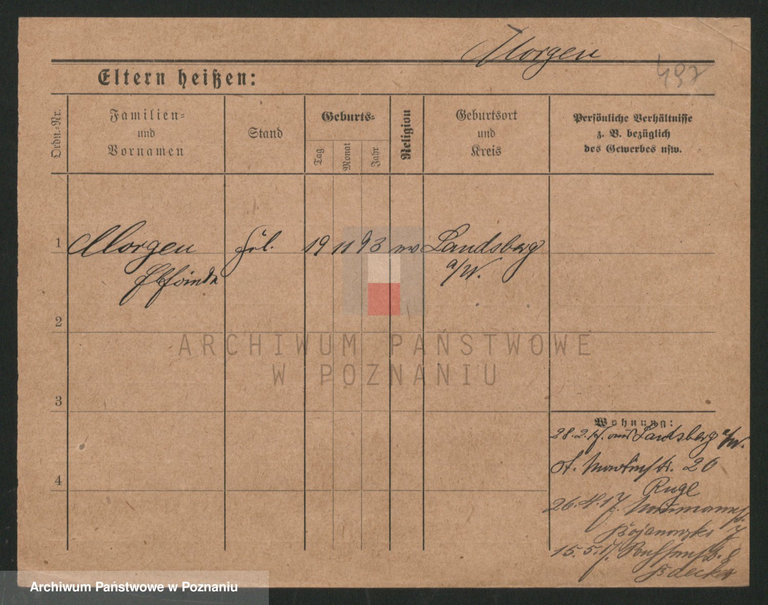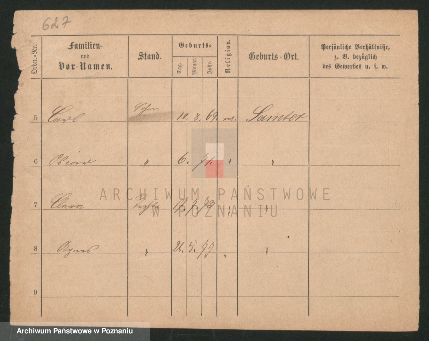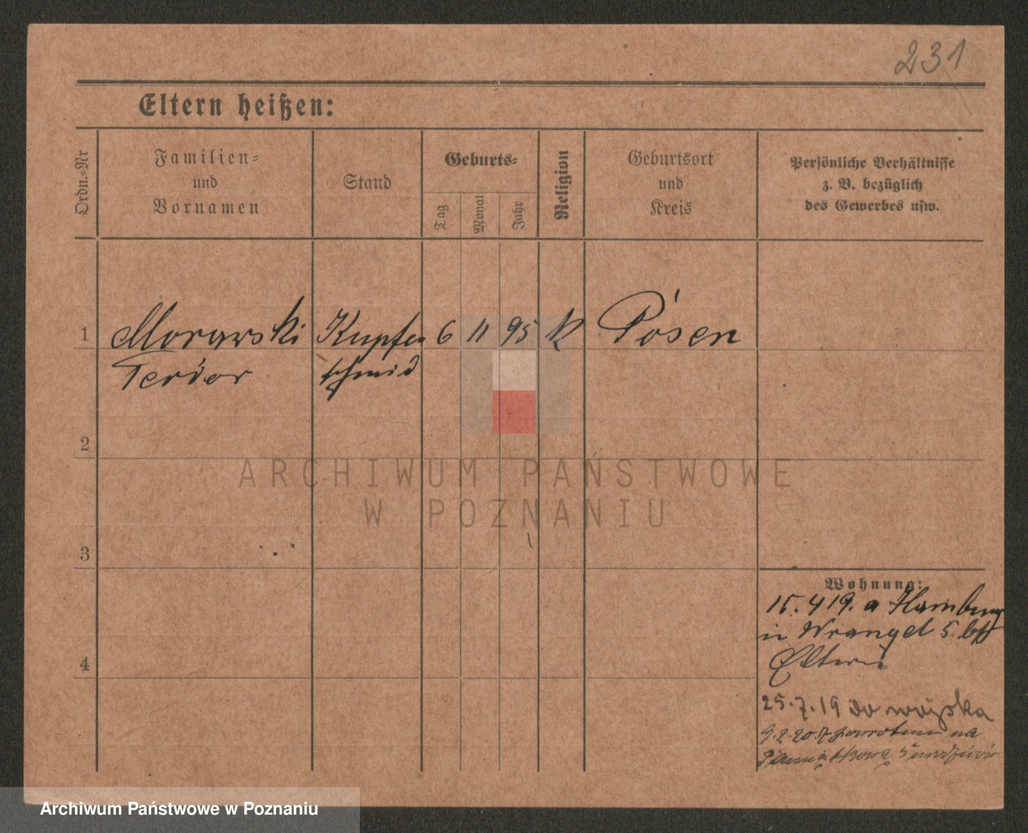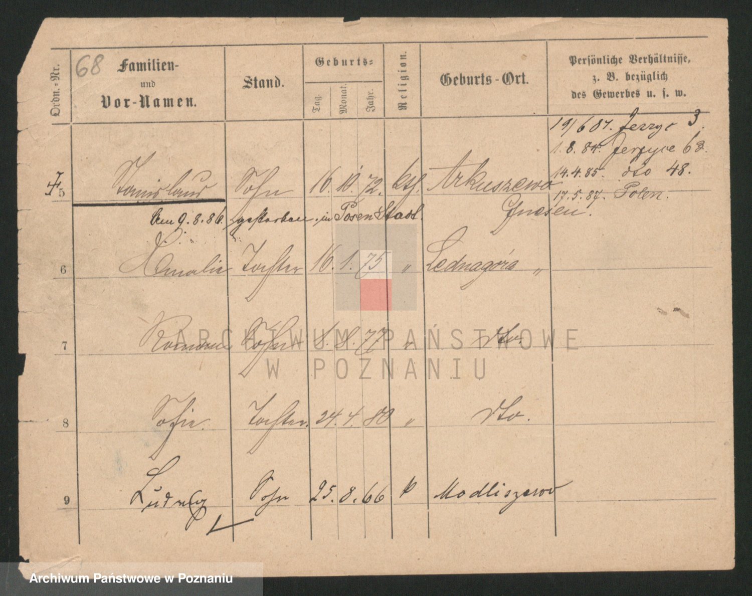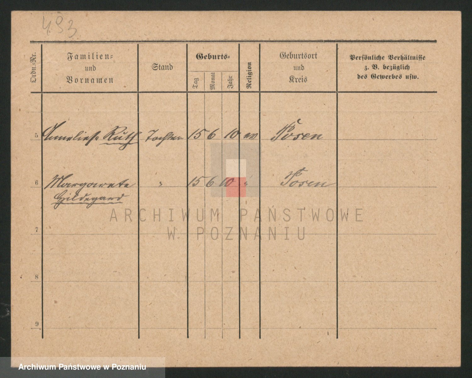 Podgląd karty osobowej dostępny jest po kliknięciu na nazwisko lub ikonkę karty. Można dokonywać powiększenia (ikony na górze) lub przechodzić między kolejnymi skanami (strzałki po bokach).
