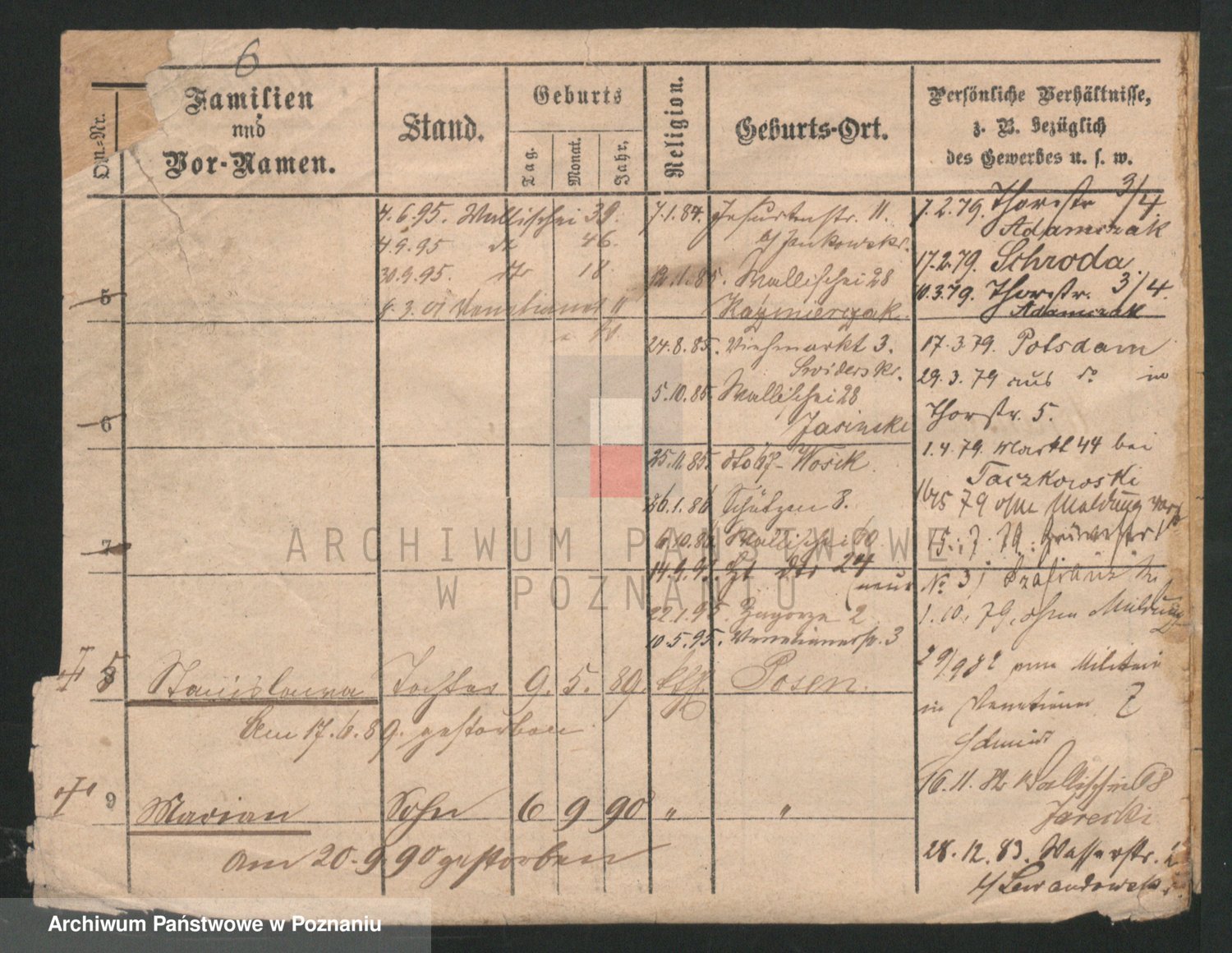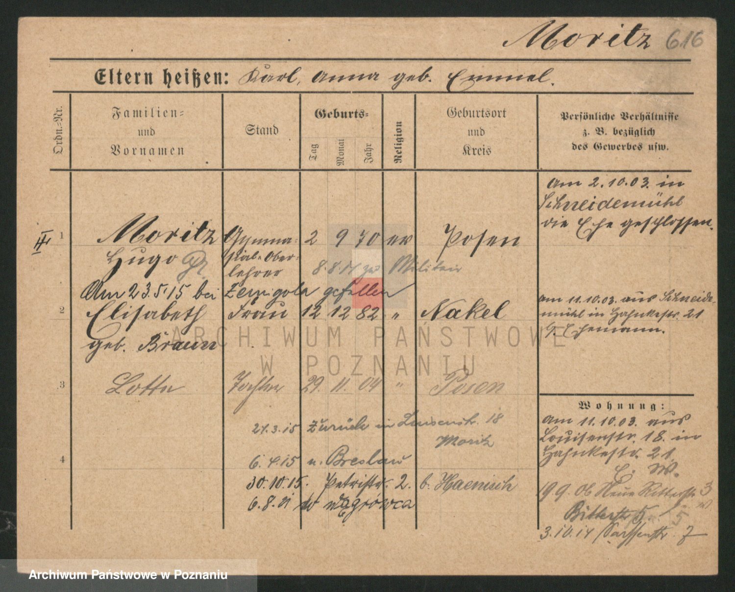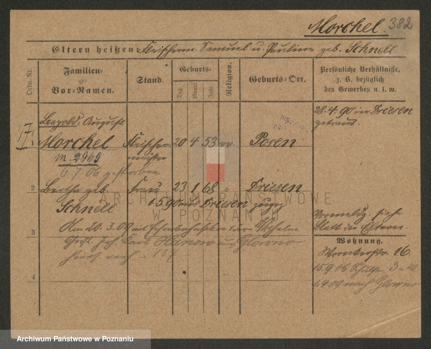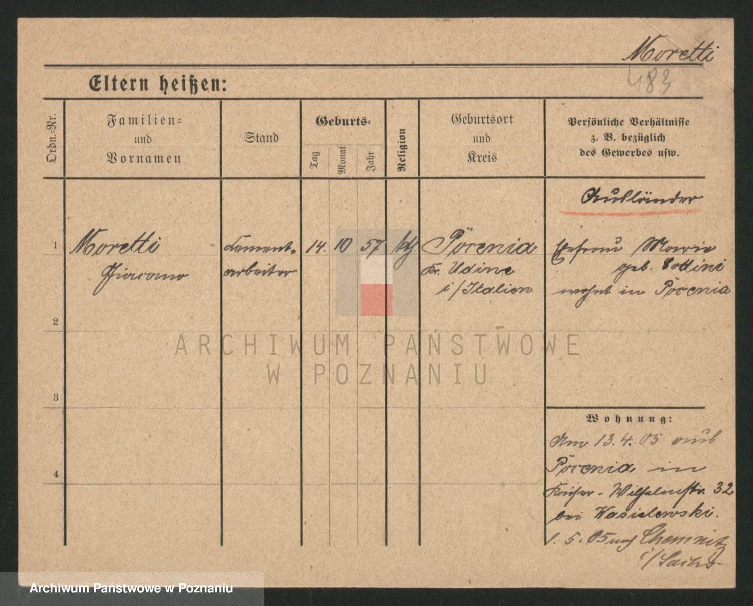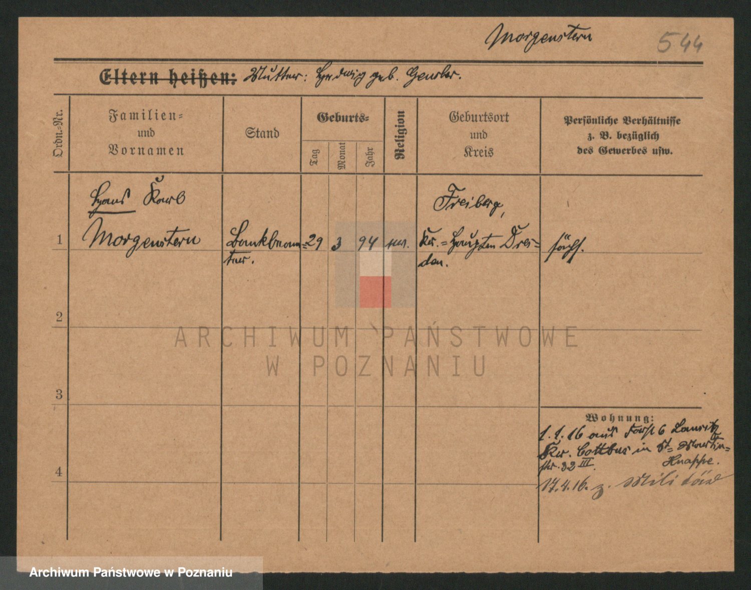 Podgląd karty osobowej dostępny jest po kliknięciu na nazwisko lub ikonkę karty. Można dokonywać powiększenia (ikony na górze) lub przechodzić między kolejnymi skanami (strzałki po bokach).