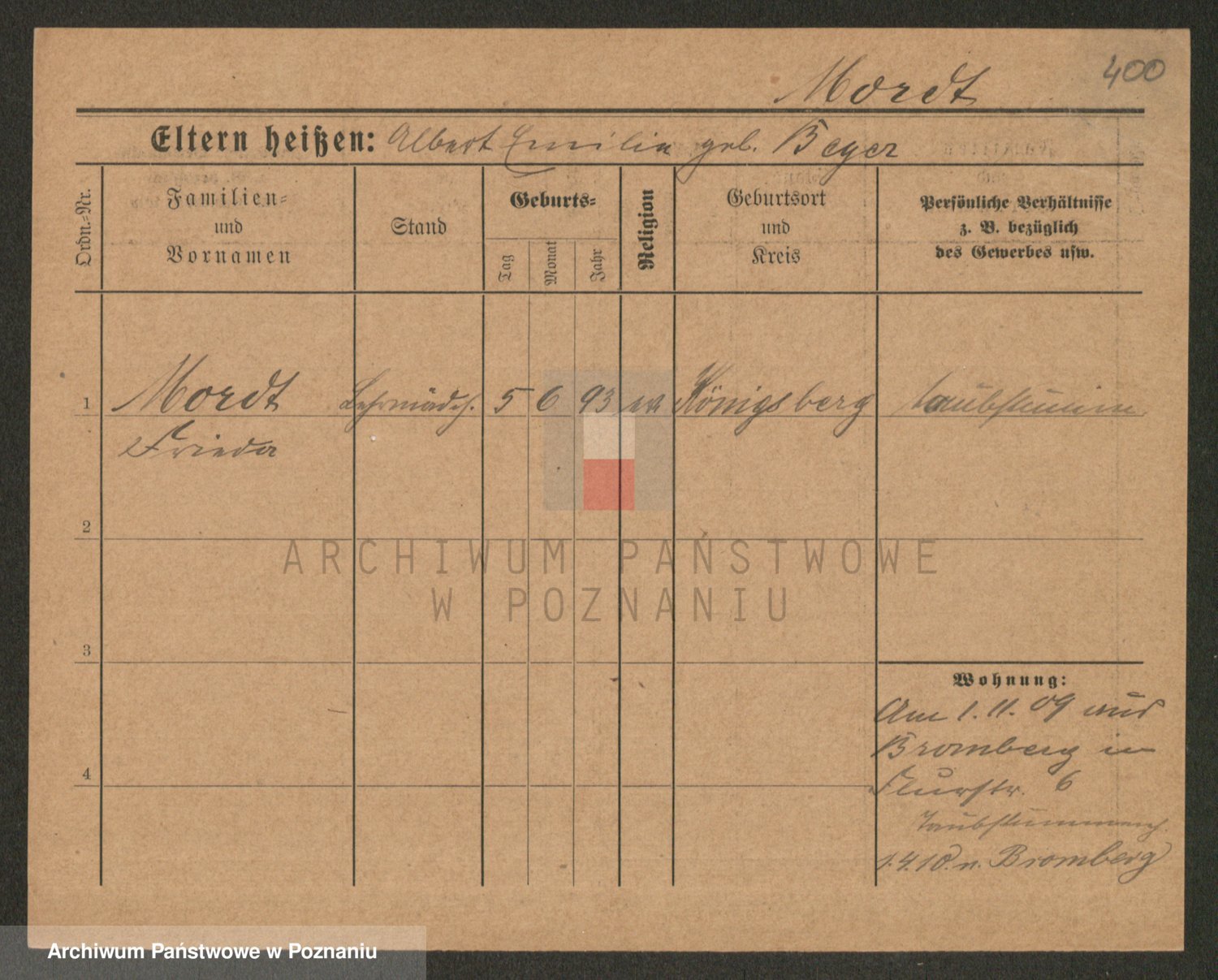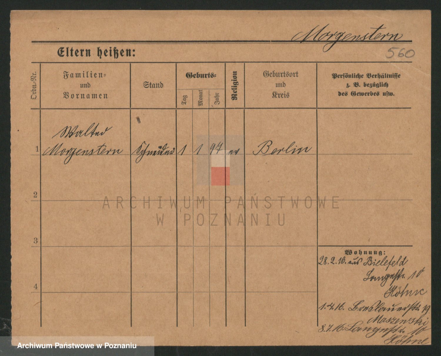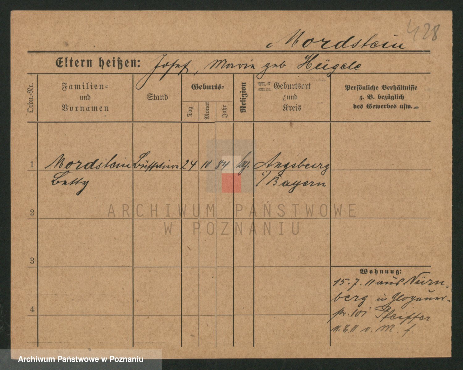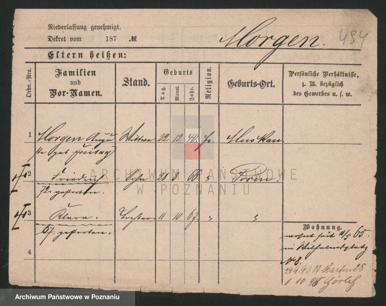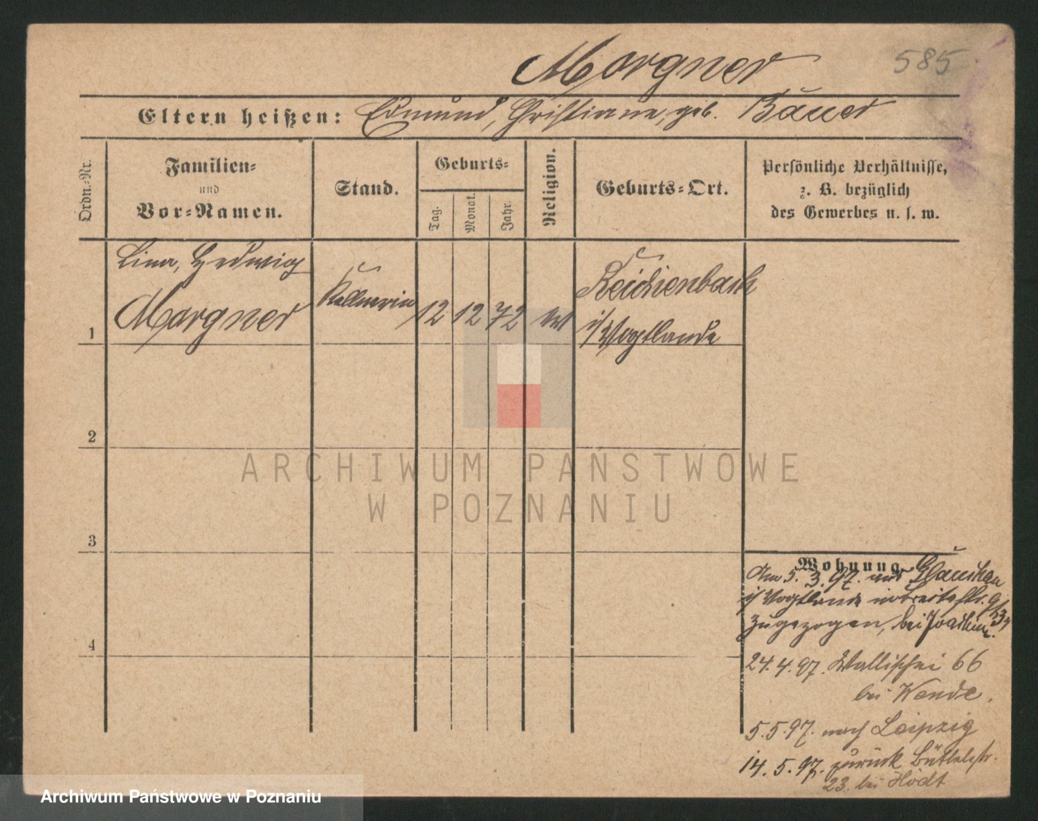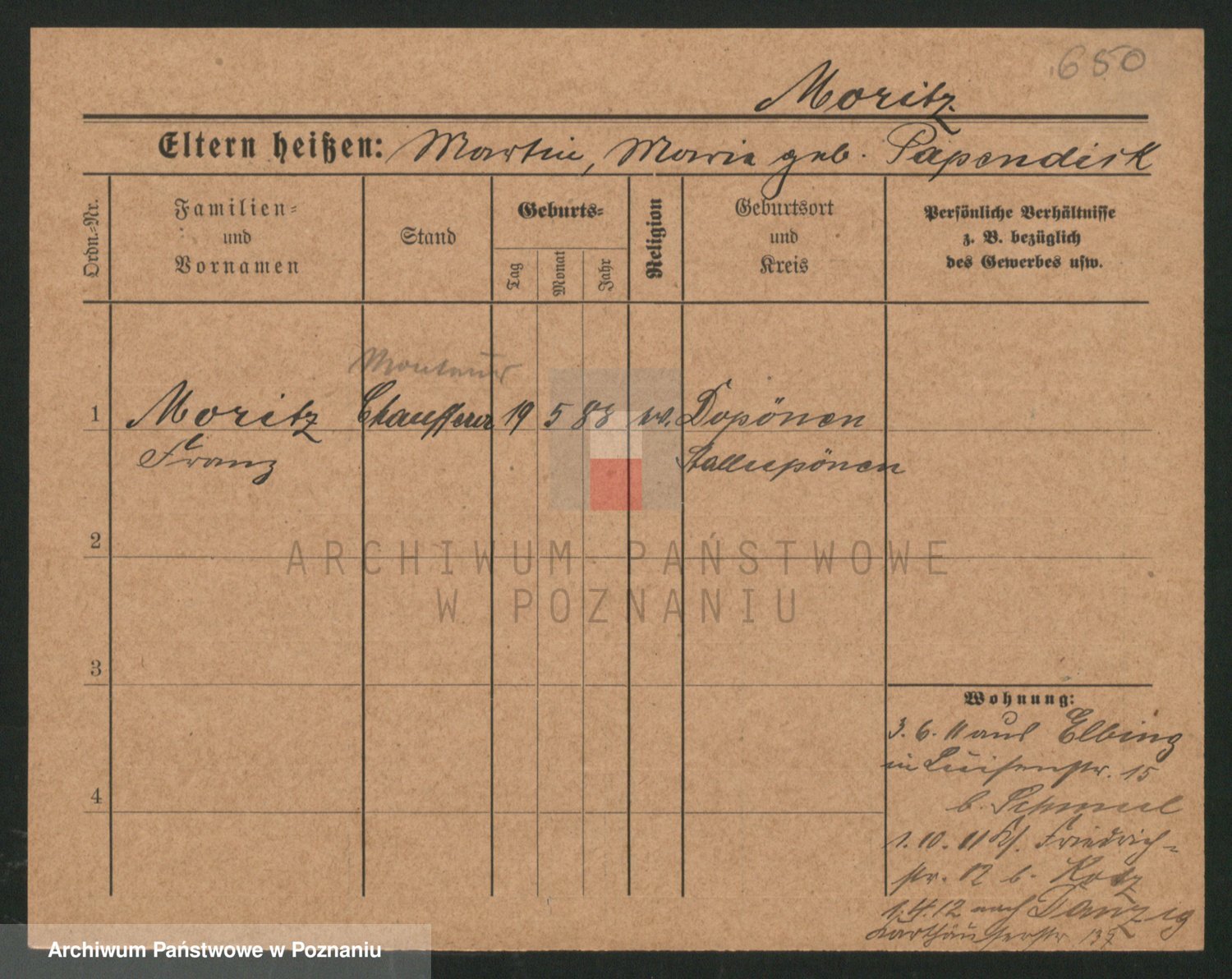 Podgląd karty osobowej dostępny jest po kliknięciu na nazwisko lub ikonkę karty. Można dokonywać powiększenia (ikony na górze) lub przechodzić między kolejnymi skanami (strzałki po bokach).
