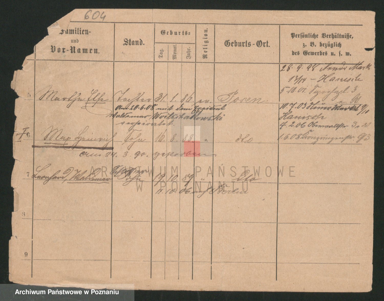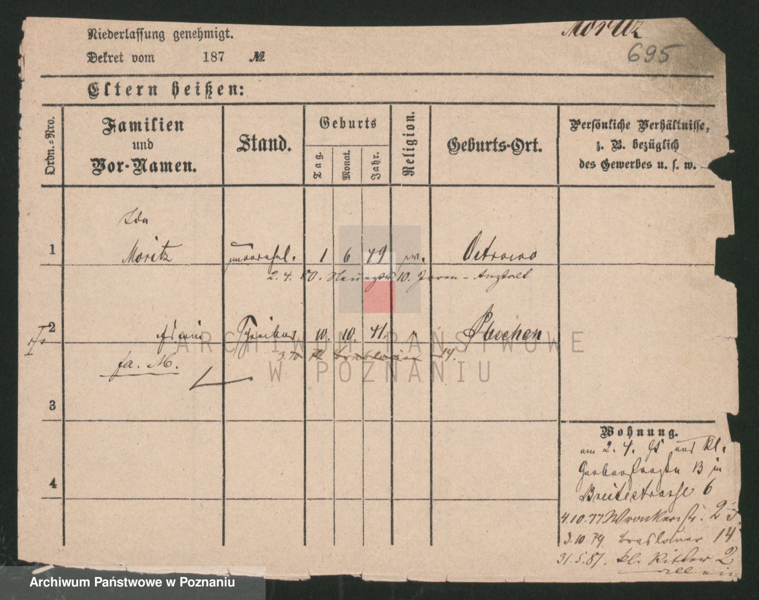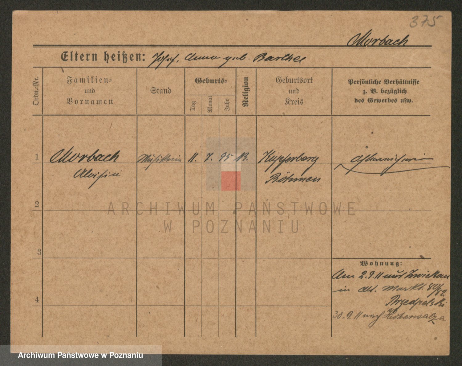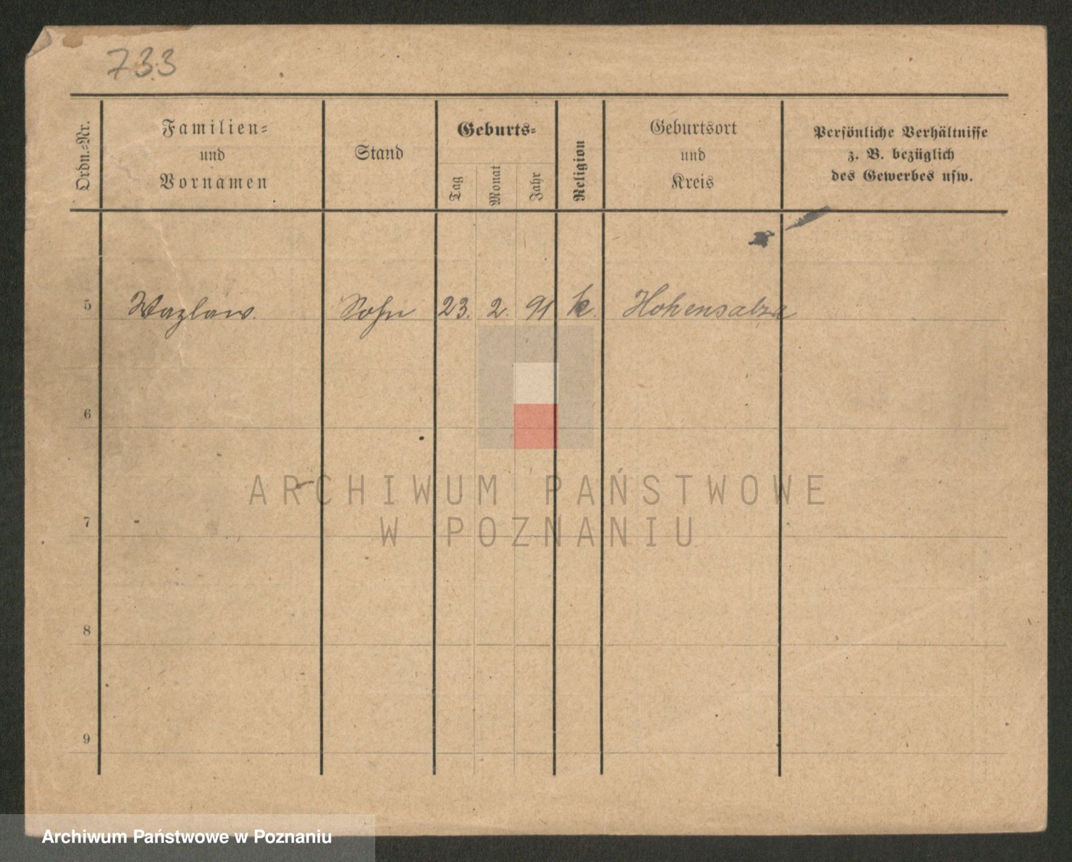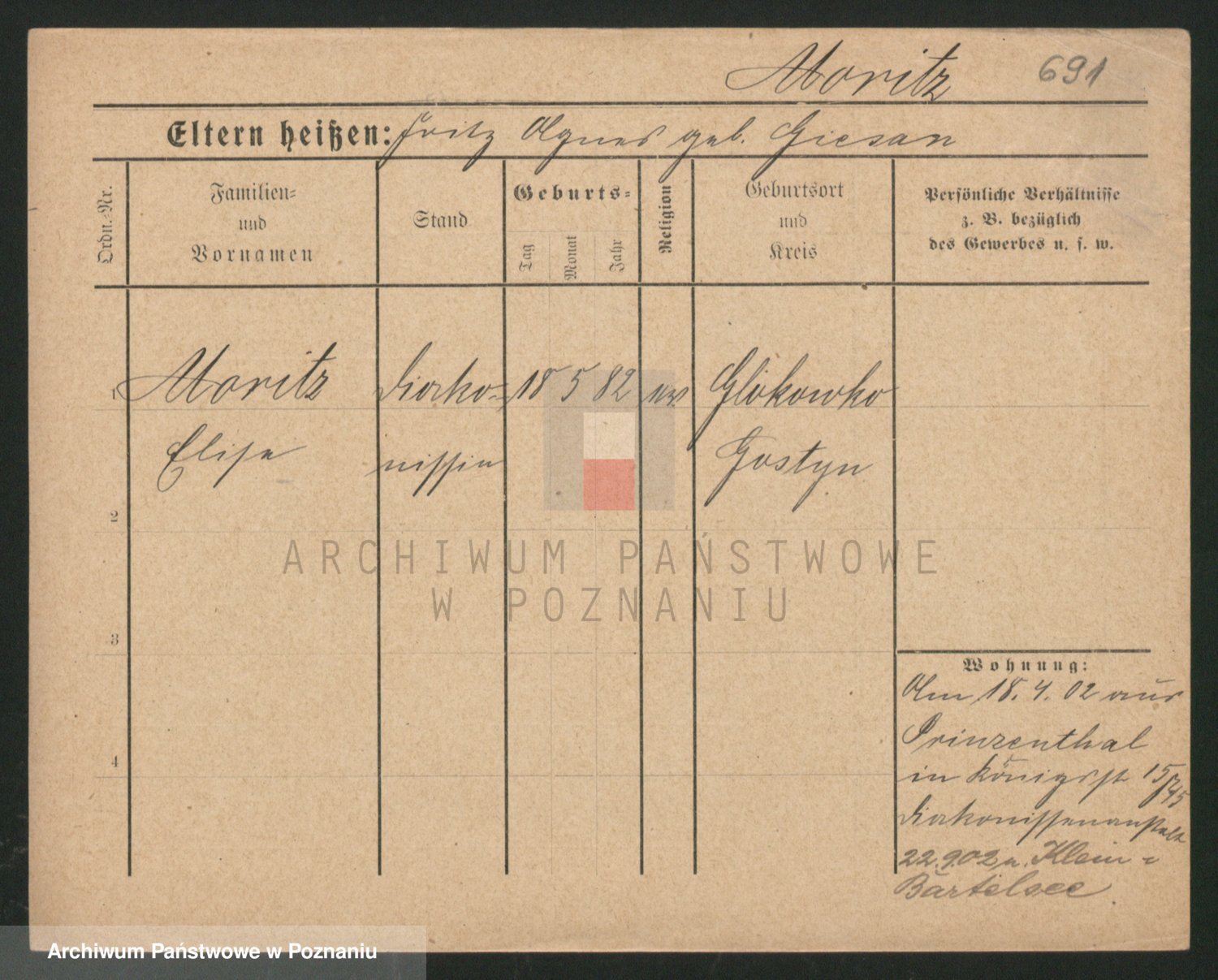 Podgląd karty osobowej dostępny jest po kliknięciu na nazwisko lub ikonkę karty. Można dokonywać powiększenia (ikony na górze) lub przechodzić między kolejnymi skanami (strzałki po bokach).