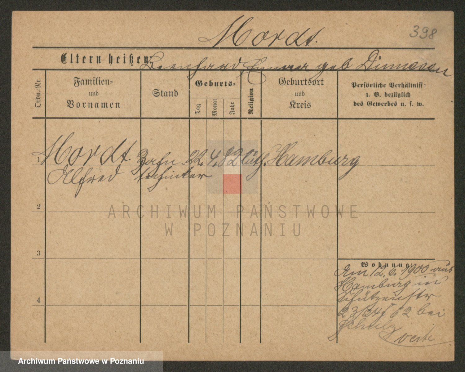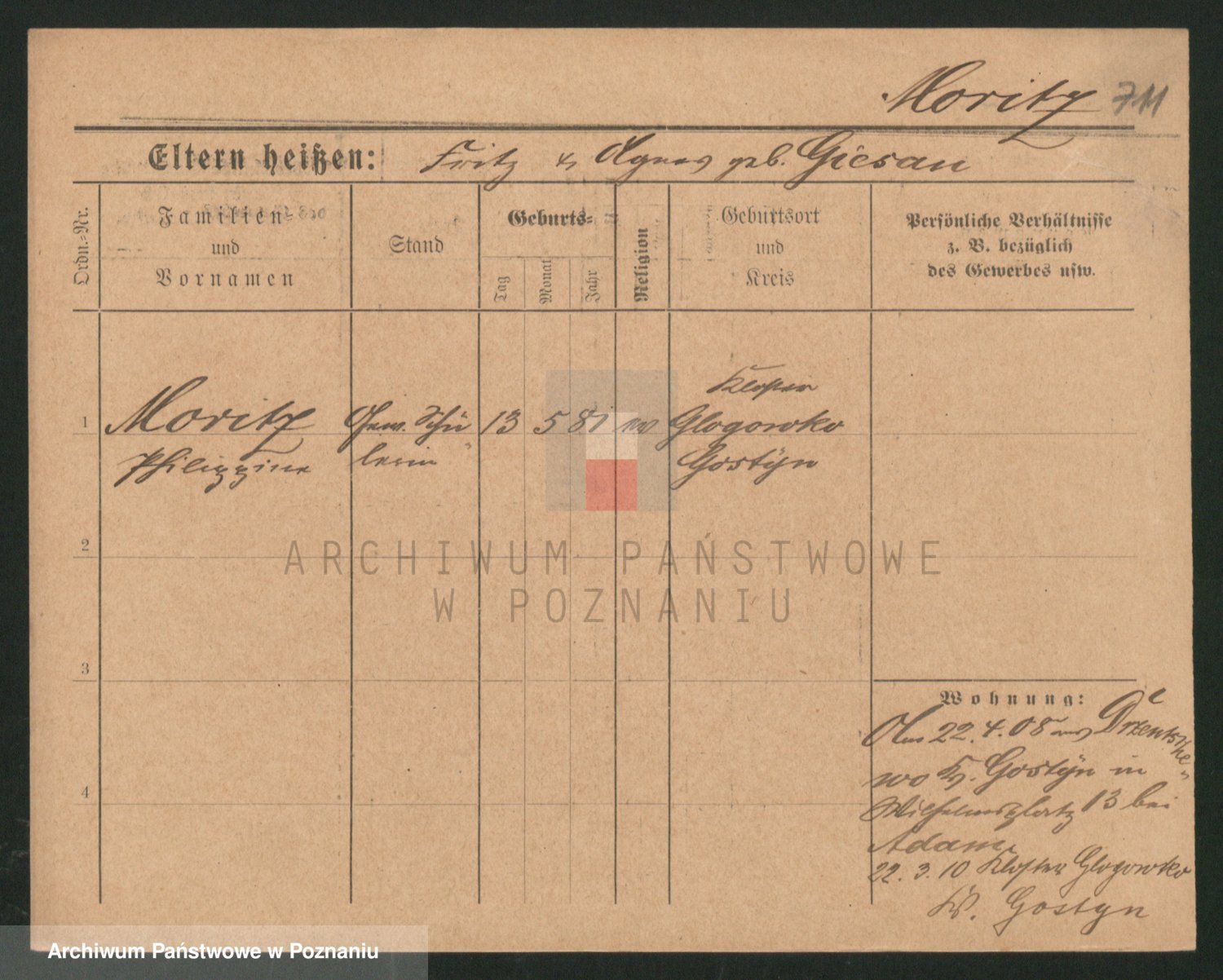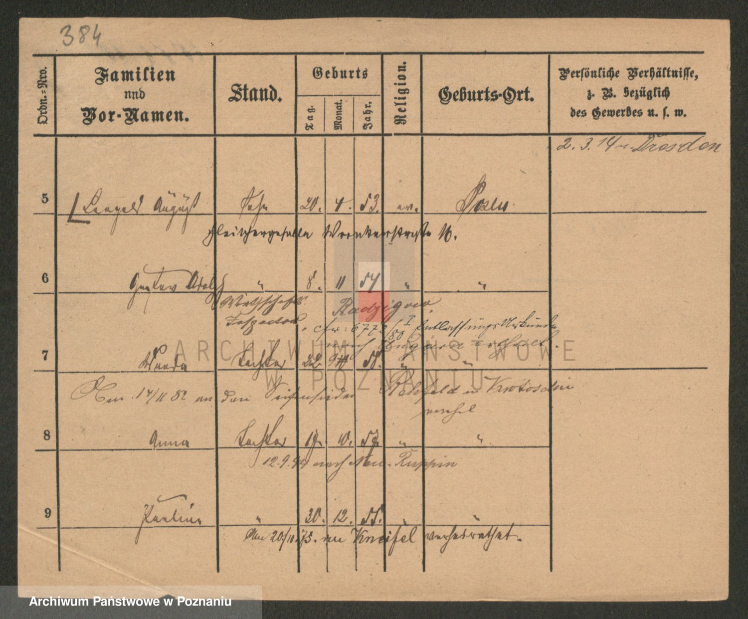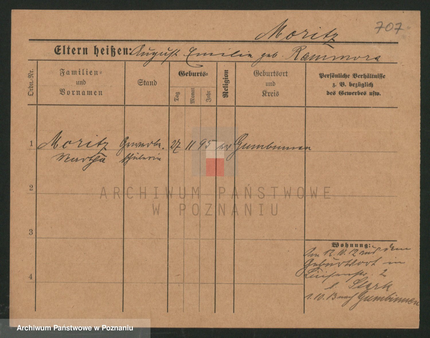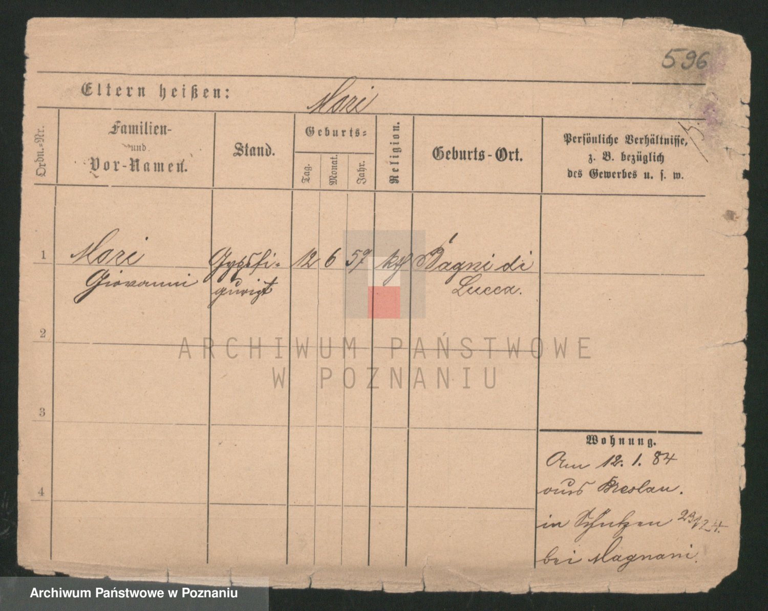 Podgląd karty osobowej dostępny jest po kliknięciu na nazwisko lub ikonkę karty. Można dokonywać powiększenia (ikony na górze) lub przechodzić między kolejnymi skanami (strzałki po bokach).