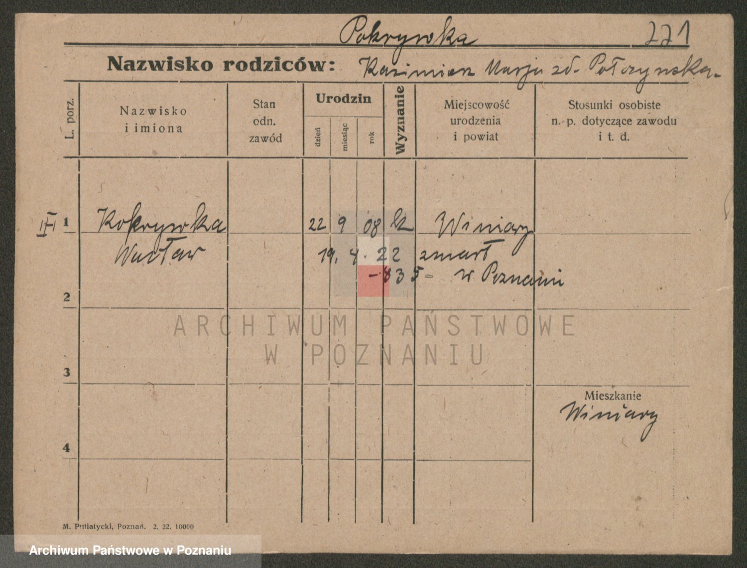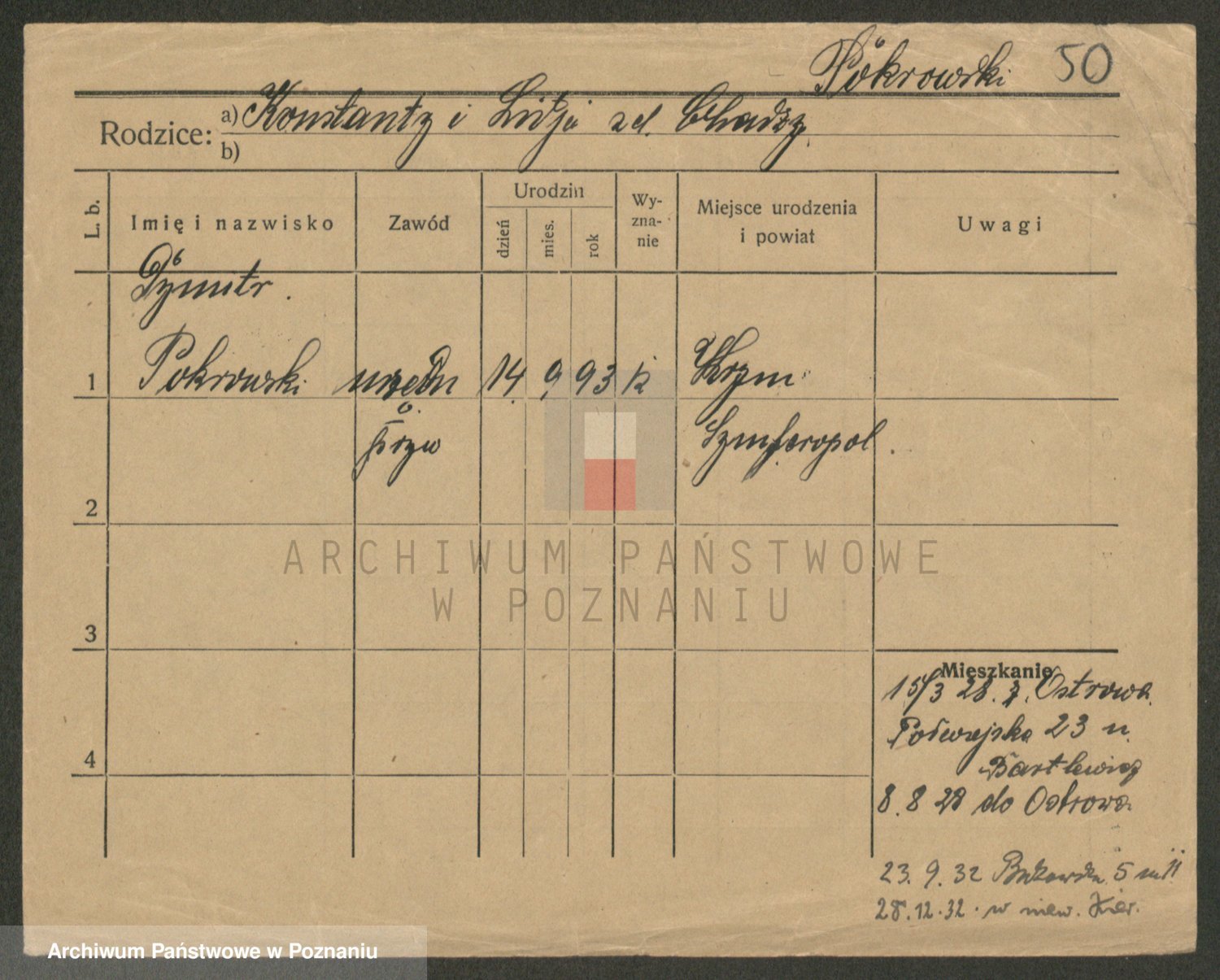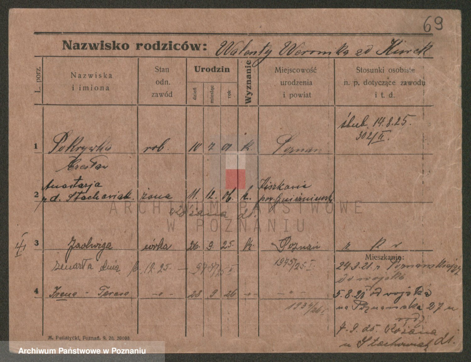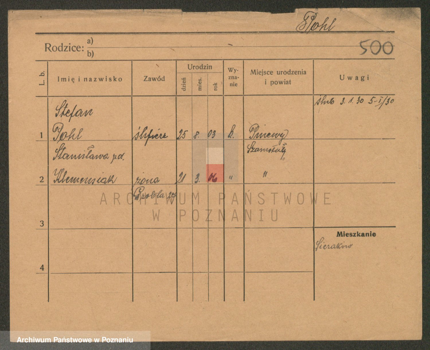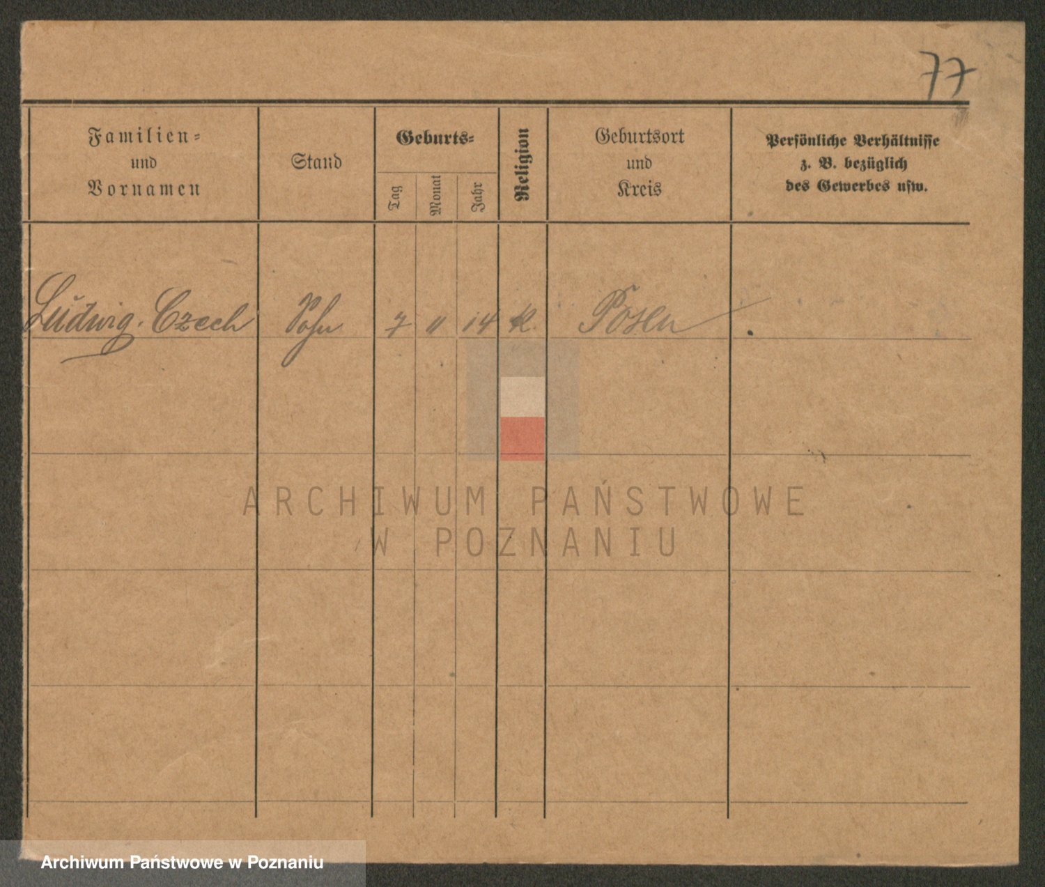 Podgląd karty osobowej dostępny jest po kliknięciu na nazwisko lub ikonkę karty. Można dokonywać powiększenia (ikony na górze) lub przechodzić między kolejnymi skanami (strzałki po bokach).