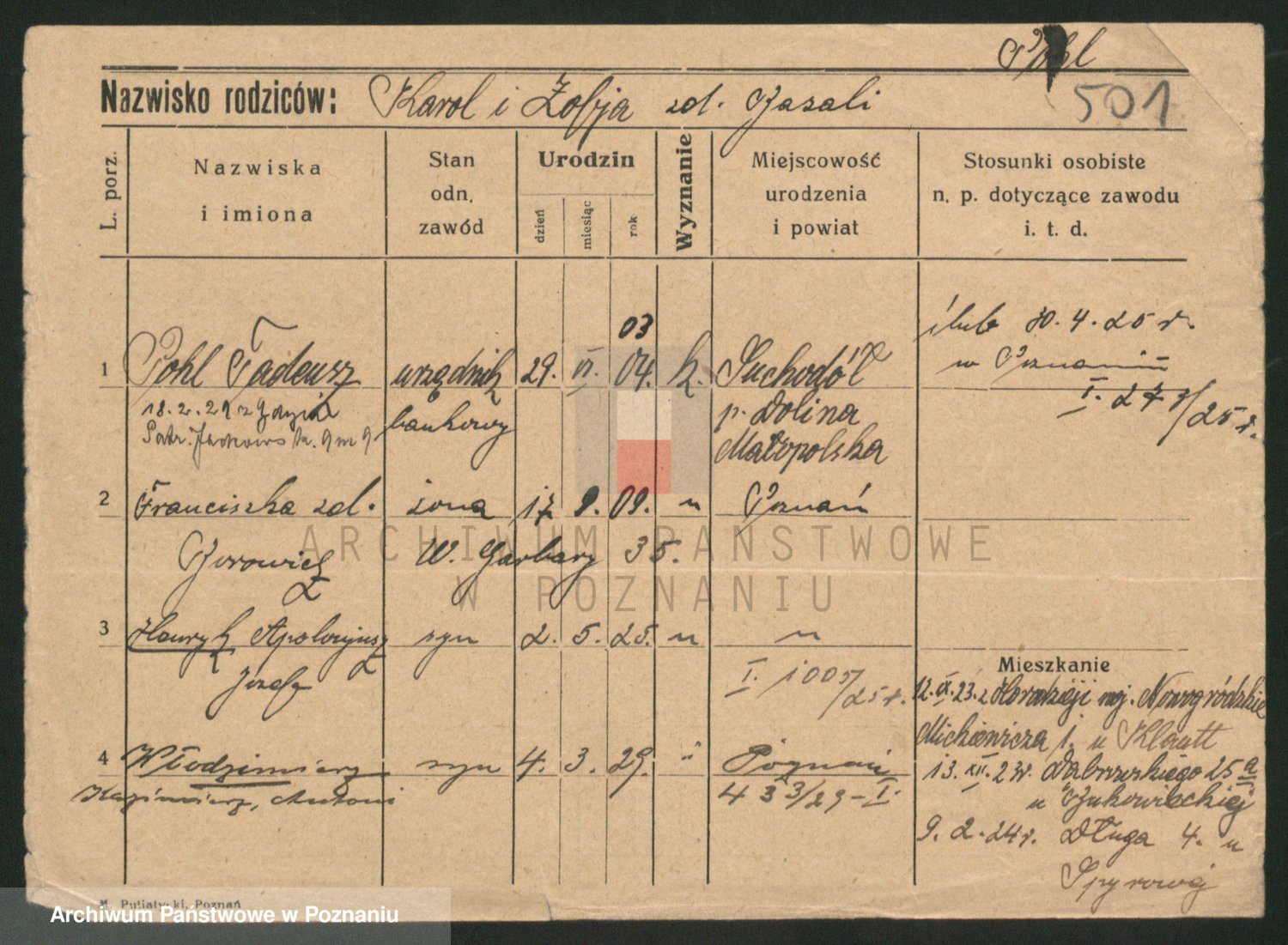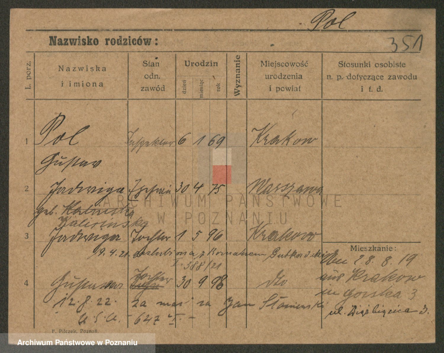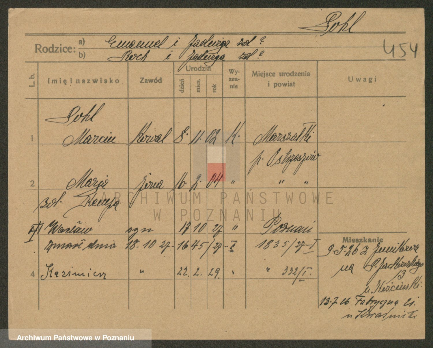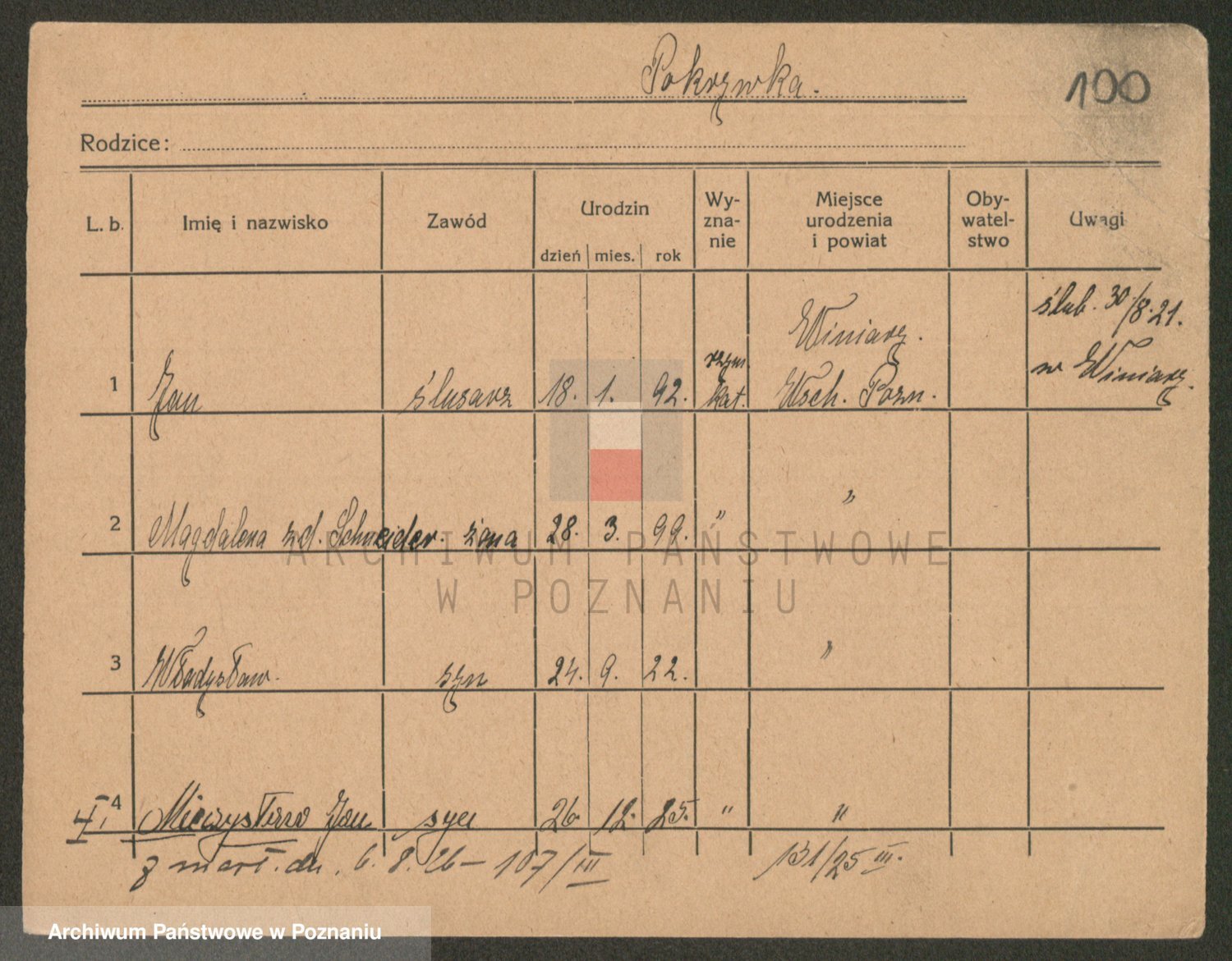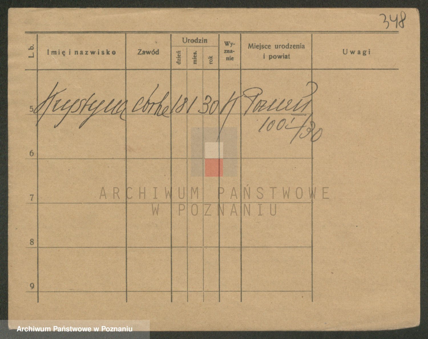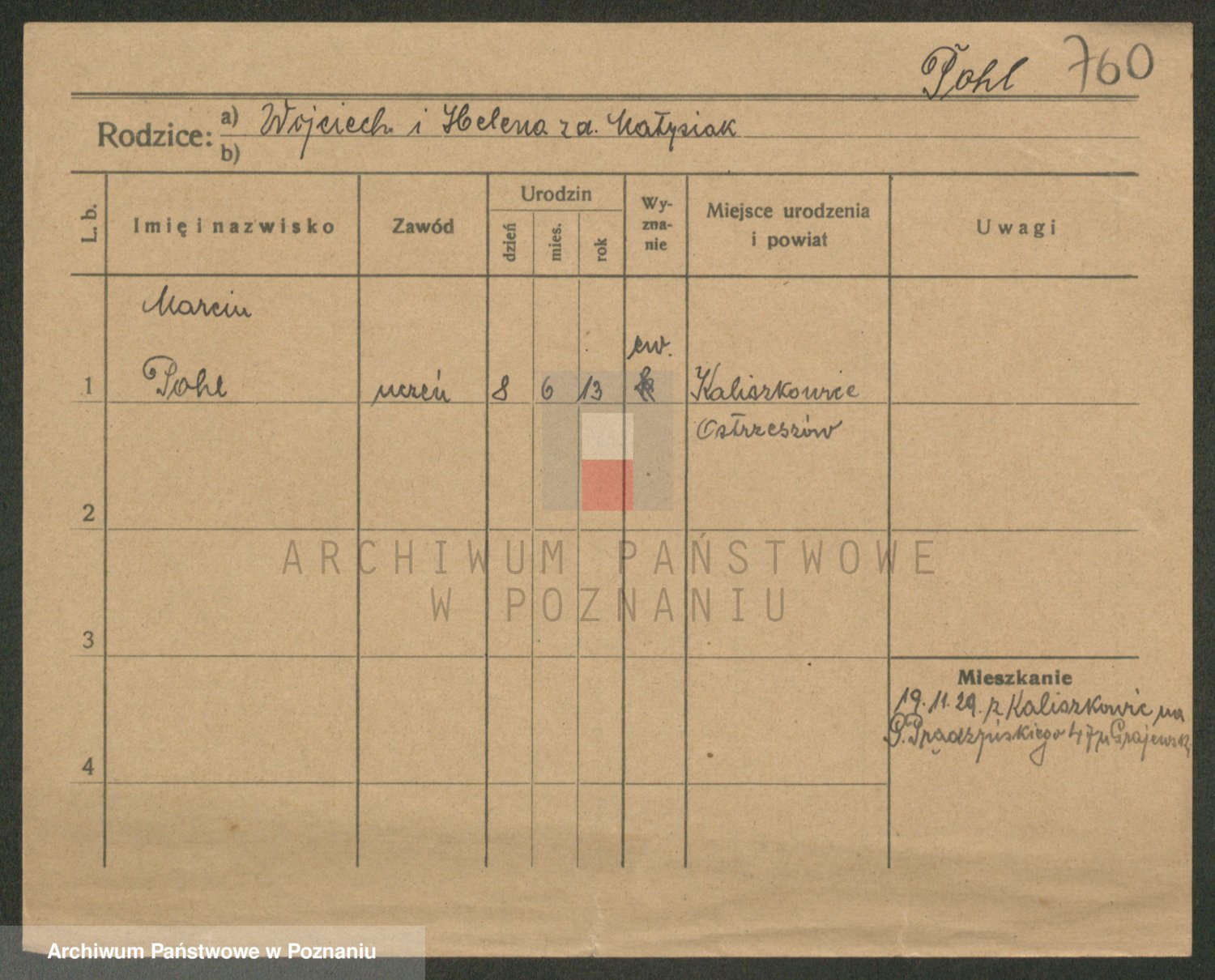 Podgląd karty osobowej dostępny jest po kliknięciu na nazwisko lub ikonkę karty. Można dokonywać powiększenia (ikony na górze) lub przechodzić między kolejnymi skanami (strzałki po bokach).