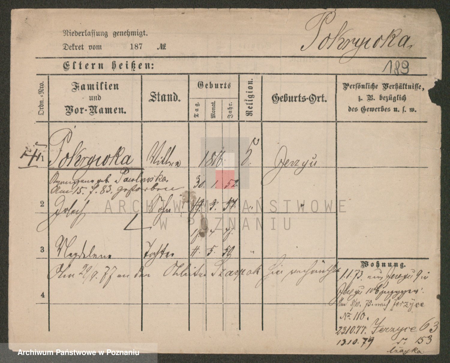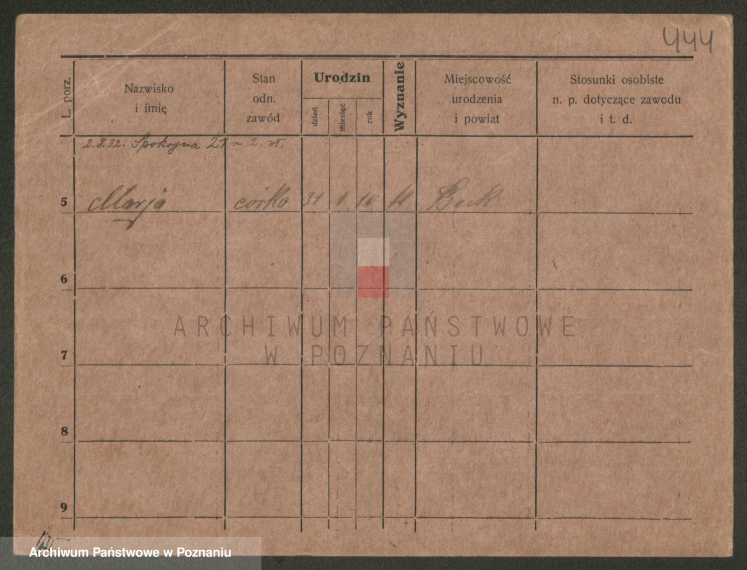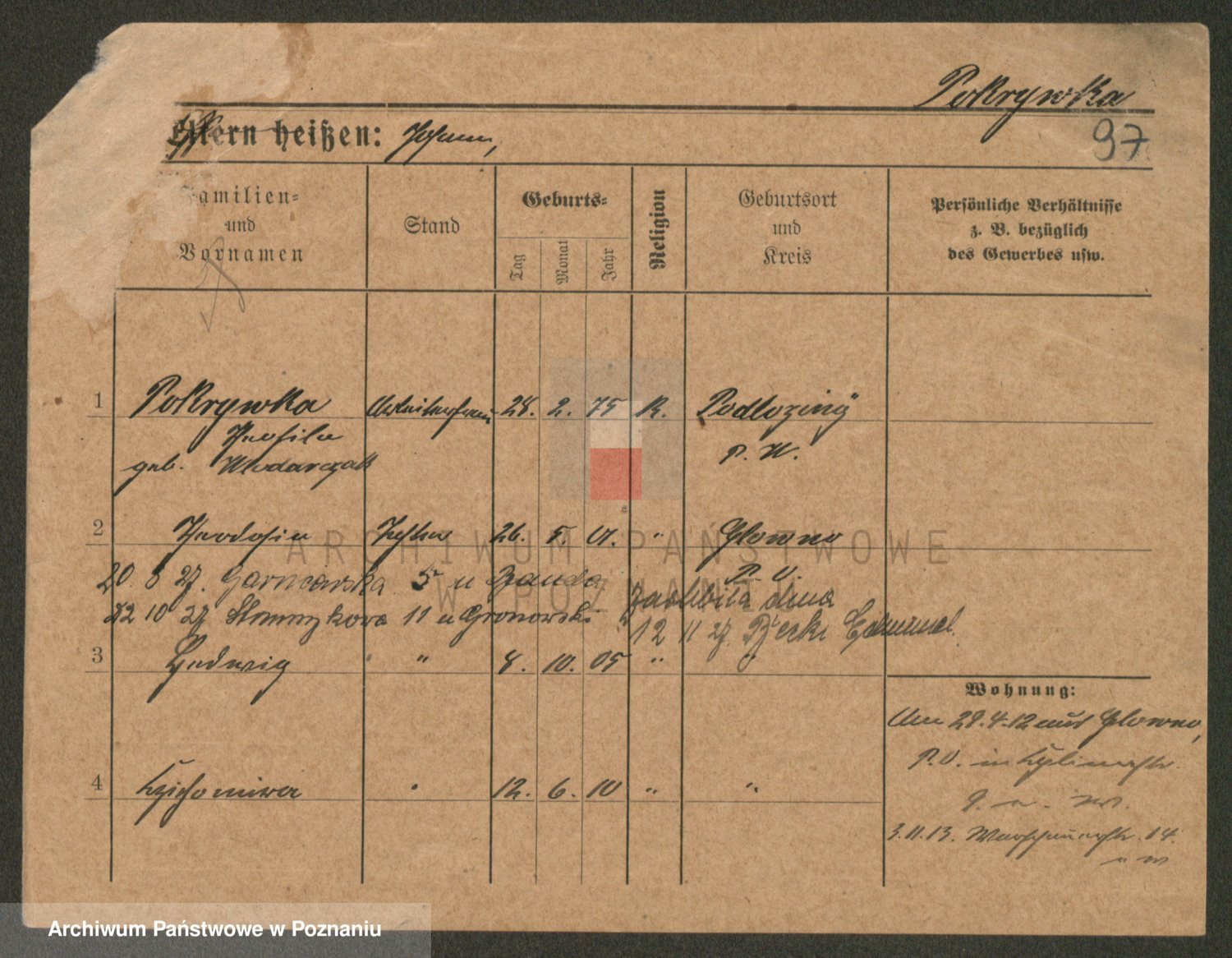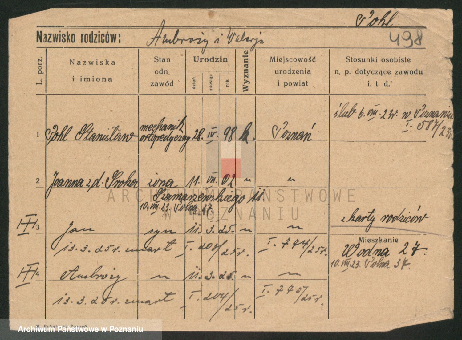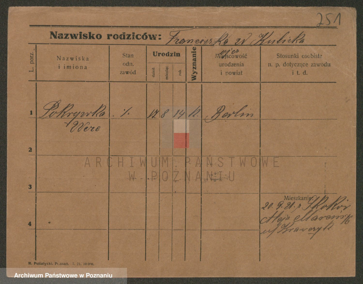 Podgląd karty osobowej dostępny jest po kliknięciu na nazwisko lub ikonkę karty. Można dokonywać powiększenia (ikony na górze) lub przechodzić między kolejnymi skanami (strzałki po bokach).