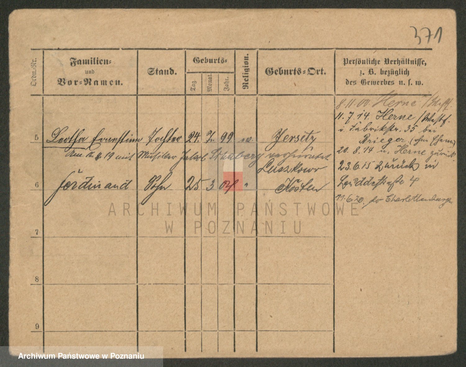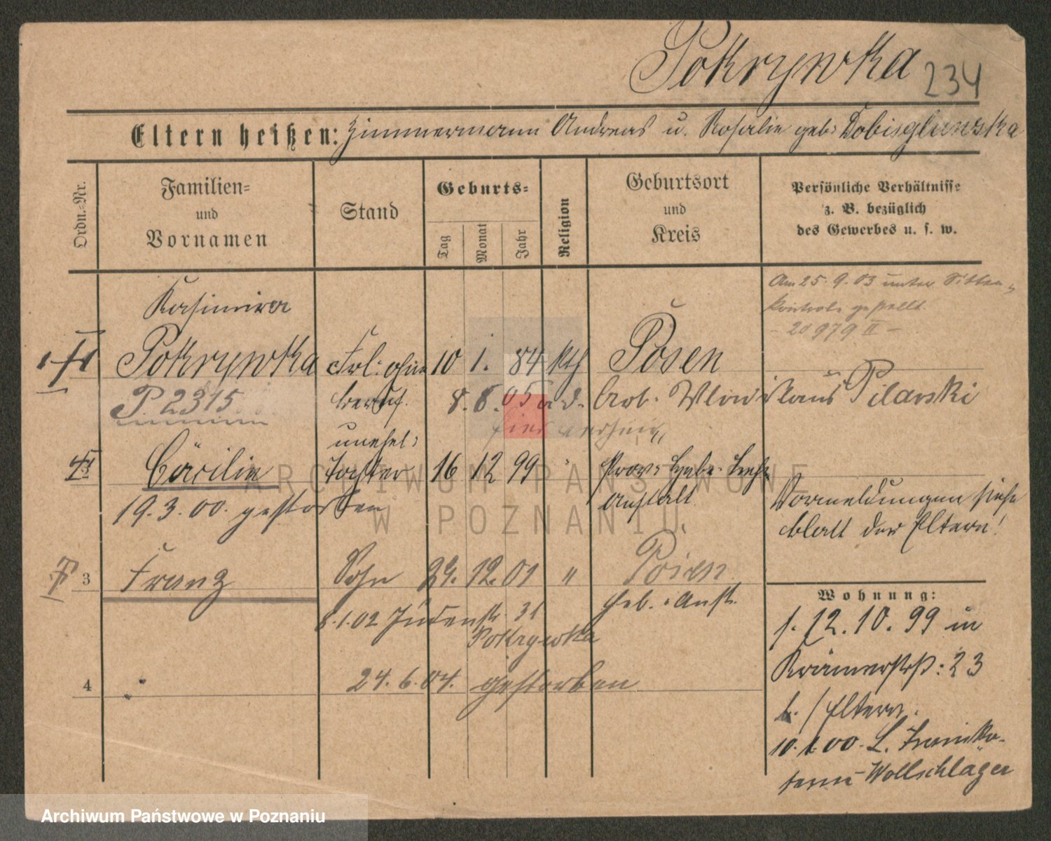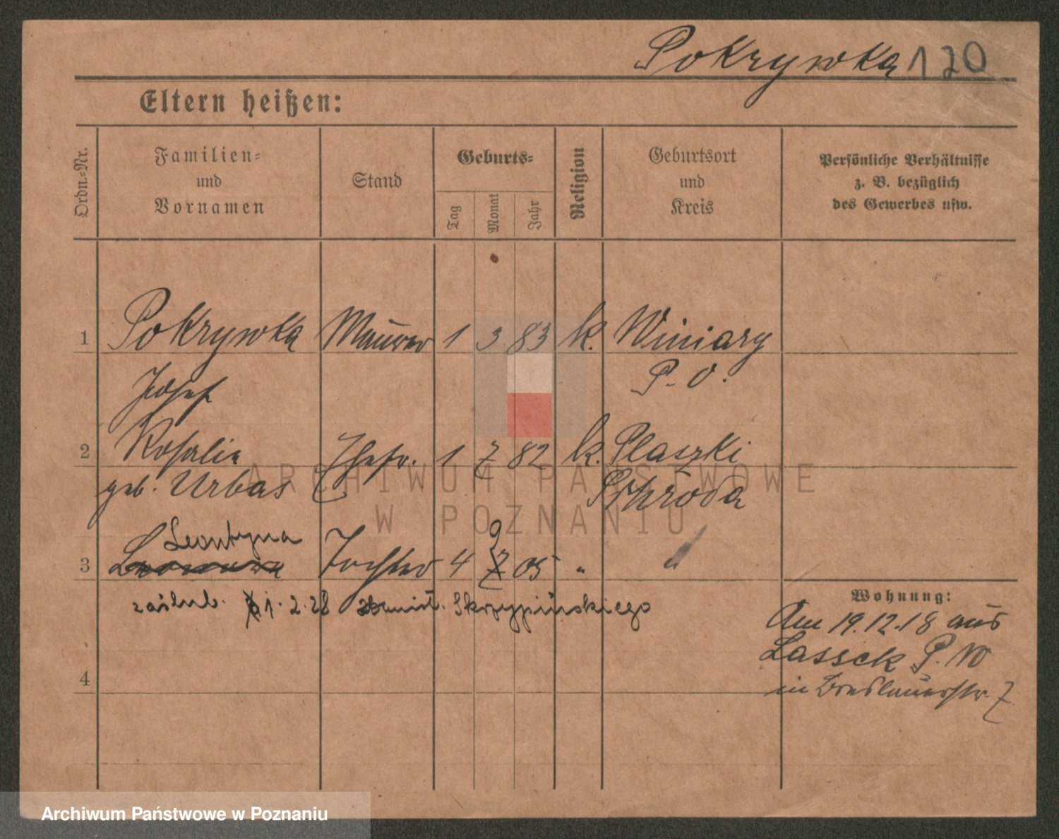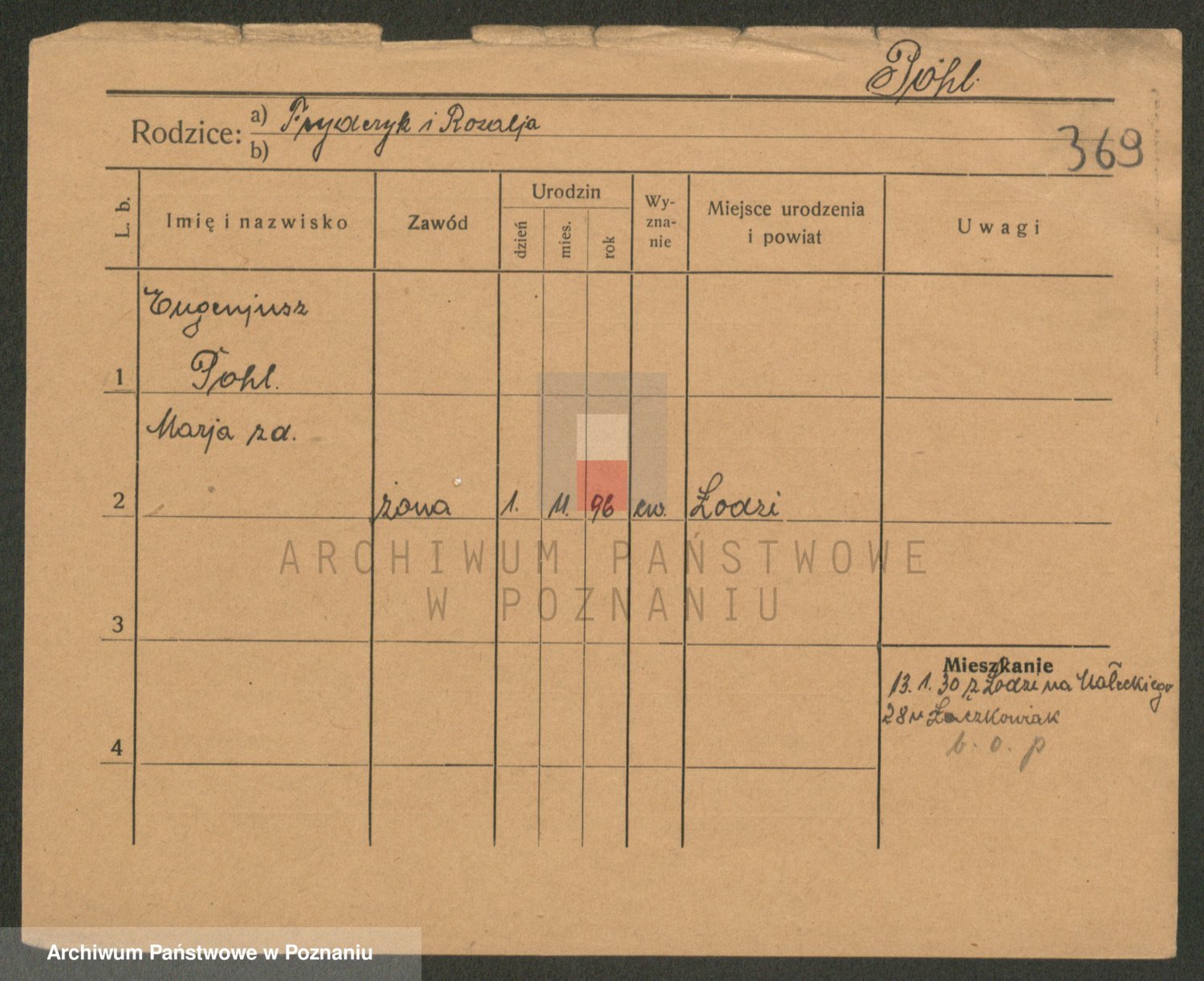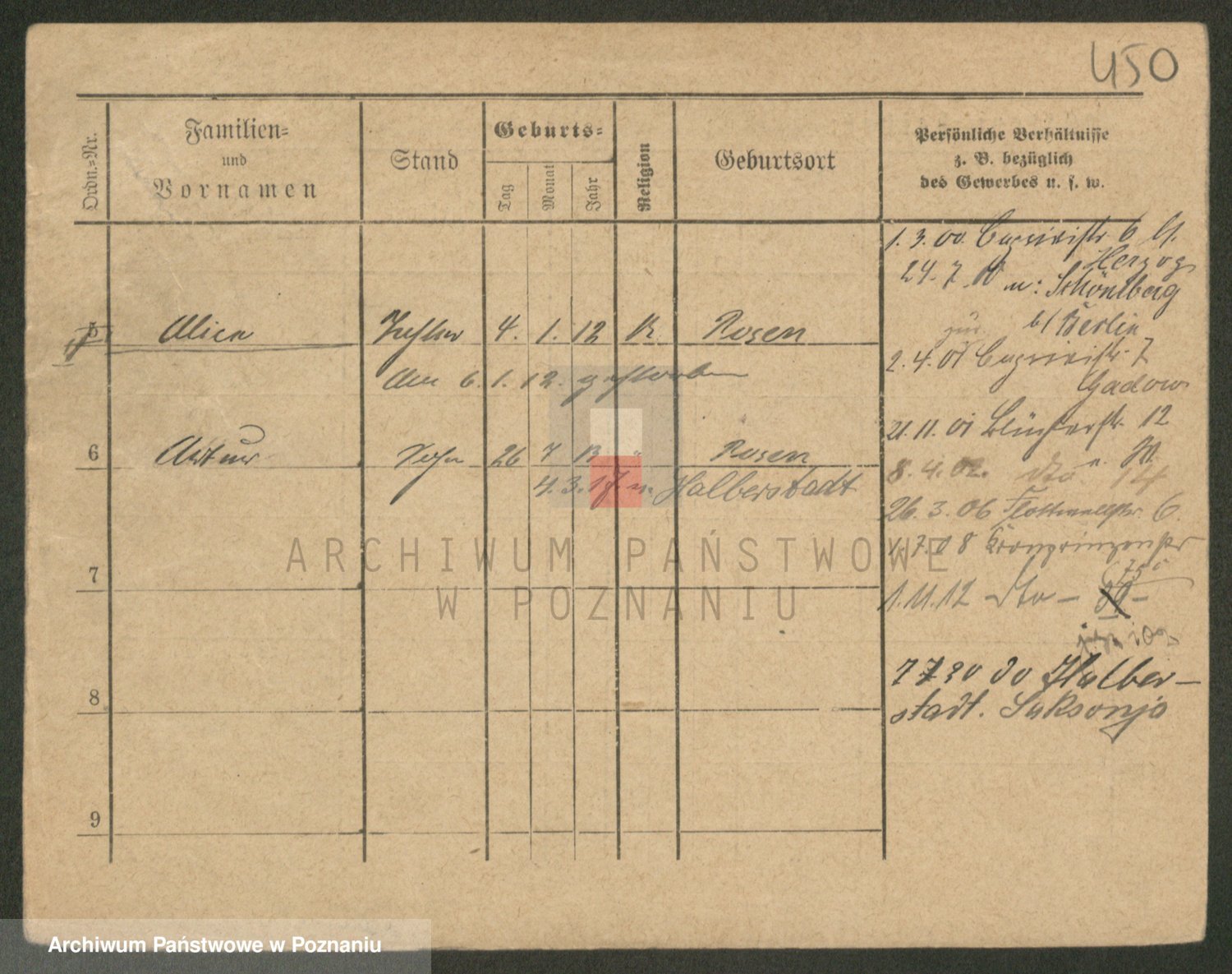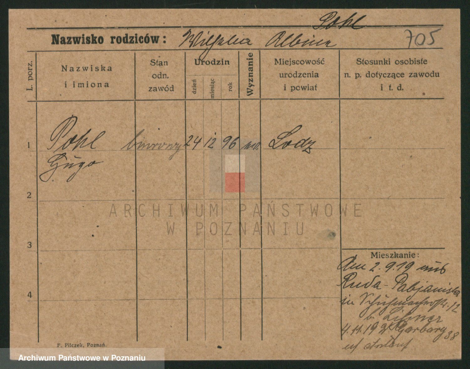 Podgląd karty osobowej dostępny jest po kliknięciu na nazwisko lub ikonkę karty. Można dokonywać powiększenia (ikony na górze) lub przechodzić między kolejnymi skanami (strzałki po bokach).